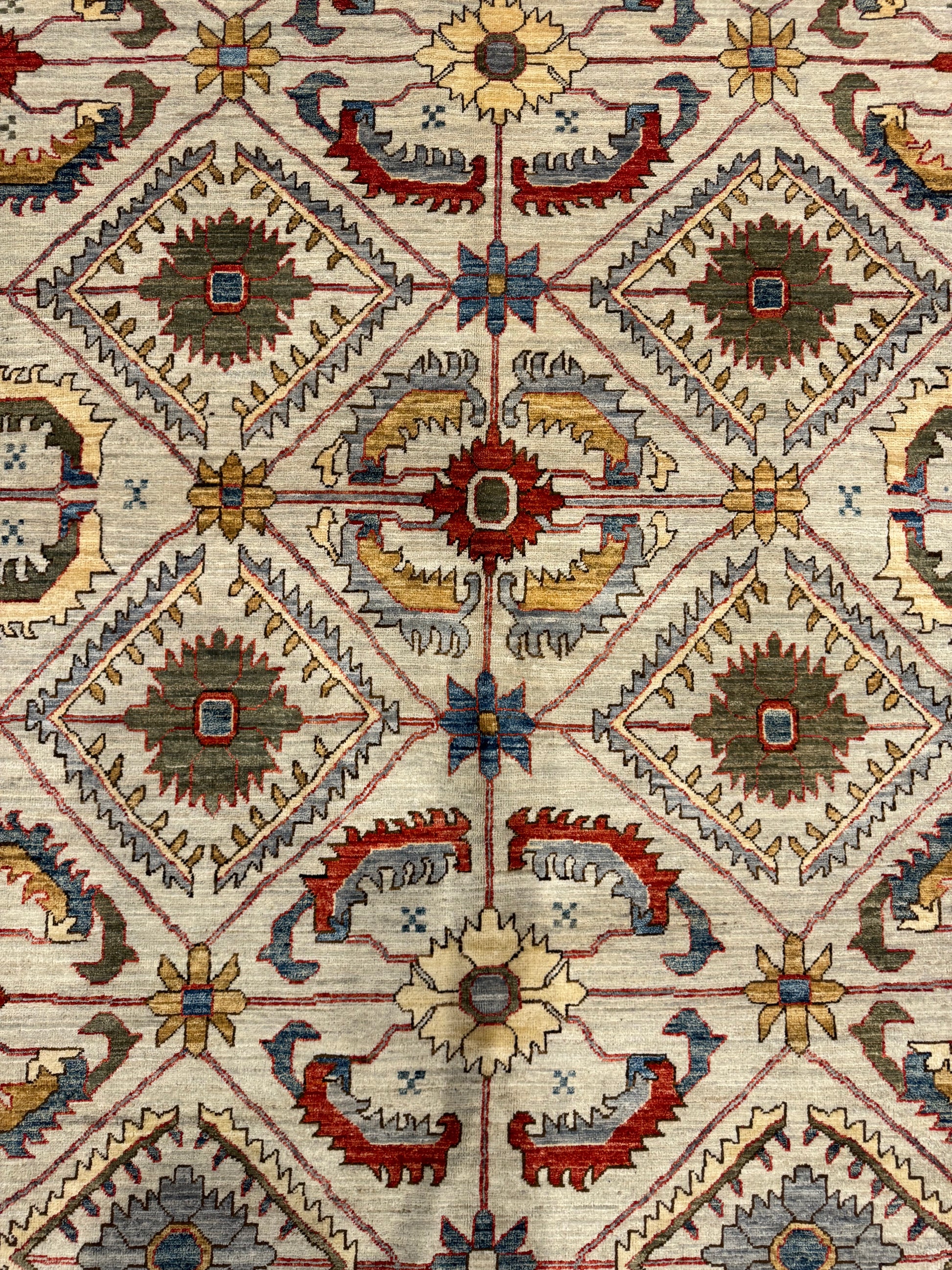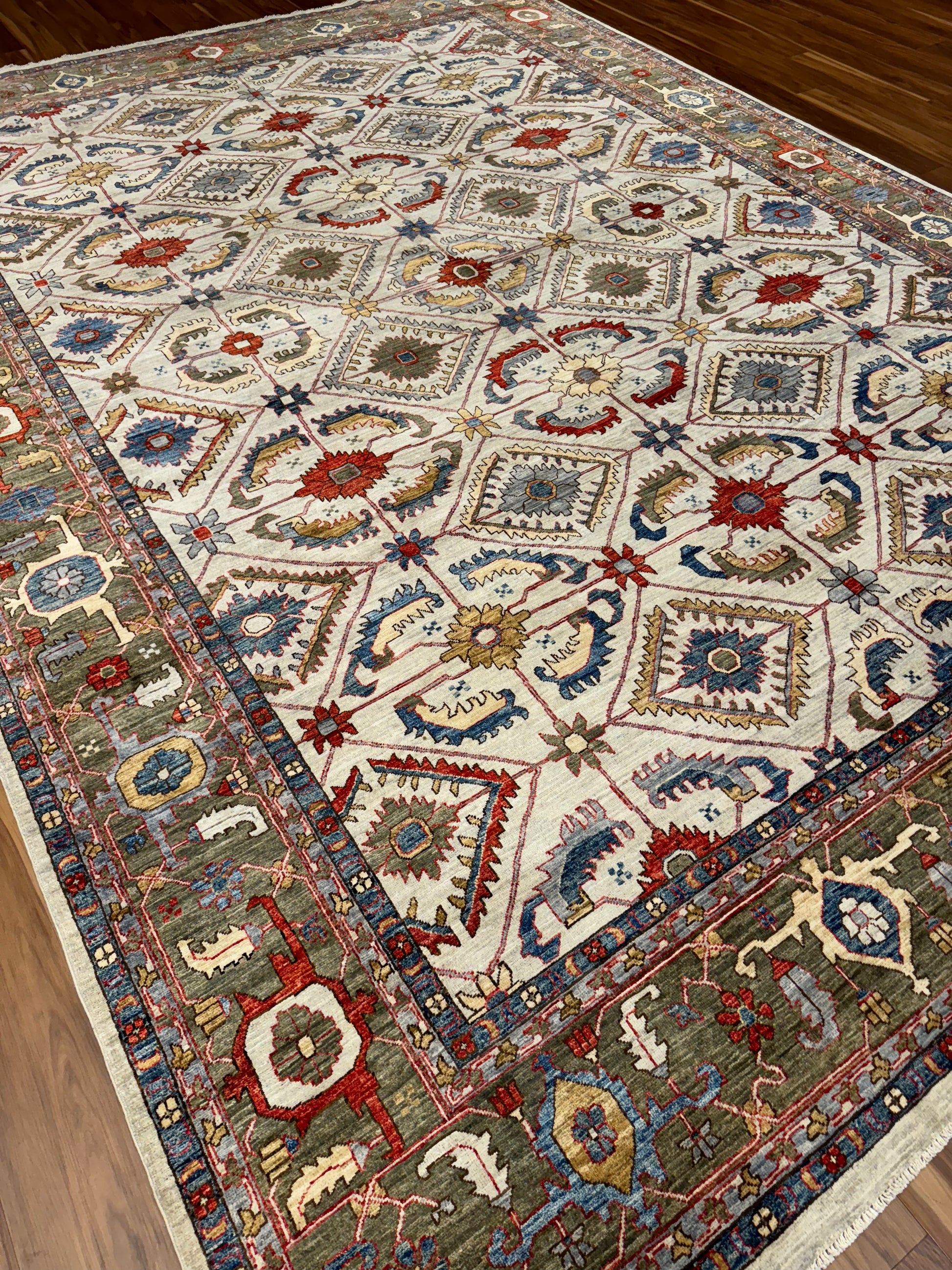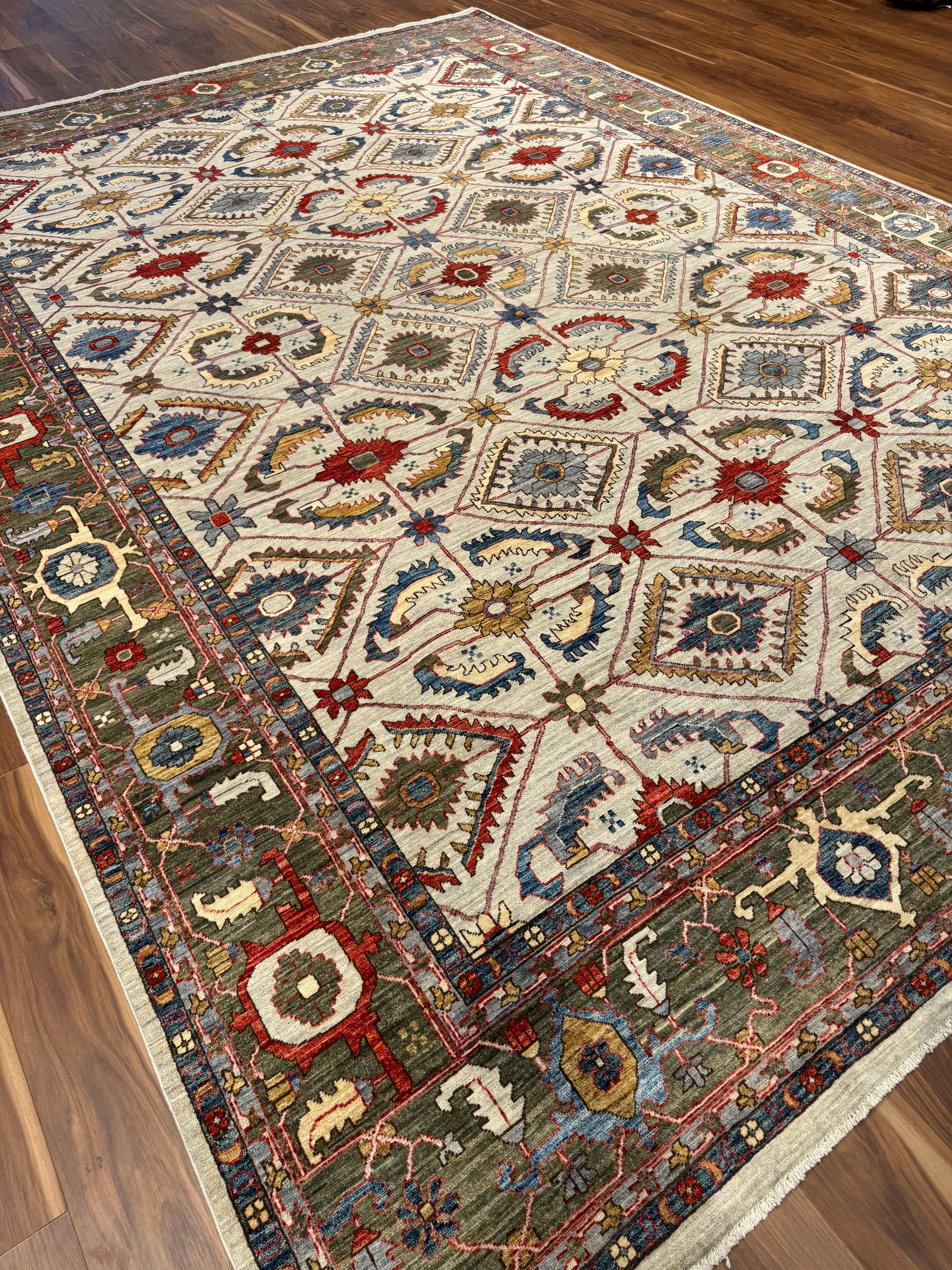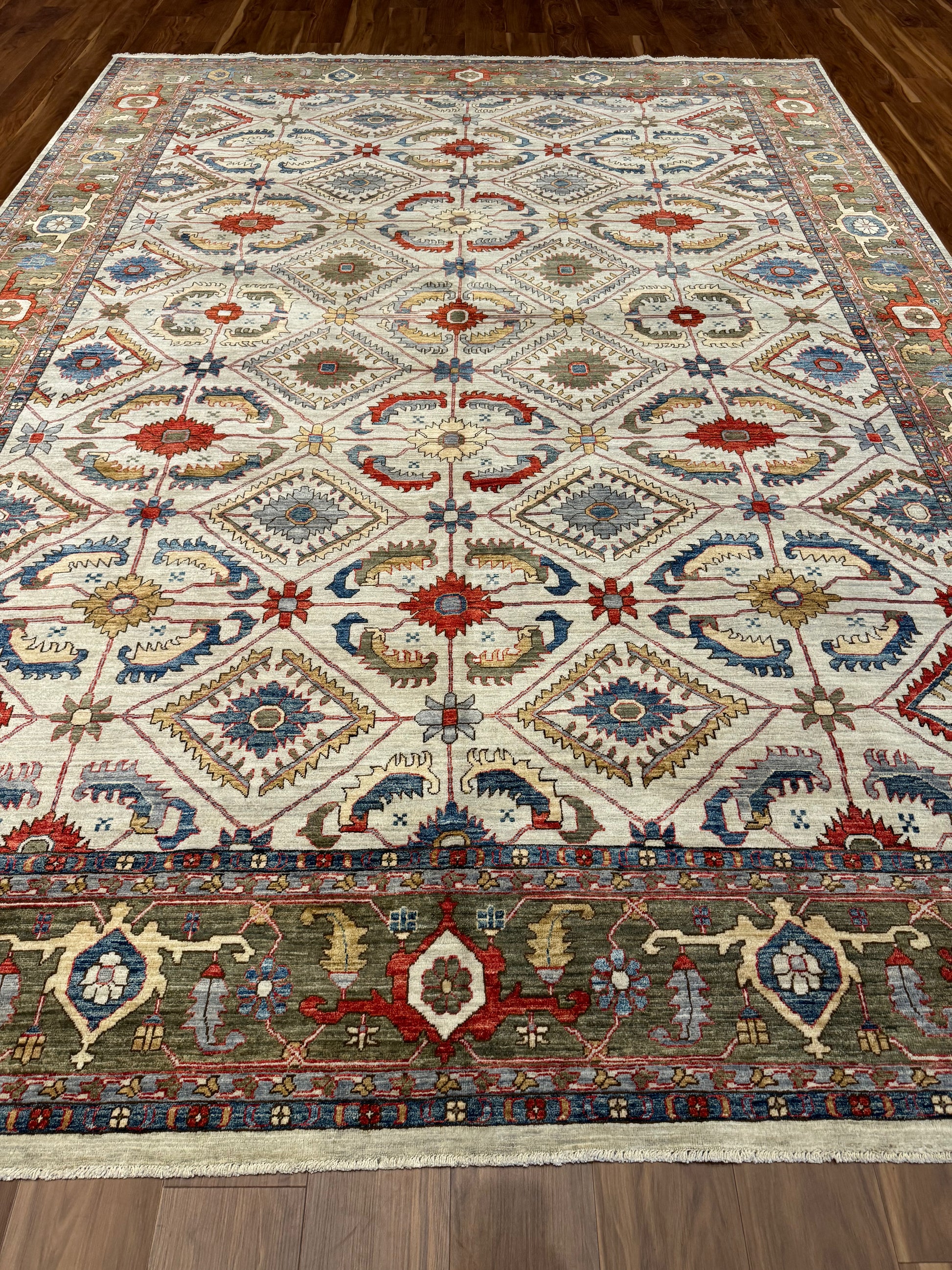 This exquisite Bakhtiari Ariana rug is handwoven from high-quality wool, showcasing a harmonious blend of traditional craftsmanship and timeless style. Its intricate geometric patterns and motifs, radiating a sense of natural elegance, are carefully detailed, offering both cultural richness and aesthetic appeal. The symmetrical array of bountiful floral and animal depictions imbues the space with an organic warmth, while its robust construction ensures longevity and comfort underfoot. Perfect for adding a touch of sophistication to any room.