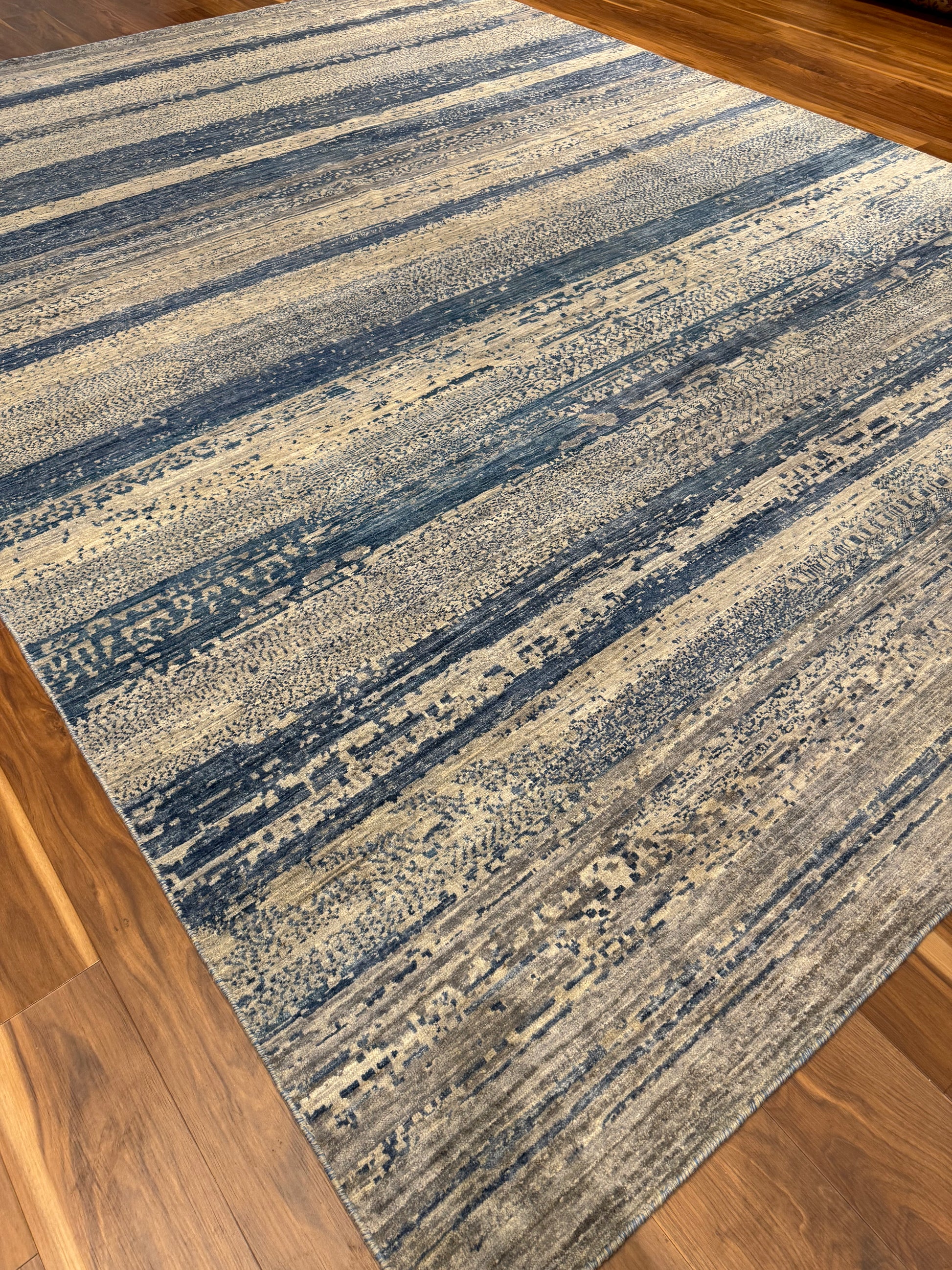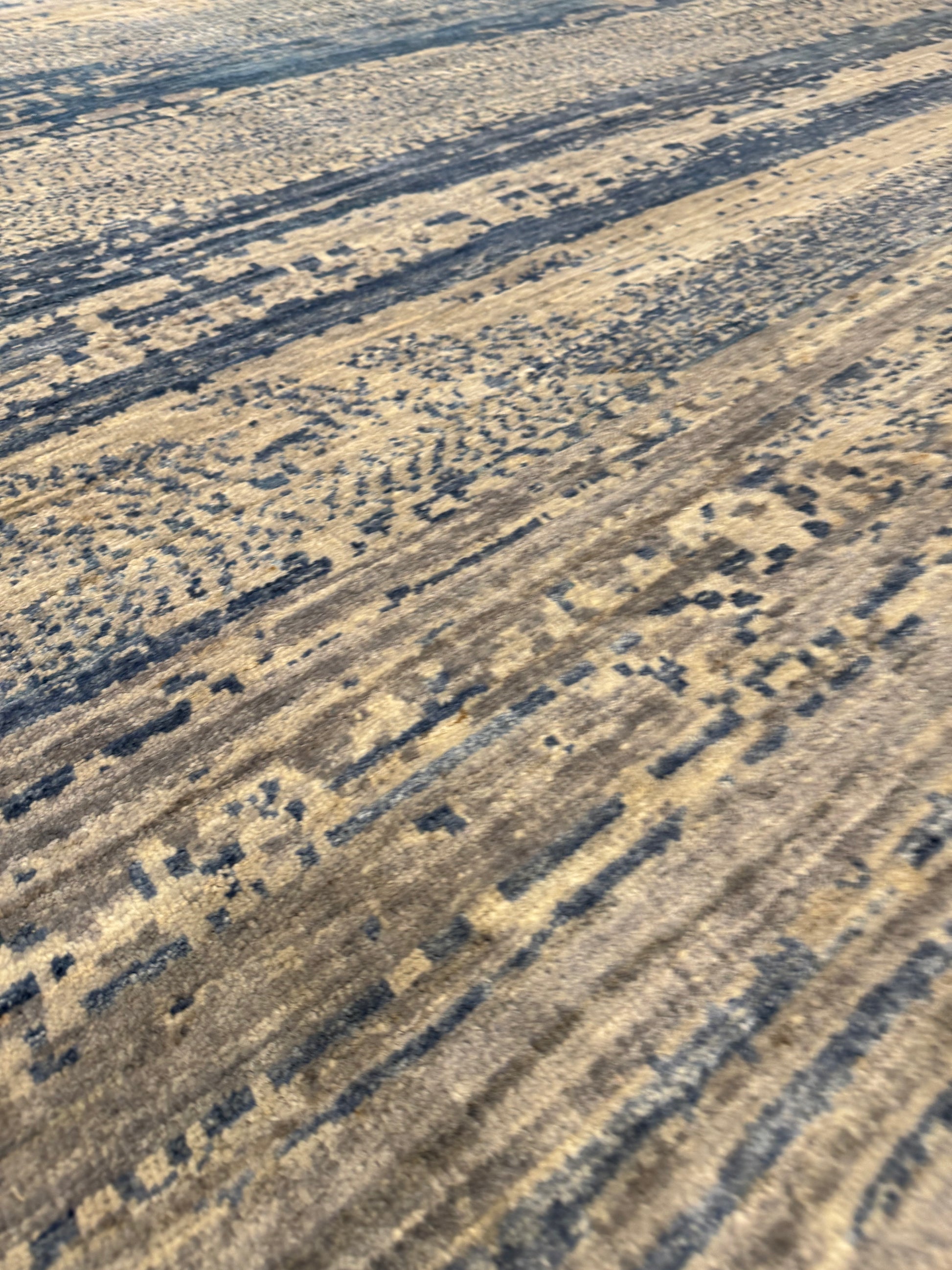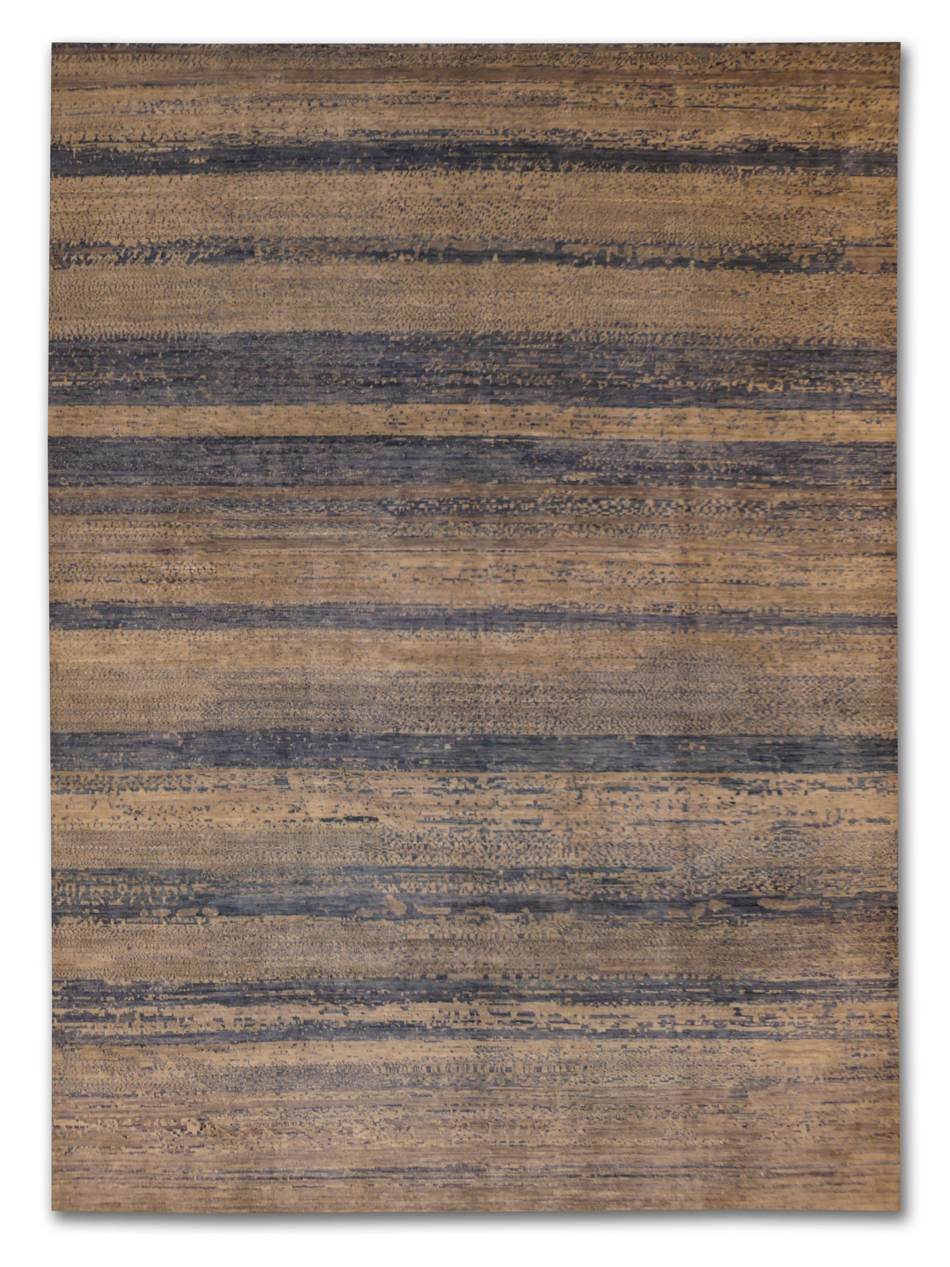 This Modern Gabbeh rug is a perfect embodiment of contemporary sophistication with a nod to traditional craftsmanship. The horizontal striped pattern features variations in shading that create a sense of depth and texture. Made from high-quality wool, this rug guarantees both comfort and durability. Its neutral tones ensure it can complement a wide range of interior designs, and the subtle pattern offers a modern twist on classic aesthetics, making it suitable for both casual and formal settings.