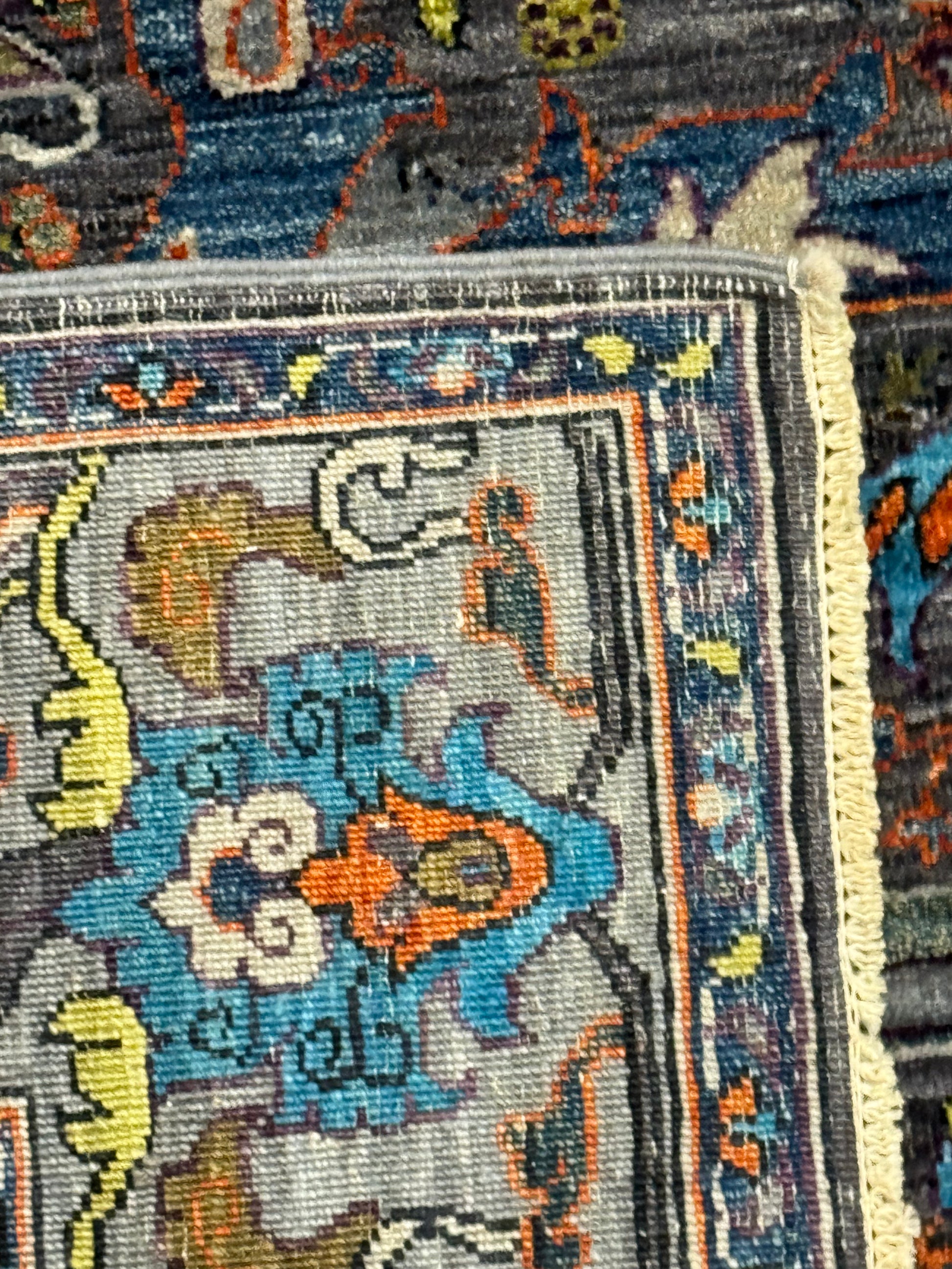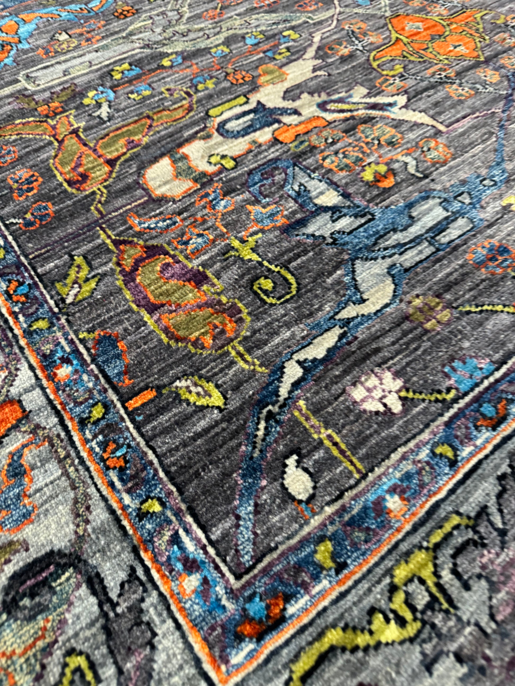 This Fine Bidjar rug boasts a lavish and complex design, characteristic of traditional Persian craftsmanship. The rug features intricate patterns with oriental motifs, including floral elements and detailed borders. Its rich color palette is deep and warm, enhancing the visual opulence of the design. This woolen masterpiece is a testament to the timeless appeal of handwoven artistry, suitable for adding sophistication and cultural richness to any space. Its dense weave and robust construction also speak to the durability and high quality associated with Bidjar rugs, promising a long-lasting addition to any home or collection.