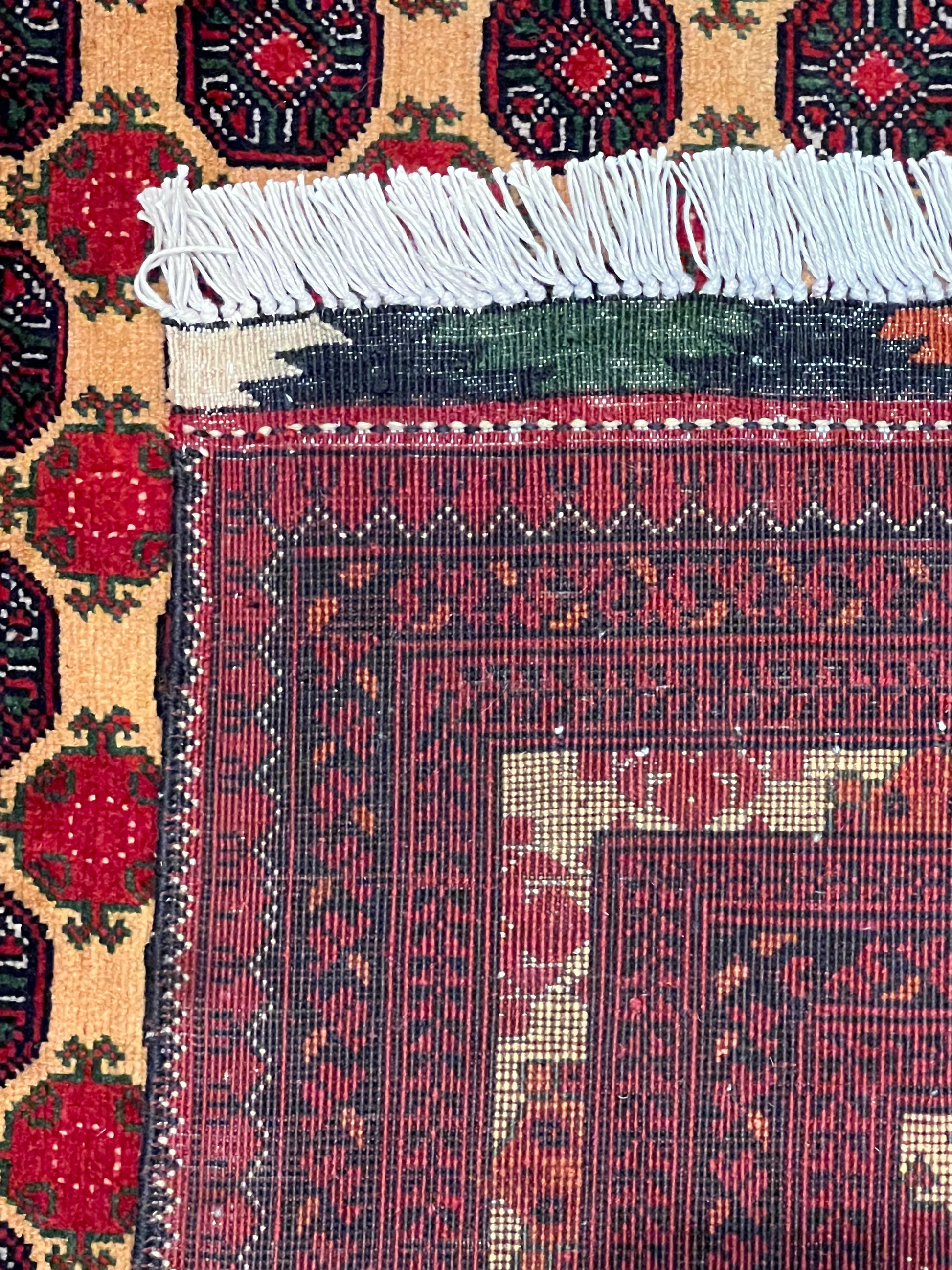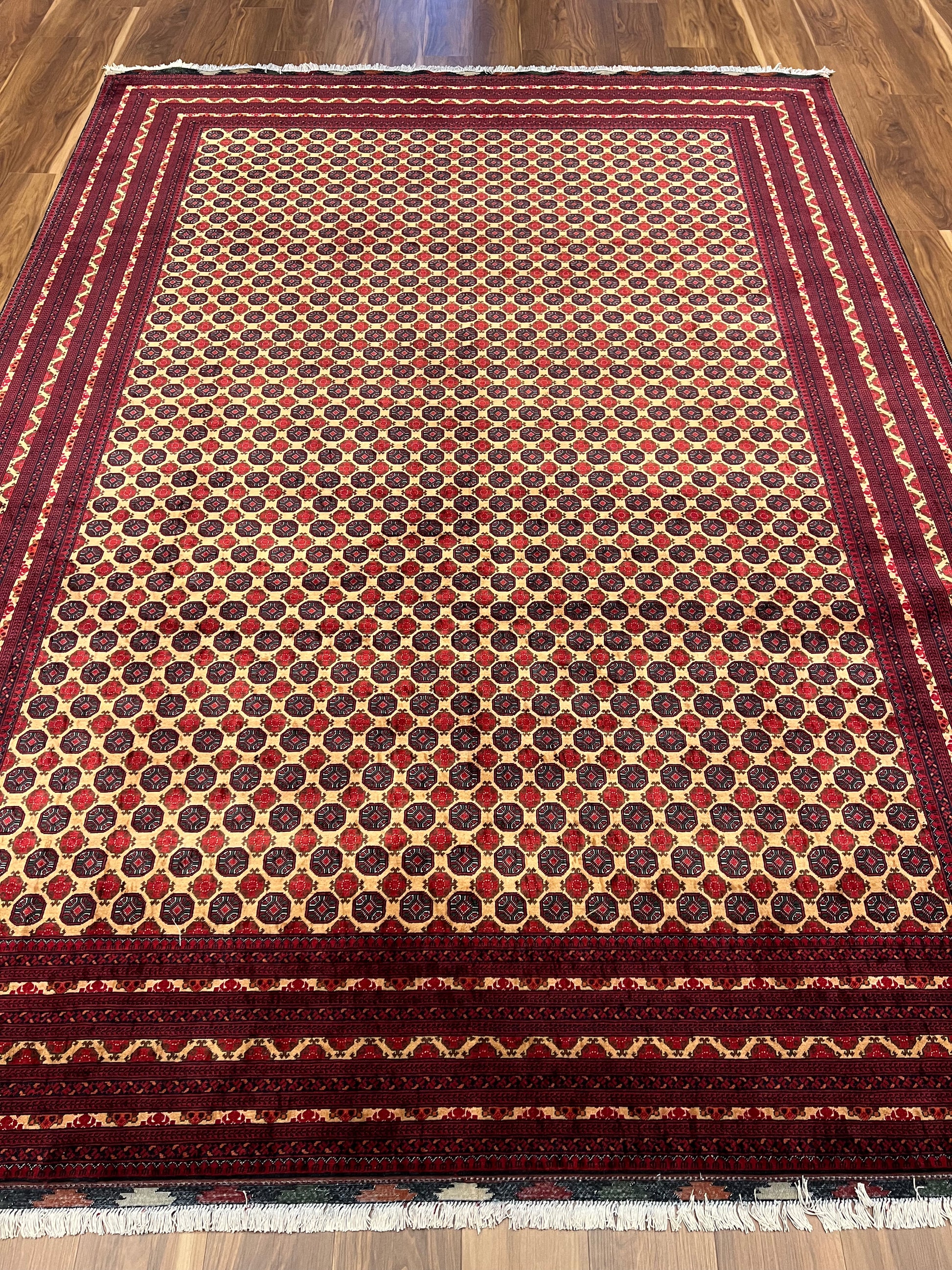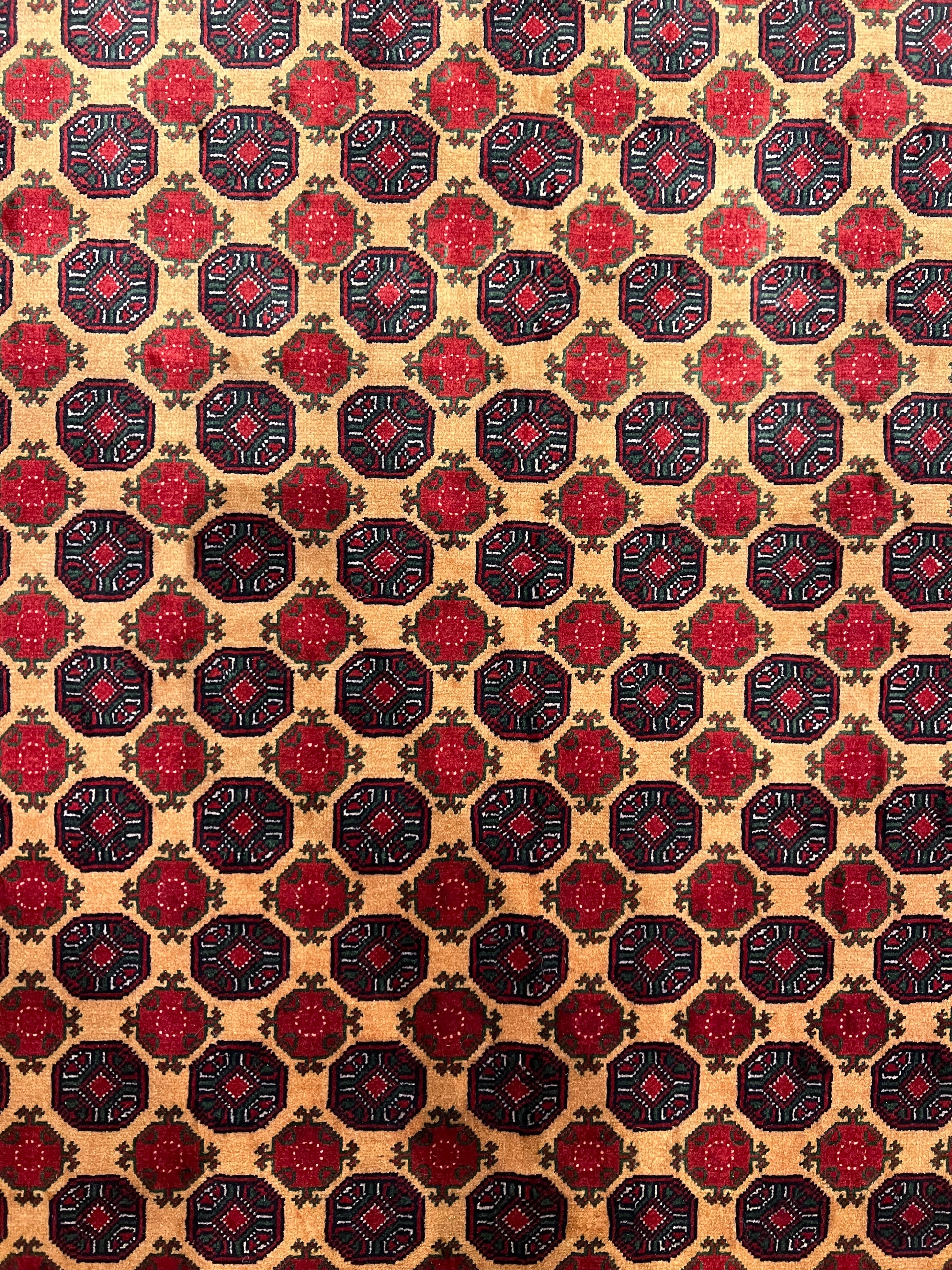 This exquisite Fine Bukhara rug boasts traditional sophistication with its intricate geometric patterns and rich color palette. Hand-knotted from the finest wool, the rug features a deep red field accented by beige and brown motifs, encapsulated by intricate borders that retain the classic aesthetic. Perfect for adding a touch of elegance to any space, this rug is a testament to exceptional craftsmanship and enduring design.