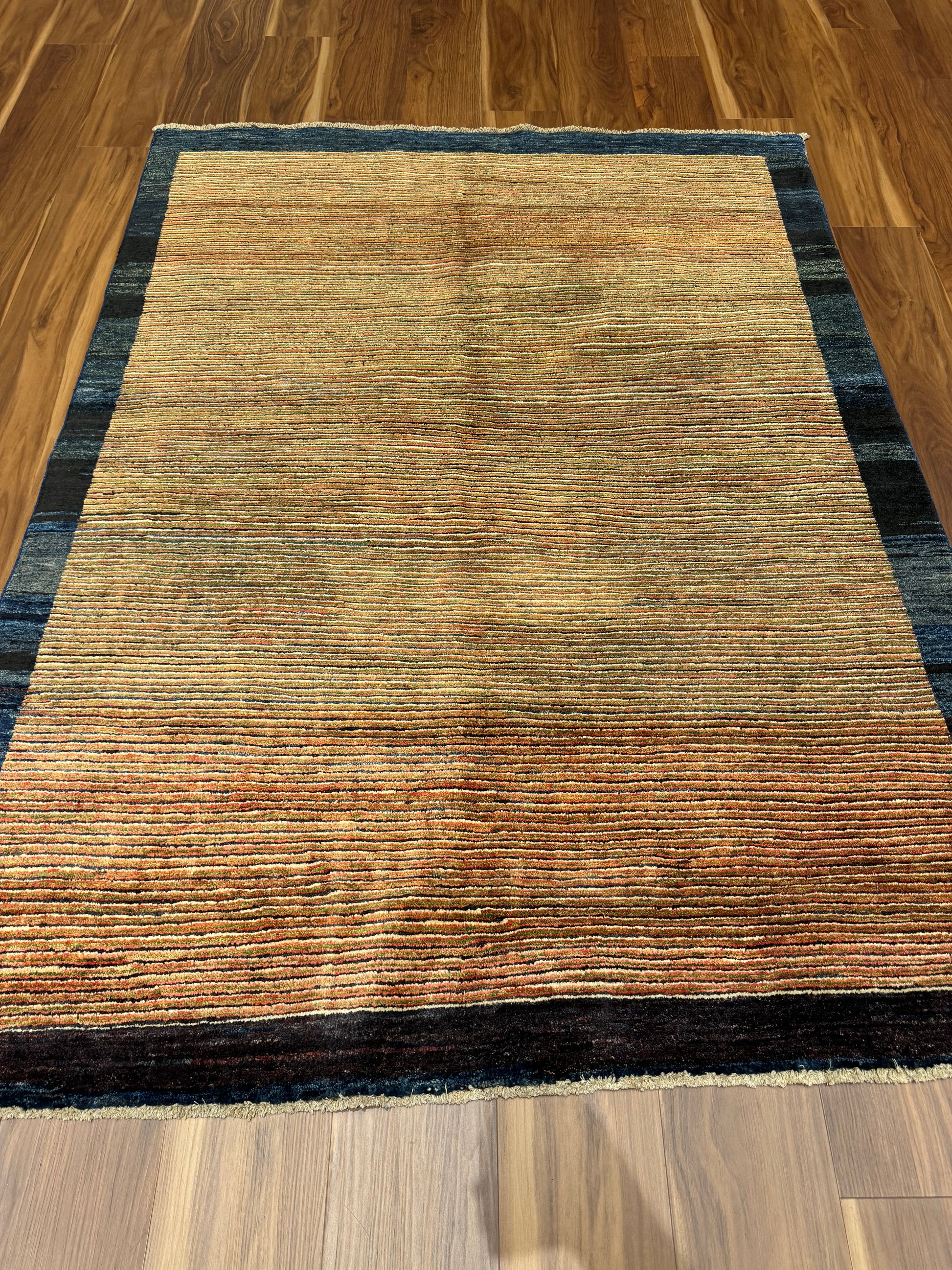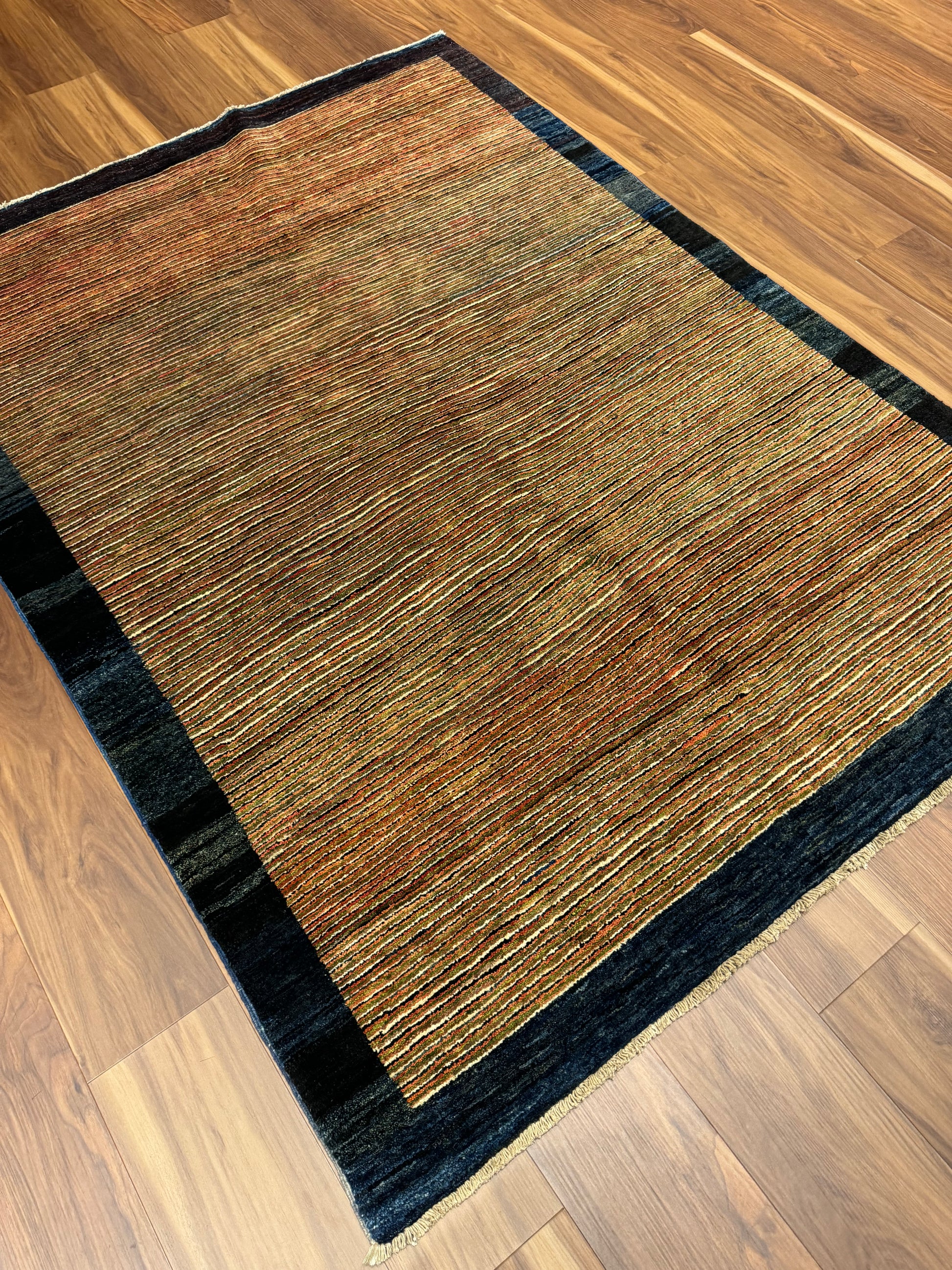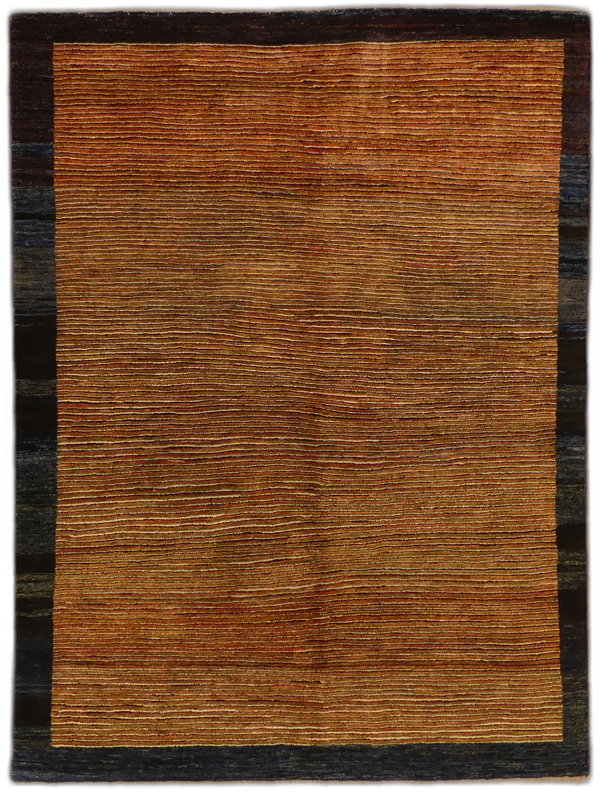 This exquisite Gabbeh rug, handwoven with high-quality wool, boasts a warm and inviting spectrum of earthen tones, ranging from burnt orange to deep brown. The subtle variation in hues creates a mesmerizing gradient effect reminiscent of a serene sunset desertscape. Its thick pile offers a luxurious feel underfoot, making it a perfect addition to add both comfort and traditional sophistication to any room. The rug's simplicity allows for versatile placement in a variety of decor schemes, from rustic to more contemporary settings.