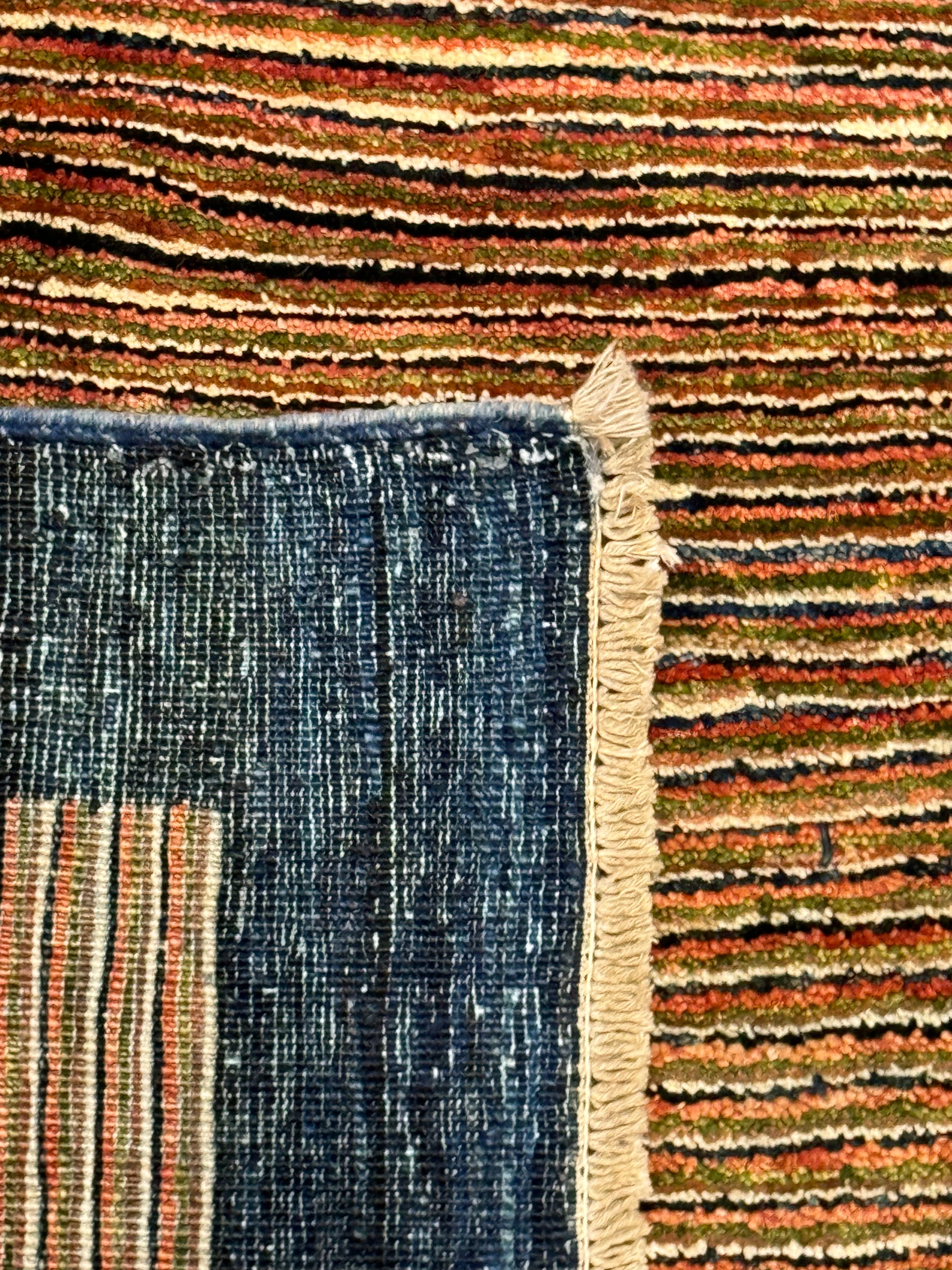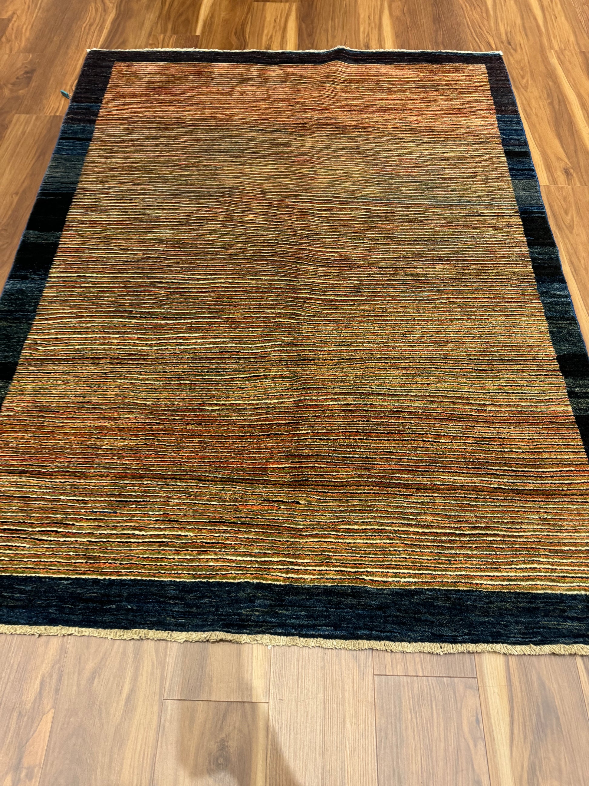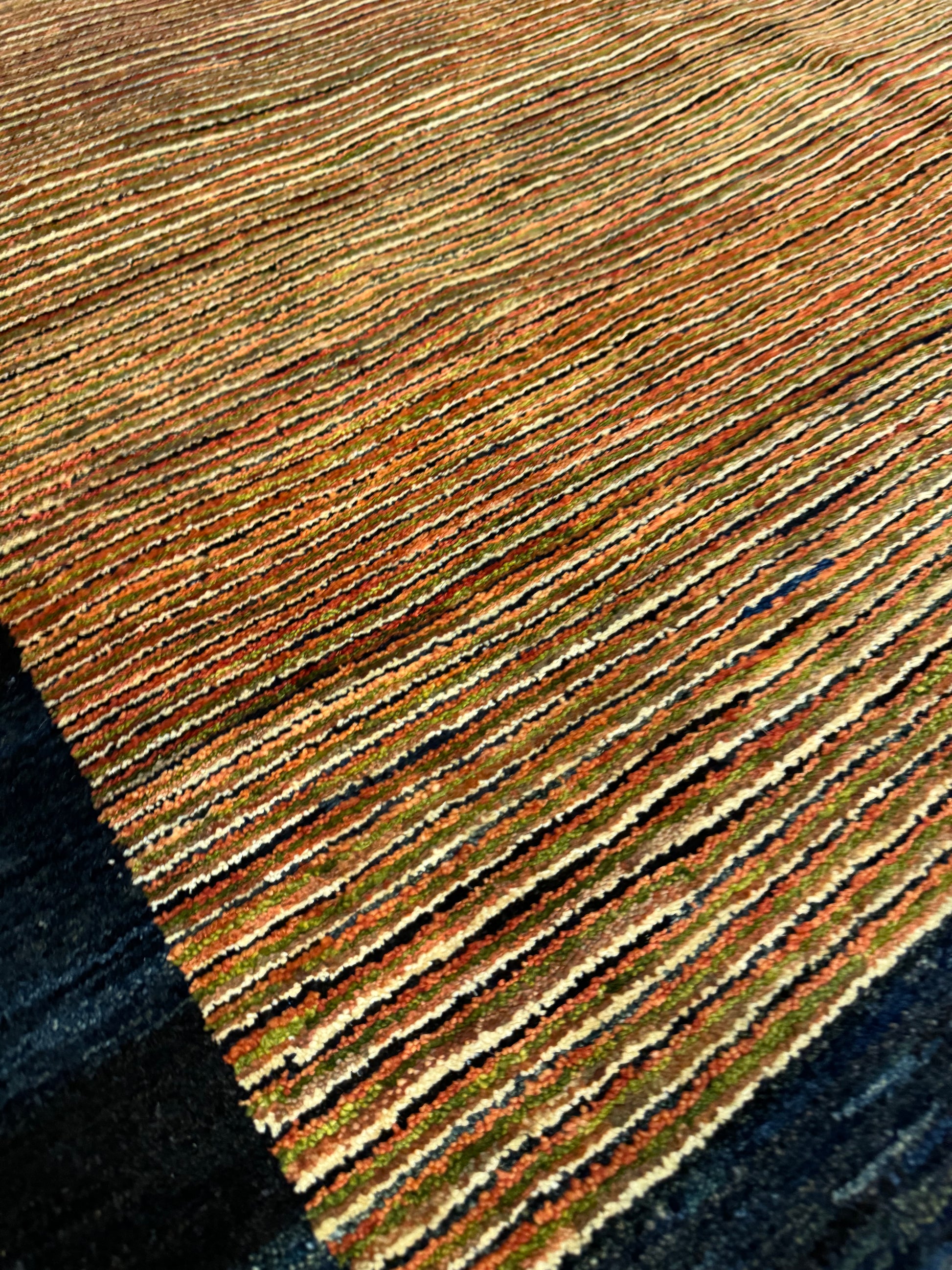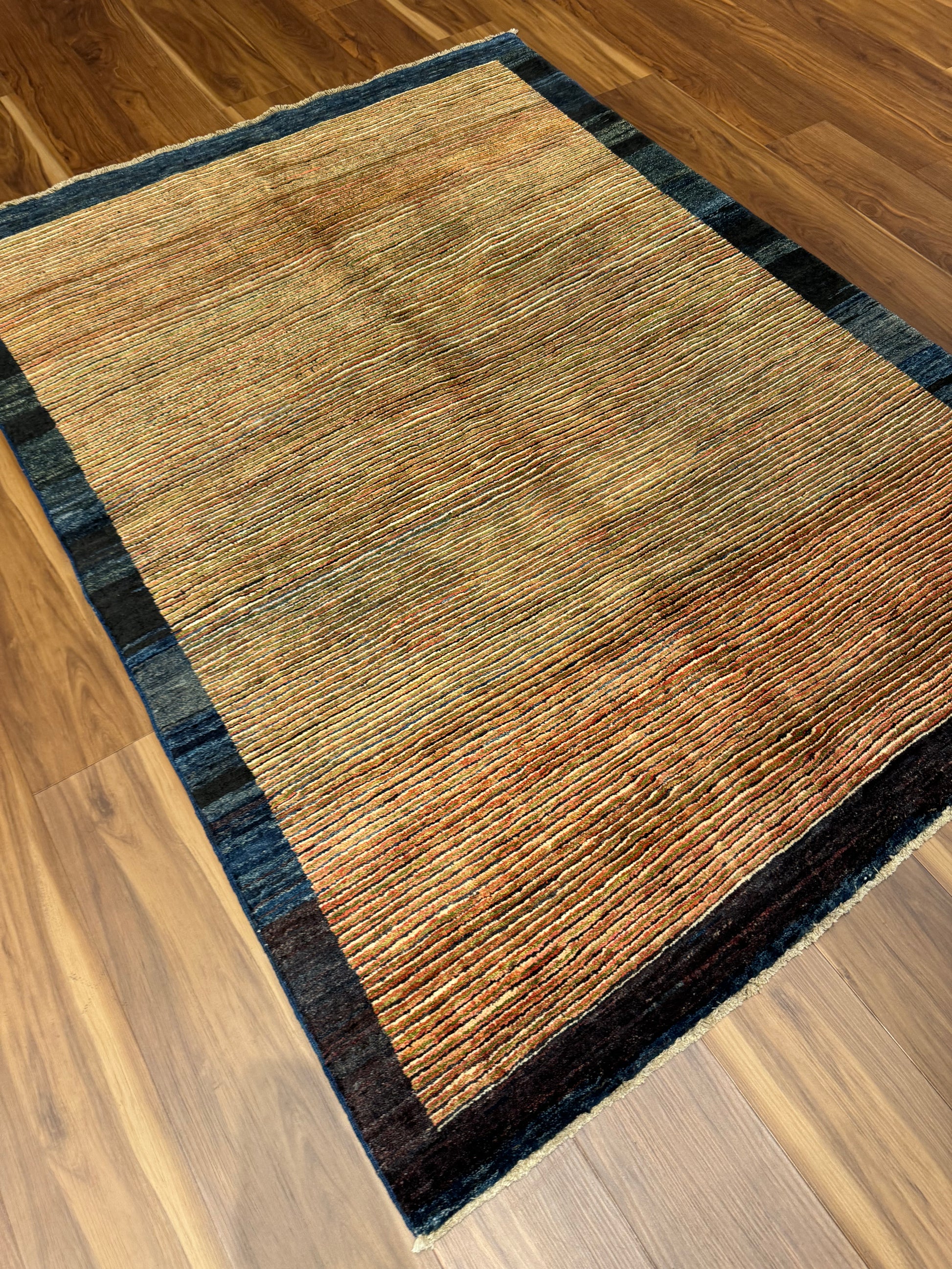 This exquisite Gabbeh rug, handwoven with high-quality wool, boasts a warm and inviting spectrum of earthen tones, ranging from burnt orange to deep brown. The subtle variation in hues creates a mesmerizing gradient effect reminiscent of a serene sunset desertscape. Its thick pile offers a luxurious feel underfoot, making it a perfect addition to add both comfort and traditional sophistication to any room. The rug's simplicity allows for versatile placement in a variety of decor schemes, from rustic to more contemporary settings.