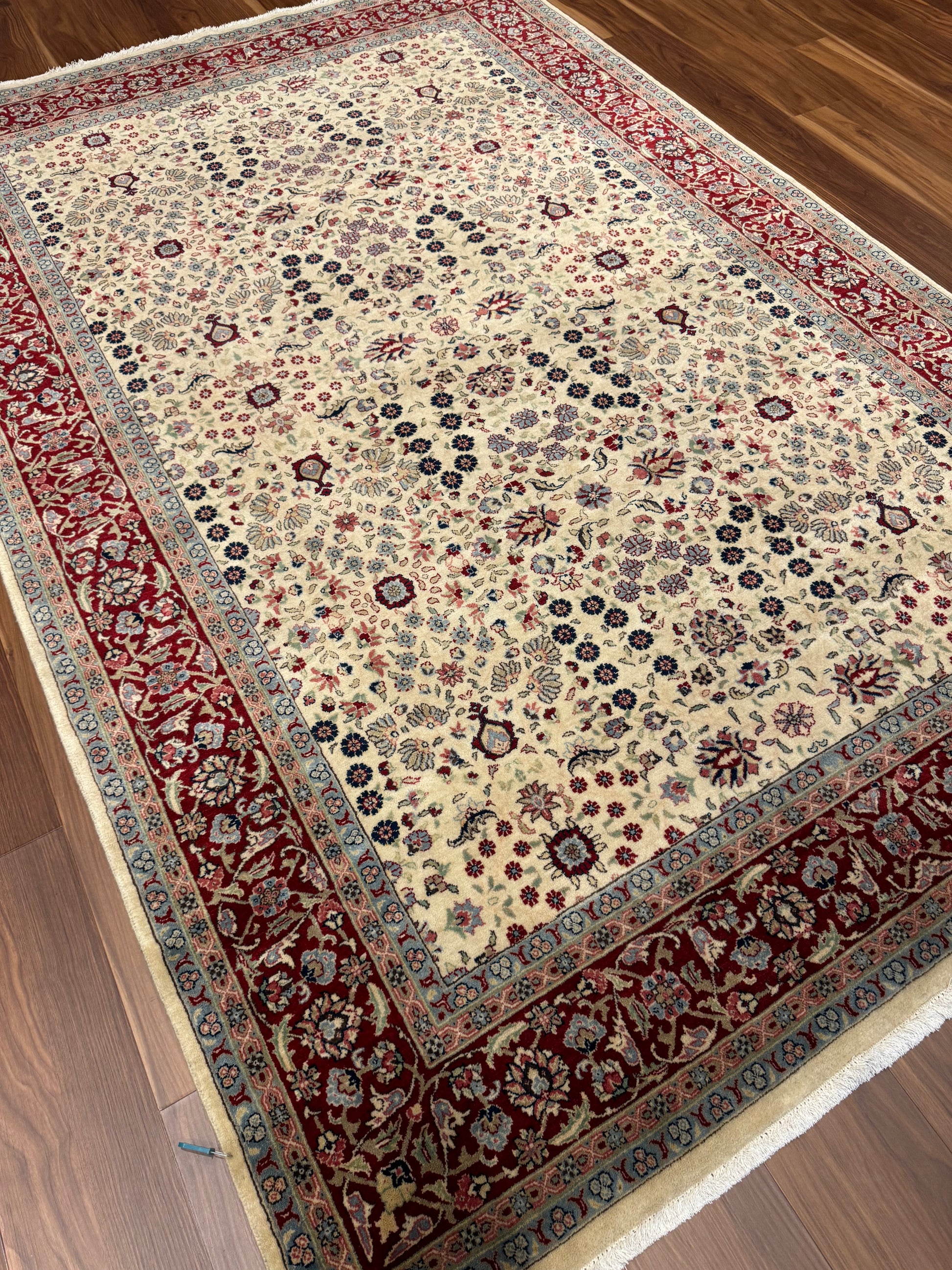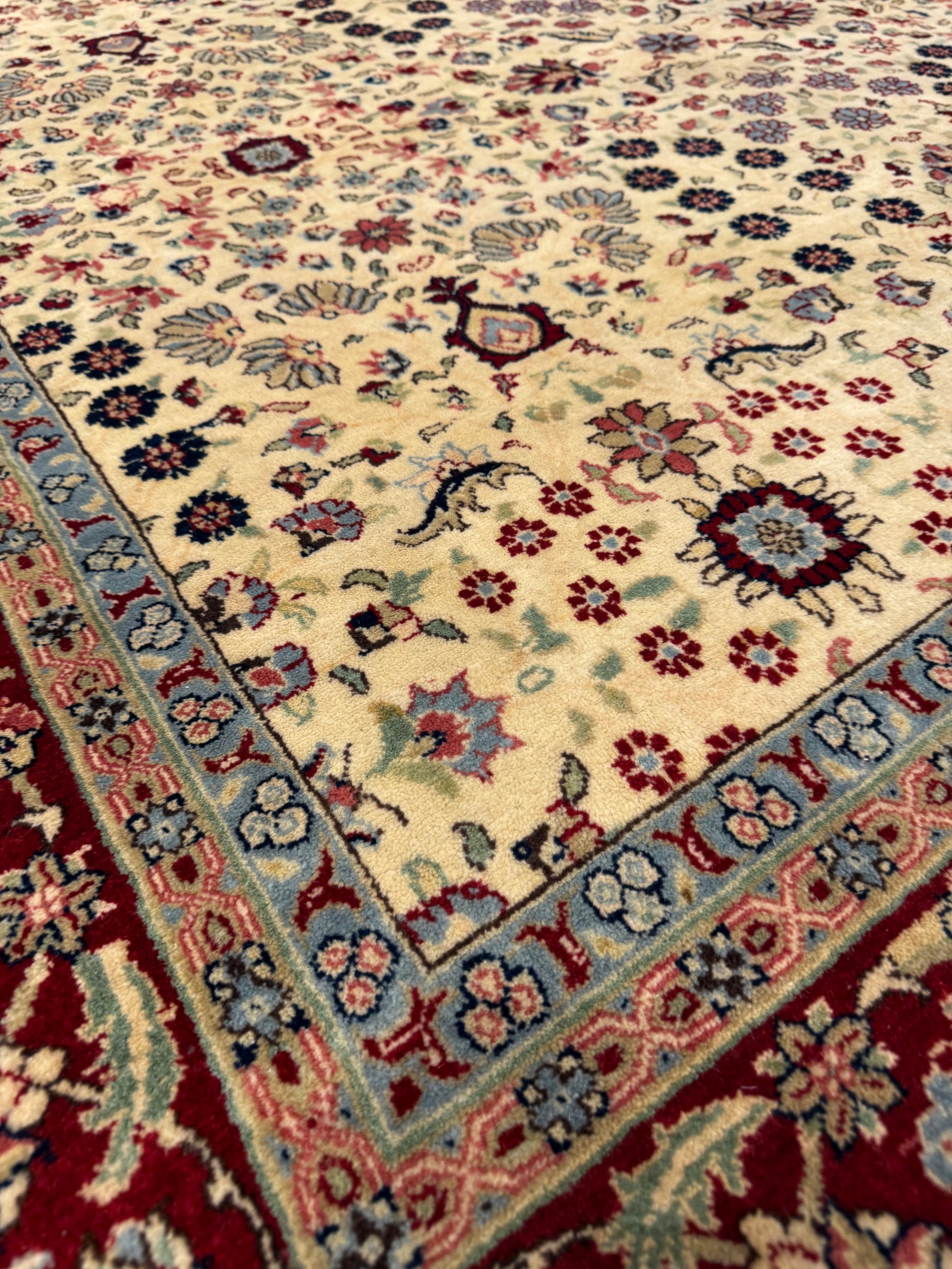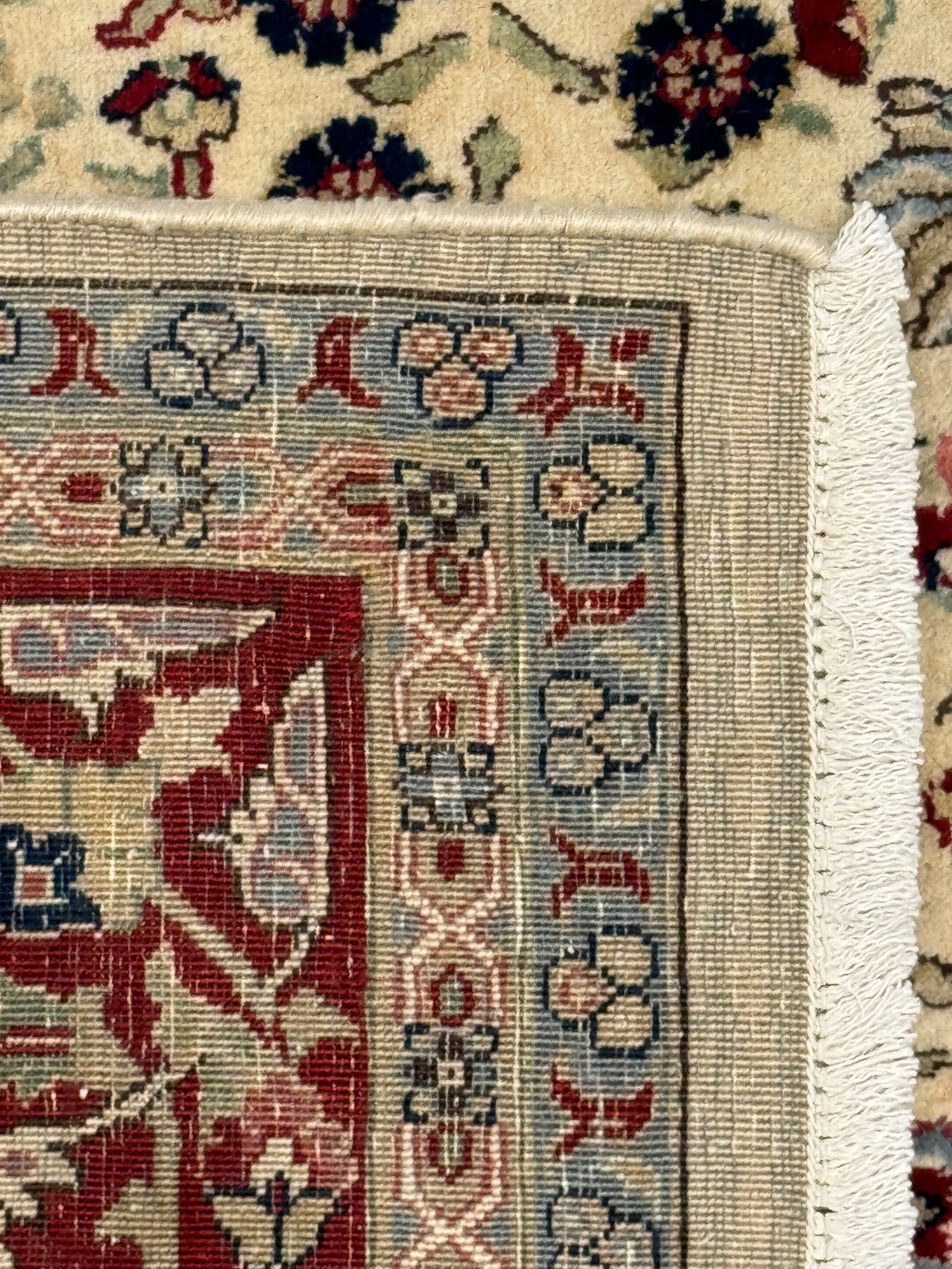The Hereke wool rug showcases the exquisite art of traditional carpet making of Turkey. Adorned with intricate floral motifs and elegant border patterns, it exudes a timeless charm. Its high-quality wool construction promises durability and a soft underfoot experience, making it a sophisticated addition to any interior. The balanced use of rich, earthy tones and detailed design work lends the carpet a sense of luxury, perfect for those seeking to add a touch of cultural elegance to their living space.