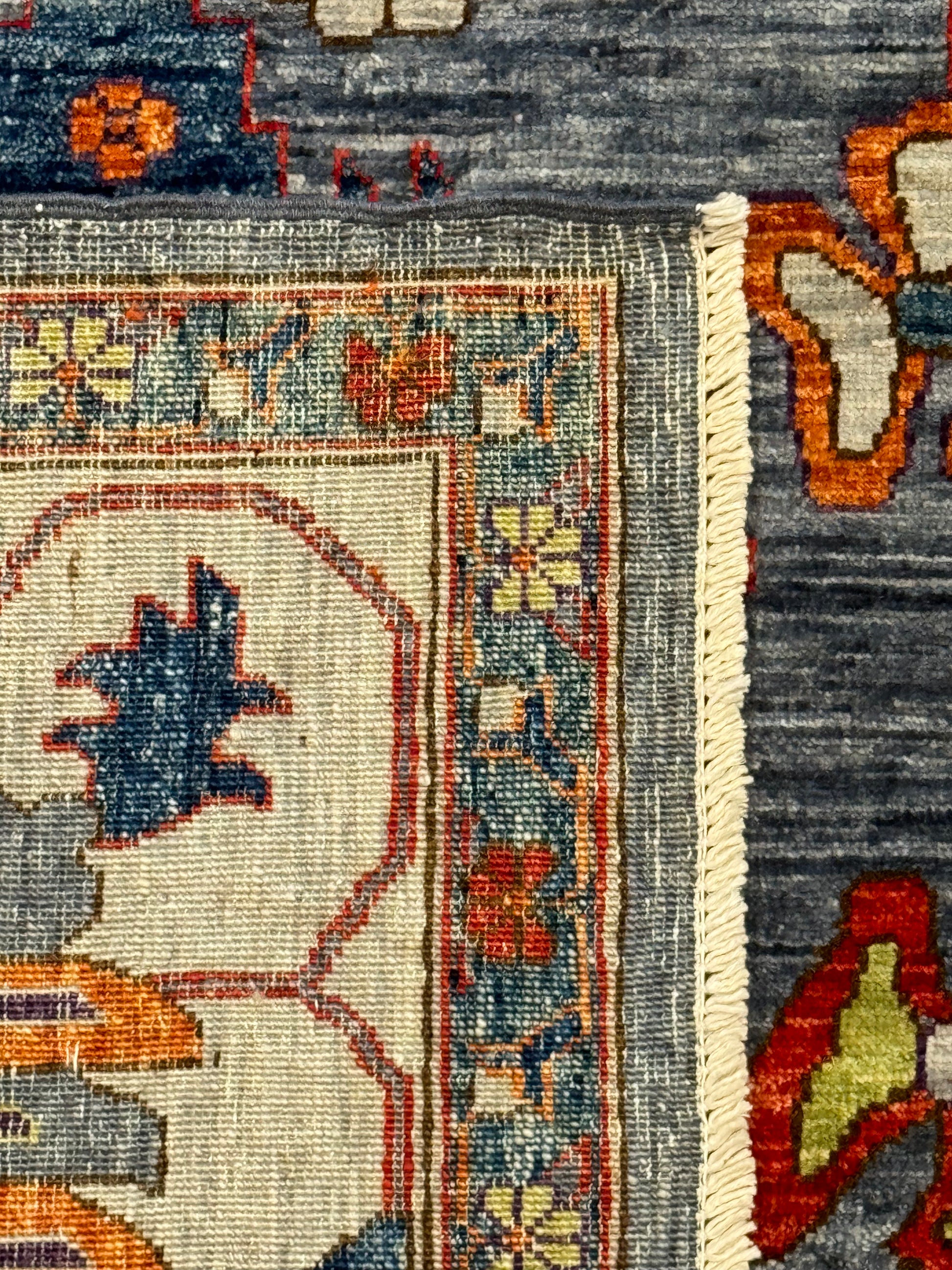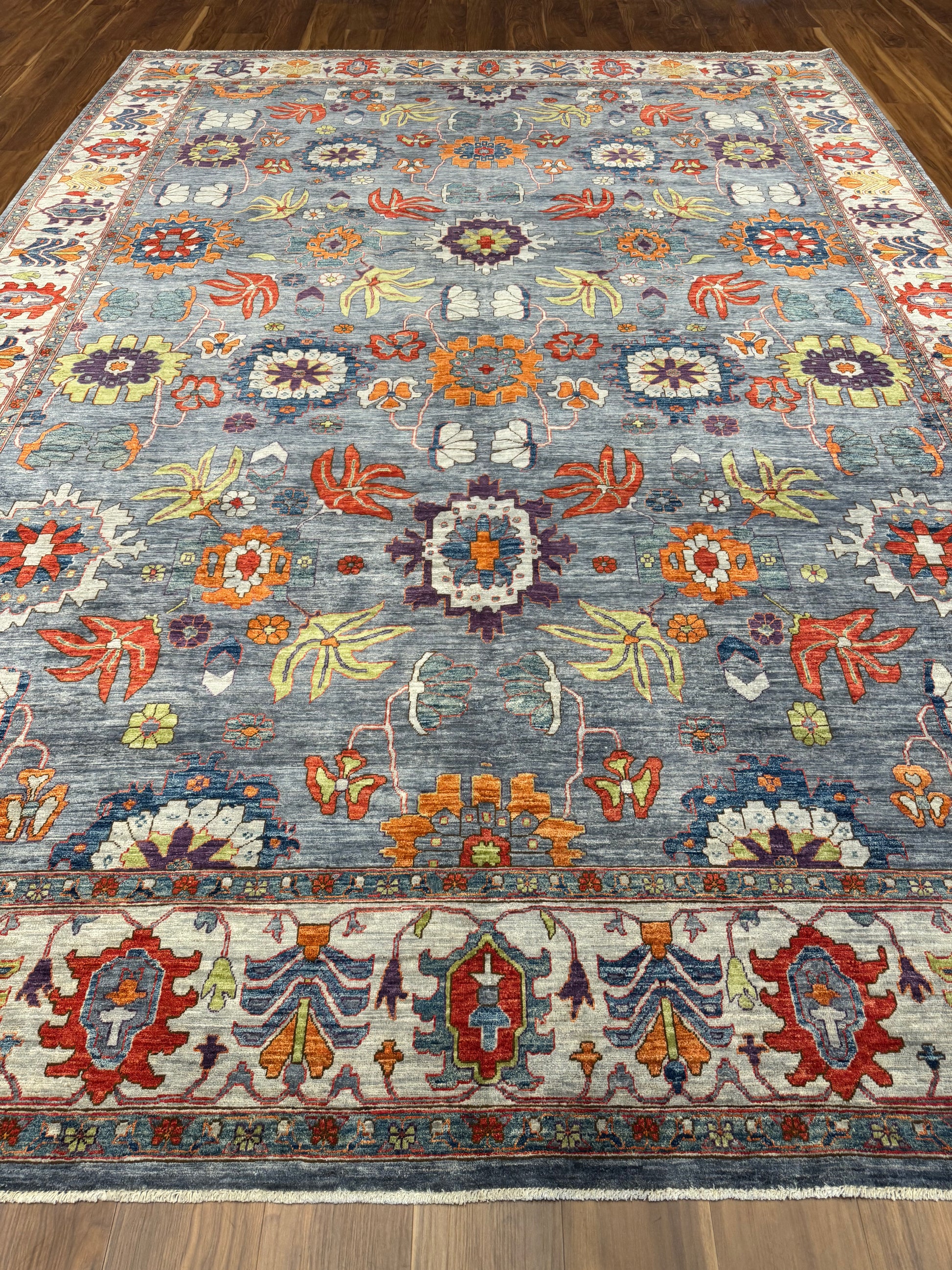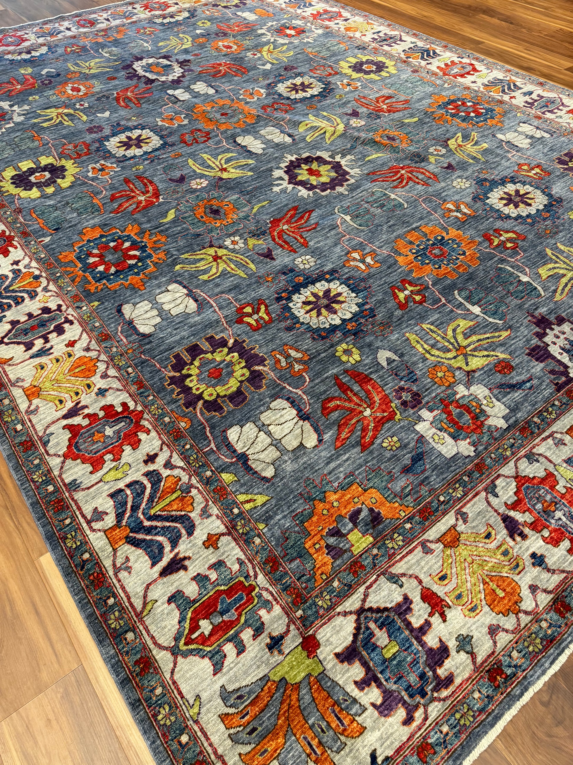 This exquisite Heriz (Ariana) rug boasts traditional elegance with a modern color palette. Crafted from high-quality wool, it features intricate patterns and a rich combination of navy blue, red, and burnt orange hues, accented by warm beige. Ideal for adding warmth and character to any space.