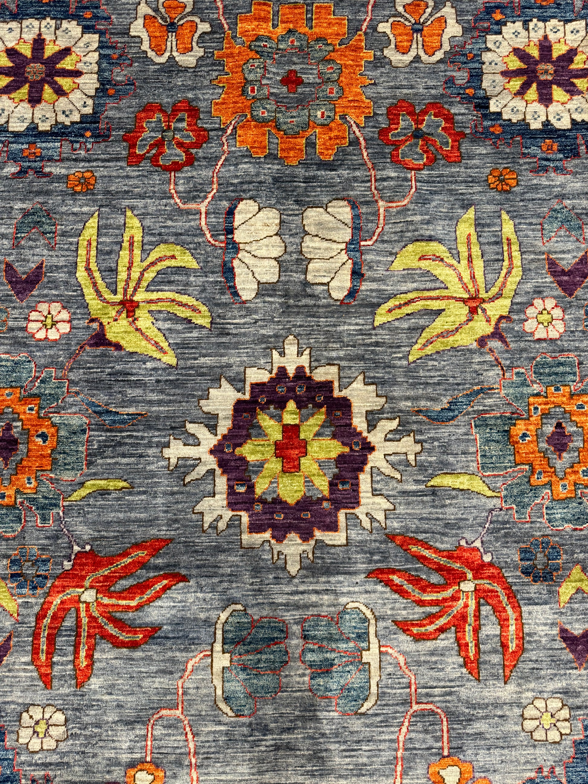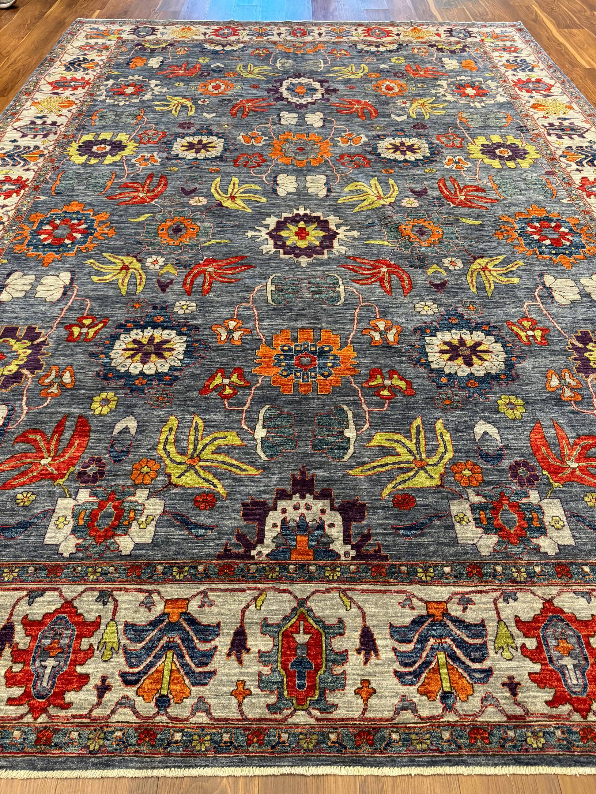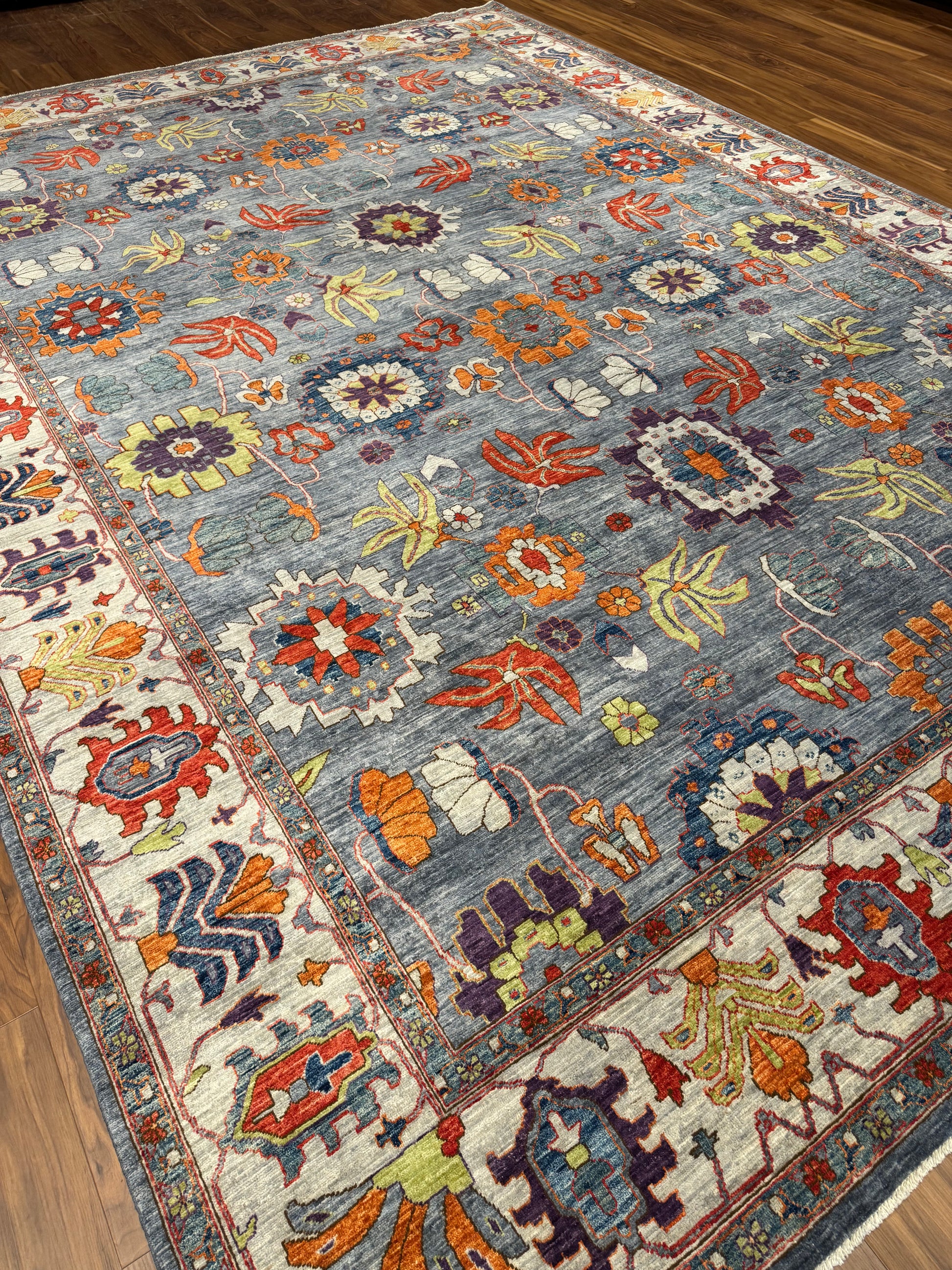 This exquisite Heriz (Ariana) rug boasts traditional elegance with a modern color palette. Crafted from high-quality wool, it features intricate patterns and a rich combination of navy blue, red, and burnt orange hues, accented by warm beige. Ideal for adding warmth and character to any space.