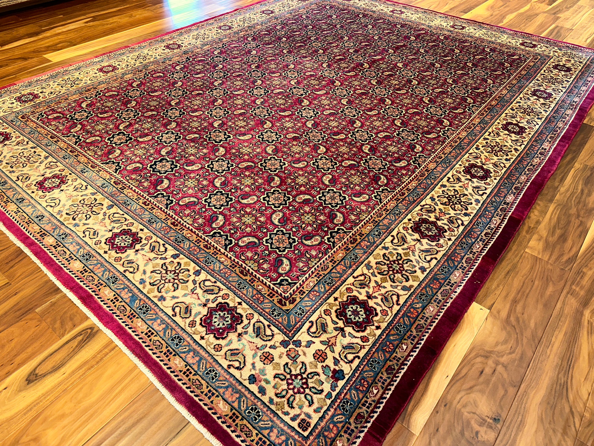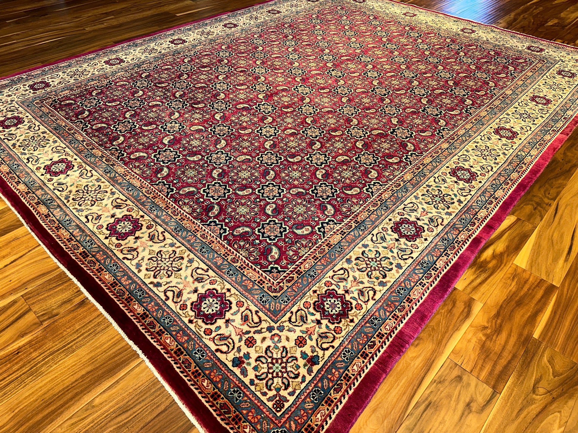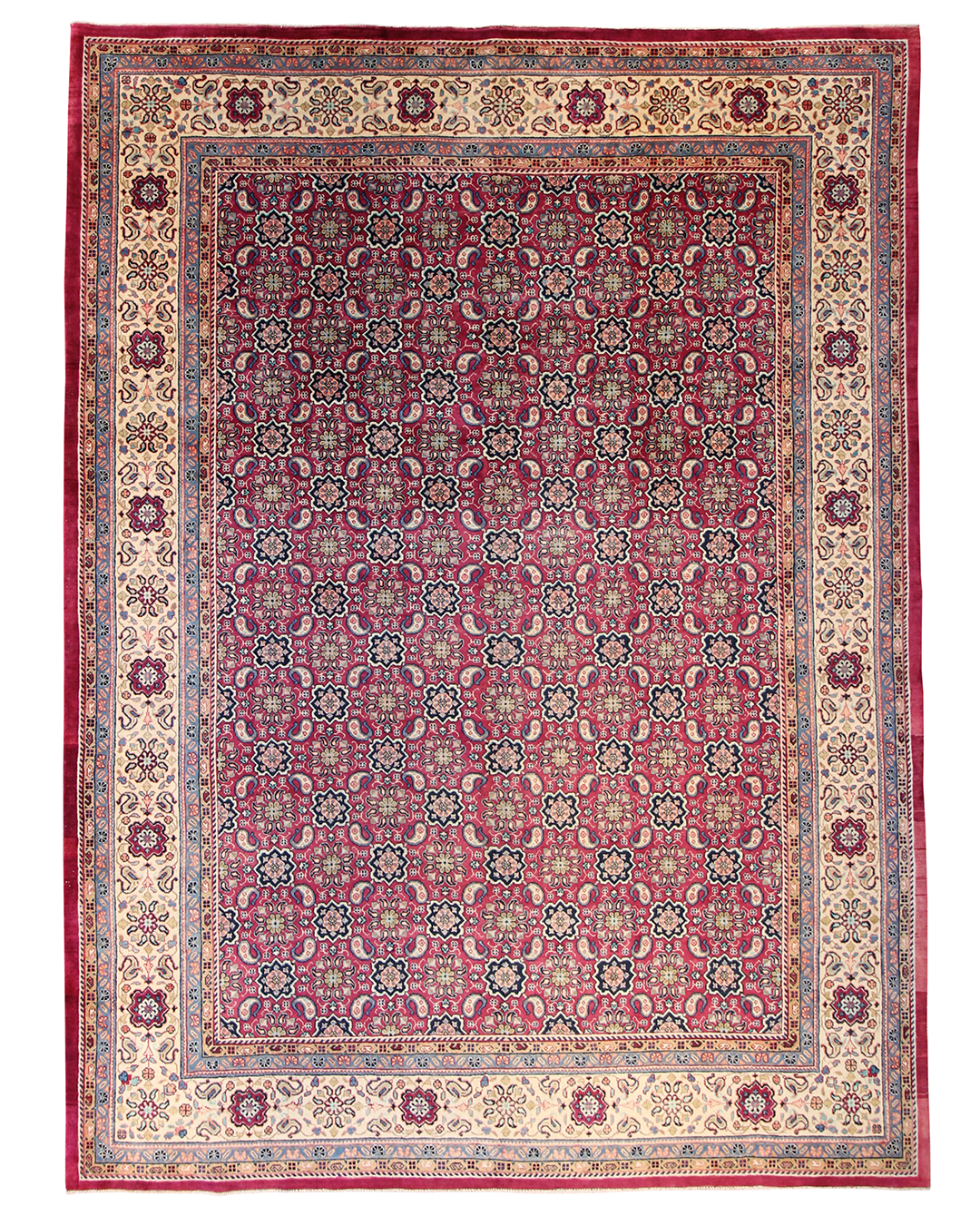 - Design: Allover floral lattice with classic Persian motifs and framed border