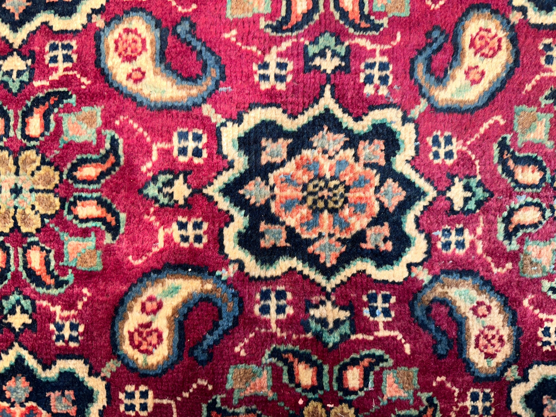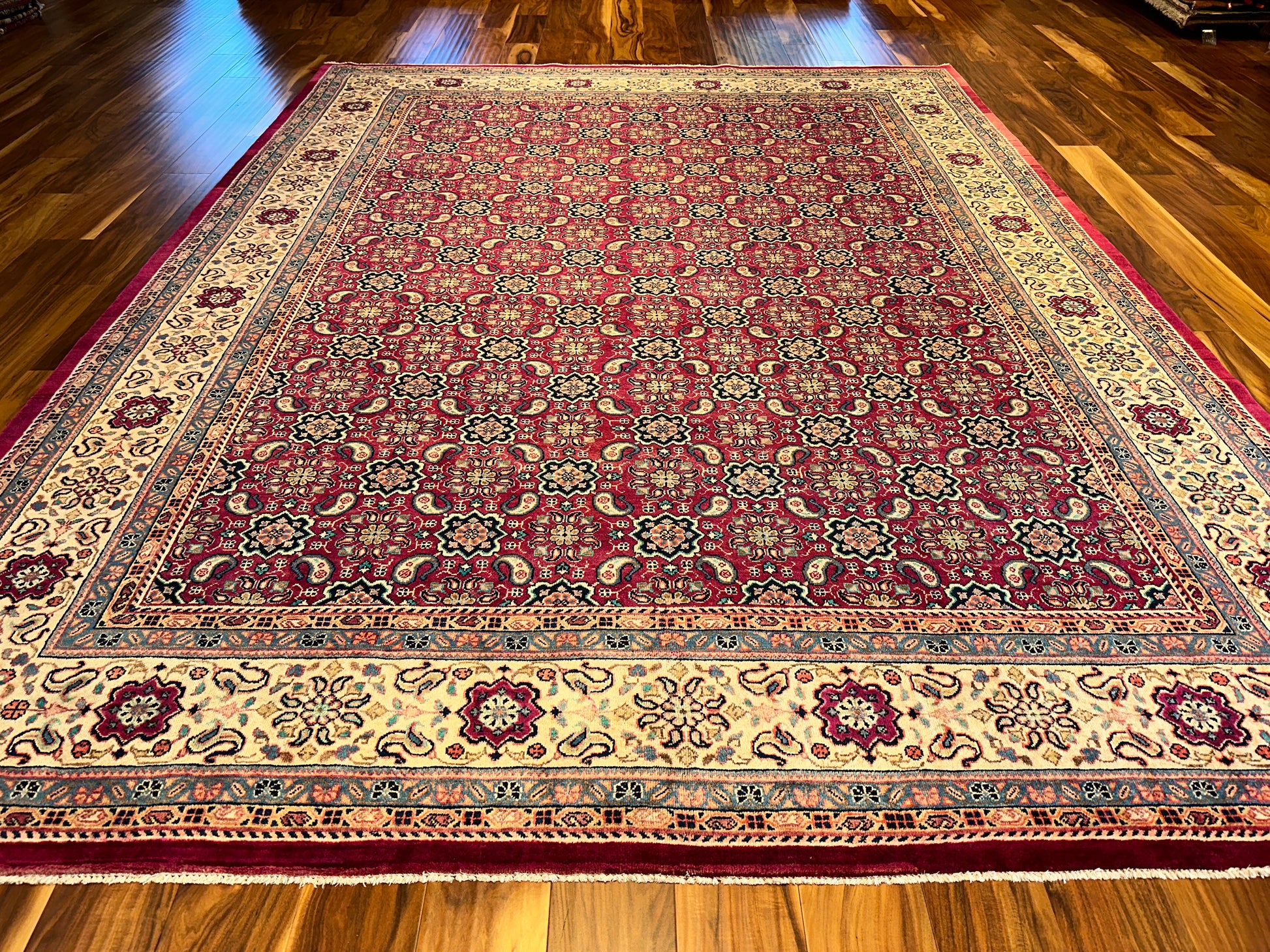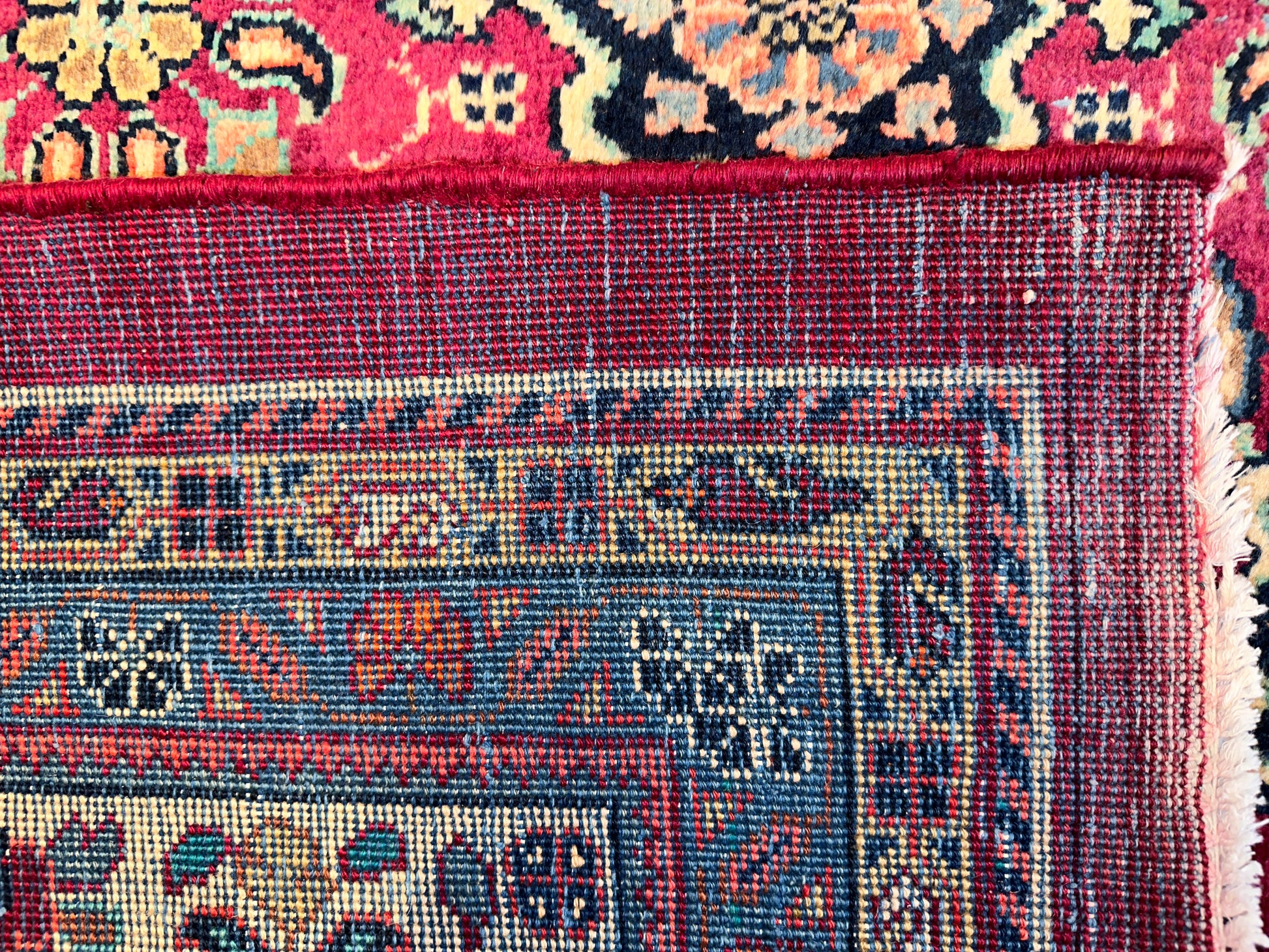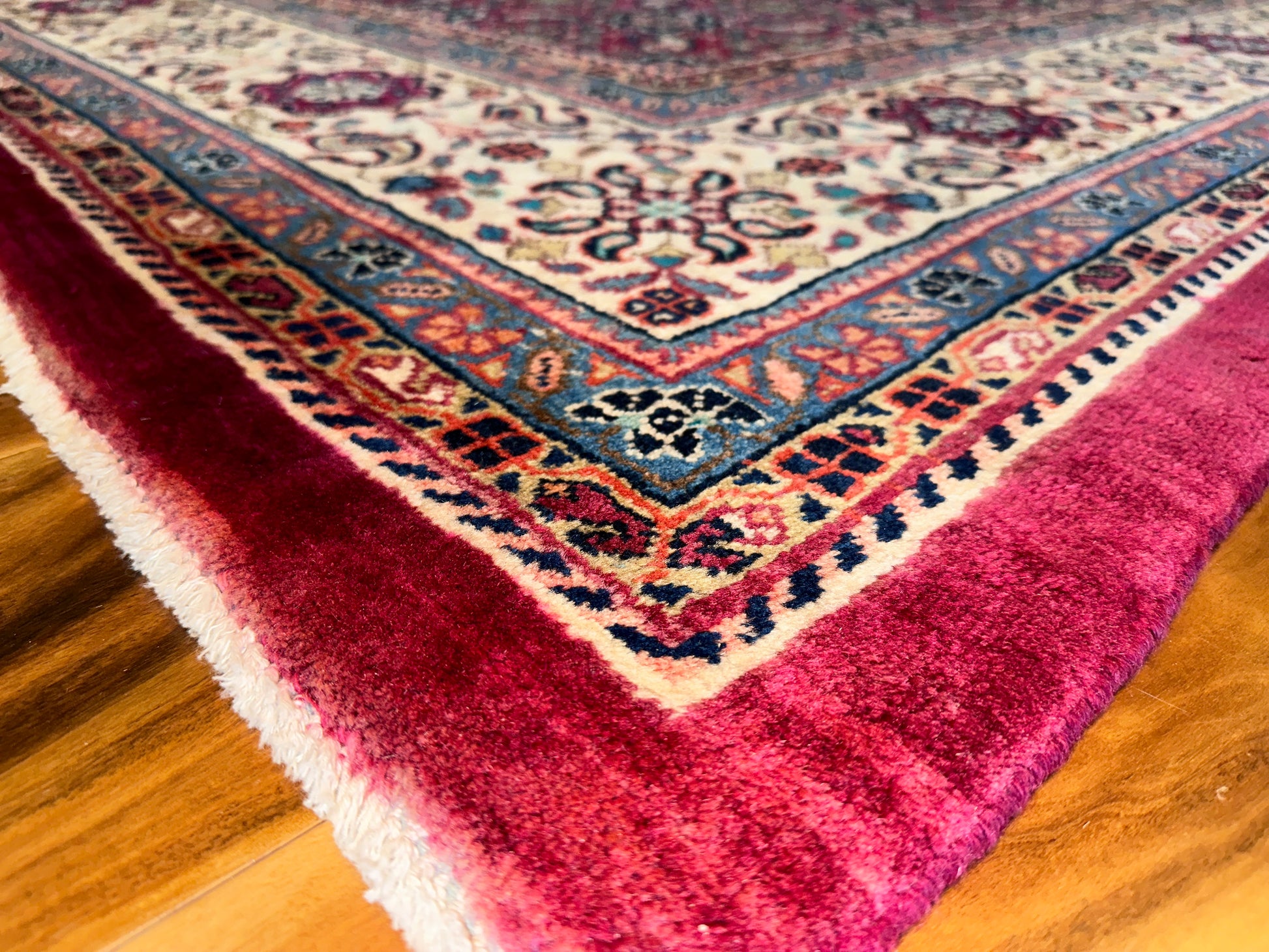 - Design: Allover floral lattice with classic Persian motifs and framed border