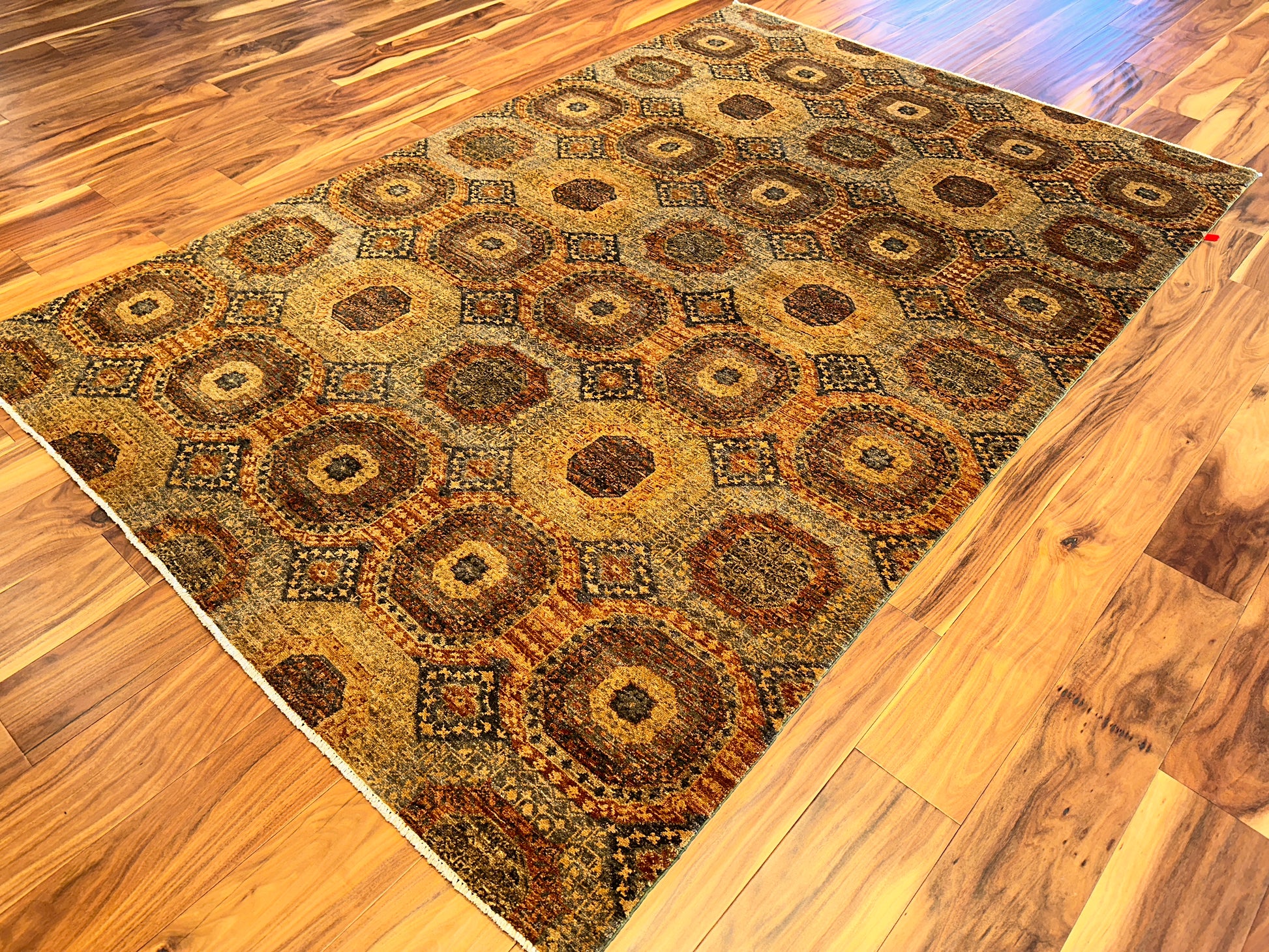 - Design: Repeating octagonal medallions with diamond accents