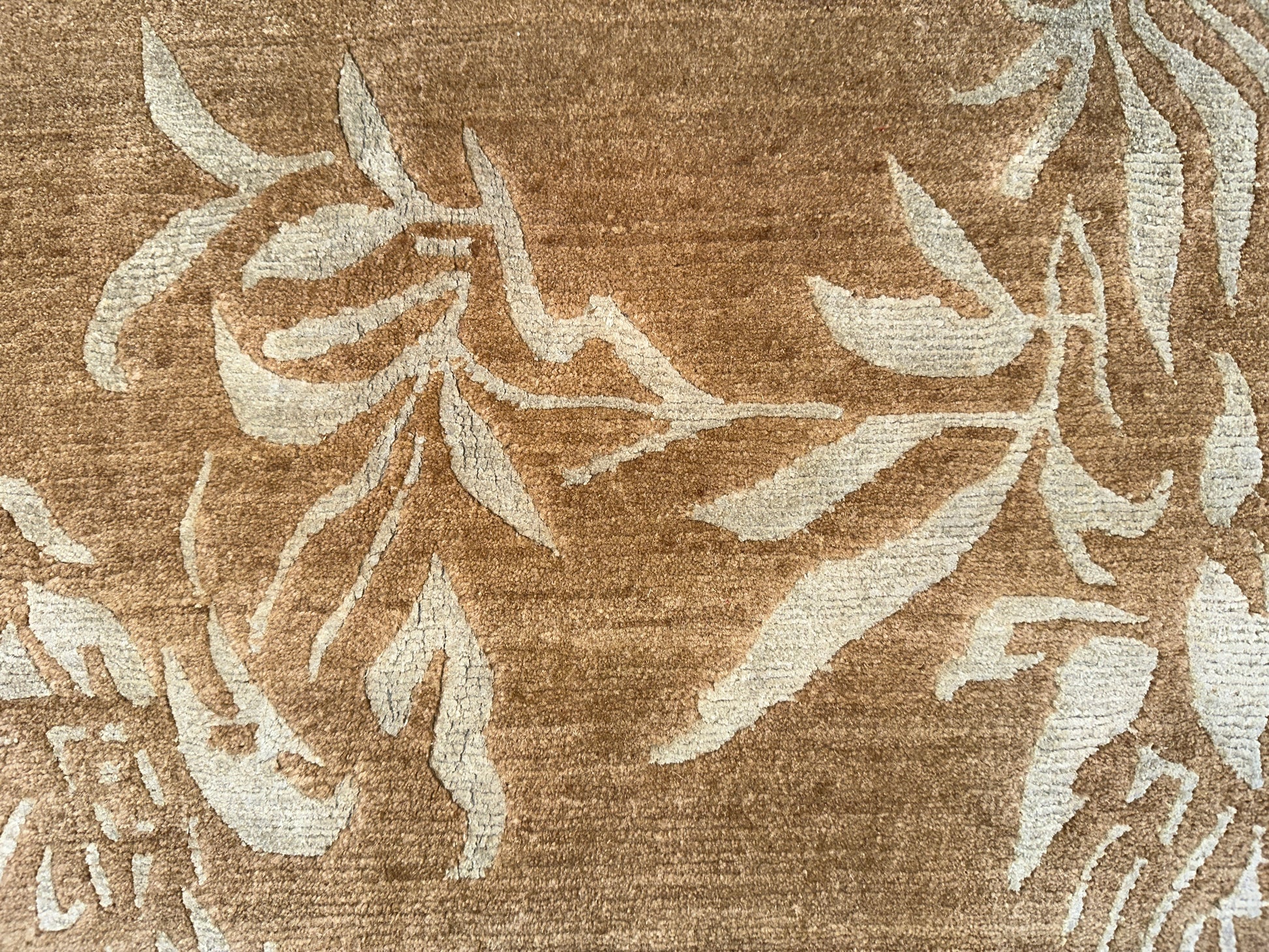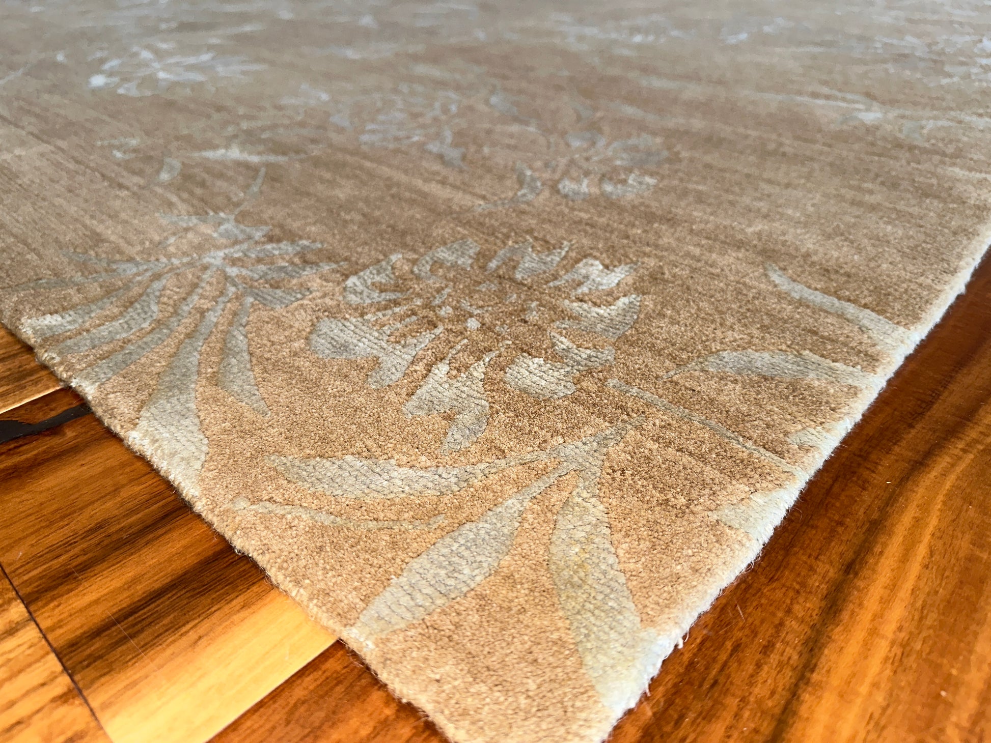 Softly luminous and quietly elegant, this rug offers a gentle floral whisper over a warm golden-brown backdrop. The pattern, rendered in a lighter tone, appears almost etched into the surface—subtle and serene. Its understated beauty makes it a graceful addition to spaces where calm and refinement are key.