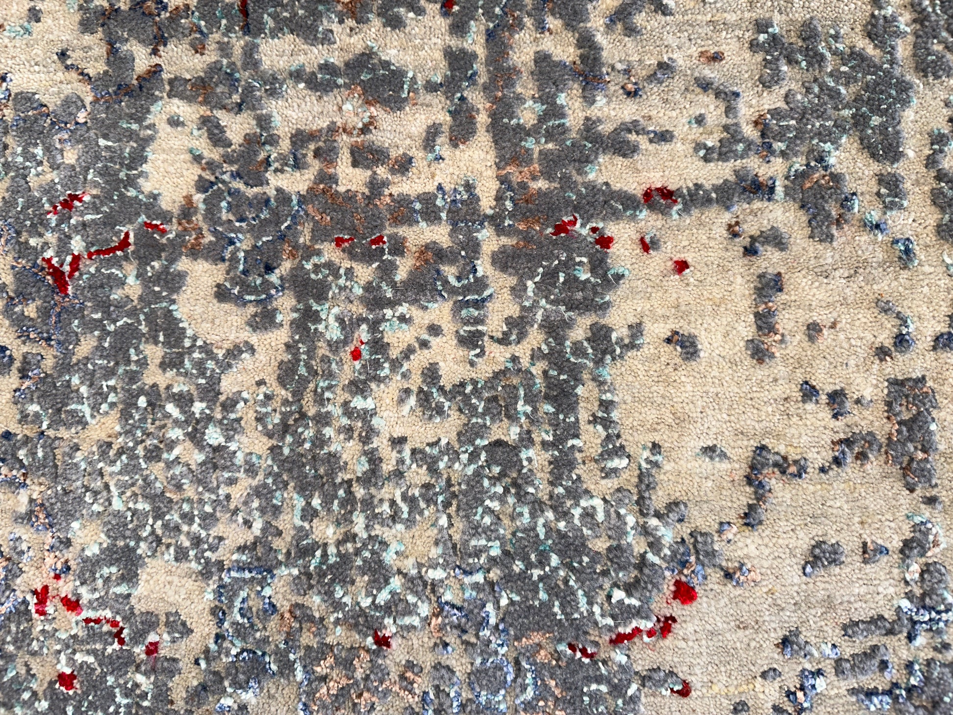 - Design: Distressed abstract pattern with hints of traditional motifs
