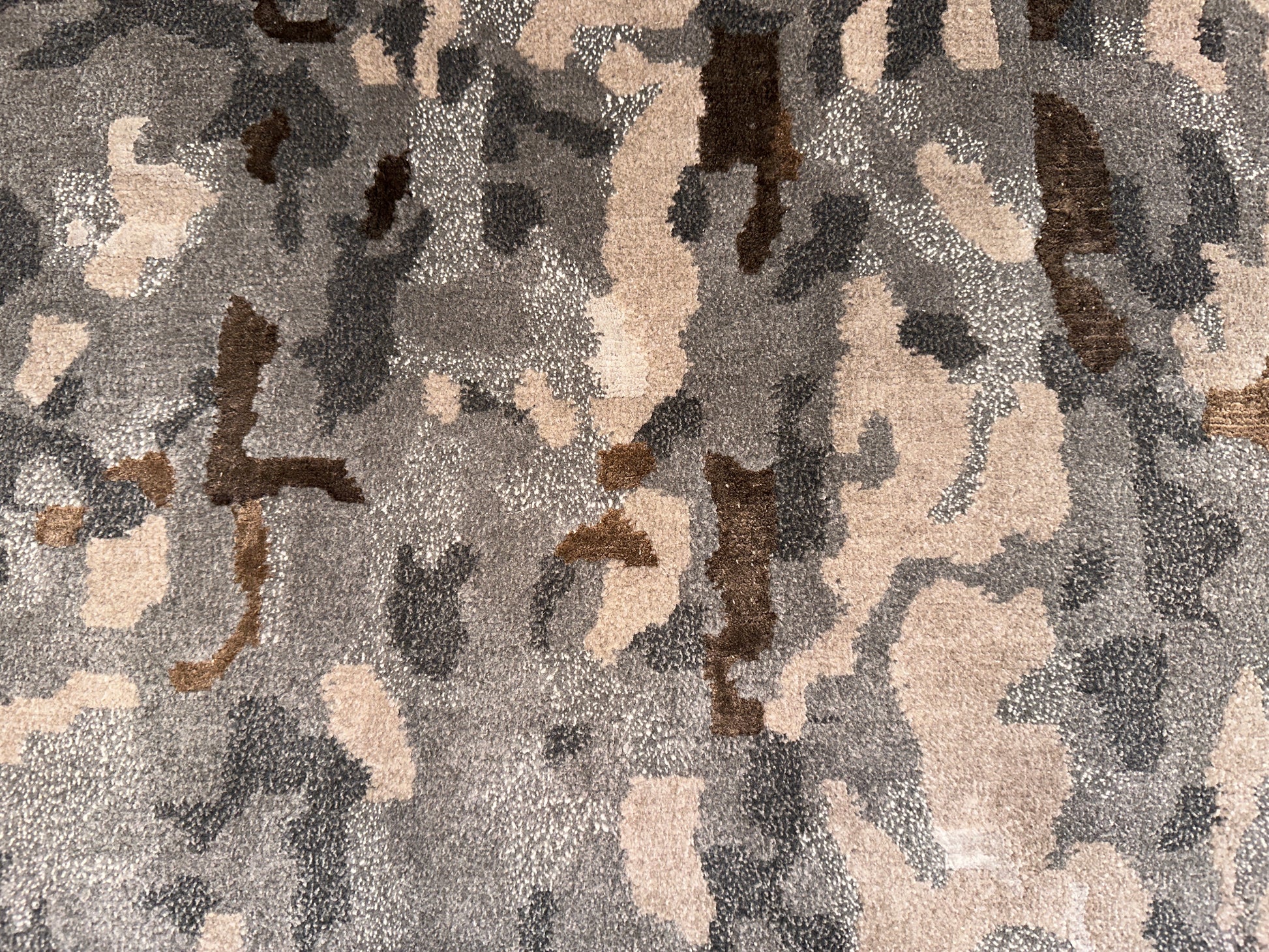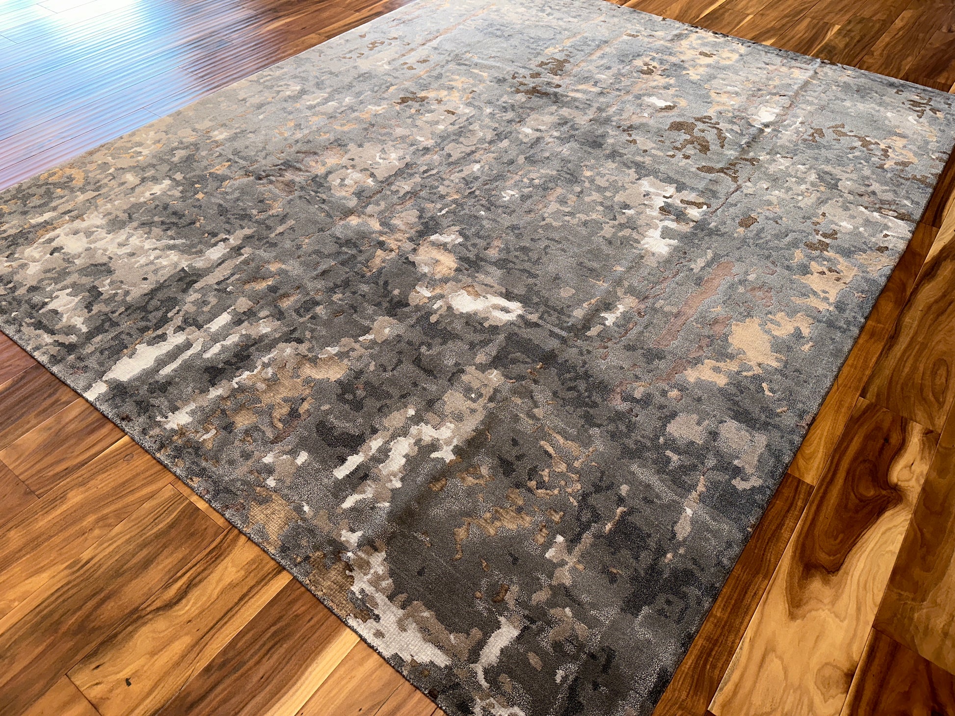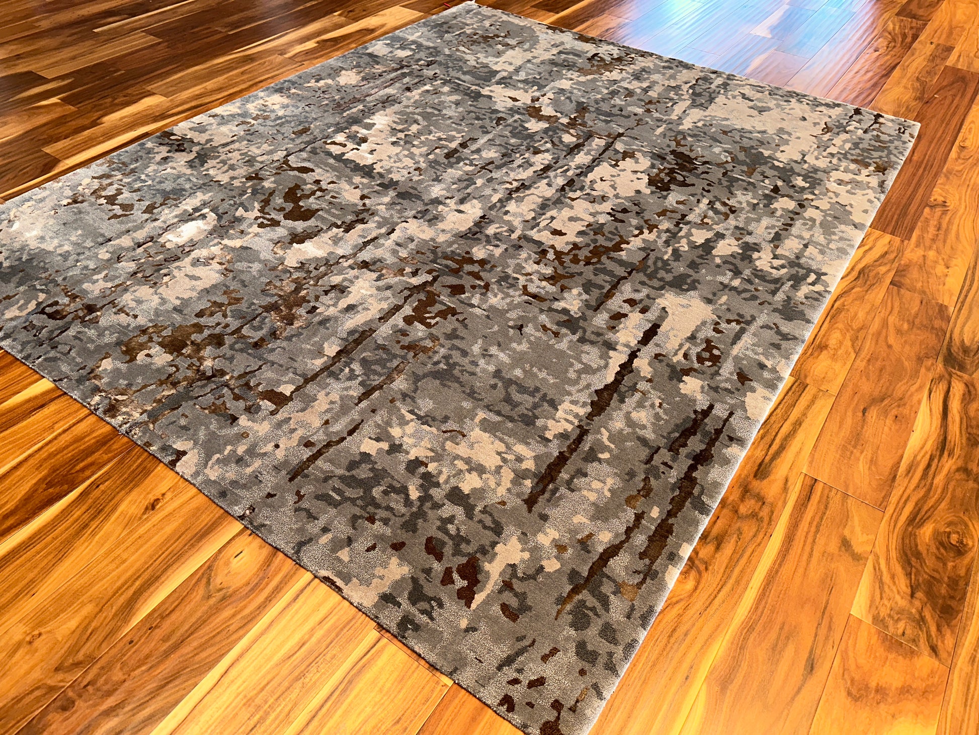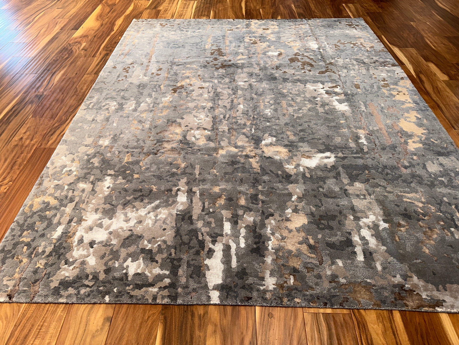 Softly textured and rich in depth, this rug evokes the feel of worn stone and weathered earth. Its abstract composition blends earthy browns, gentle grays, and hints of ivory, creating a grounded, organic presence that warms a space with understated elegance.