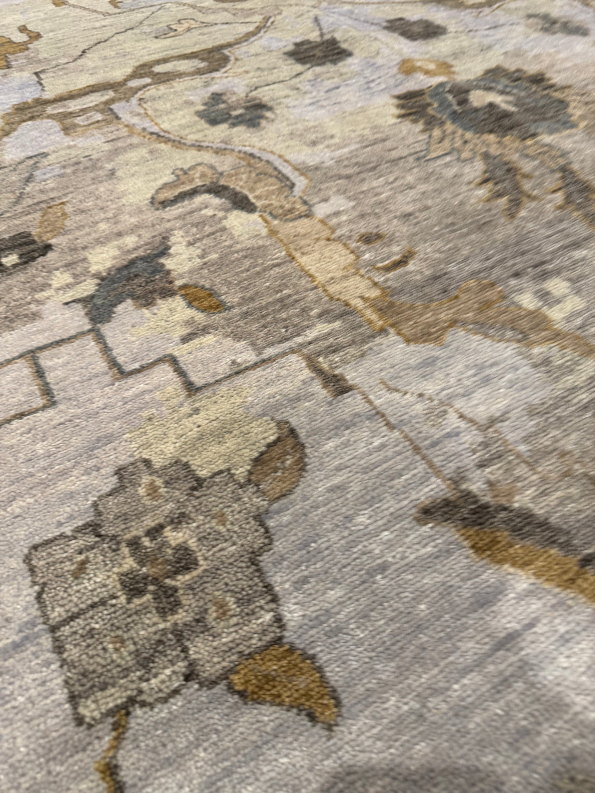 This exquisite Modern Serapi rug blends traditional Persian design with contemporary elegance. Its luxurious wool construction promises longevity and comfort. Dominated by earthy hues, this rug features classic medallions and floral motifs, with a distressed finish adding a touch of modernity. It's perfect for adding warmth and sophistication to any living space.