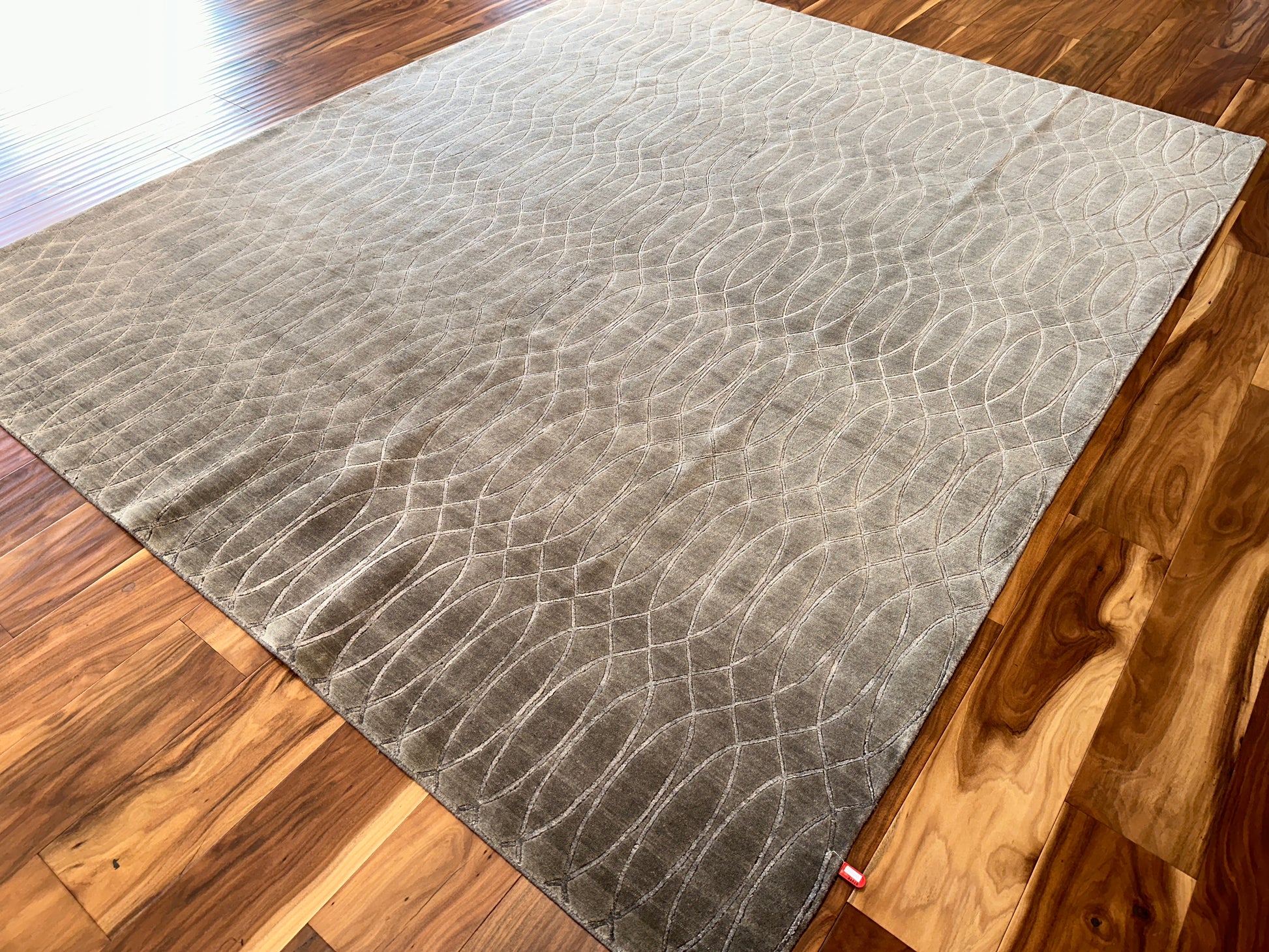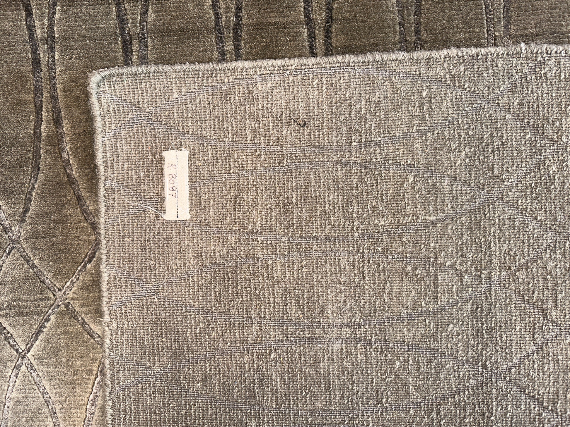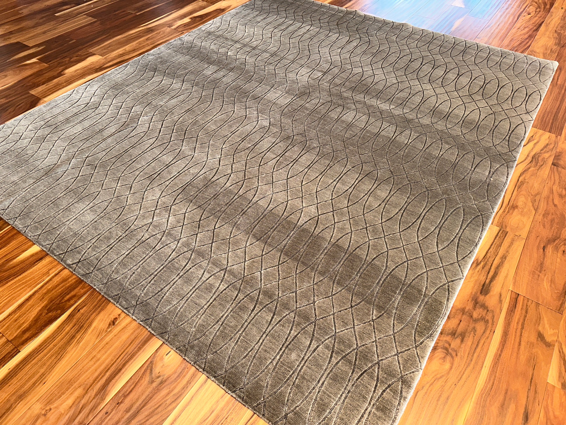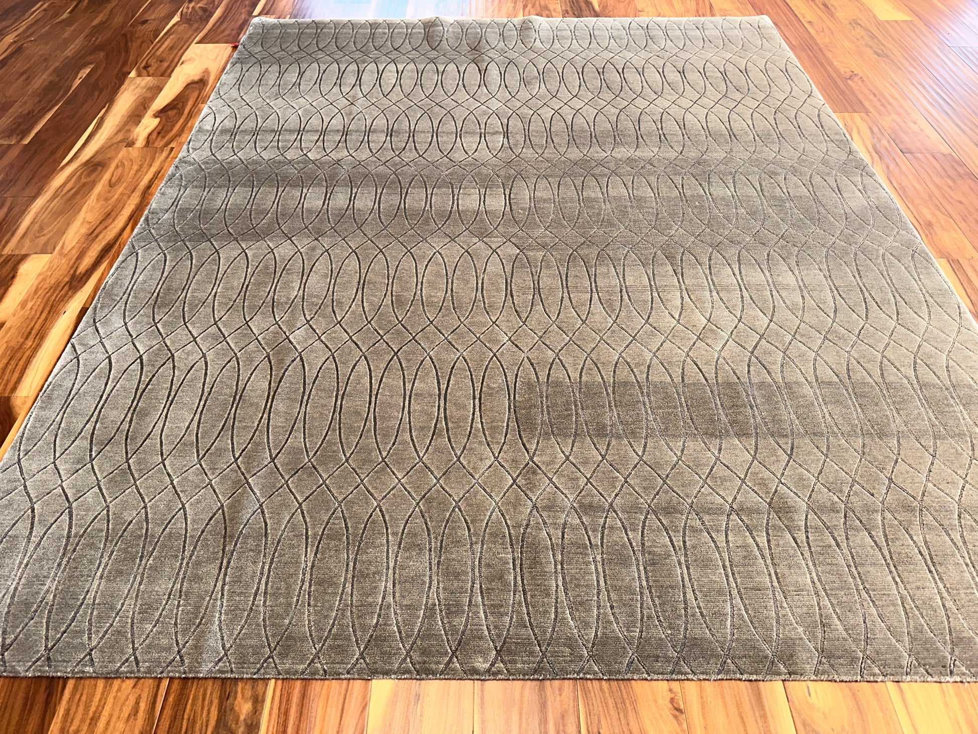A serene play of texture and tone defines this sophisticated rug, where a rhythmic pattern of interlocking ovals emerges subtly from a smoky gray base. Hand-knotted with care, it offers a refined, tonal elegance that gently reflects the light and enriches the room without overwhelming it. The simplicity of the design makes it a seamless addition to both classic and contemporary interiors.
