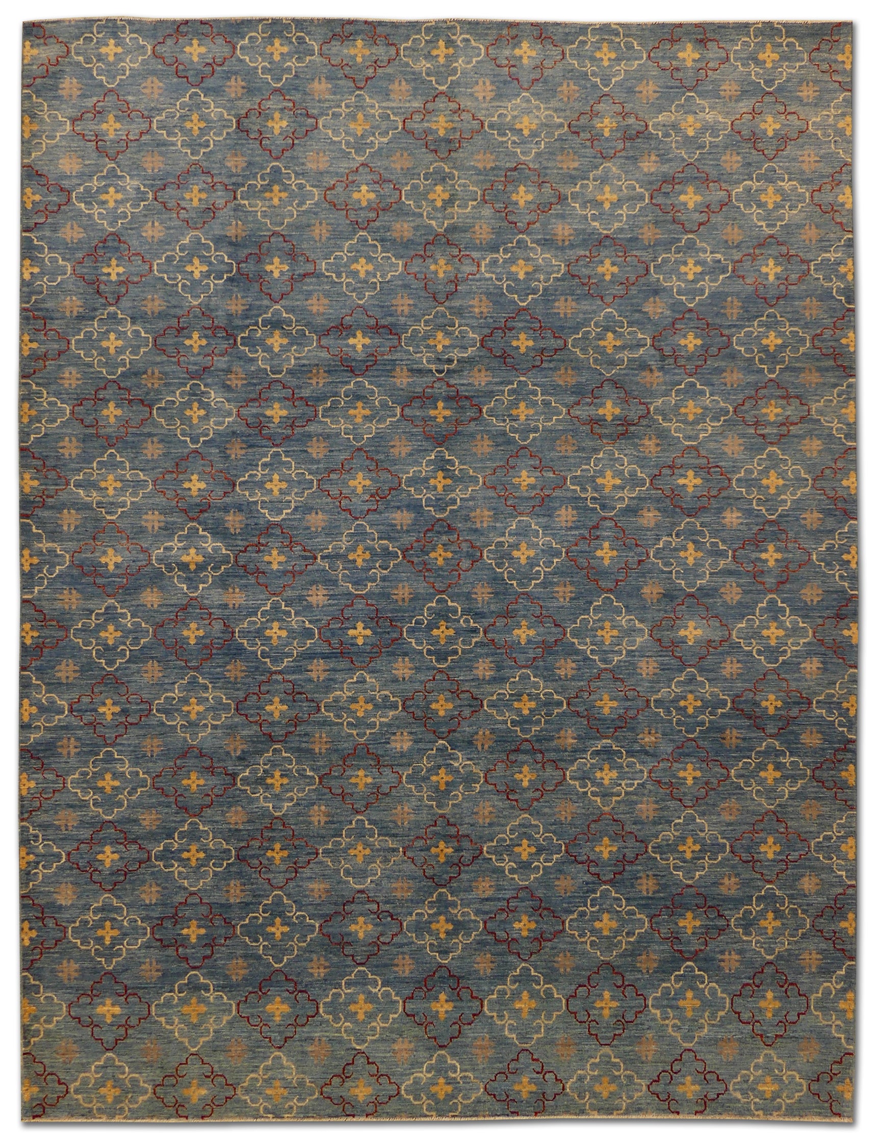 This Modern Gabbeh rug showcases a sophisticated navy blue backdrop adorned with an intricate pattern of gold and grey motifs, adding a touch of elegance to any room. Its plush wool construction ensures durability and comfort underfoot, making it an ideal choice for high-traffic areas. The contemporary design blends traditional Gabbeh elements with modern aesthetics, offering a versatile option for both classic and contemporary interiors.