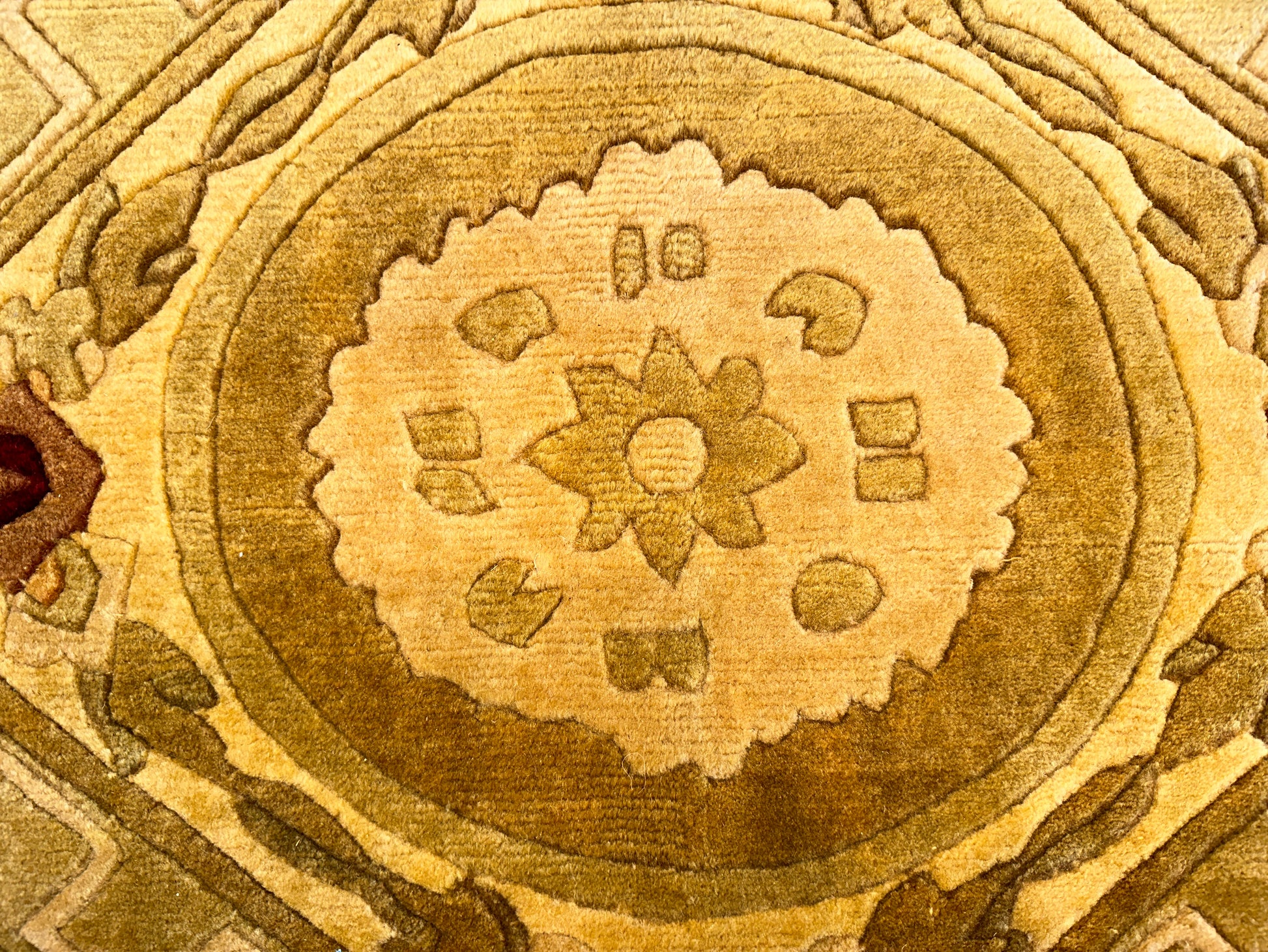 - Design: Central diamond medallion with acanthus scrolls and classical border panels