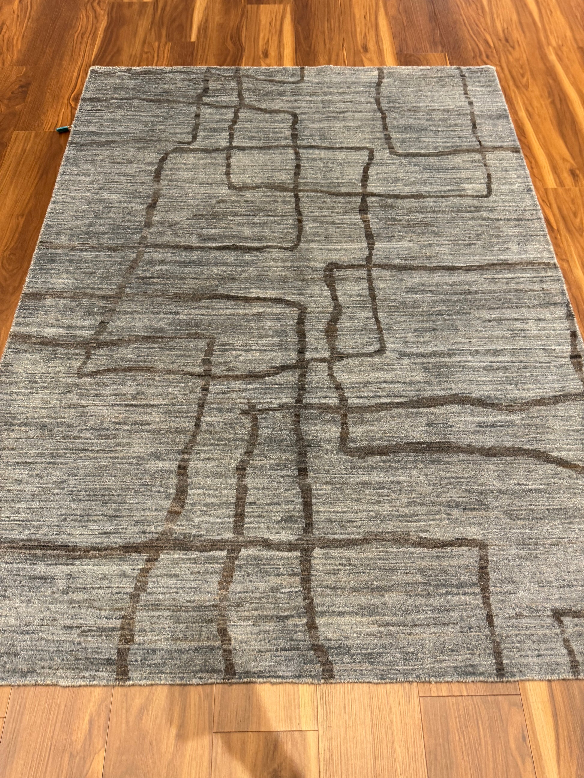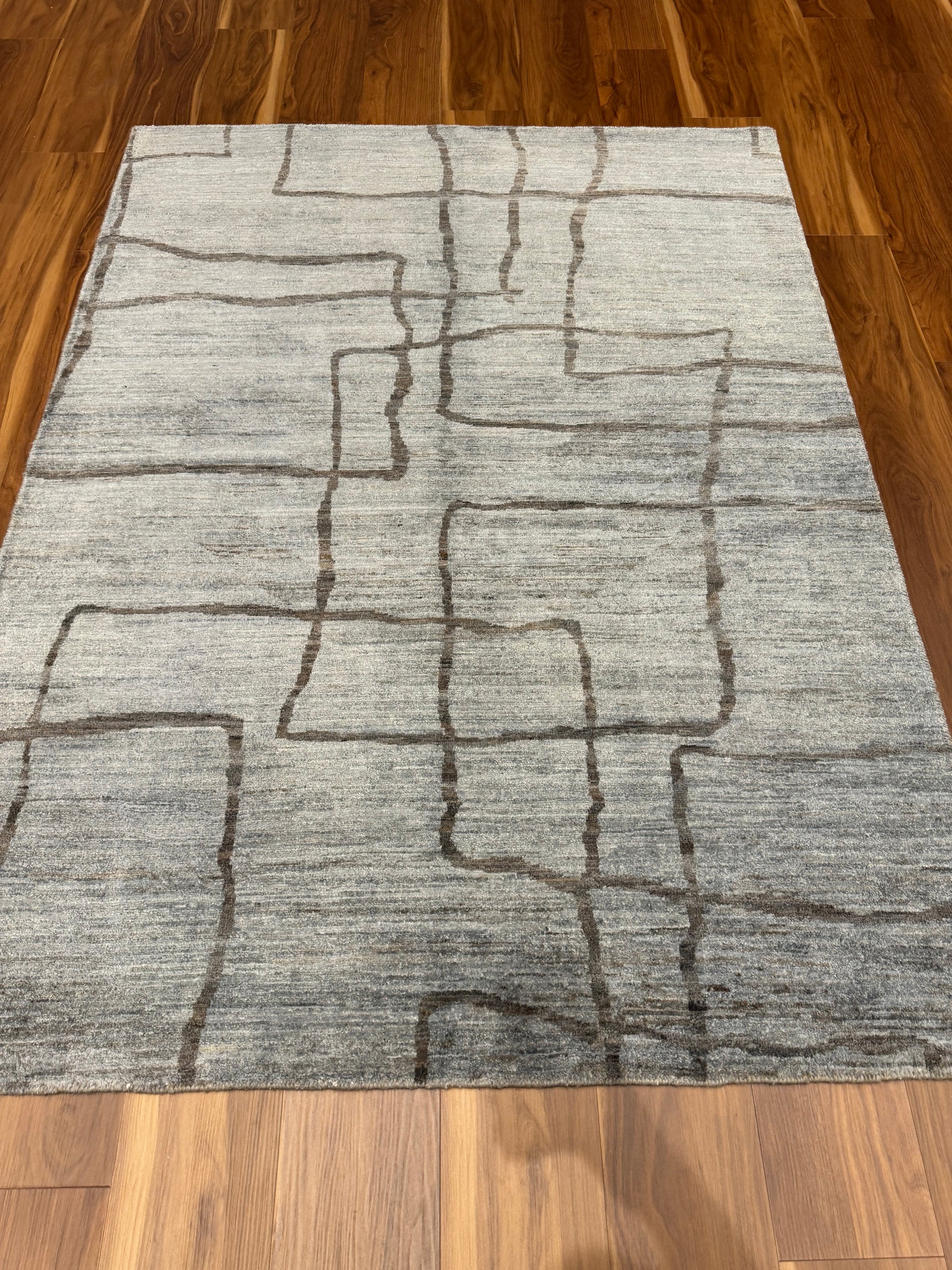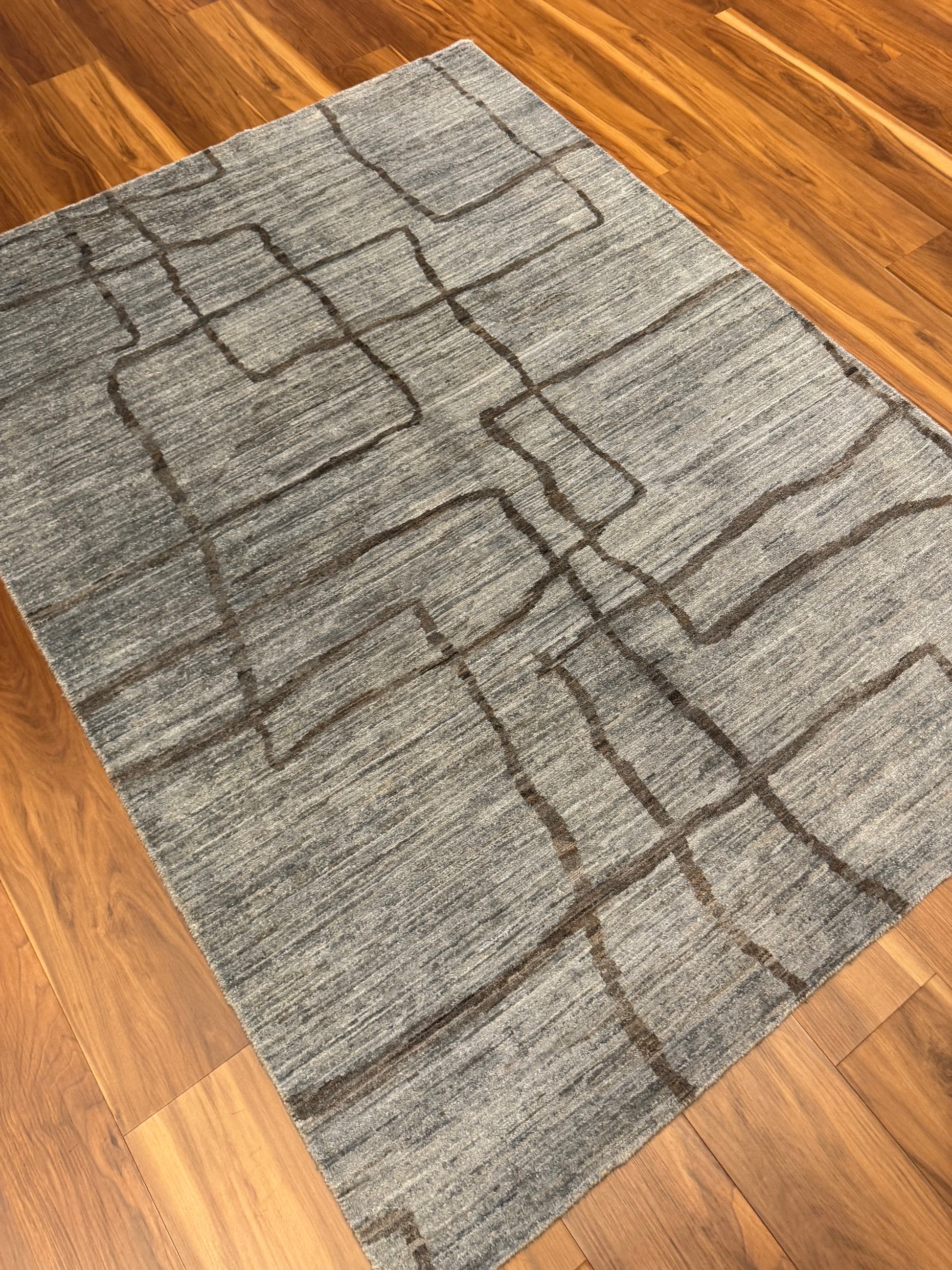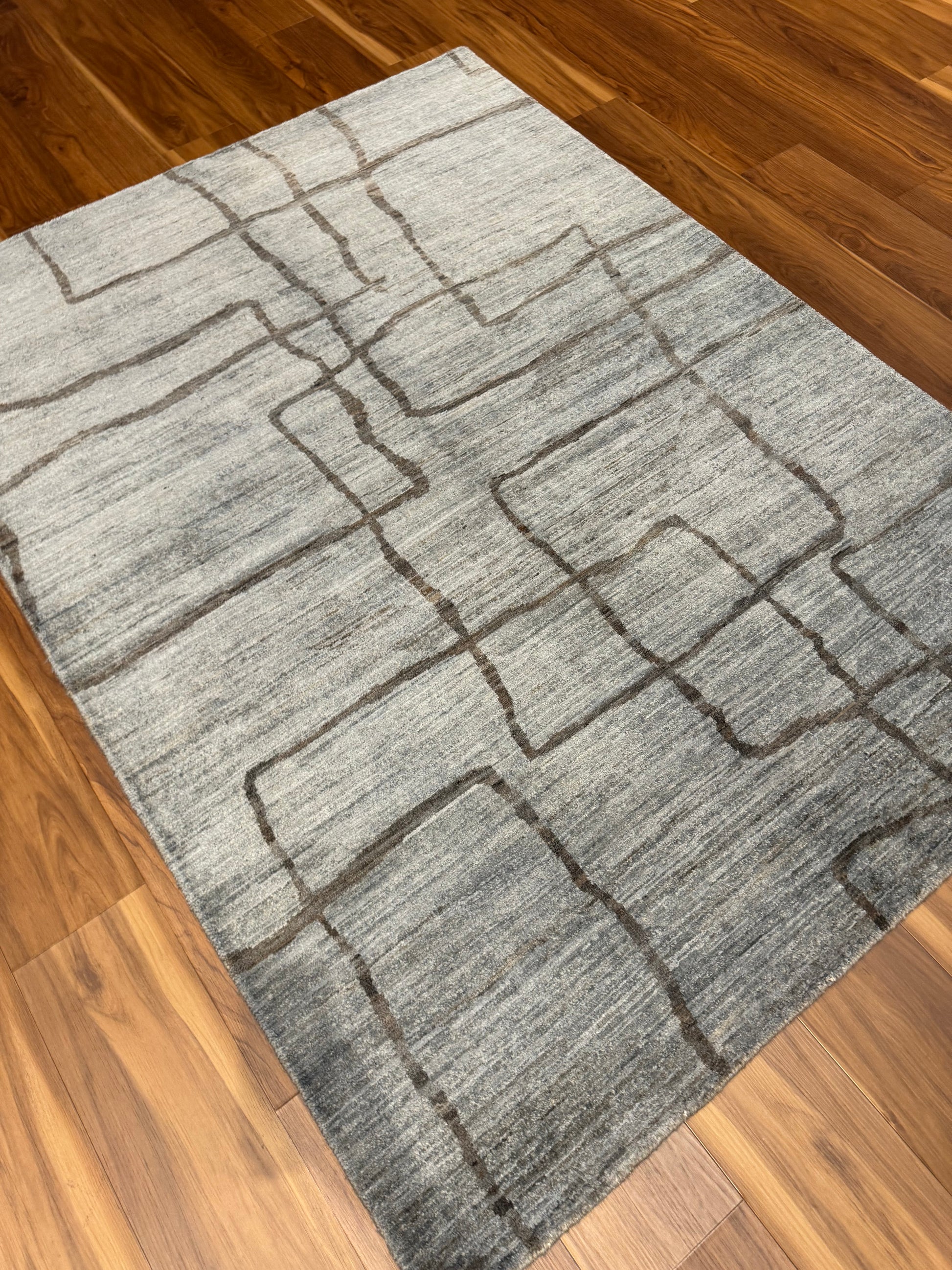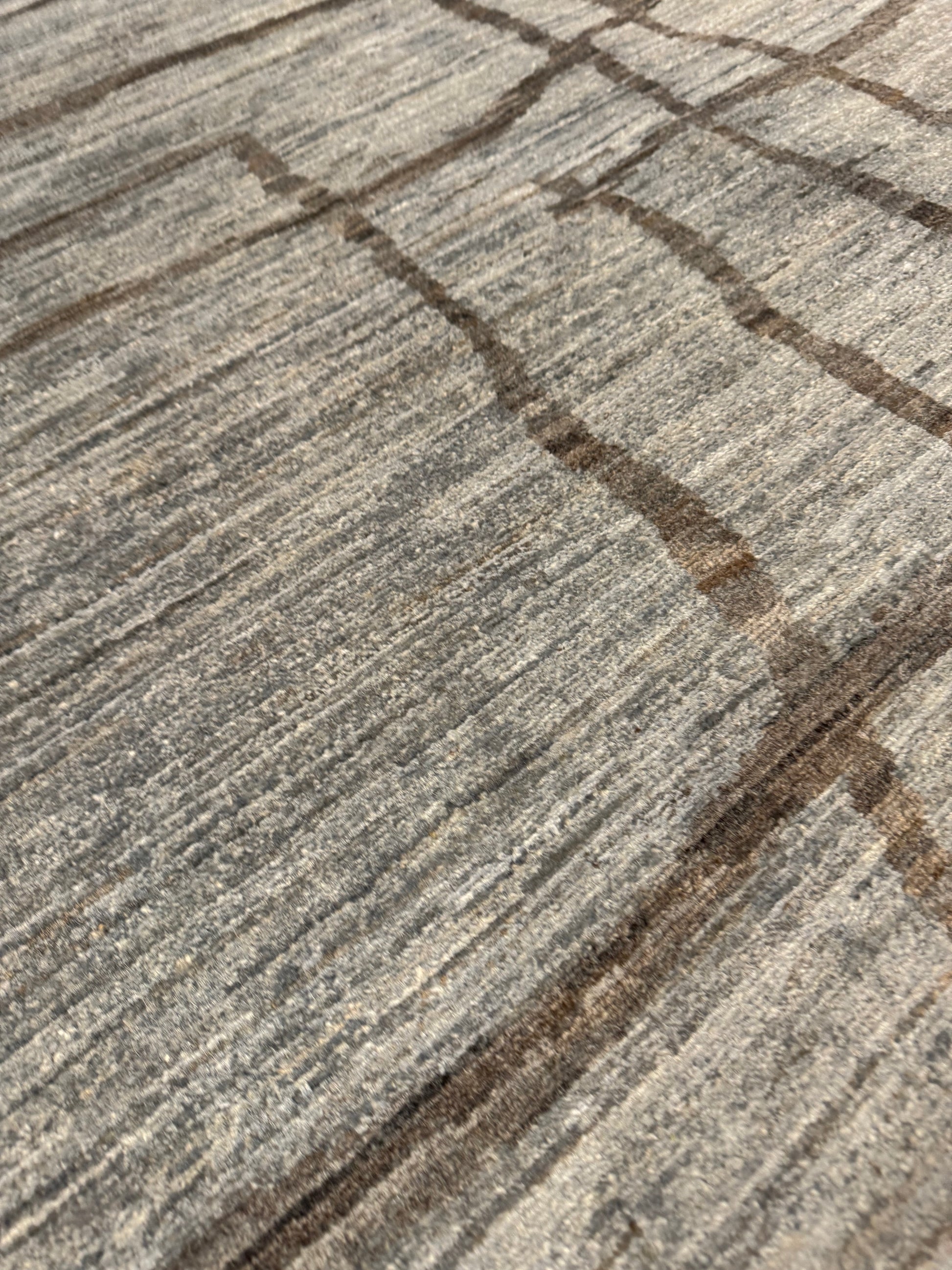 This exquisite piece of modern artistry is handcrafted from the finest wool, boasting an elegant blend of beige and brown hues. The rug features an abstract array of geometric lines that evoke a sense of contemporary sophistication. Its plush texture and durable construction make it a luxurious yet practical choice for any living space. The neutral tones ensure this rug will complement a variety of decors, bringing a touch of modern charm and warmth to your home.