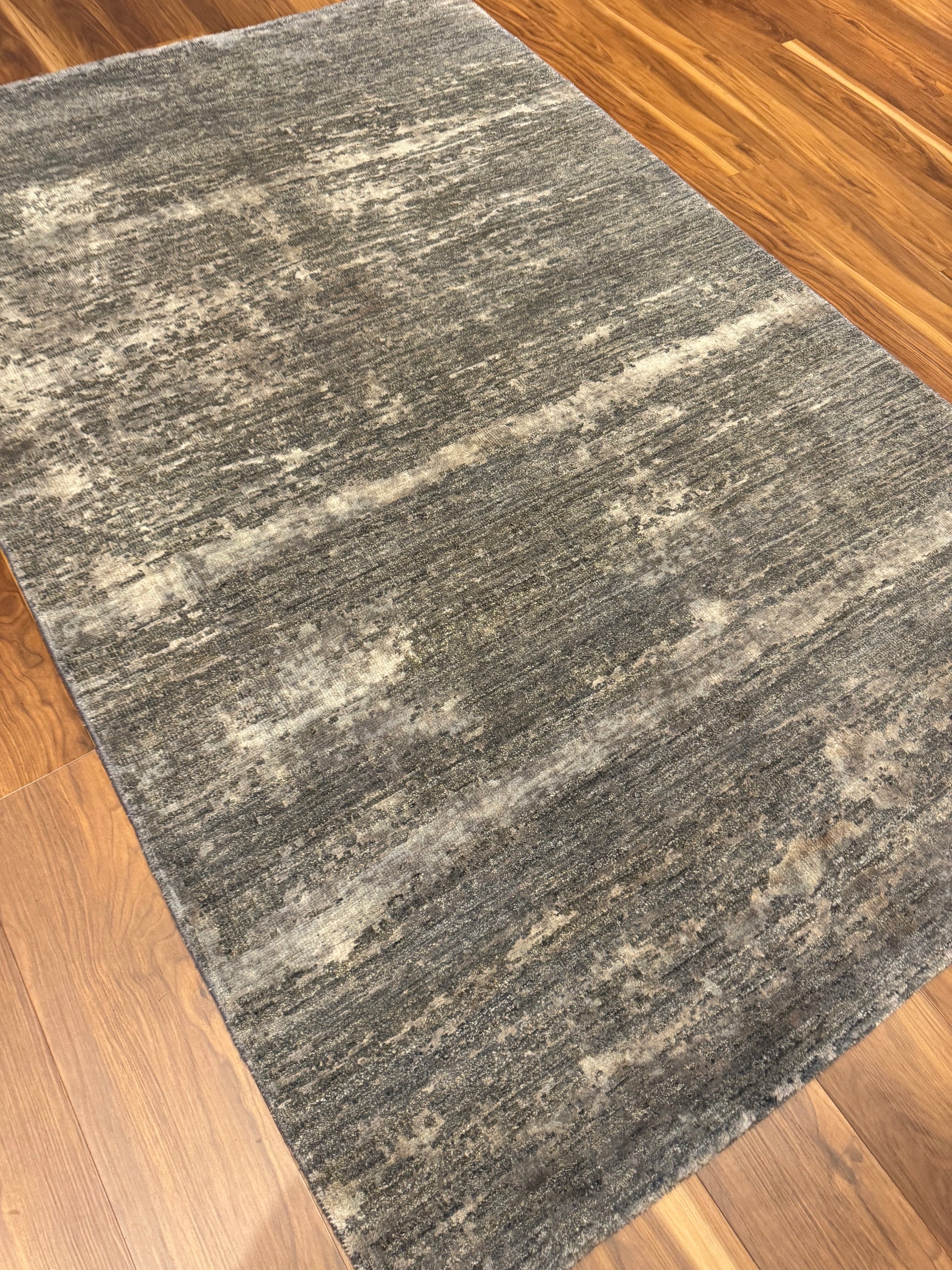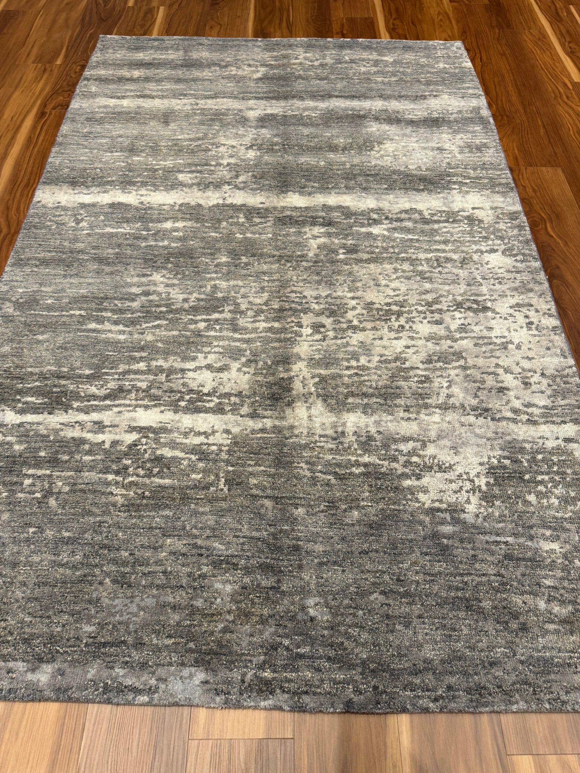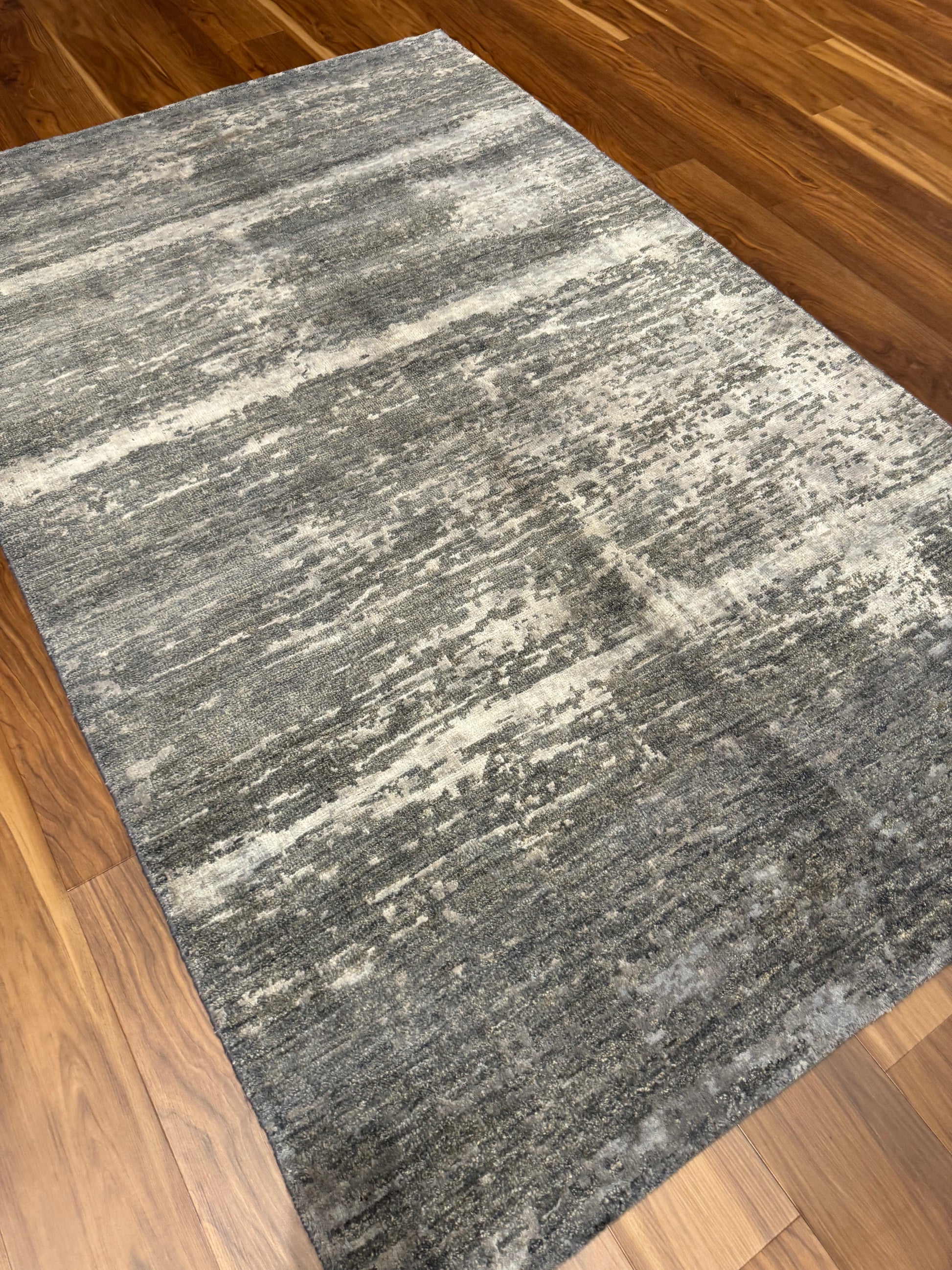 This modern wool rug showcases an elegant play of shadow and light, lending a serene and understated aesthetic to any room. With its soft textural variances that simulate a time-worn patina, it achieves an organic, minimalist feel that complements contemporary spaces. The plush wool fabric ensures durability and comfortable underfoot sensation, perfect for creating a warm and inviting environment.