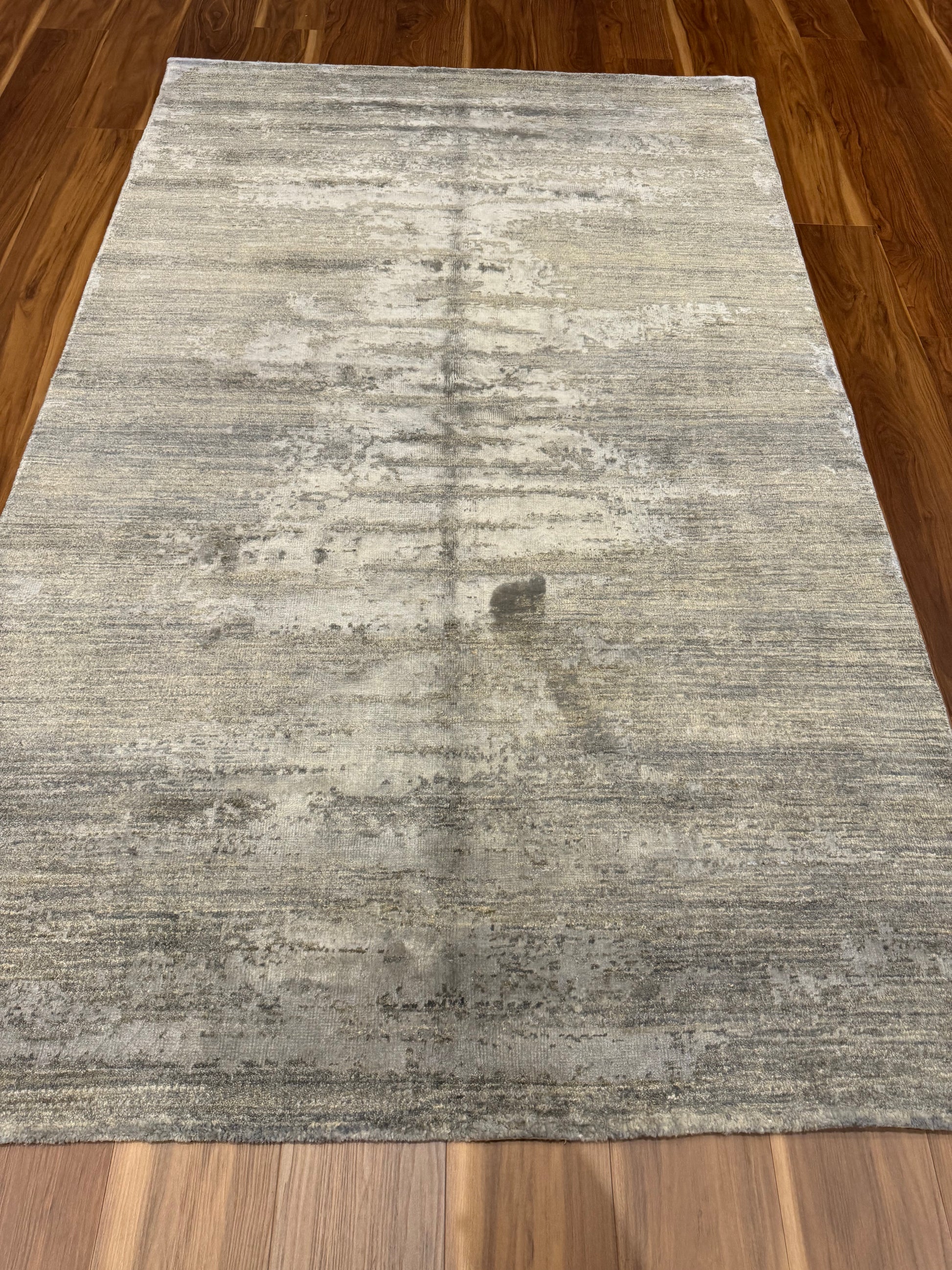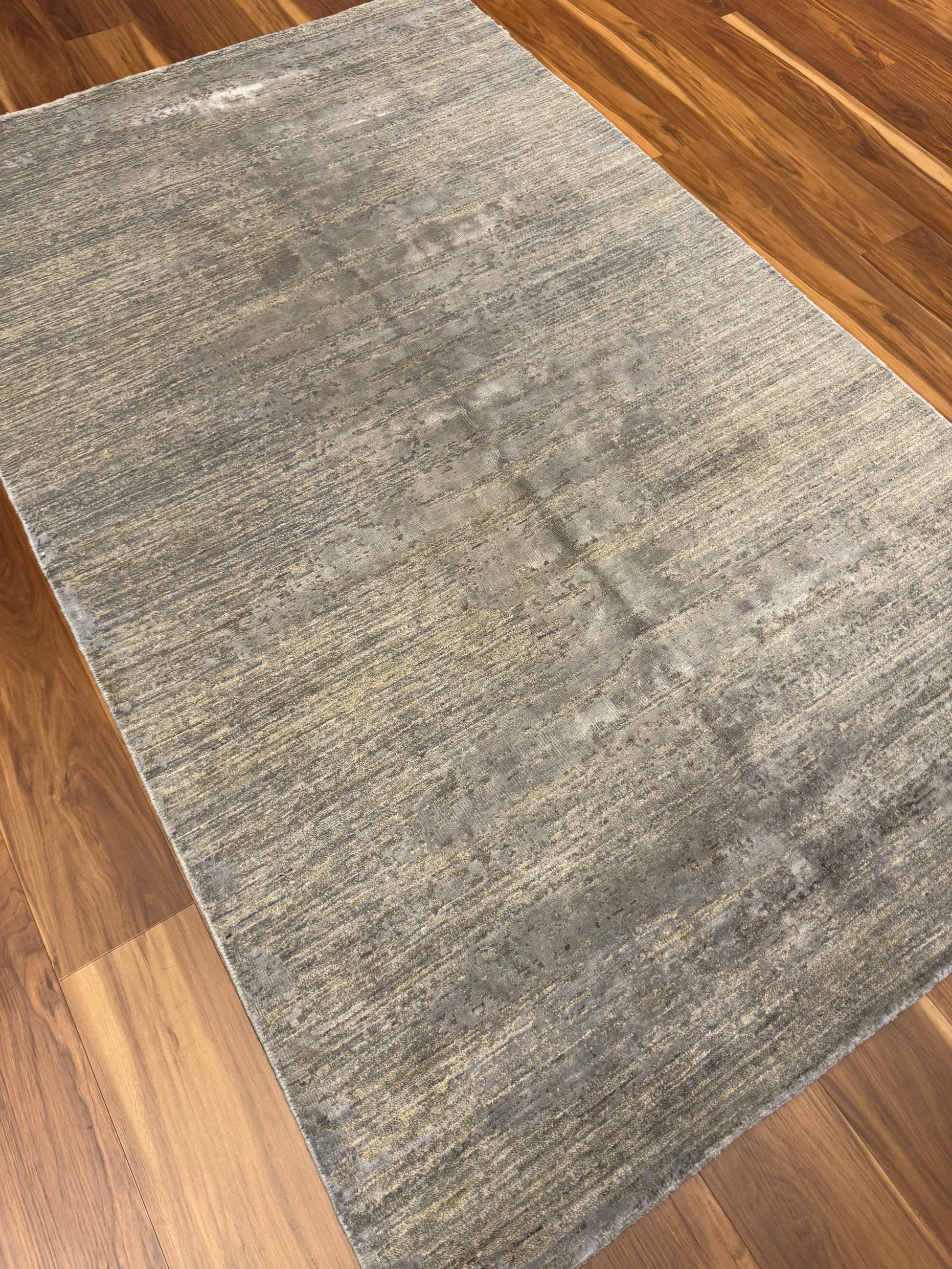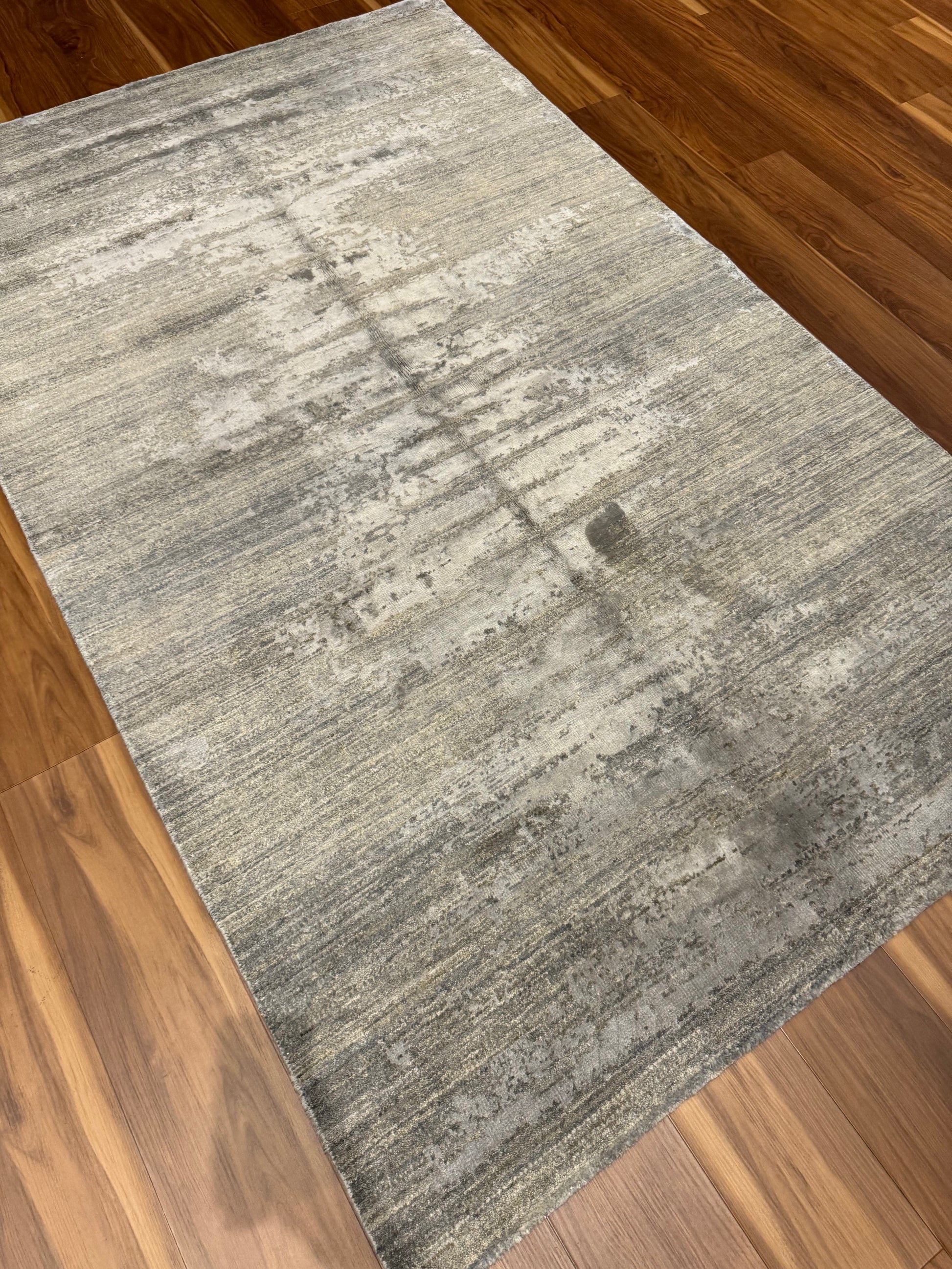 This contemporary rug boasts a minimalist aesthetic with its subtle variations in hue, creating a captivating, yet understated, visual texture. The high-quality blend of wool and silk fibers offers a touch of luxury underfoot while ensuring durability and comfort. This rug is ideal for modern interiors seeking a blend of sophistication and organic simplicity.