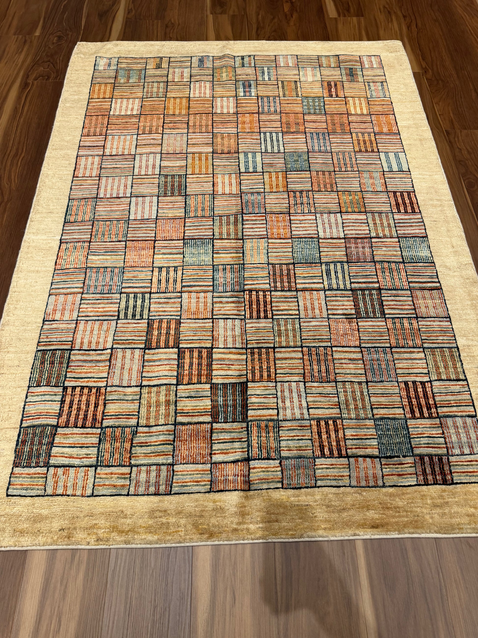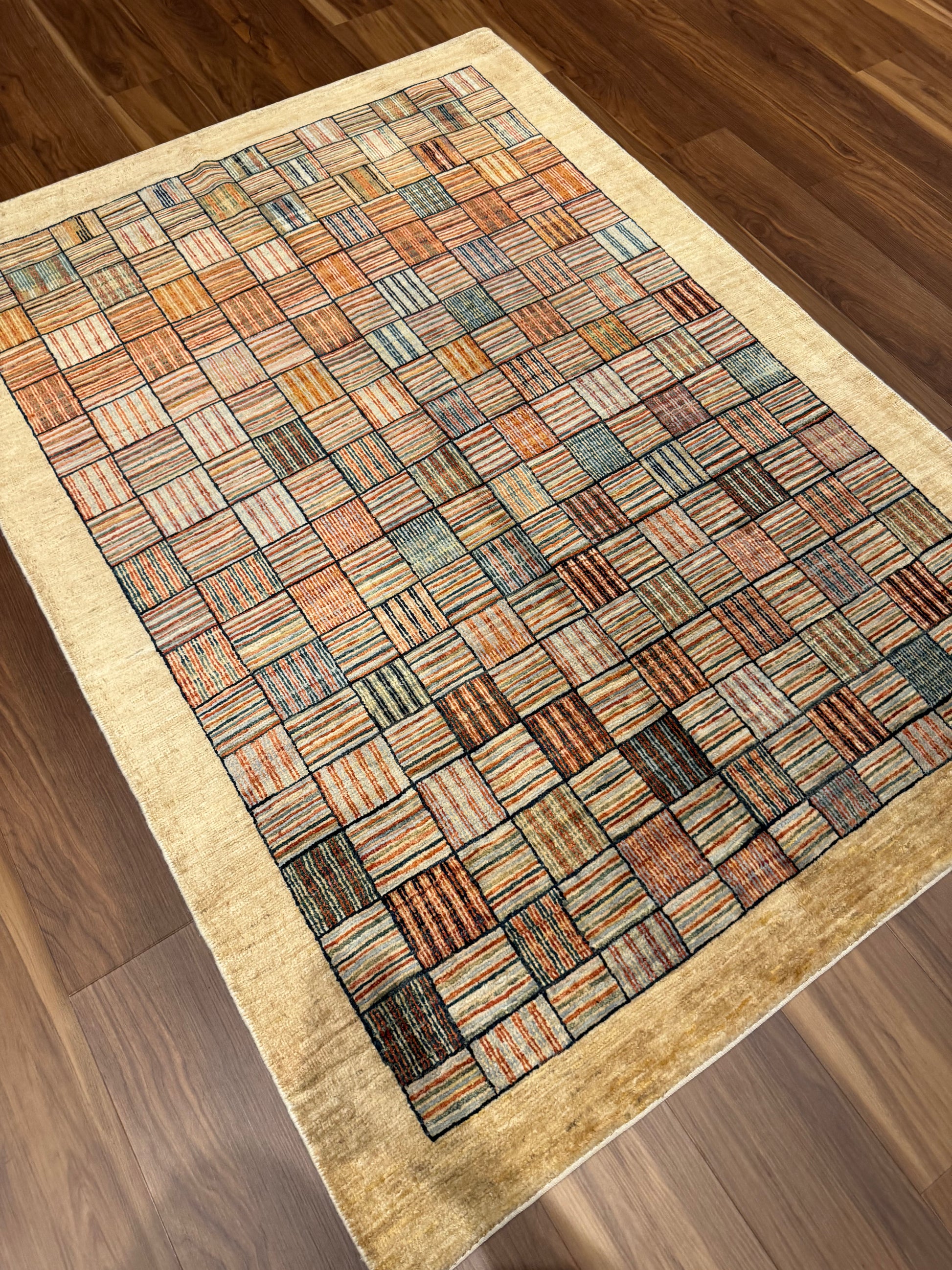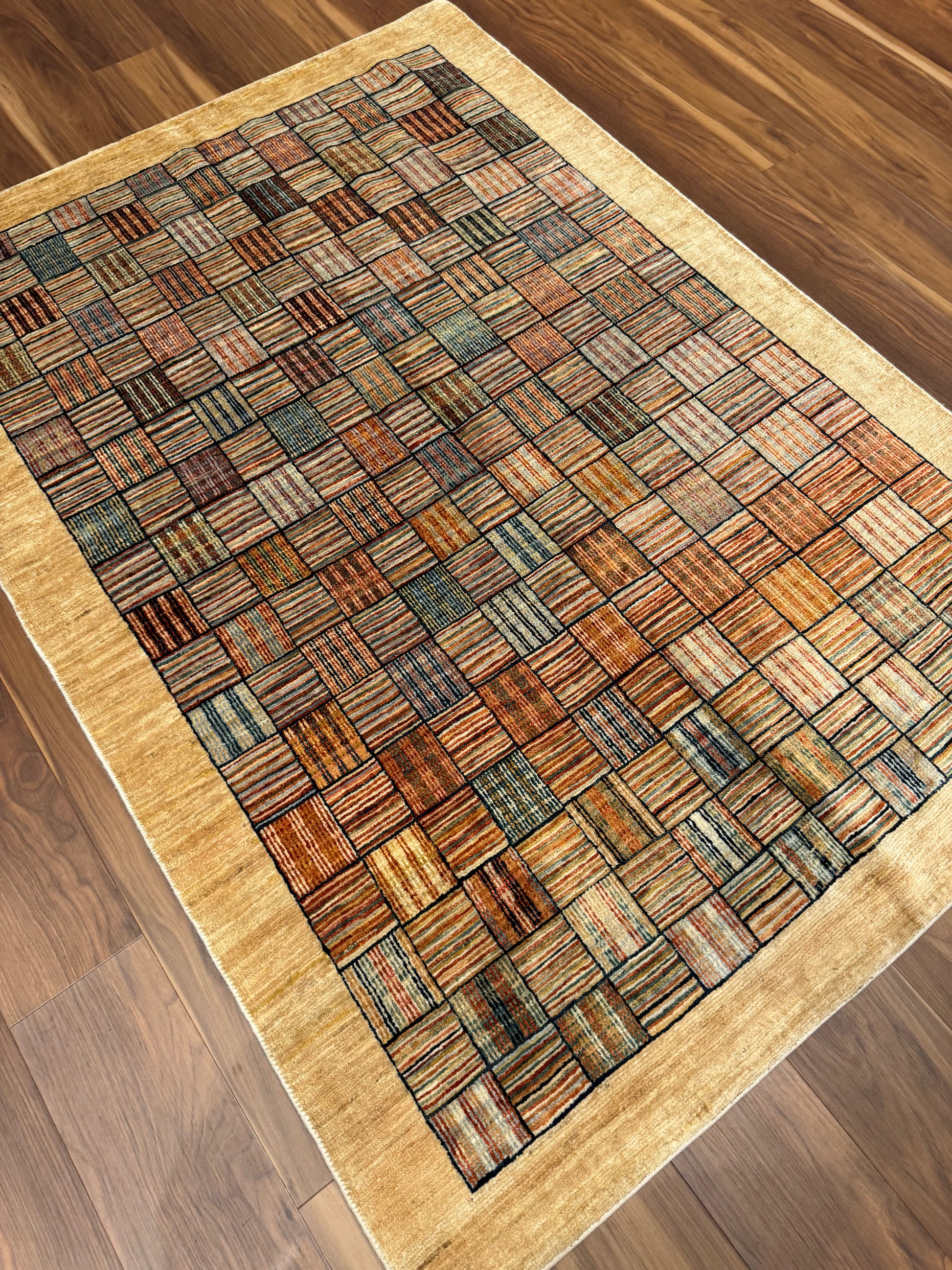This exquisite Modern Wool Rug features a harmonious blend of earthly tones, creating a cozy, inviting atmosphere in any space. Its meticulously designed geometric pattern echoes contemporary aesthetics, while the plush wool material ensures both comfort and durability. A perfect statement piece for those who cherish modern design with a touch of warmth.