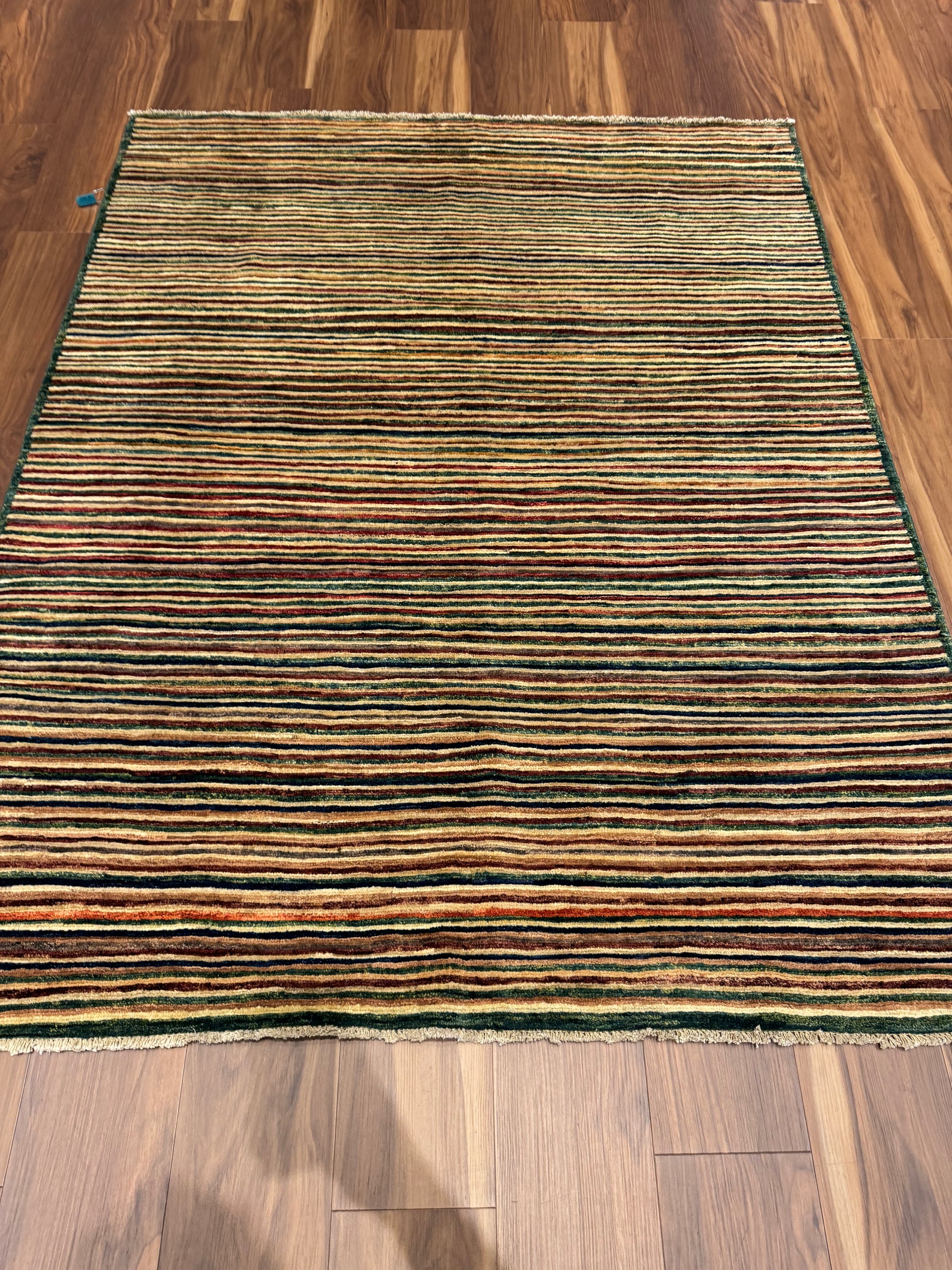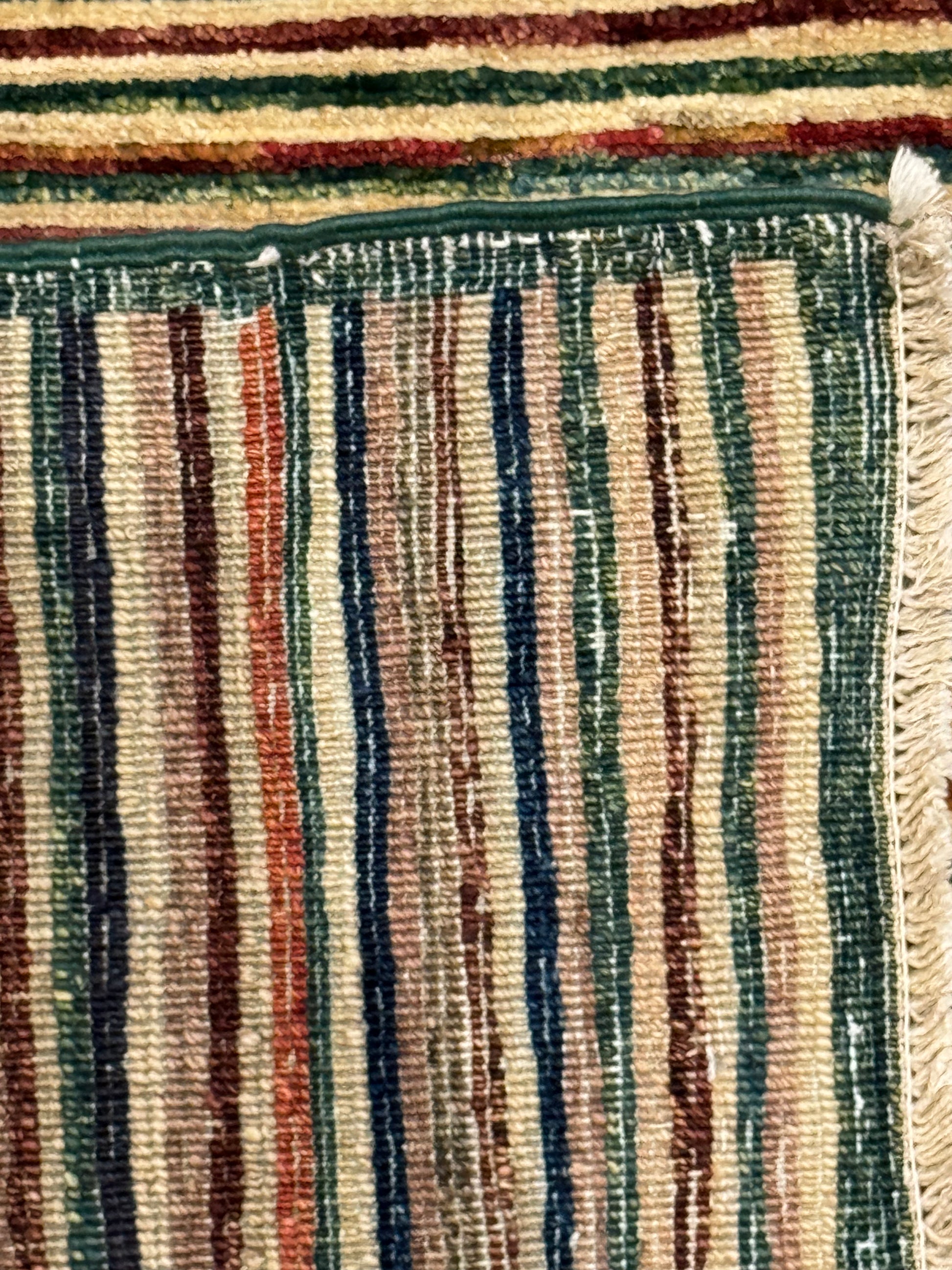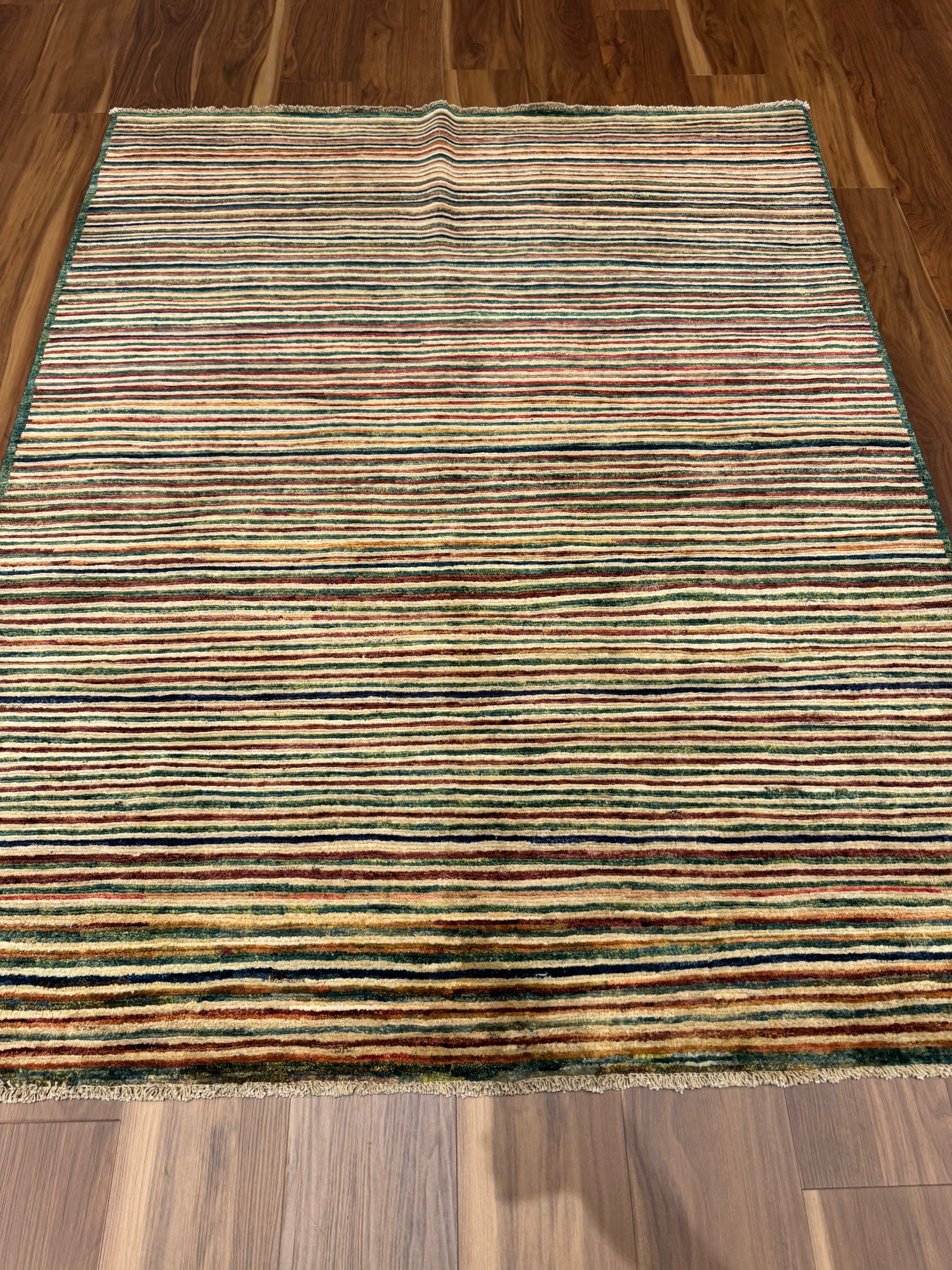 This modern wool rug presents a multicolor striped pattern that balances subtle elegance with contemporary design. The linear motif evokes a sense of motion, with the rich earth tones creating a warm, inviting atmosphere. Handcrafted from the highest quality wool, it offers both comfort and durability, making it an exceptional choice for any modern living space.