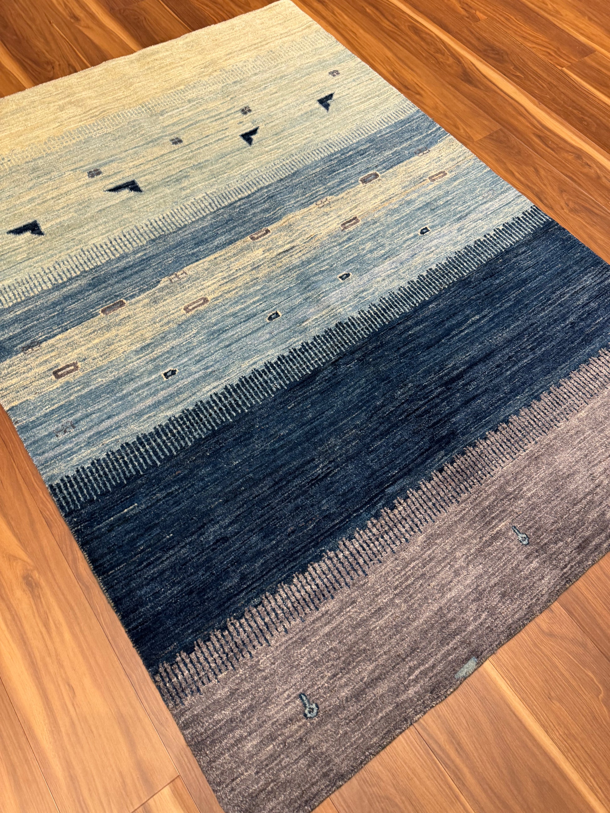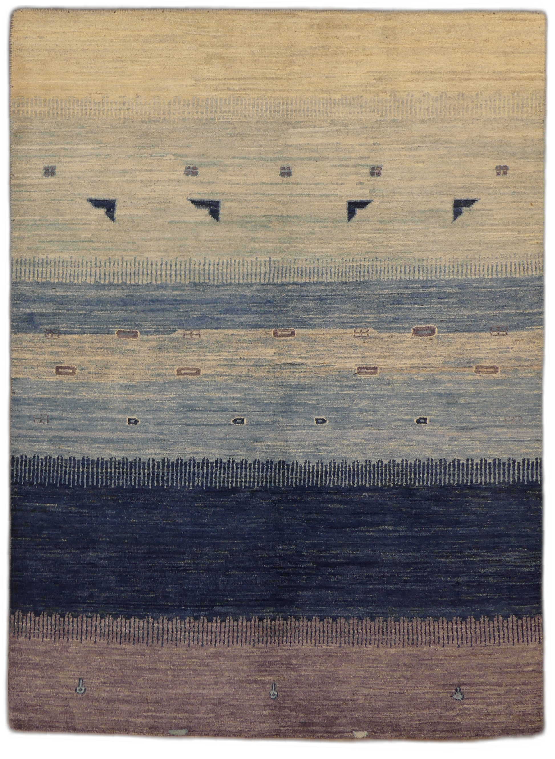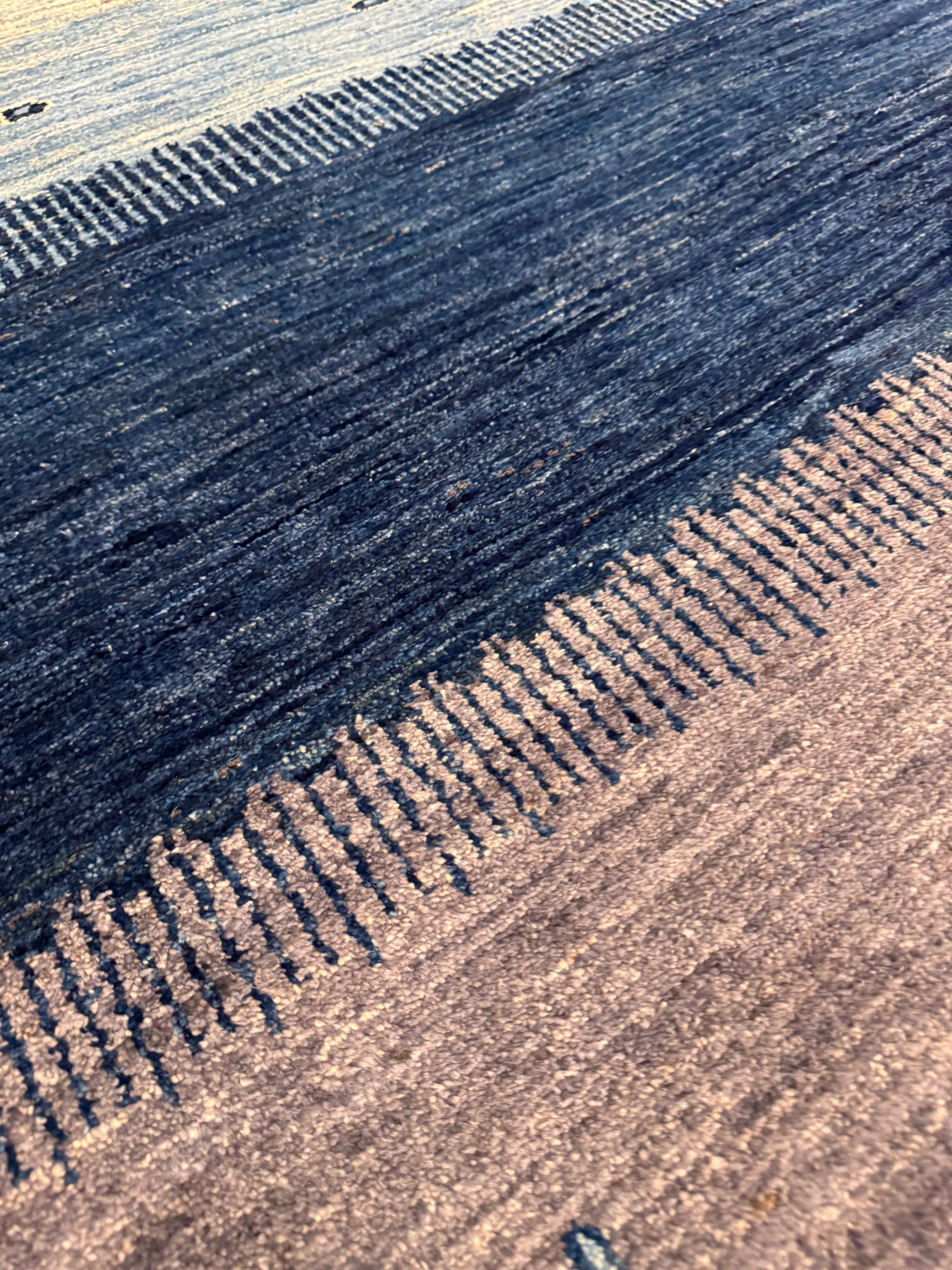 This exquisite Modern rug is a masterpiece of contemporary design, merging a blend of beige, navy blue, and earthy tones. Crafted from high-quality wool, it showcases an abstract theme that features minimalist patterns and organic motifs. The rug’s gradient effect combined with linear elements and subtle geometric symbols imparts a sense of depth and modern sophistication. This elegantly understated piece will bring a touch of quiet opulence to any space, harmonizing with both modern and traditional decor.