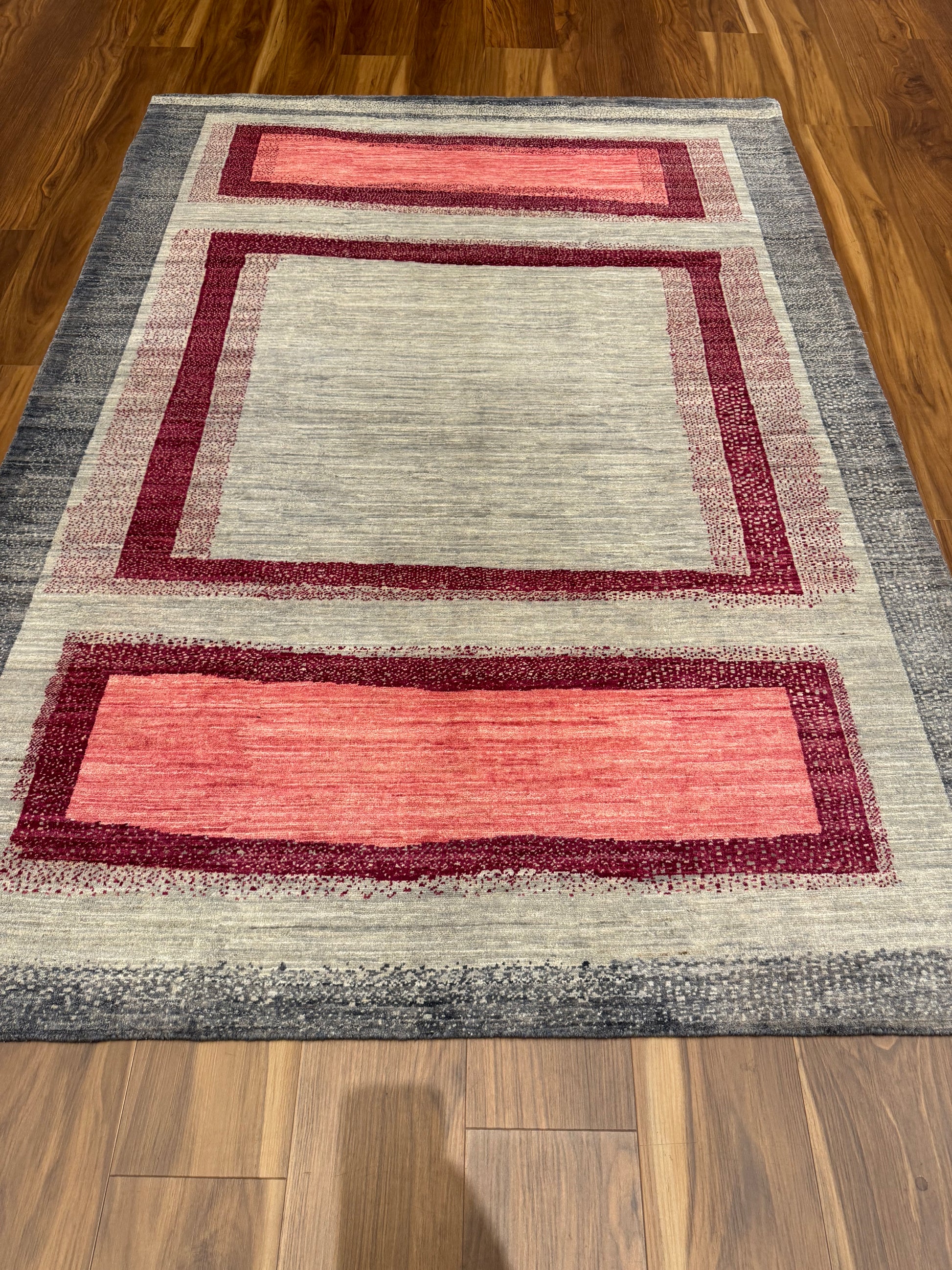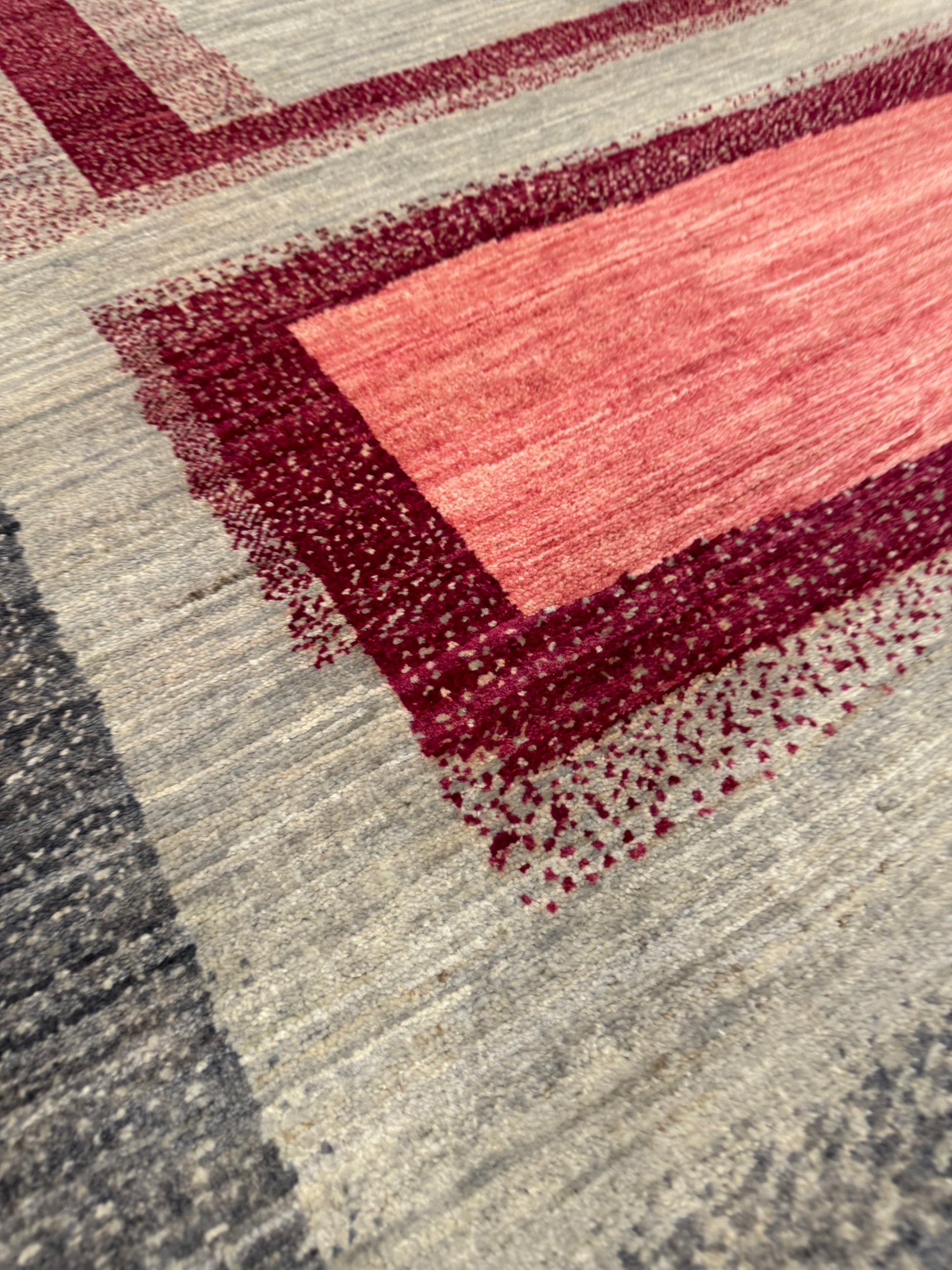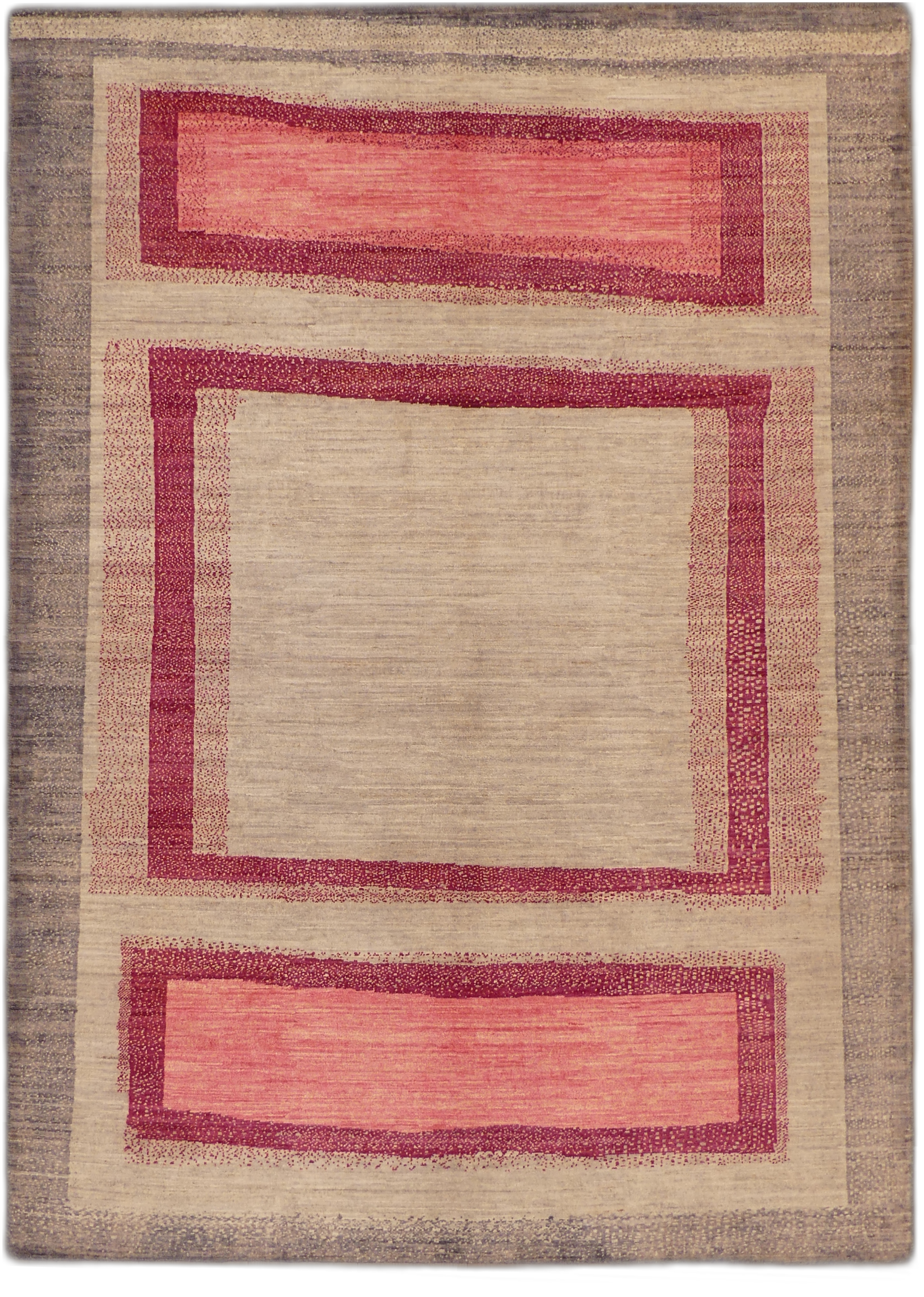 This exquisite rug showcases a modern design with clean, bold lines and a restrained color palette. Crafted from the finest wool, it offers durability and comfort underfoot. The juxtaposition of beige and red hues add warmth and sophistication to any room, while the geometric arrangement provides a contemporary aesthetic. Perfect for those who appreciate minimalism with a touch of elegance.