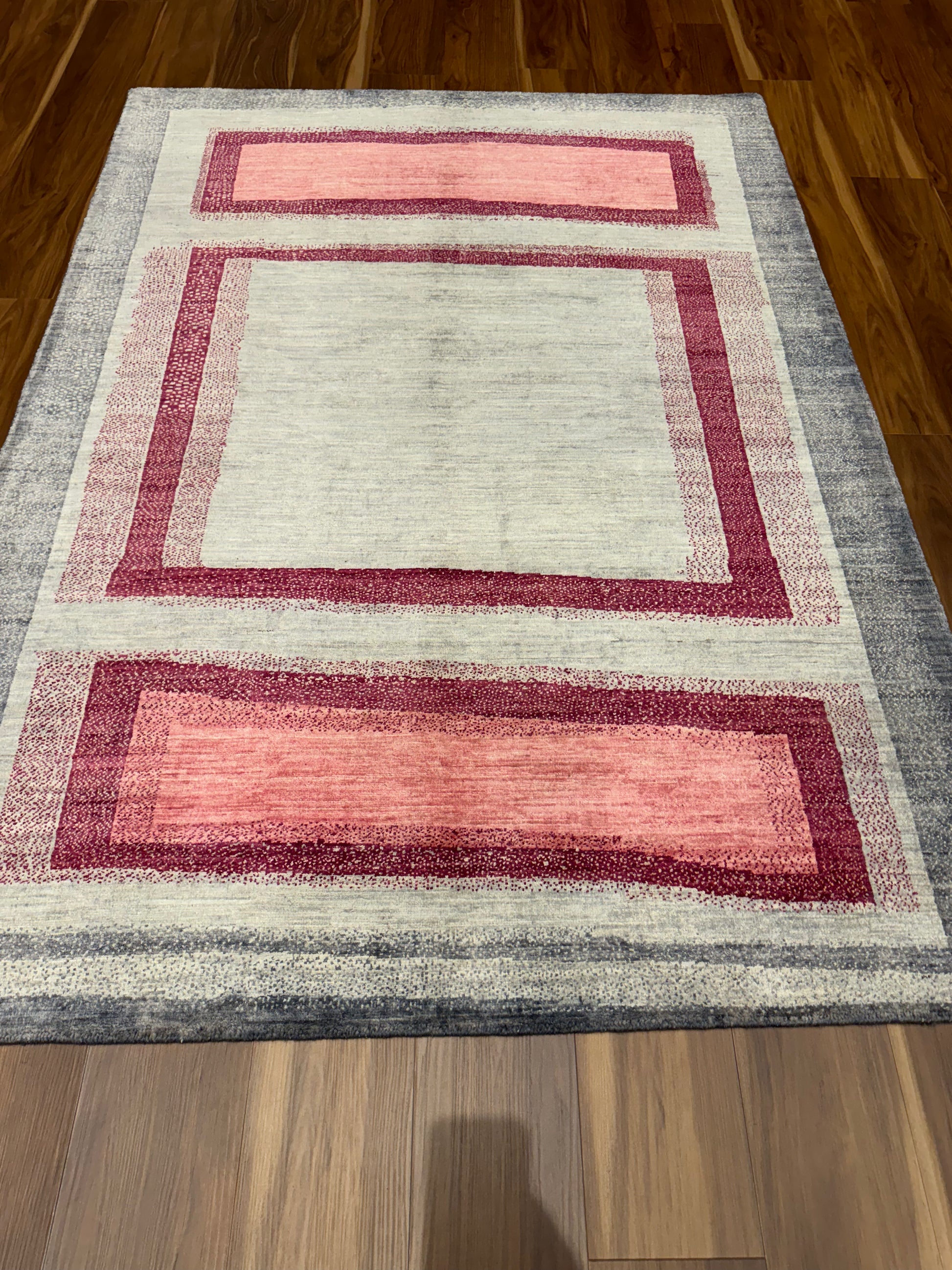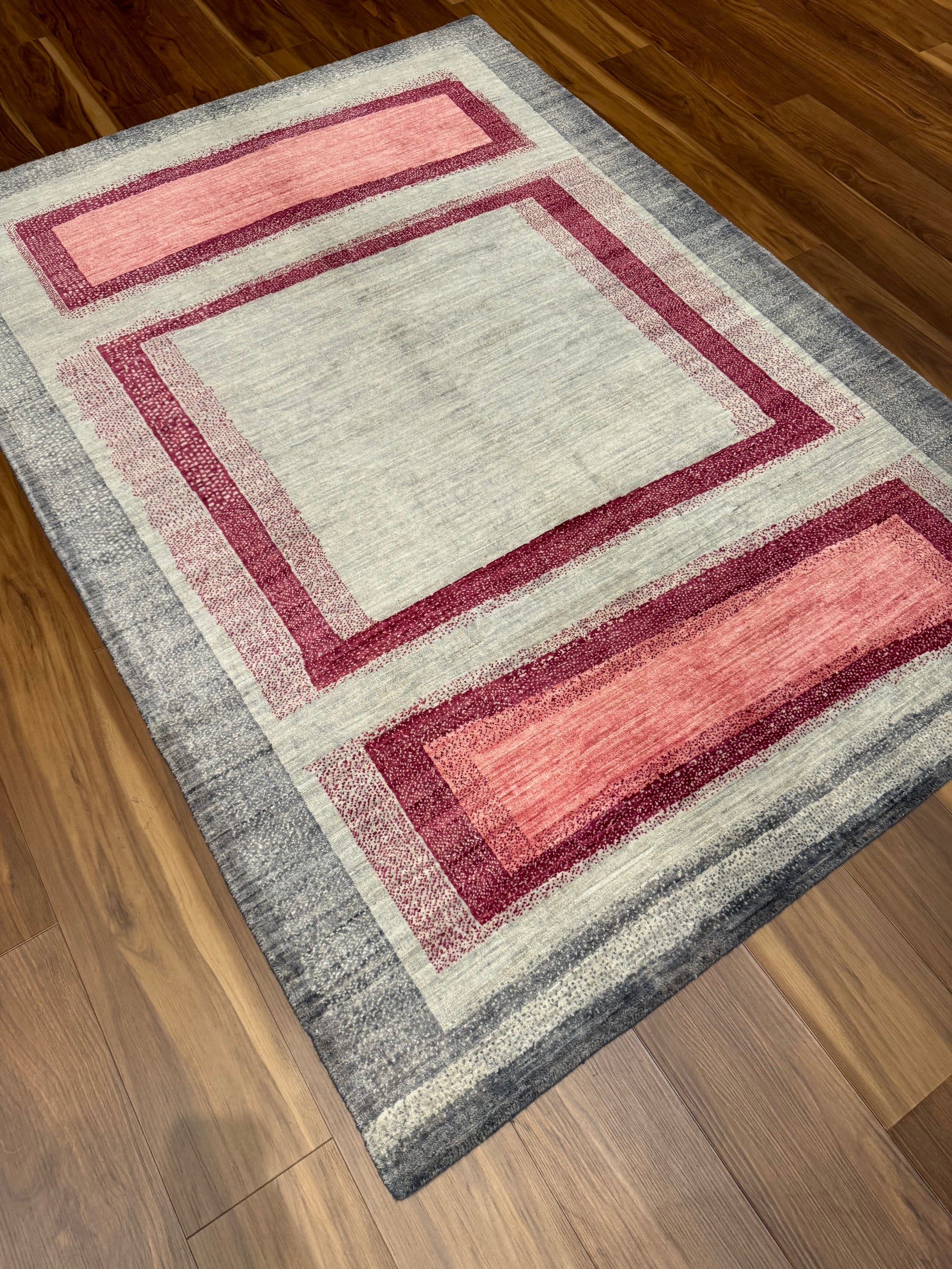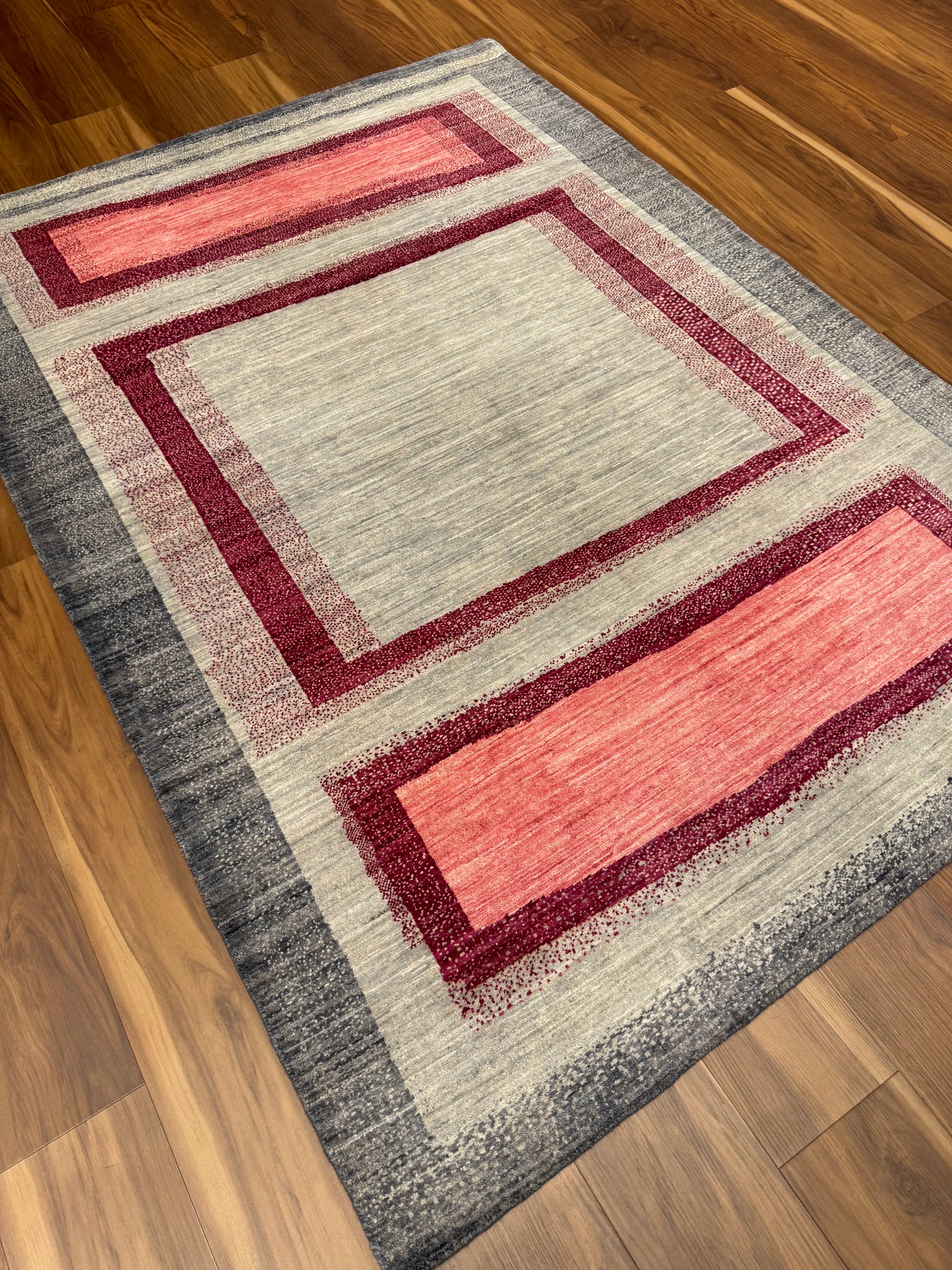 This exquisite rug showcases a modern design with clean, bold lines and a restrained color palette. Crafted from the finest wool, it offers durability and comfort underfoot. The juxtaposition of beige and red hues add warmth and sophistication to any room, while the geometric arrangement provides a contemporary aesthetic. Perfect for those who appreciate minimalism with a touch of elegance.