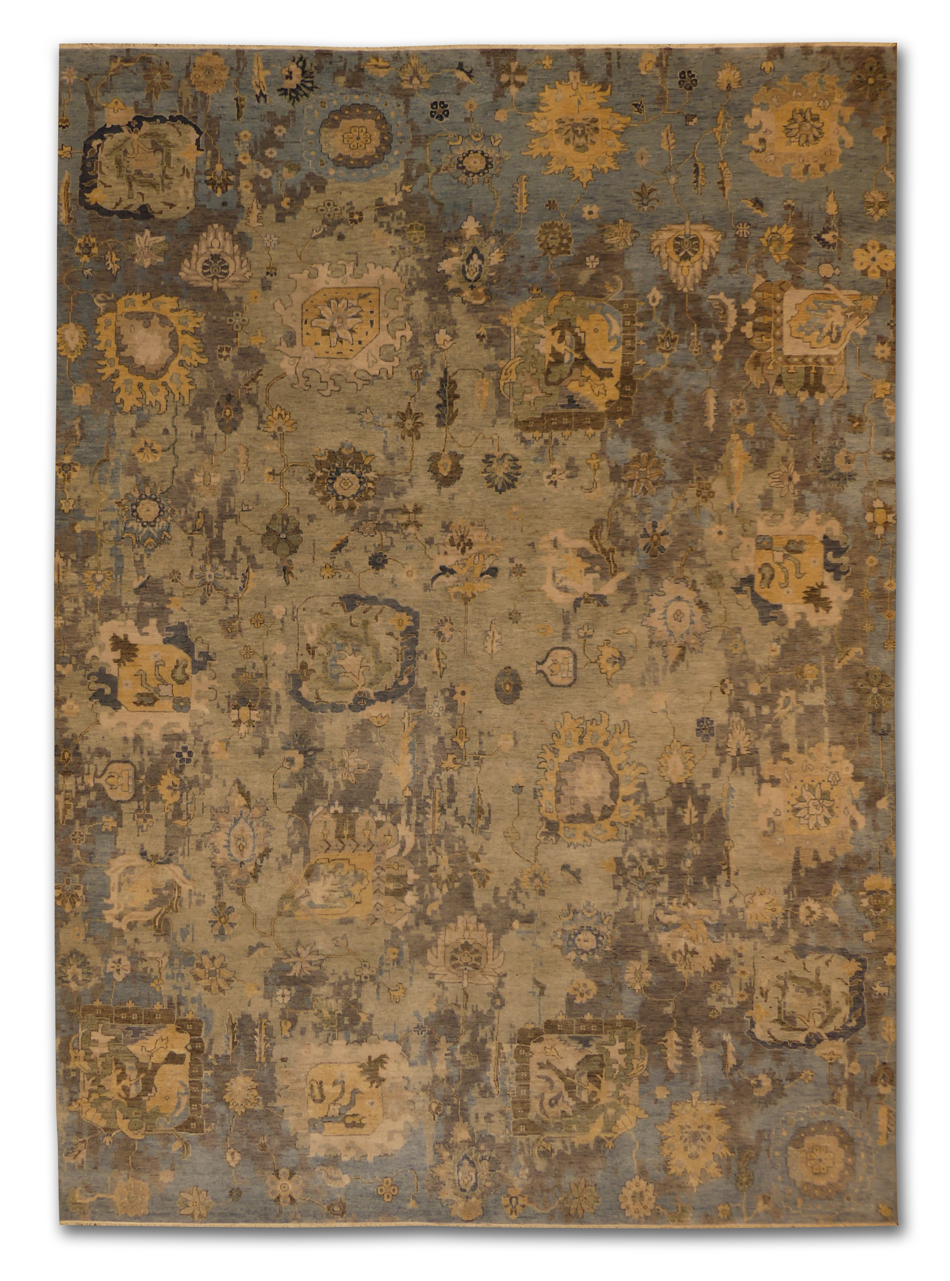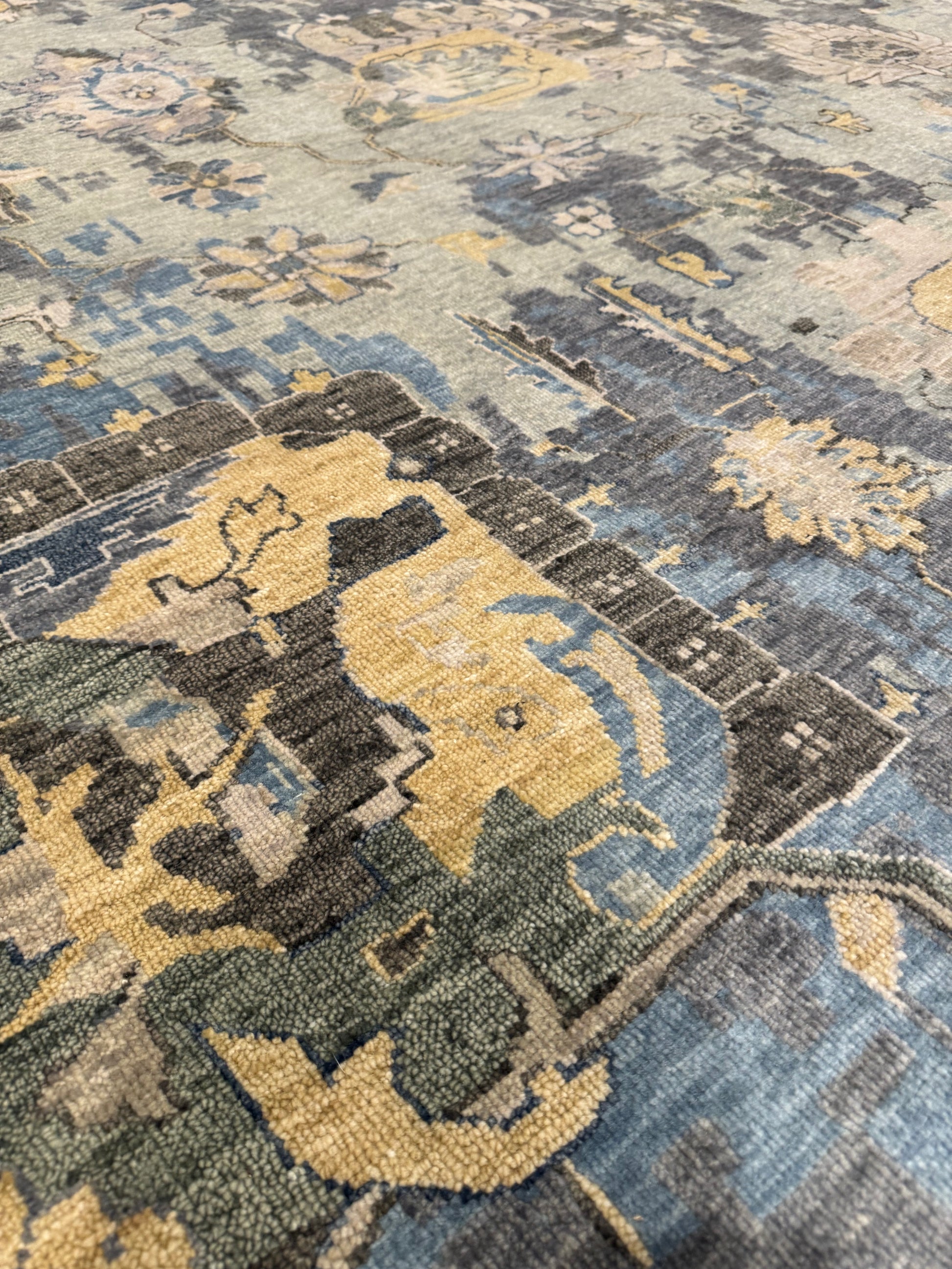 The Modern Serapi rug is a stunning representation of contemporary craftsmanship blended with traditional design. Made from high-quality wool, it showcases a fusion of beige, brown, gray and gold hues, resembling antiquity in a modern context. The rug features a mix of geometric motifs and stylized floral elements, creating a balance between sophistication and a touch of old-world charm. Its versatile pattern and coloring makes it a fitting addition to both modern and traditional interiors, bringing warmth and elegance to any space.