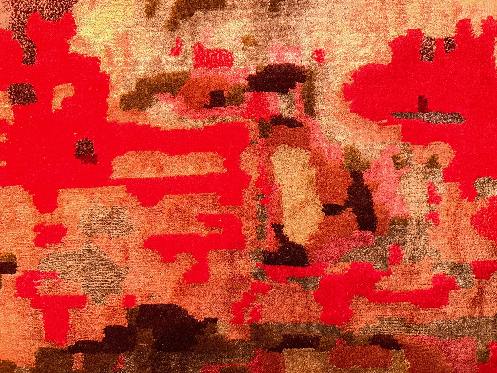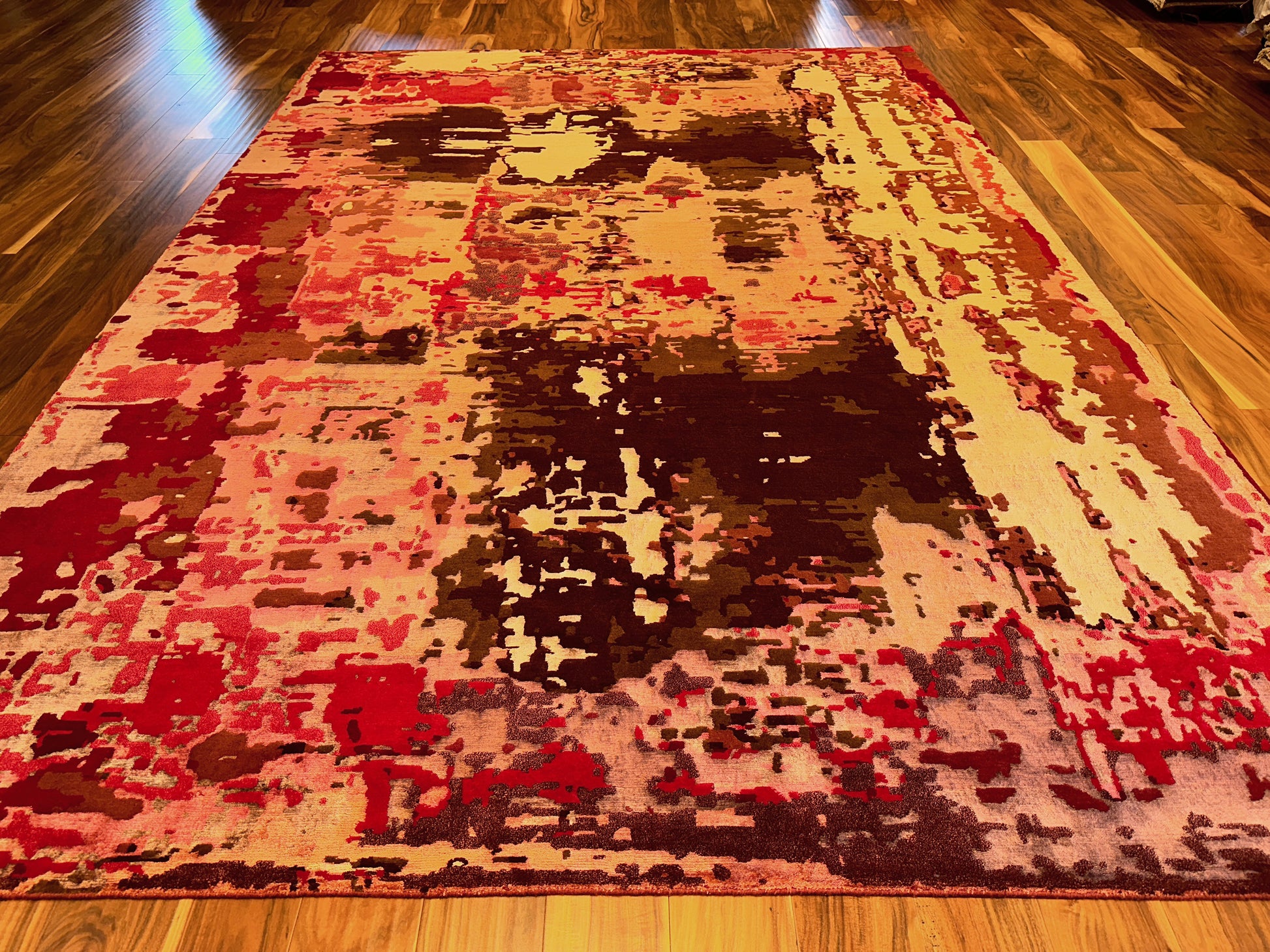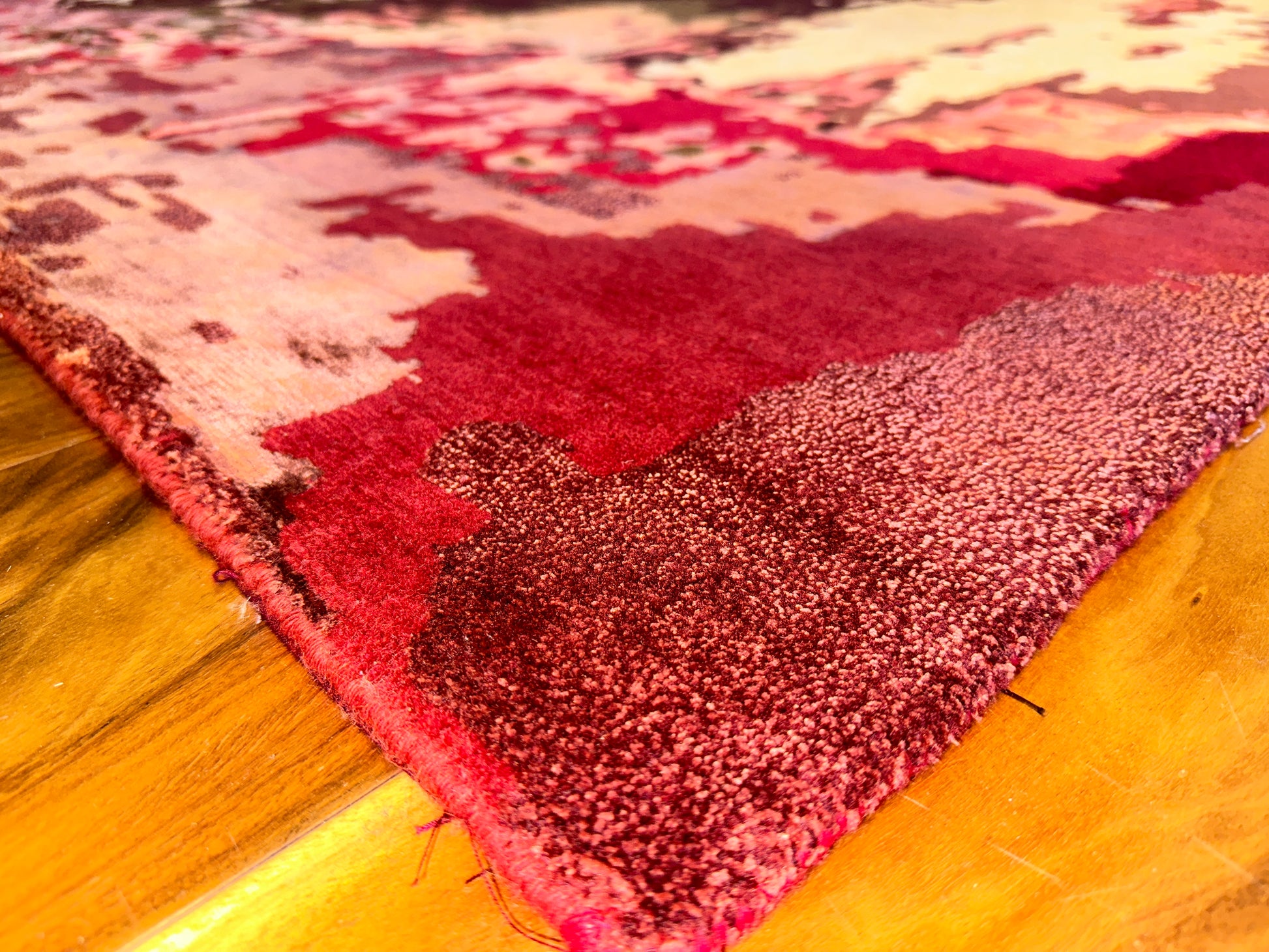 This bold, expressive handwoven rug brings a vibrant surge of energy to any space with its painterly blend of crimson, deep burgundy, clay, blush, and sandstone. The abstract composition flows with layered brushstroke textures, creating a dynamic, almost molten visual rhythm that feels both contemporary and organic. Its rich tones and tonal movement make it a captivating centerpiece, especially suited for modern interiors seeking warmth, depth, and dramatic presence.