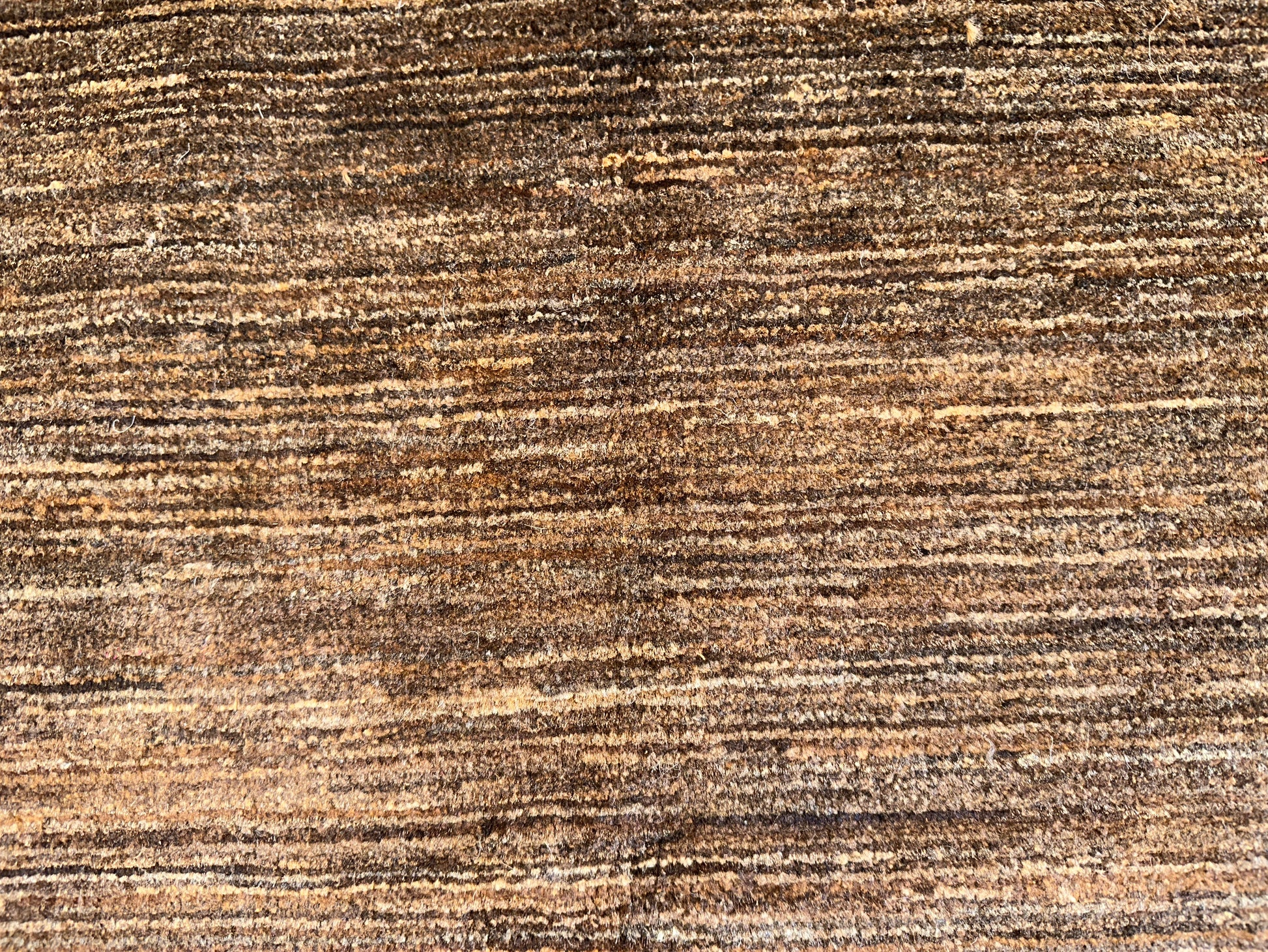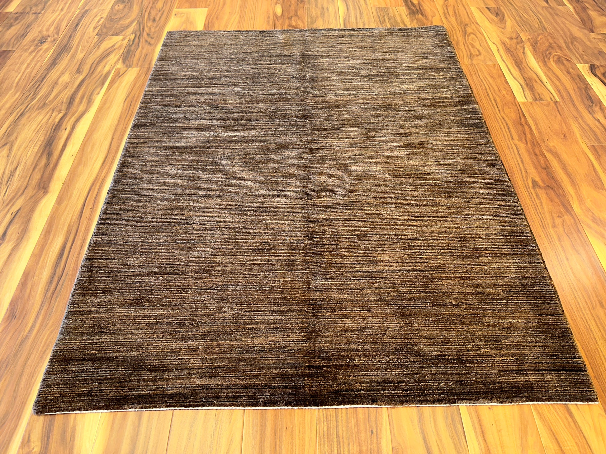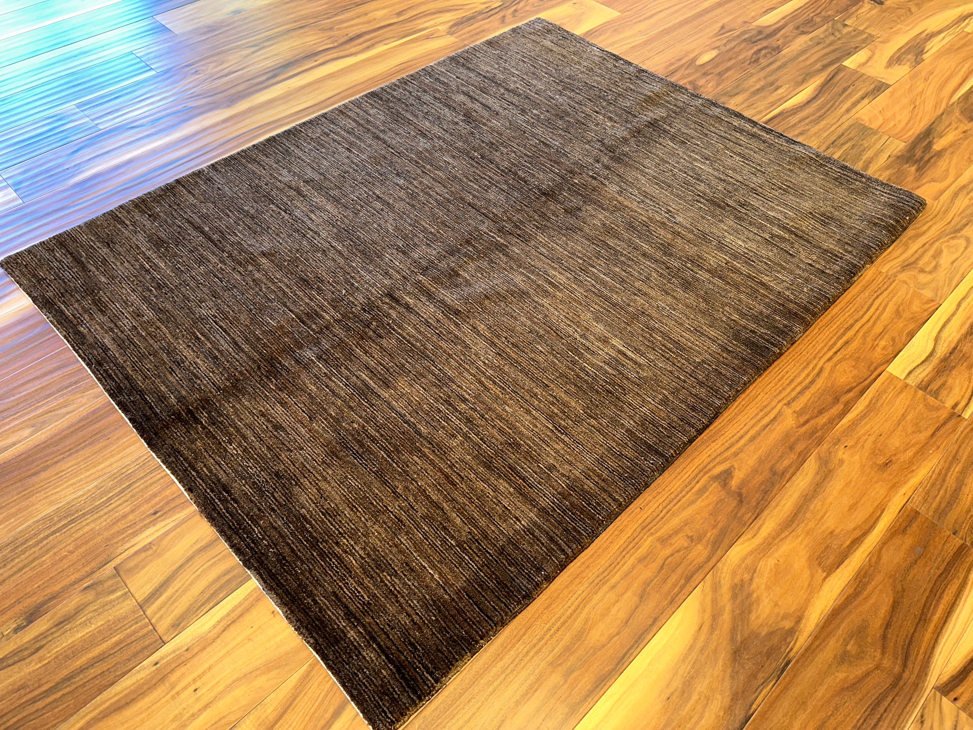 This rug offers a richly minimalist take on modern design, with deep, tonal brown striations giving it quiet depth and warmth. The overall look is restrained but full of texture, making it ideal for layering into a neutral interior or grounding a richly styled room.