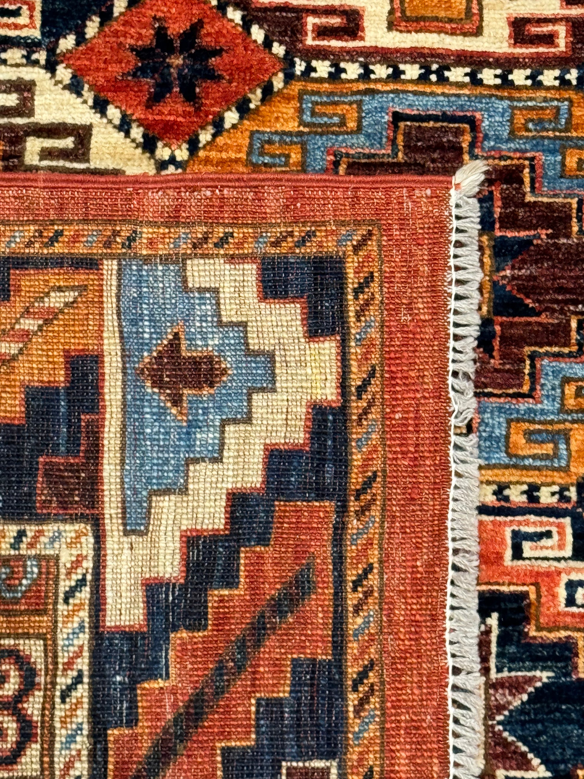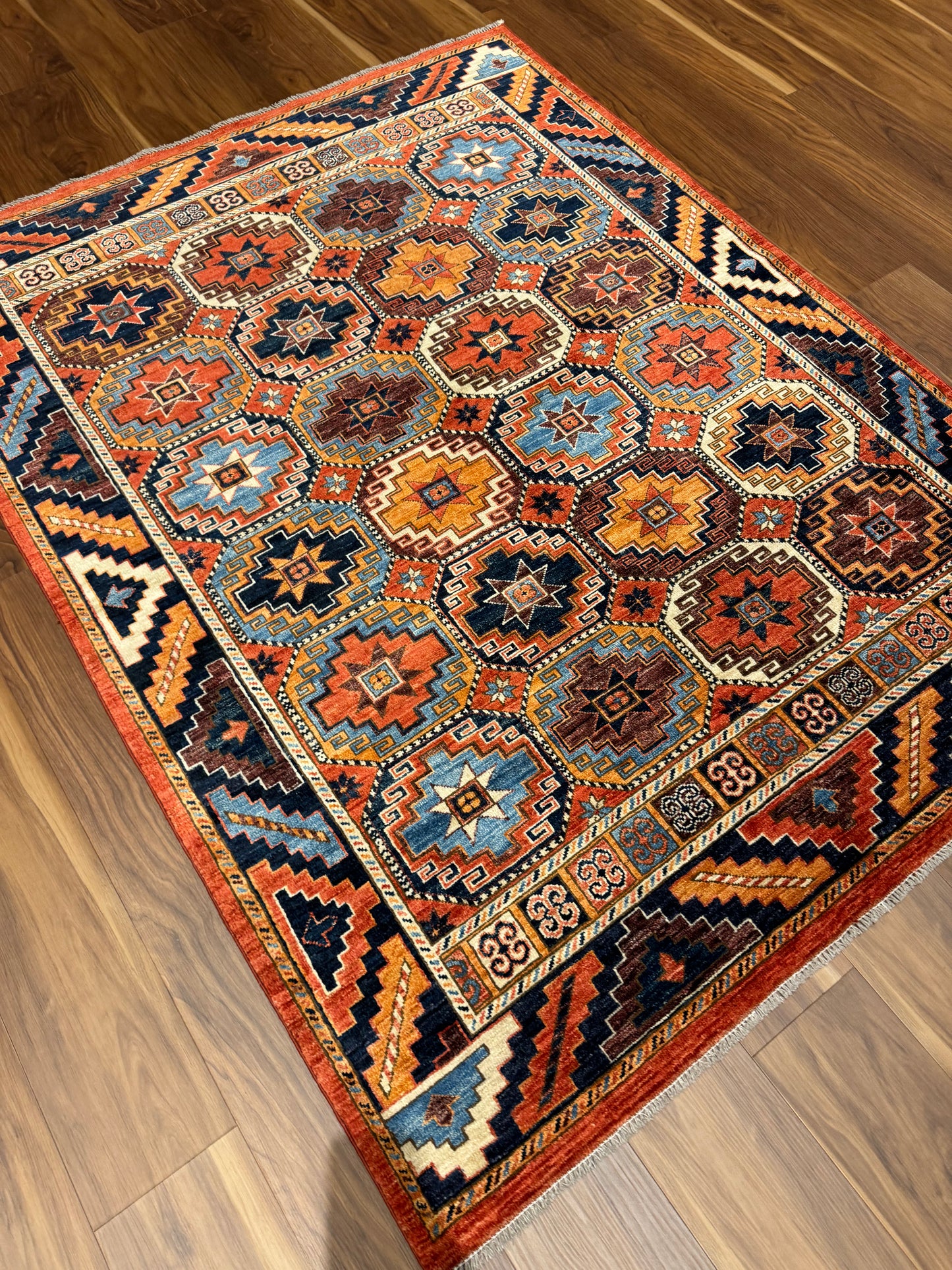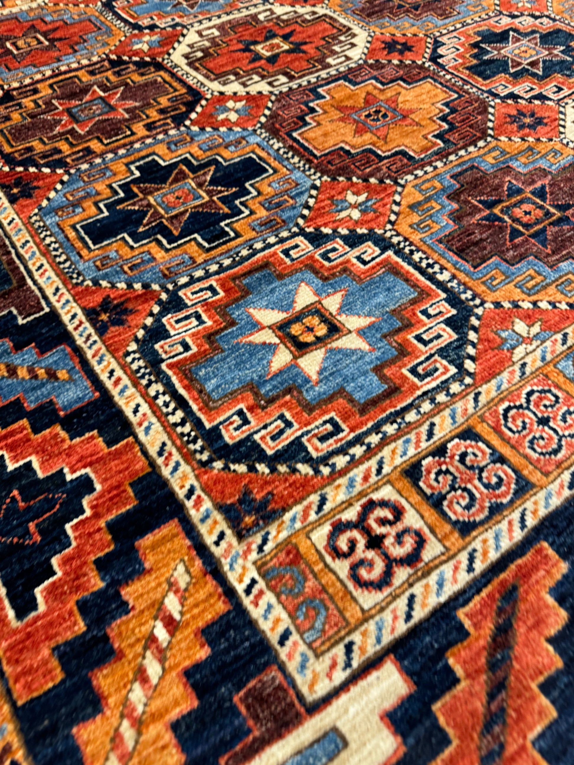 The 'Moghan' wool rug is a fine example of tribal artistry with a robust composition of geometric motifs balanced by a sophisticated color palette. Its precision in patterns and symmetry exudes a harmonious aesthetic, drawing from the rich tribal traditions reflected in its design. Comprised entirely of wool, this durable piece tells a story through its intricate borders and octagonal medallions, making it an outstanding addition to both modern and traditional interiors. Each stitch carries the heritage of a craft passed down through generations, ideal for the discerning collector seeking a touch of authenticity.