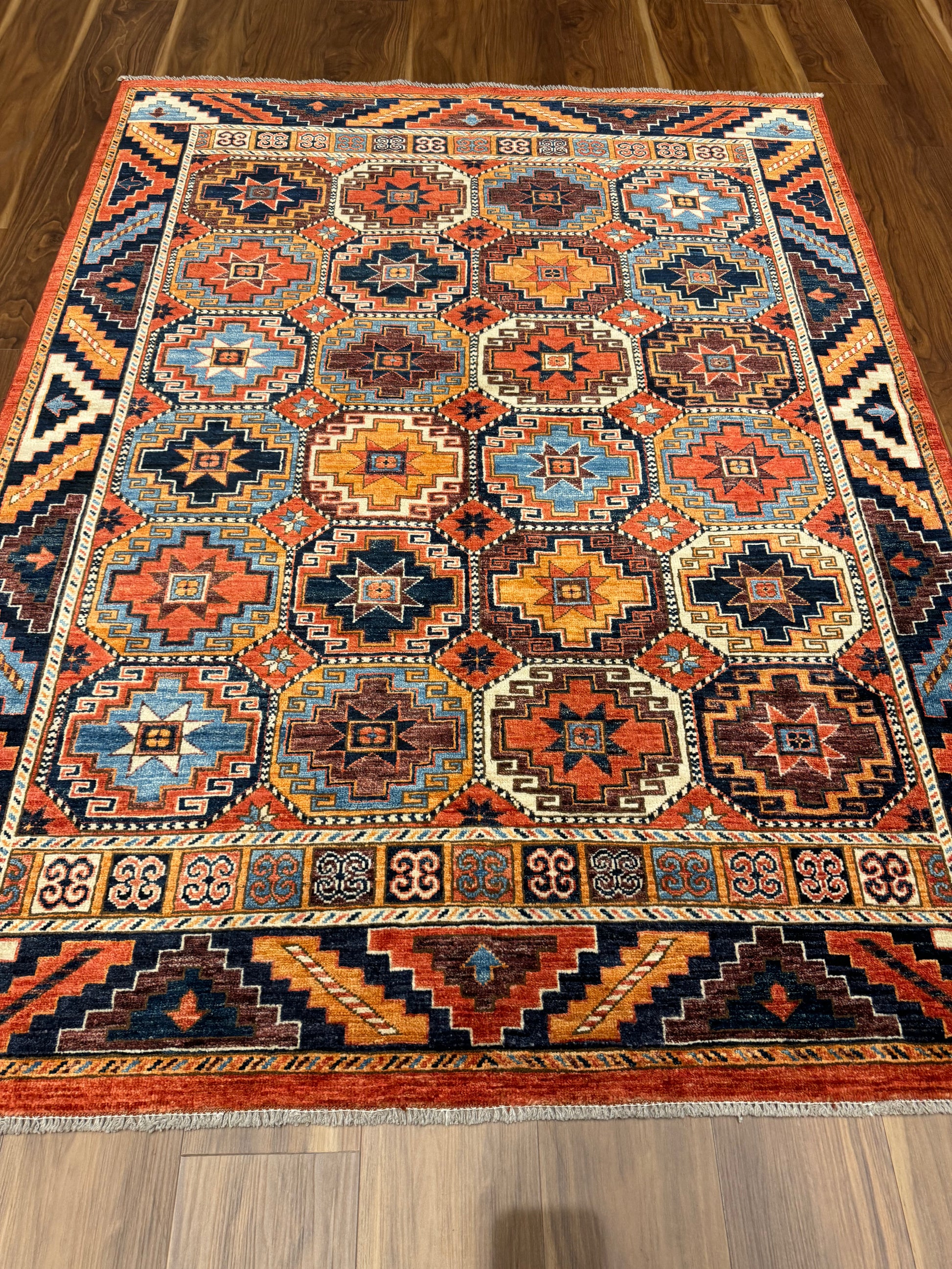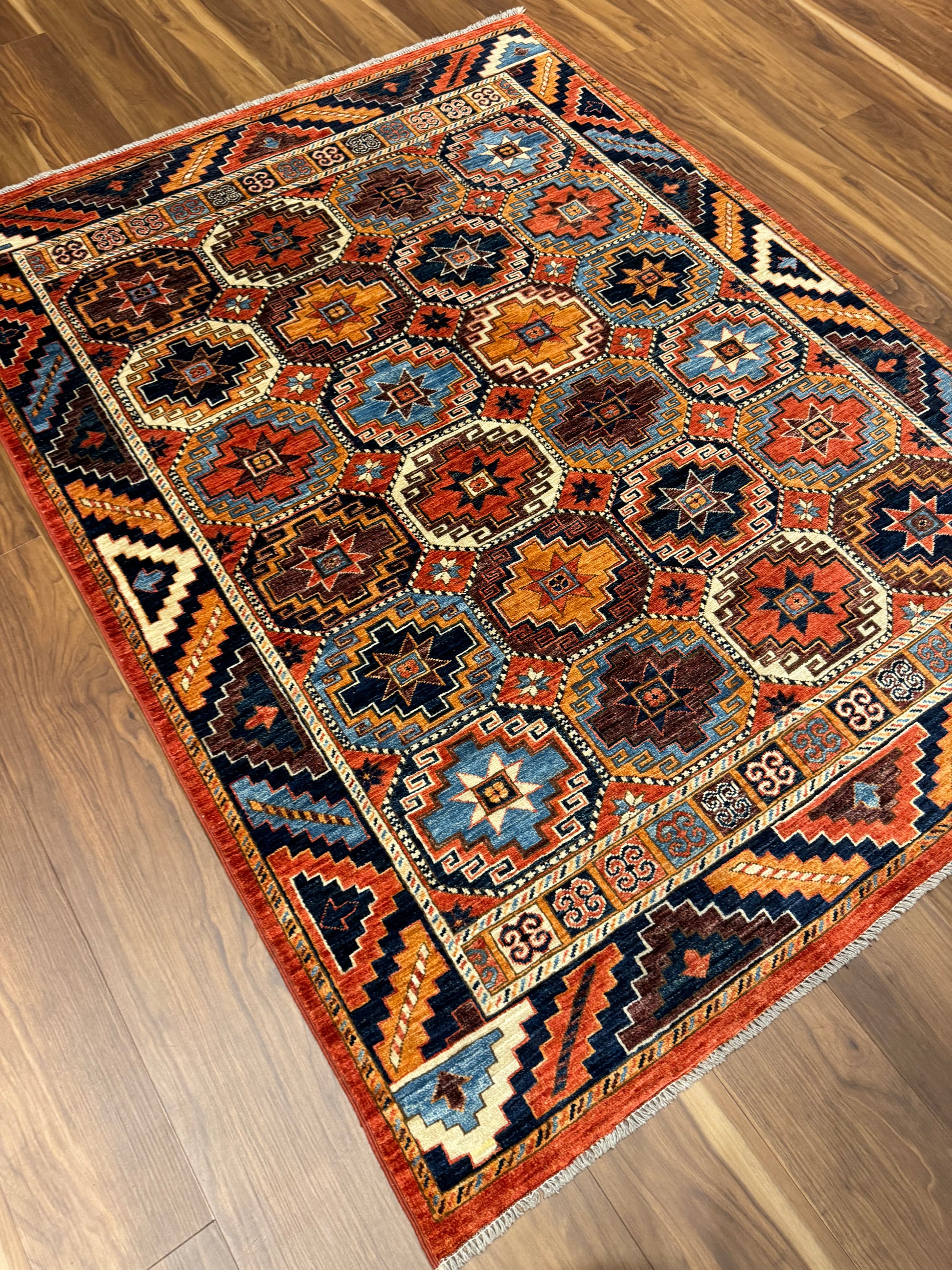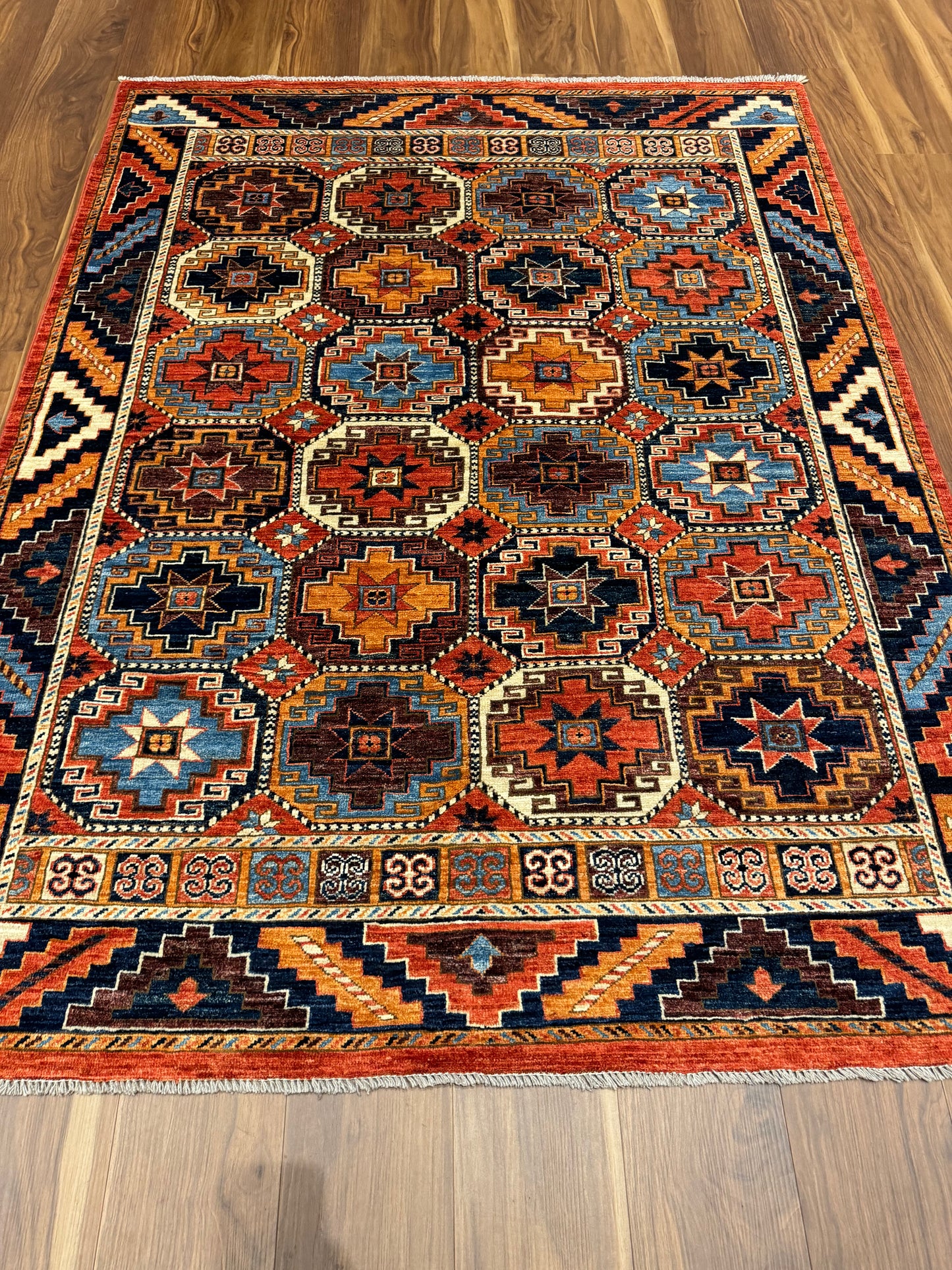 The 'Moghan' wool rug is a fine example of tribal artistry with a robust composition of geometric motifs balanced by a sophisticated color palette. Its precision in patterns and symmetry exudes a harmonious aesthetic, drawing from the rich tribal traditions reflected in its design. Comprised entirely of wool, this durable piece tells a story through its intricate borders and octagonal medallions, making it an outstanding addition to both modern and traditional interiors. Each stitch carries the heritage of a craft passed down through generations, ideal for the discerning collector seeking a touch of authenticity.