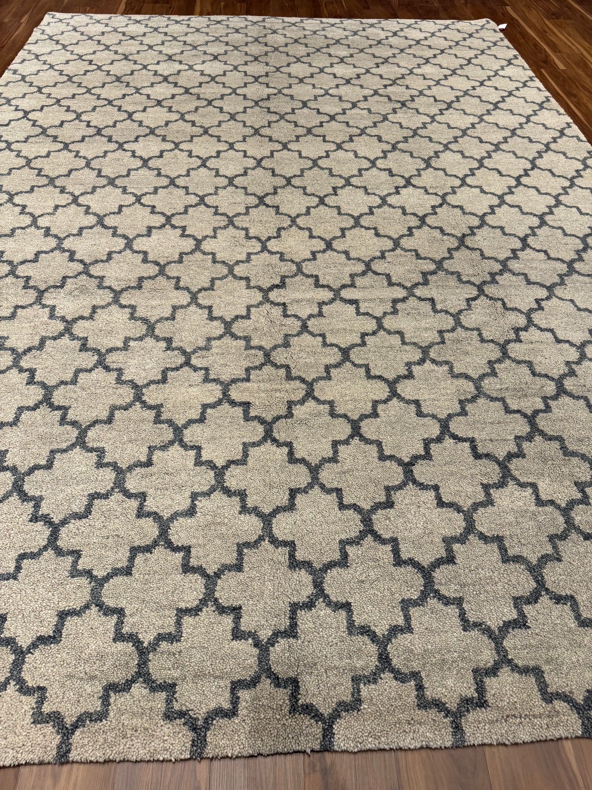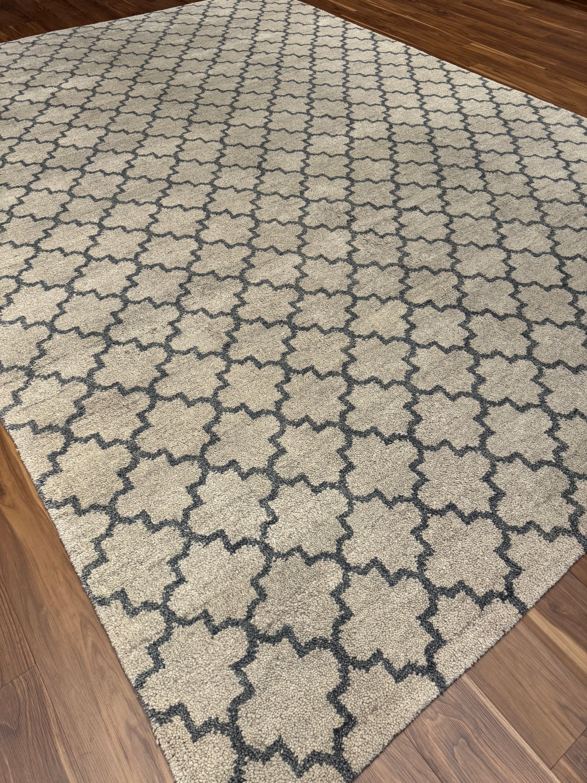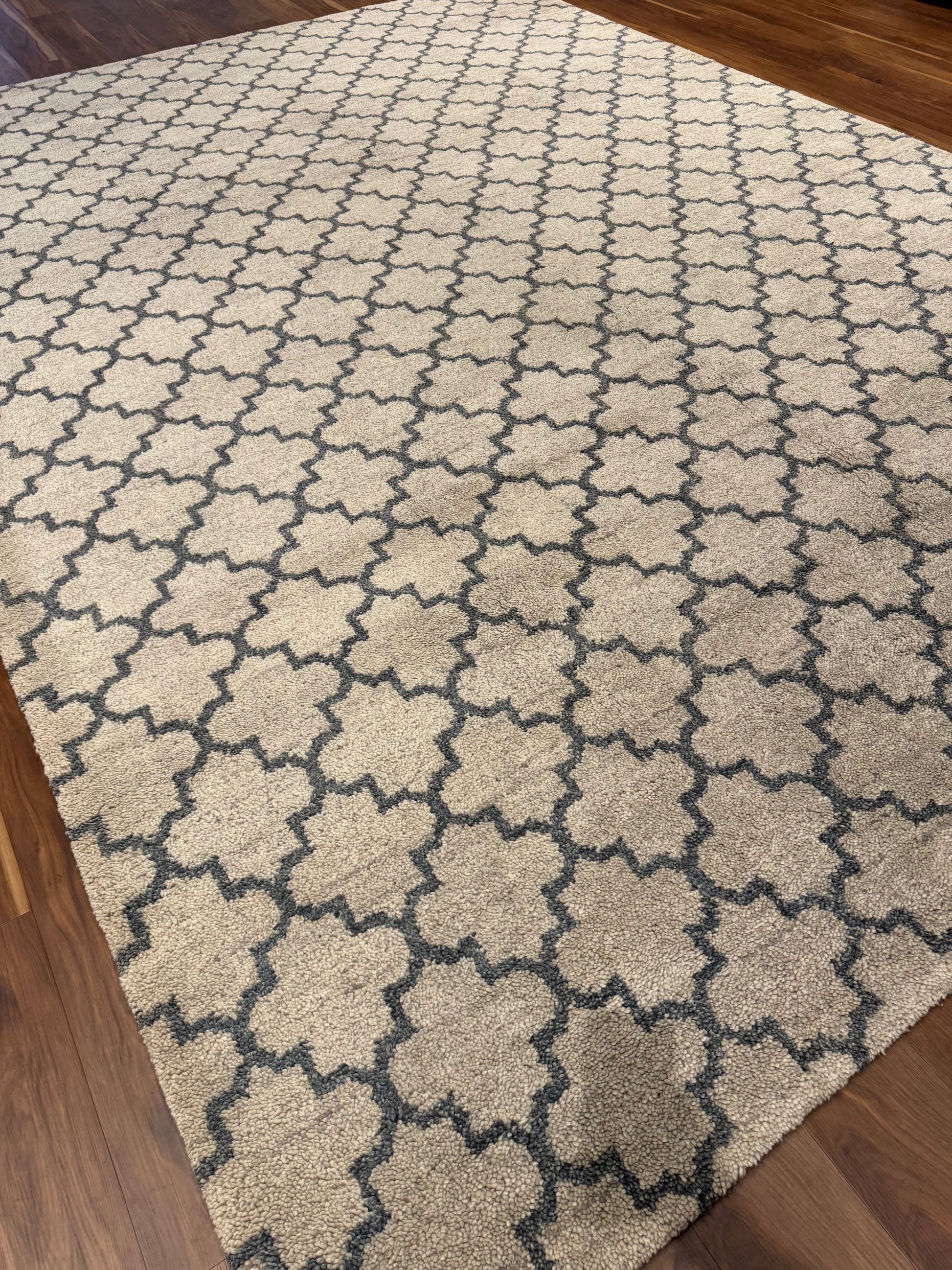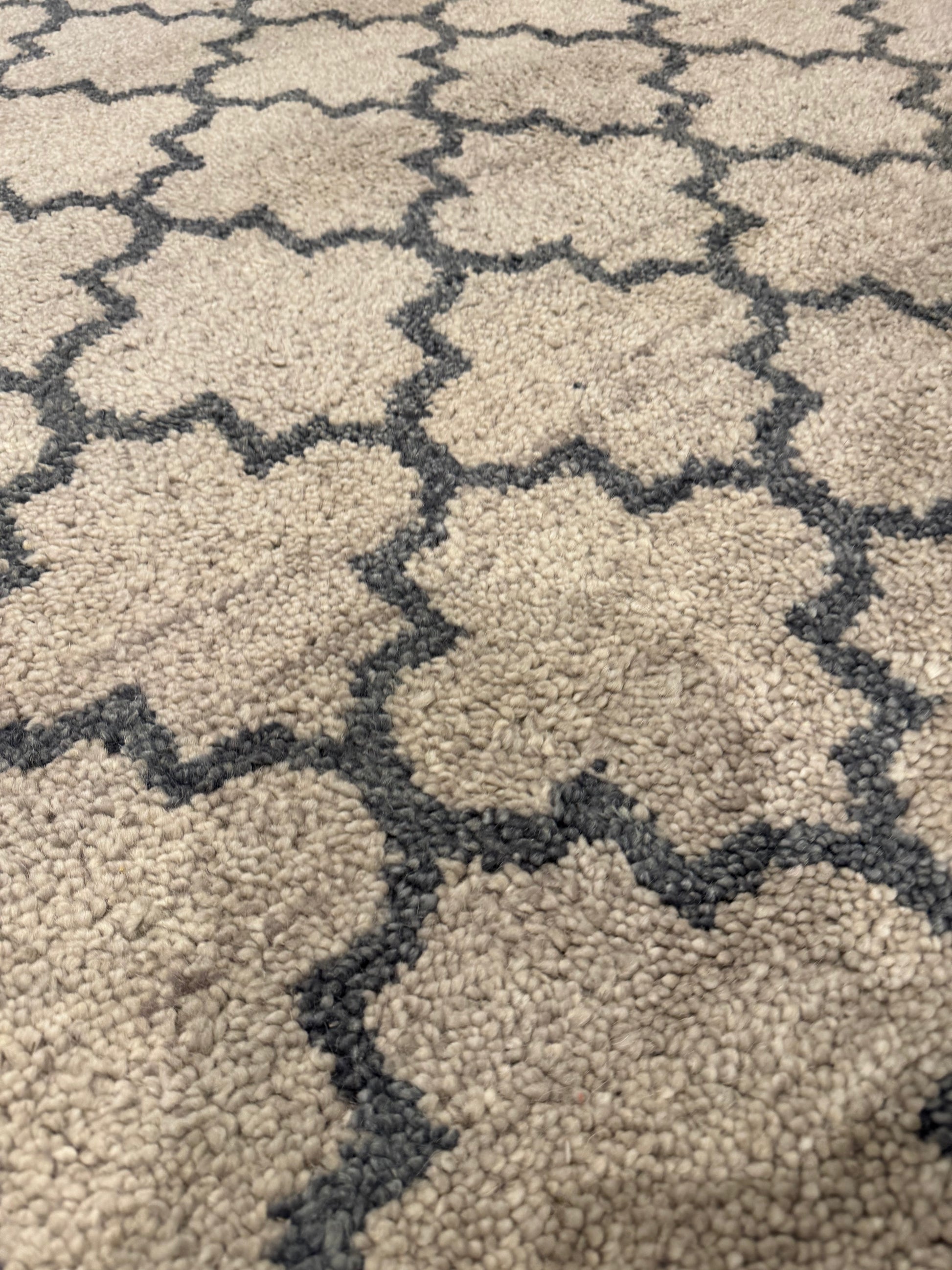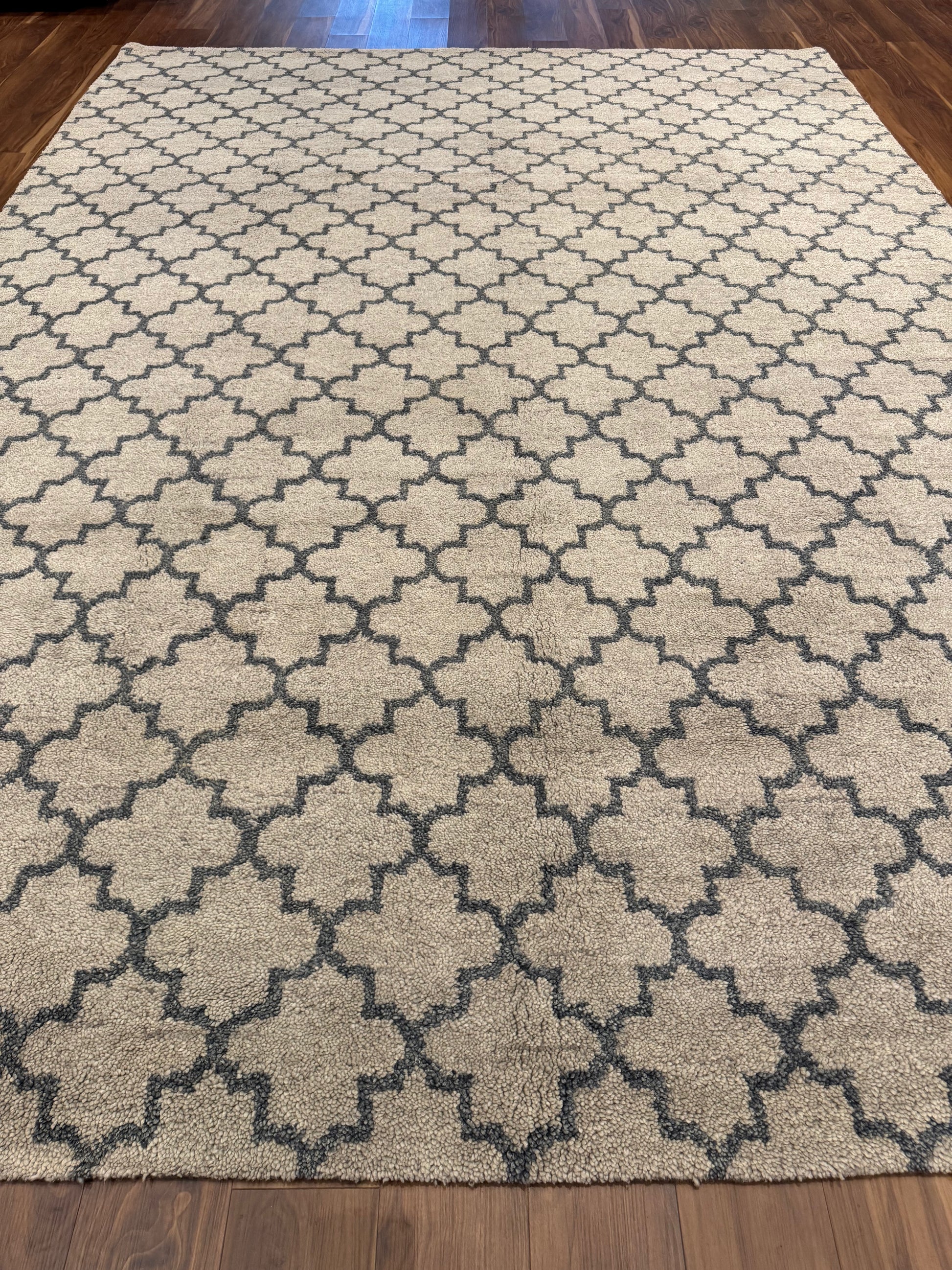 This exquisite rectangle-shaped rug is a perfect embodiment of Moroccan craftsmanship. Made of the finest wool, it features an intricate pattern with beige and brown hues that evoke a sense of warmth and earthiness. The geometric trellis design lends a timeless elegance to this piece, making it a versatile addition to any room. With its dense pile, the rug promises a luxurious underfoot experience and exceptional durability, ideal for both high-traffic areas and intimate spaces.