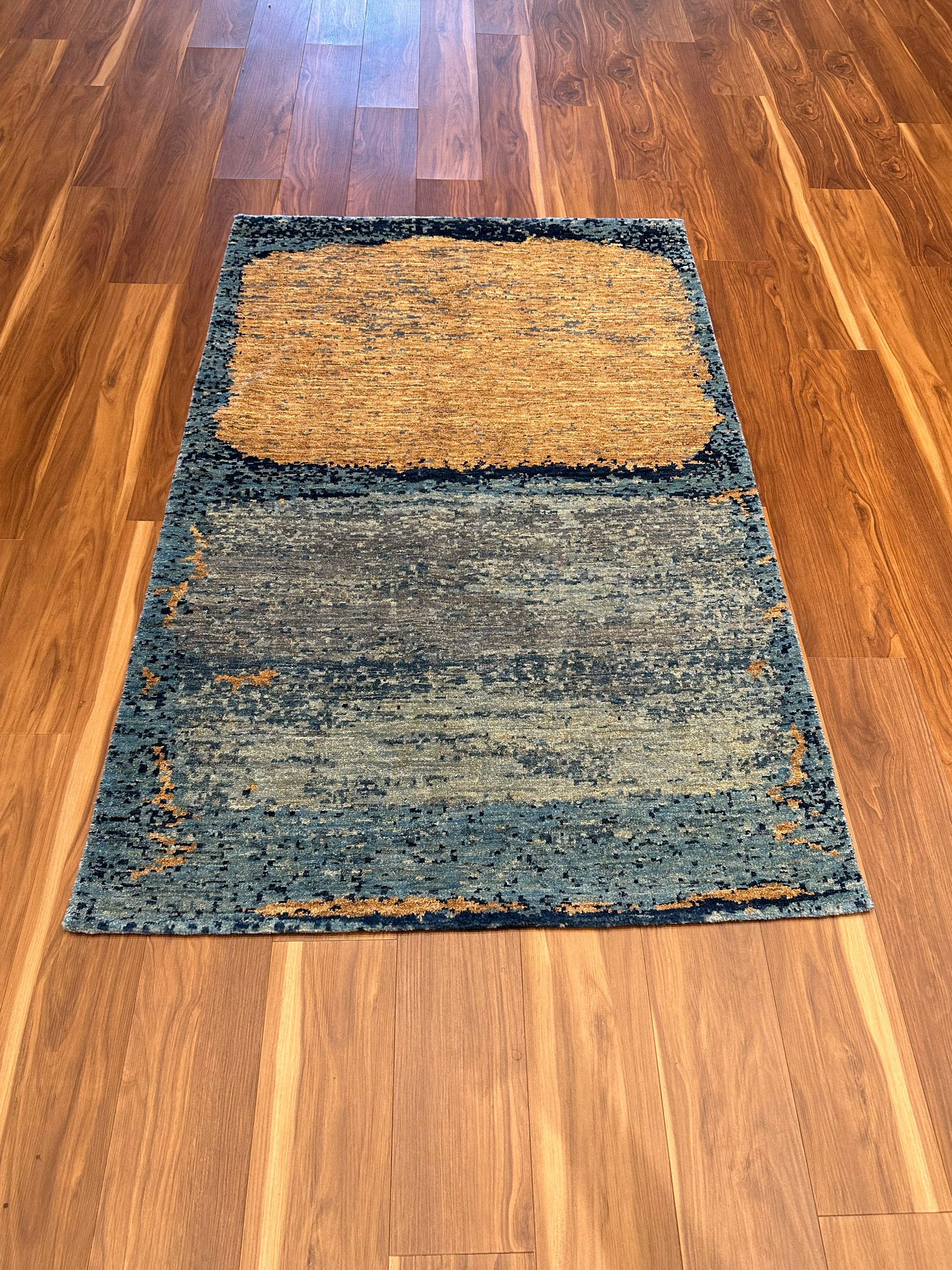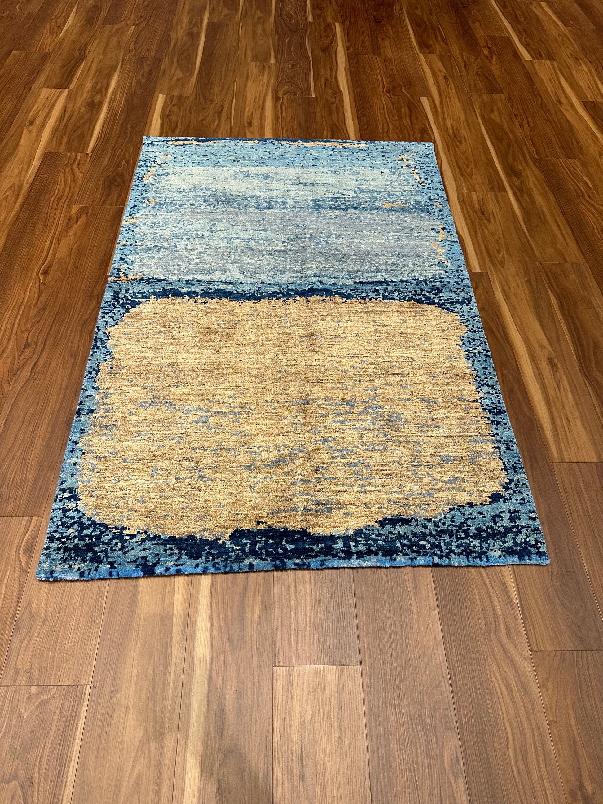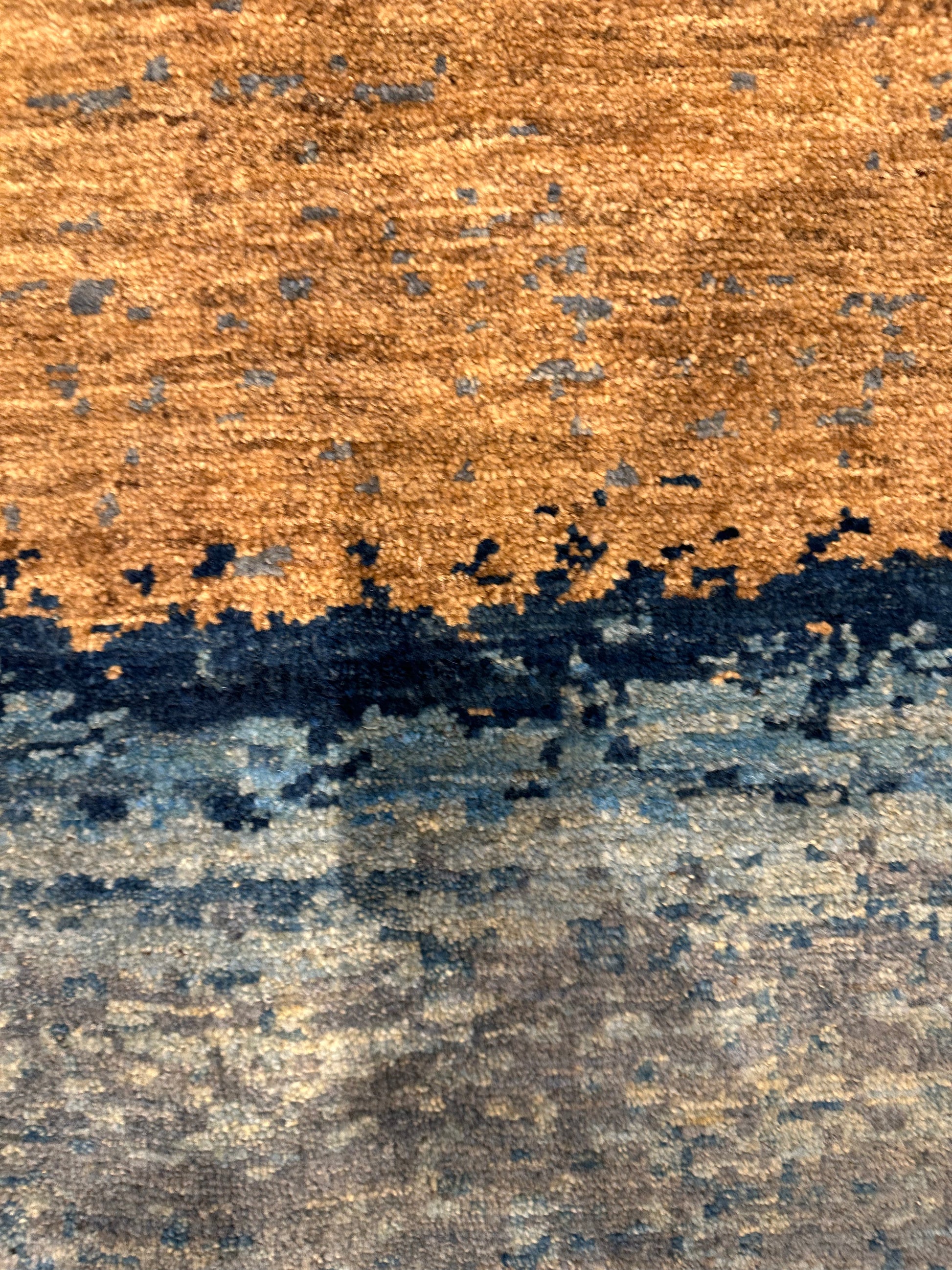 This exquisite piece boasts a modern style with an artistic blend of tan, blue, and gray hues. The abstract expressionist design channels a contemporary vibe that can seamlessly integrate into any modern living space. Crafted from high-quality wool, this rug is not only visually appealing but also comfortable underfoot and durable for high traffic areas. The versatility of its color palette allows for easy coordination with a variety of decor themes.
