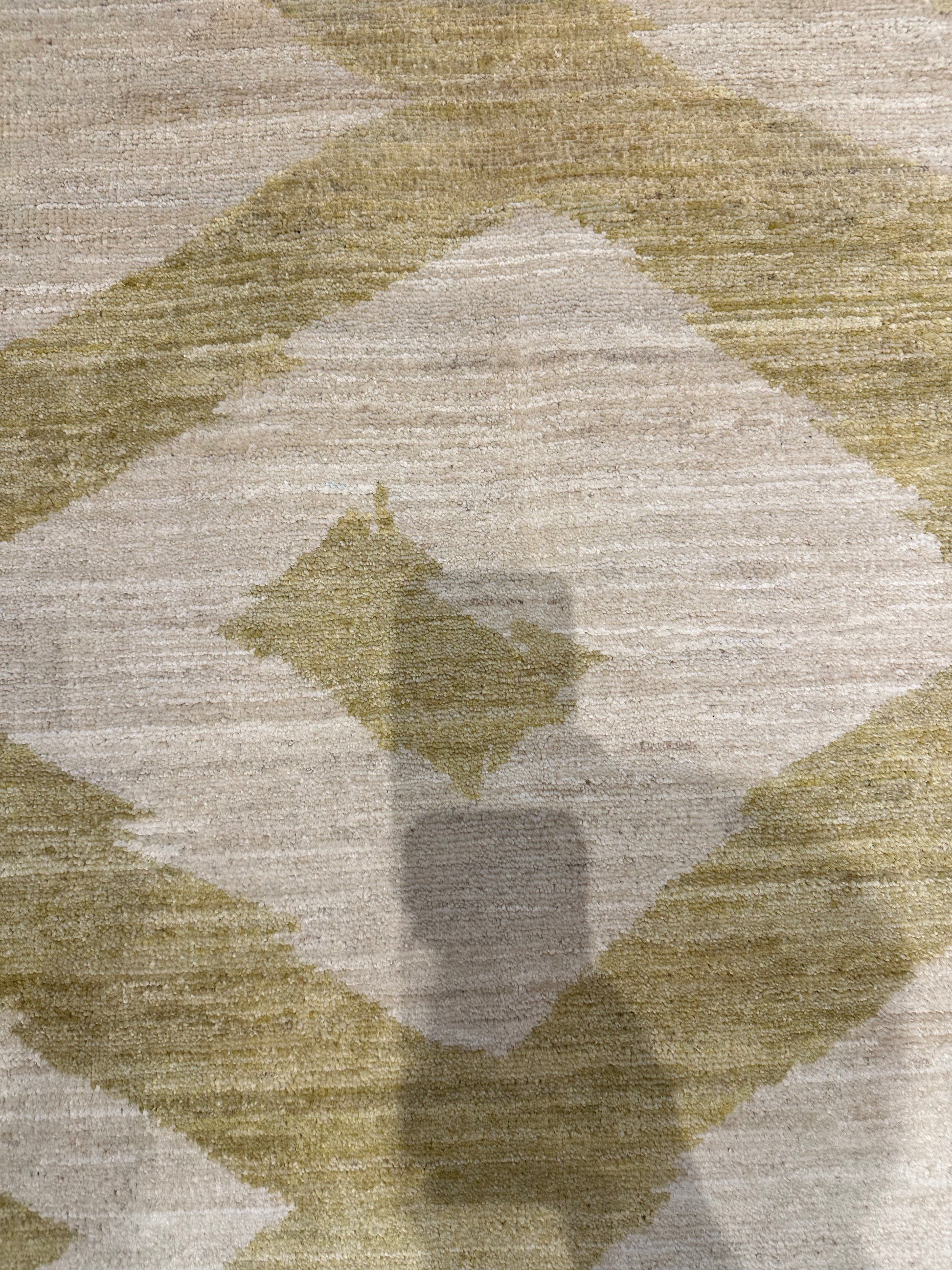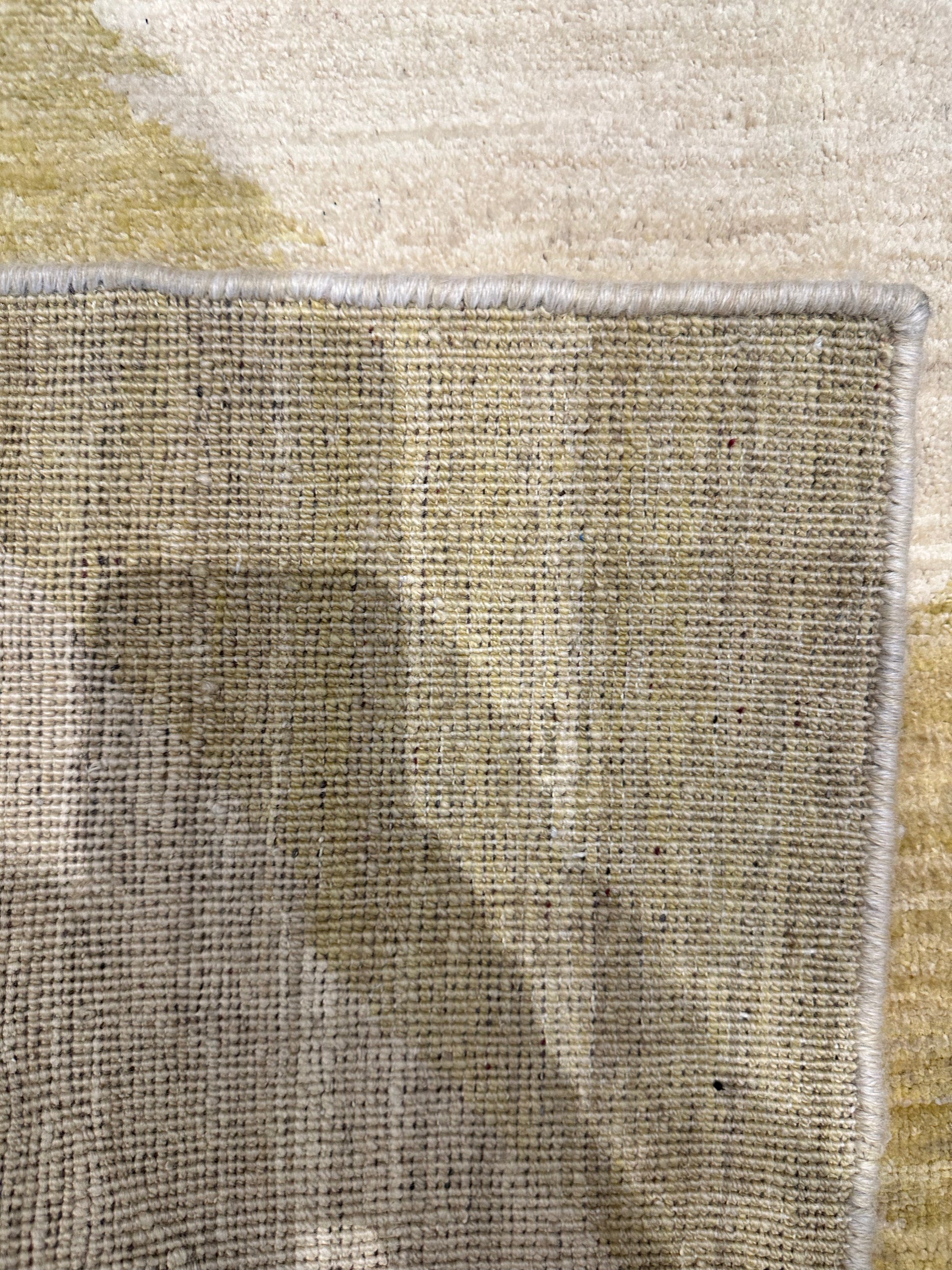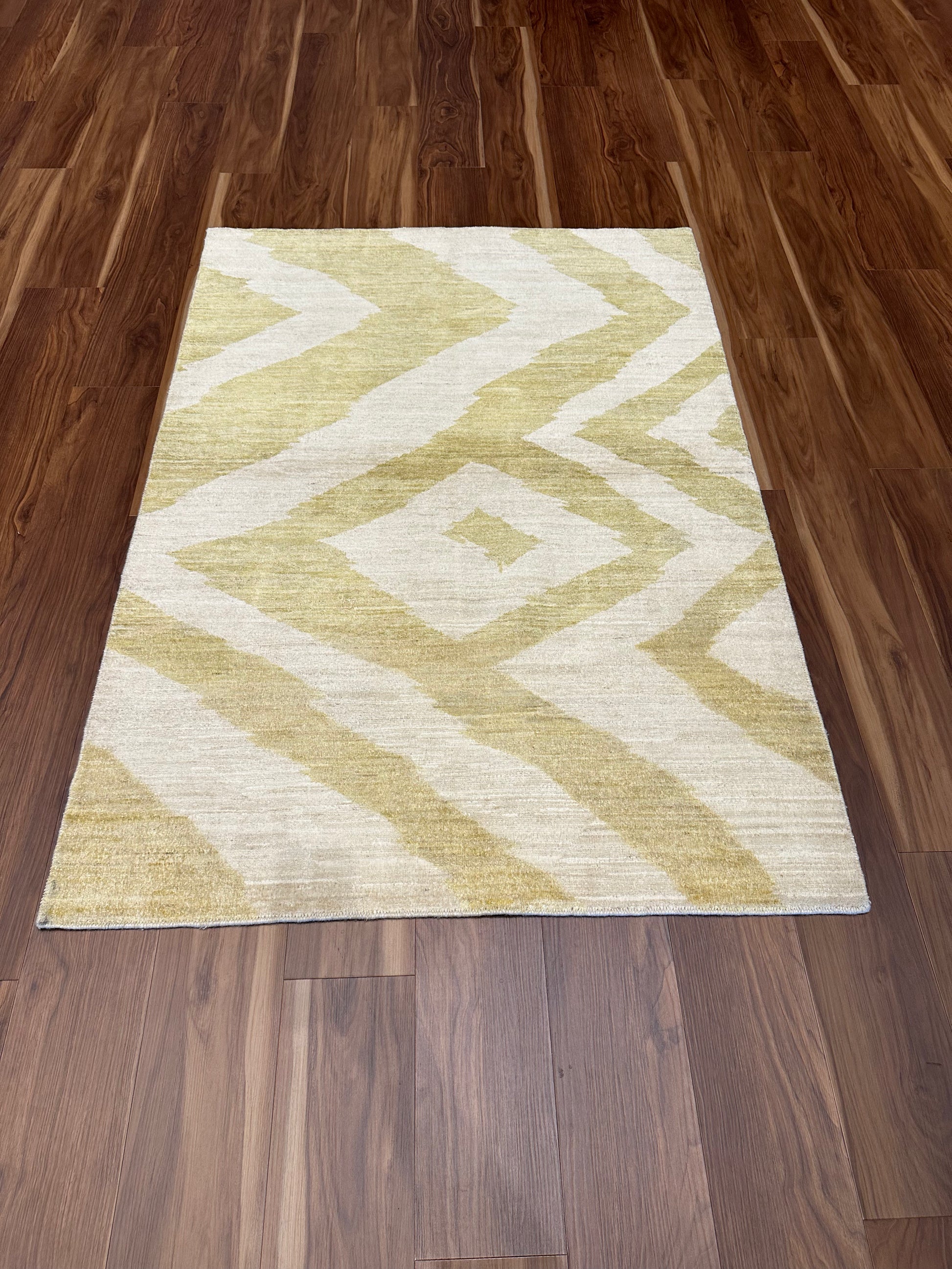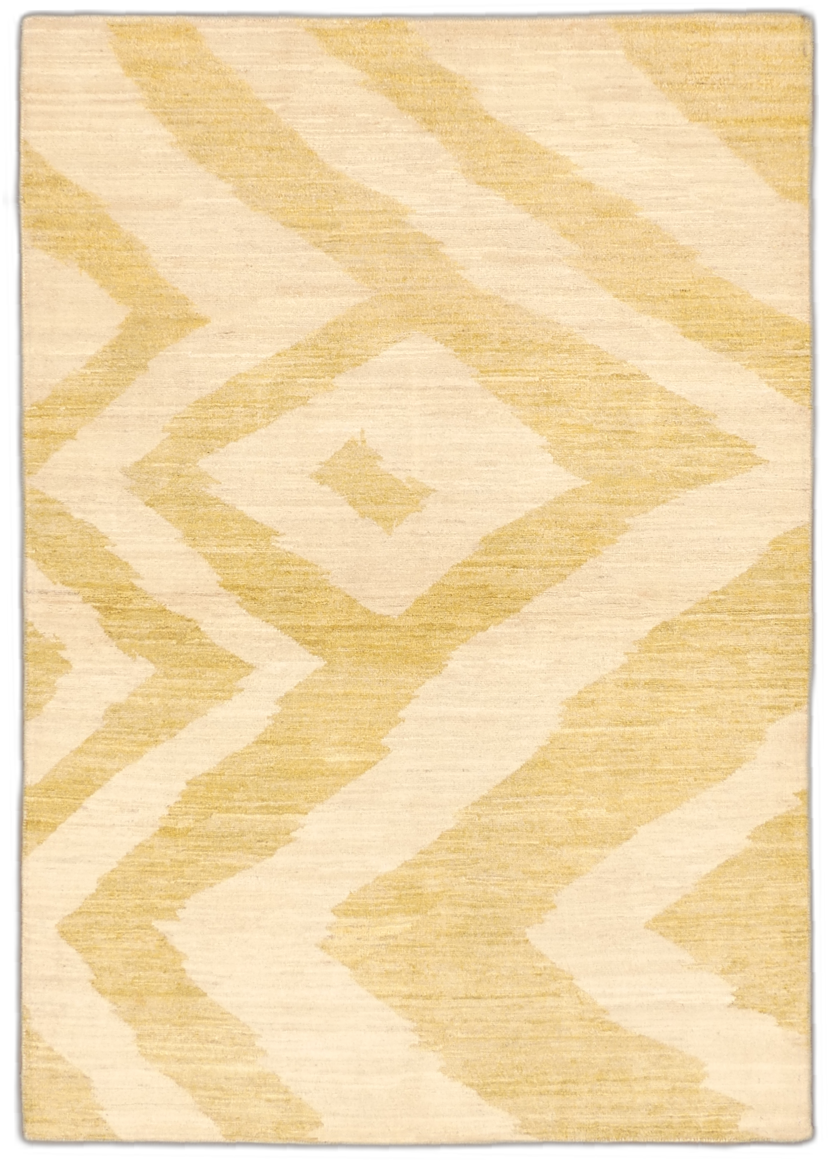 This luxurious wool rug features a captivating abstract pattern with geometric influences, evoking a sense of modern elegance and style. Its distinctive beige and gold hues offer a neutral yet rich color palette that complements a variety of interior designs. Handcrafted with finest quality wool, this rug promises a soft, inviting texture and durable comfort, making it a perfect centerpiece for any living space, office, or refined setting.