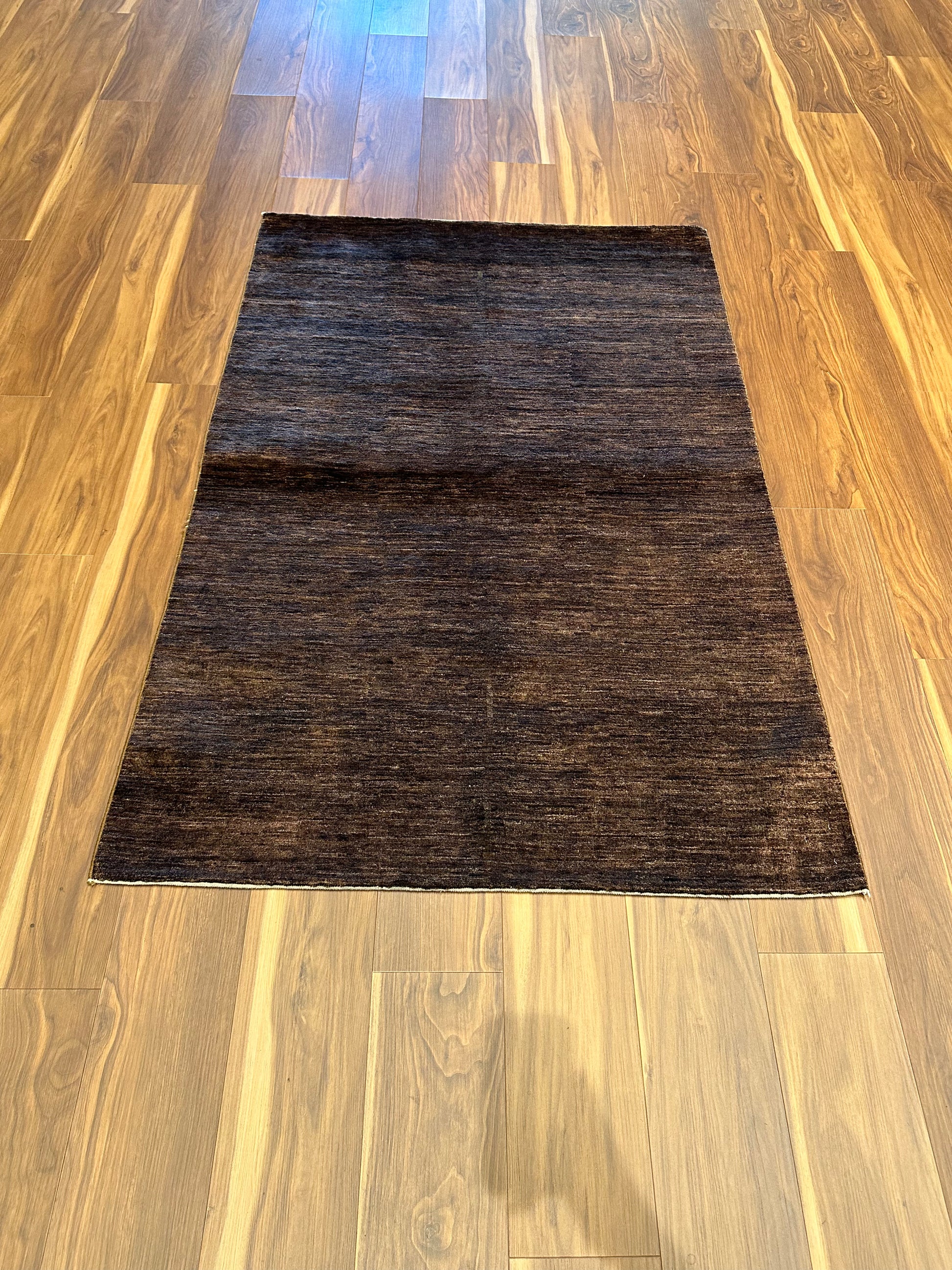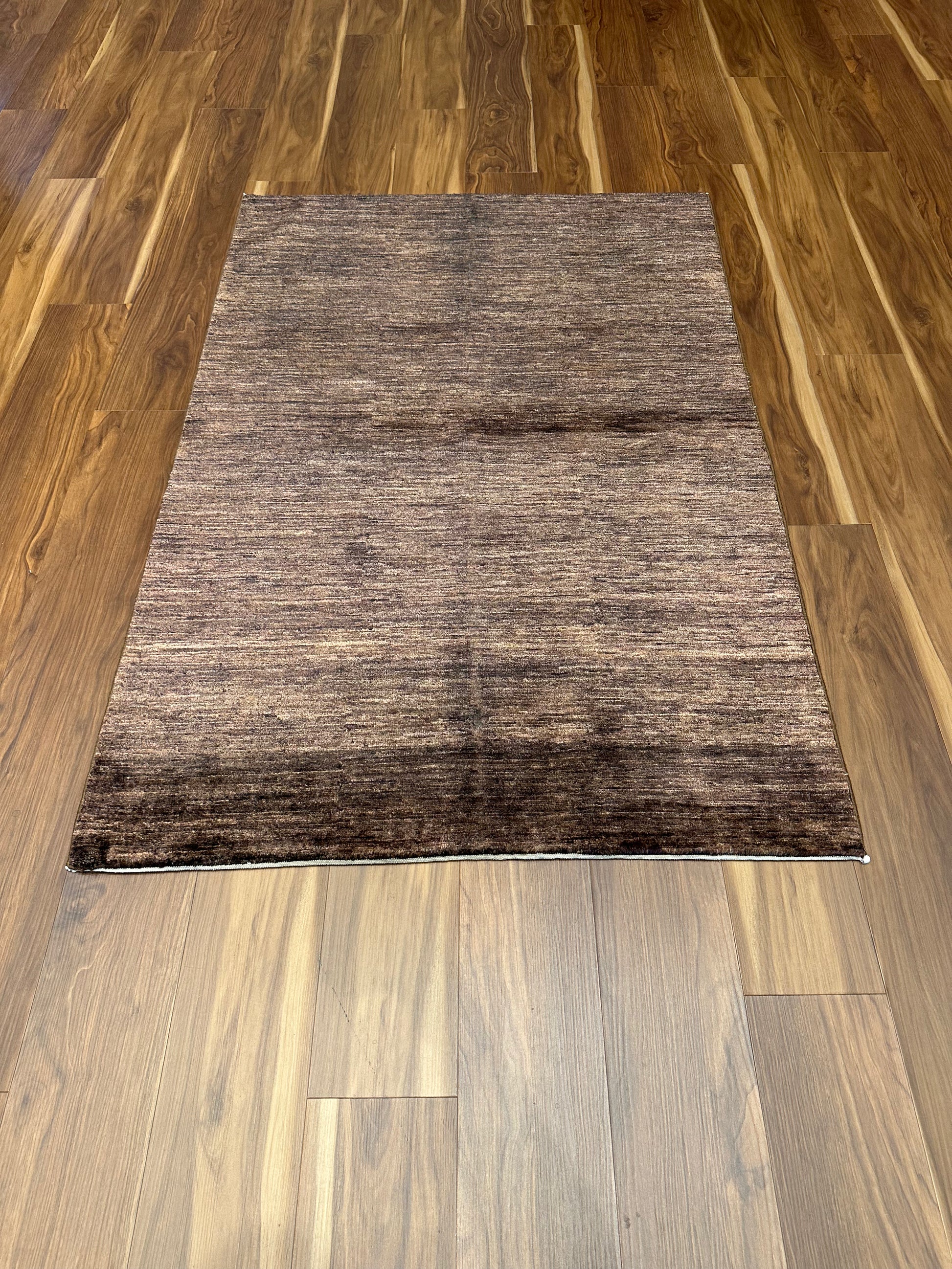 This modern wool rug presents a sophisticated simplicity with its rich brown and subtle taupe hues. It boasts a minimalist design, embodying a contemporary aesthetic that can elevate the decor of any room. The soft wool construction ensures durability and comfort underfoot, while the rug's texture adds a tactile dimension to its elegant color gradient.
