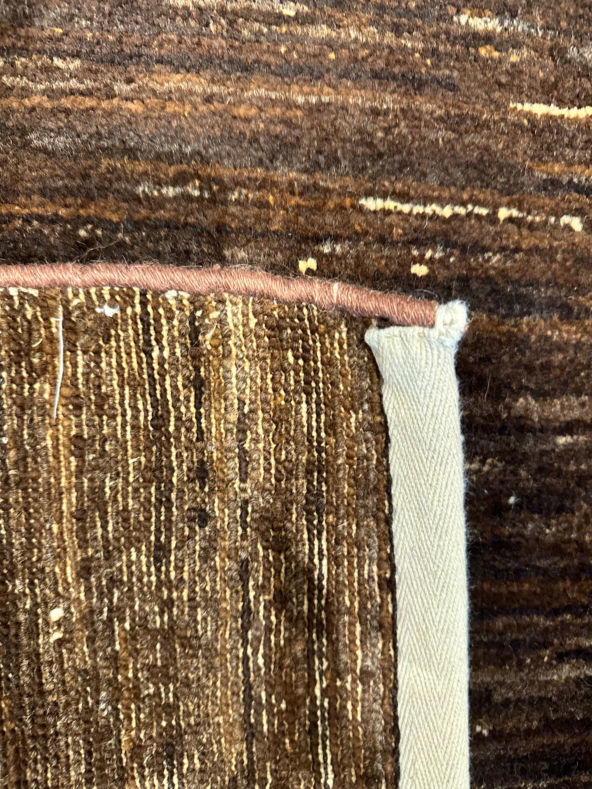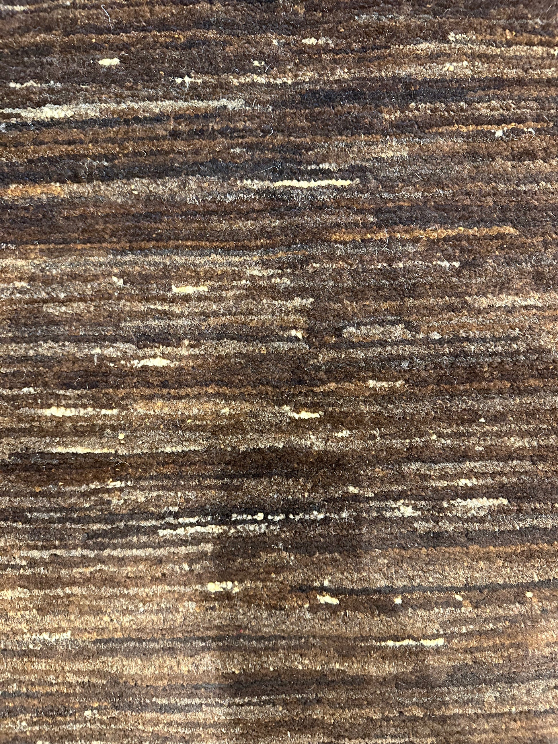 This elegant Modern rug is crafted from high-quality wool, boasting a deep dark brown hue interspersed with beige accents that give the piece a sense of texture and movement. The simple yet sophisticated design suggests an understated chic perfect for complementing a contemporary space. The plush wool ensures a luxurious feel underfoot, making it not only an aesthetic choice but a comfortable one as well.