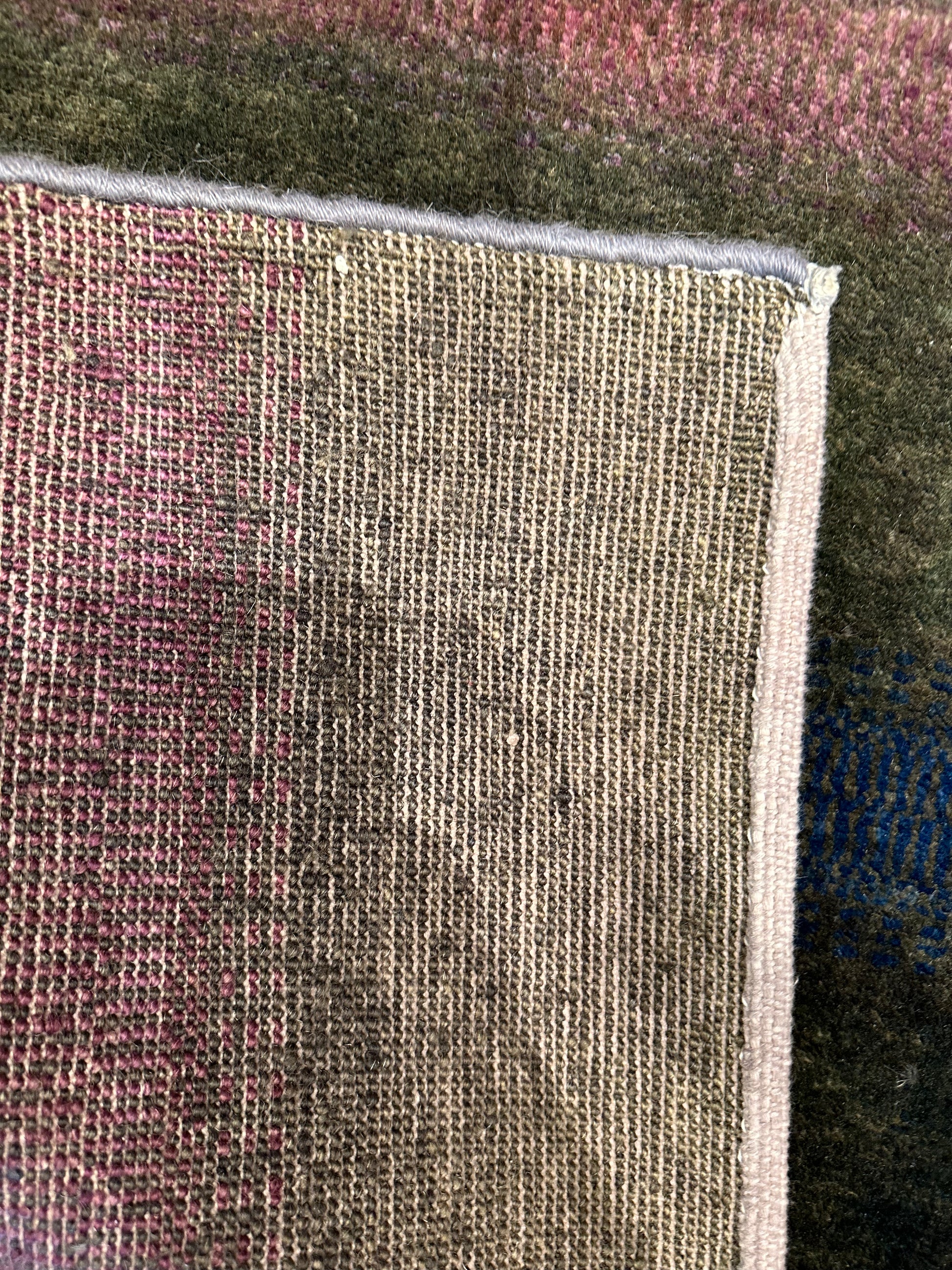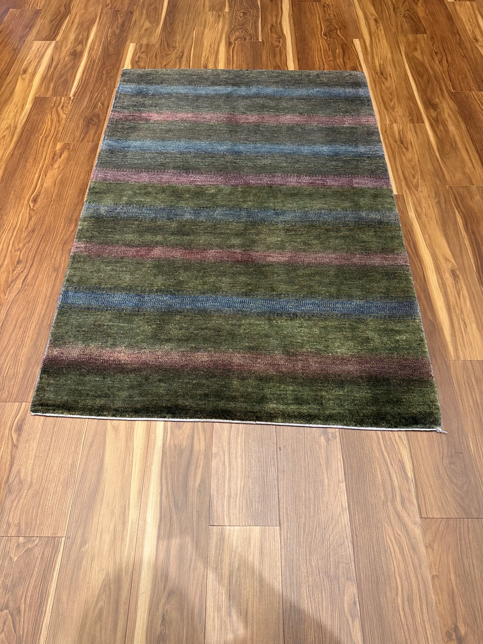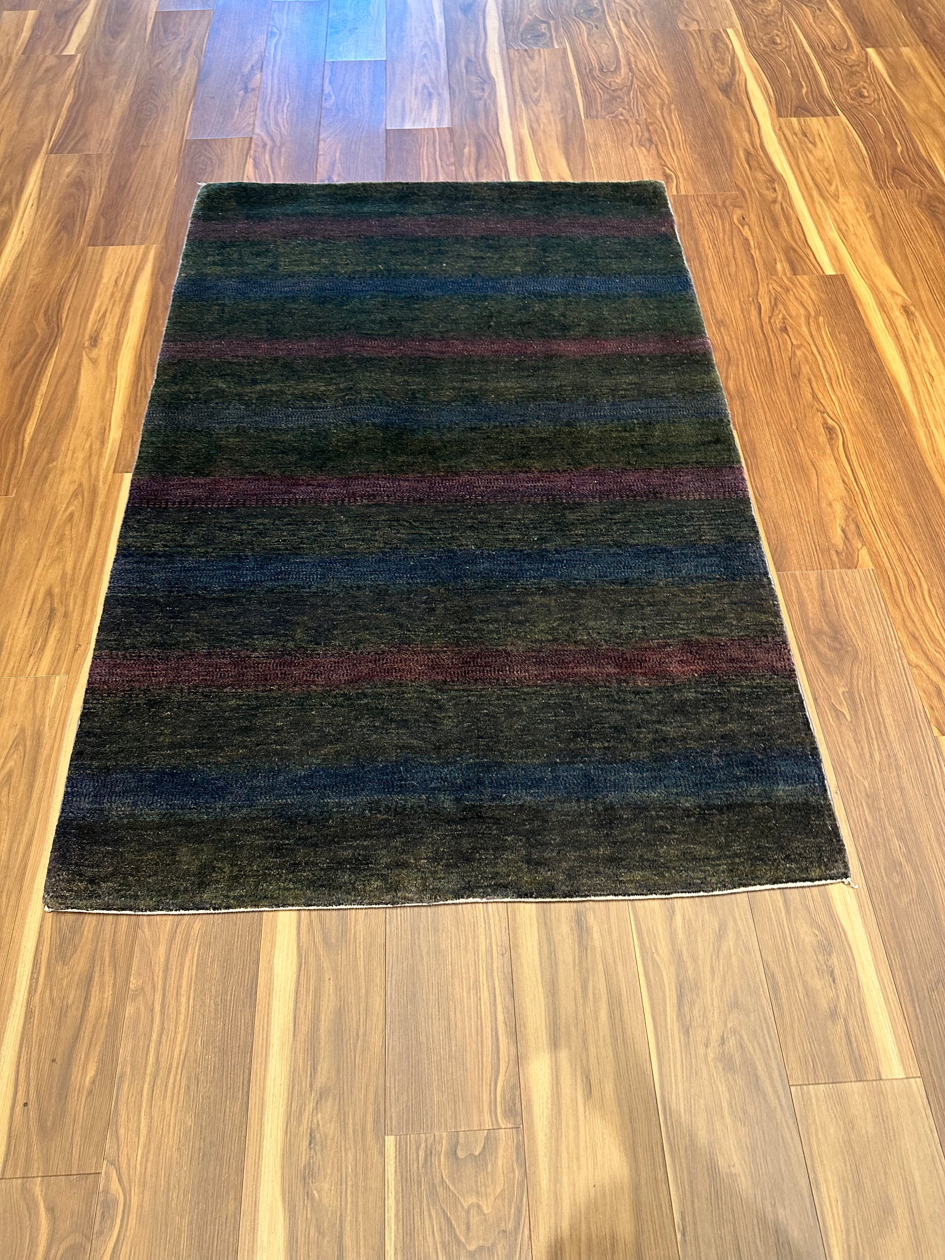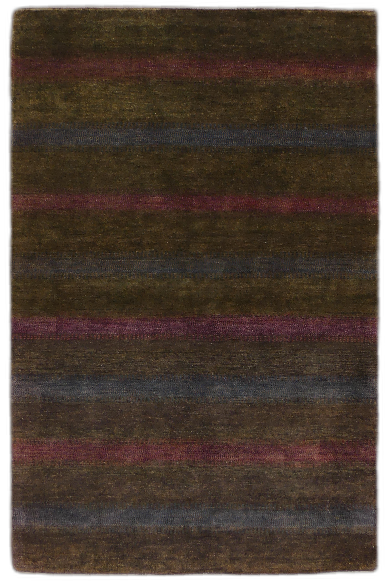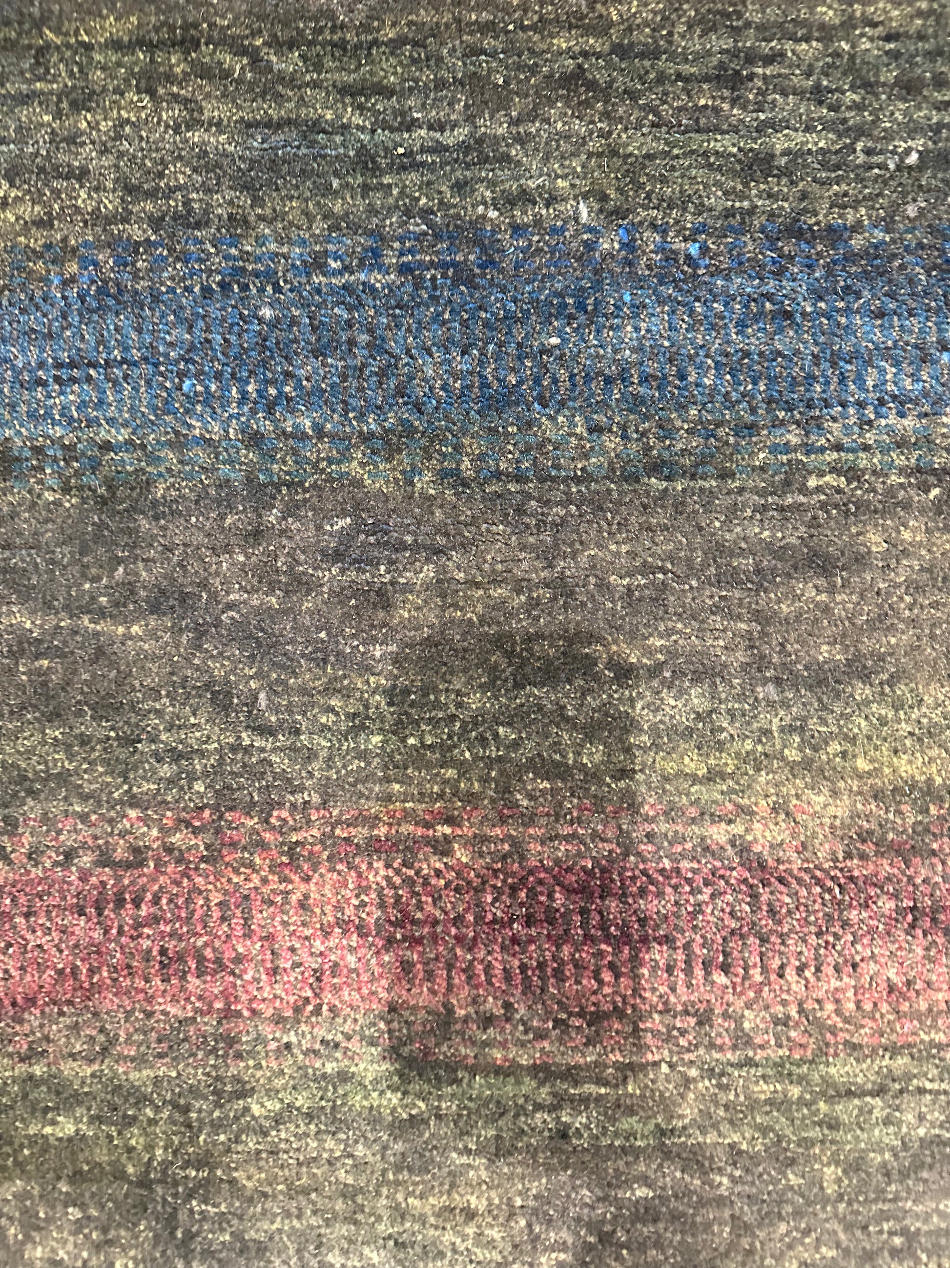 This exquisite piece features a subtle blend of modern aesthetics with a touch of simplistic luxury. The rug's harmonious array of earthy browns, olive tones, interspersed with calming blues and rich burgundy stripes, create a serene yet sophisticated atmosphere. Crafted from the finest wool, it offers durability and softness underfoot, making it an elegant choice for any contemporary interior. Its clean design promotes a welcoming and balanced environment, perfect for both living and workspaces looking for a modern touch.