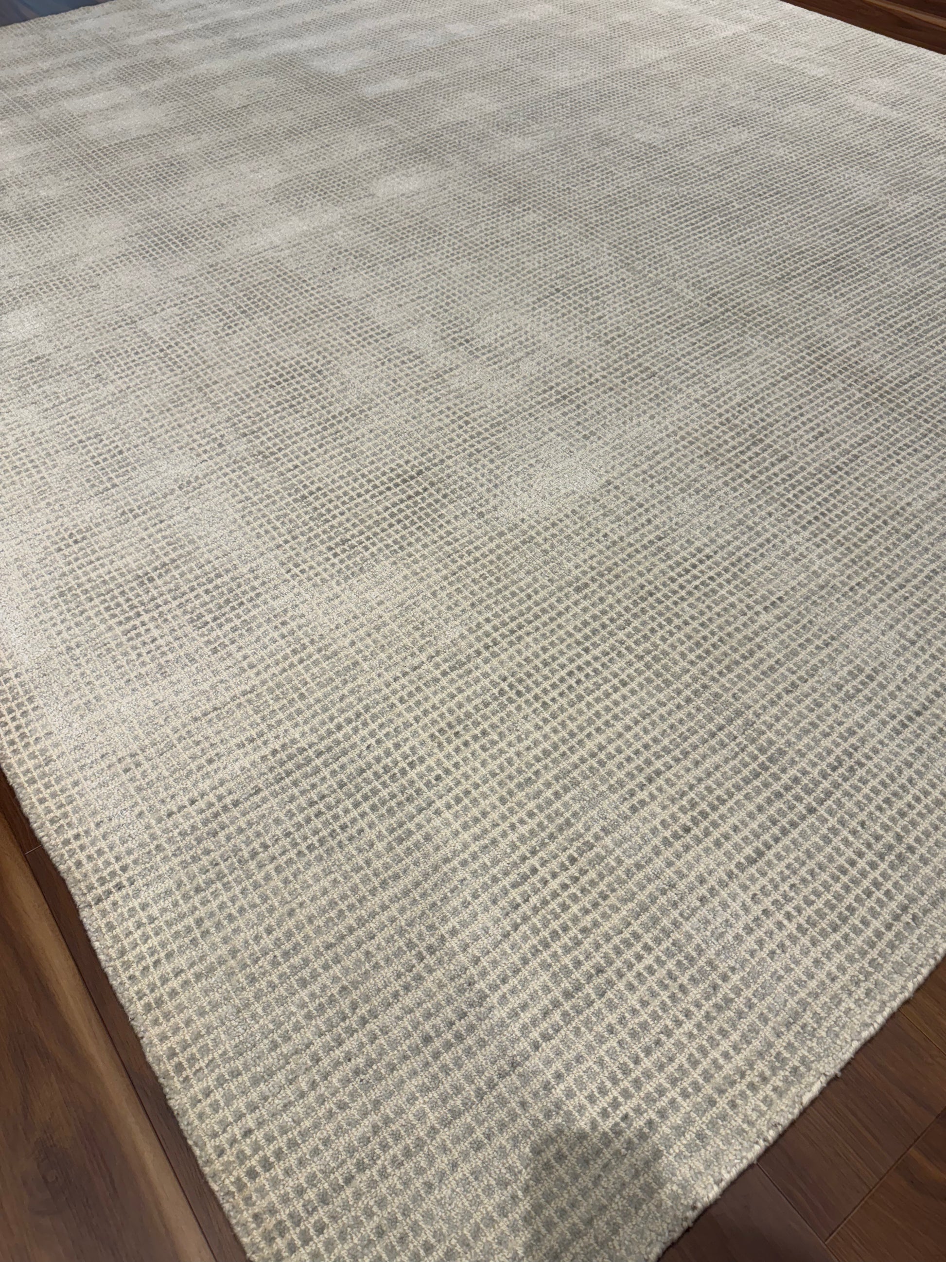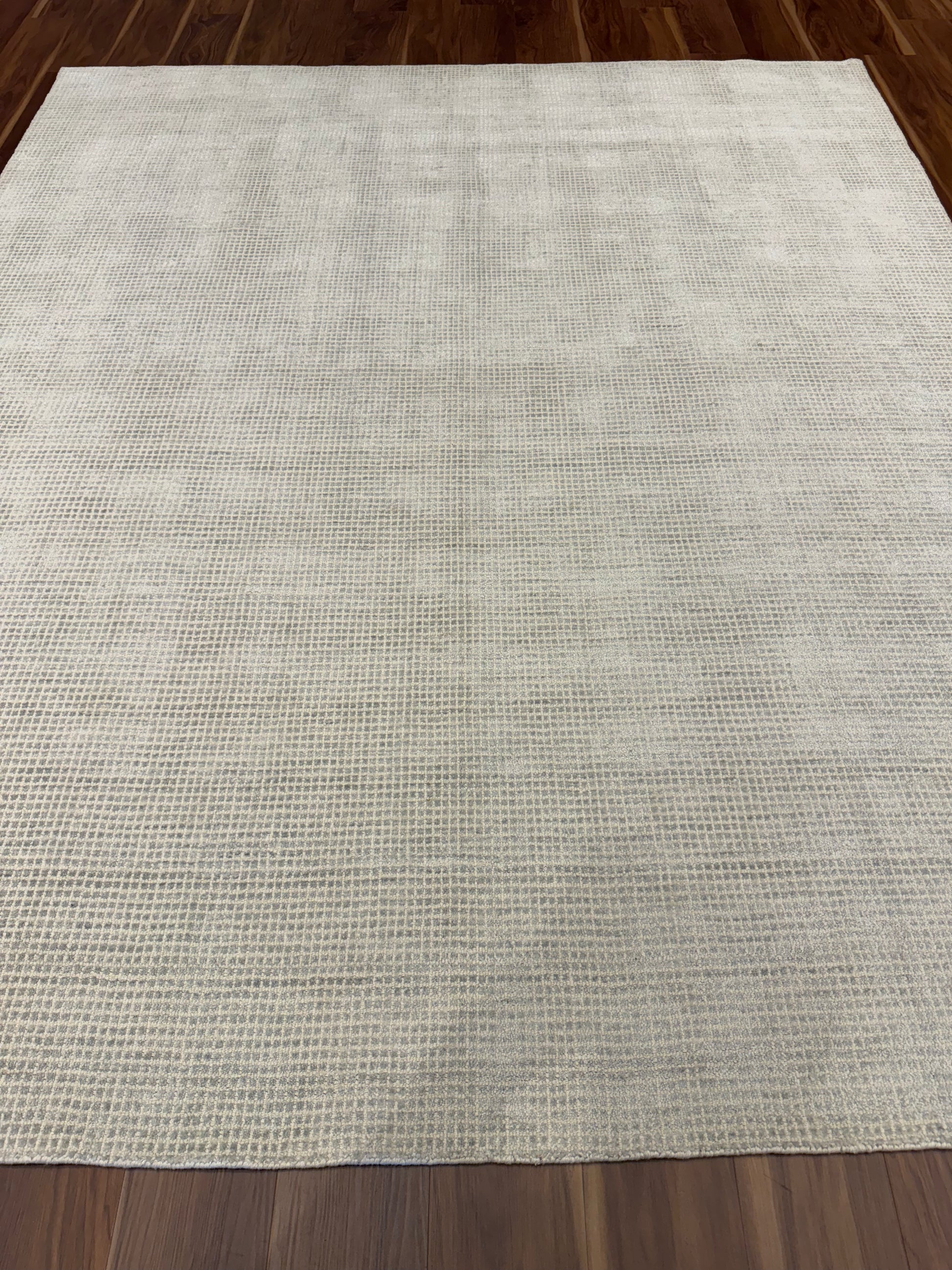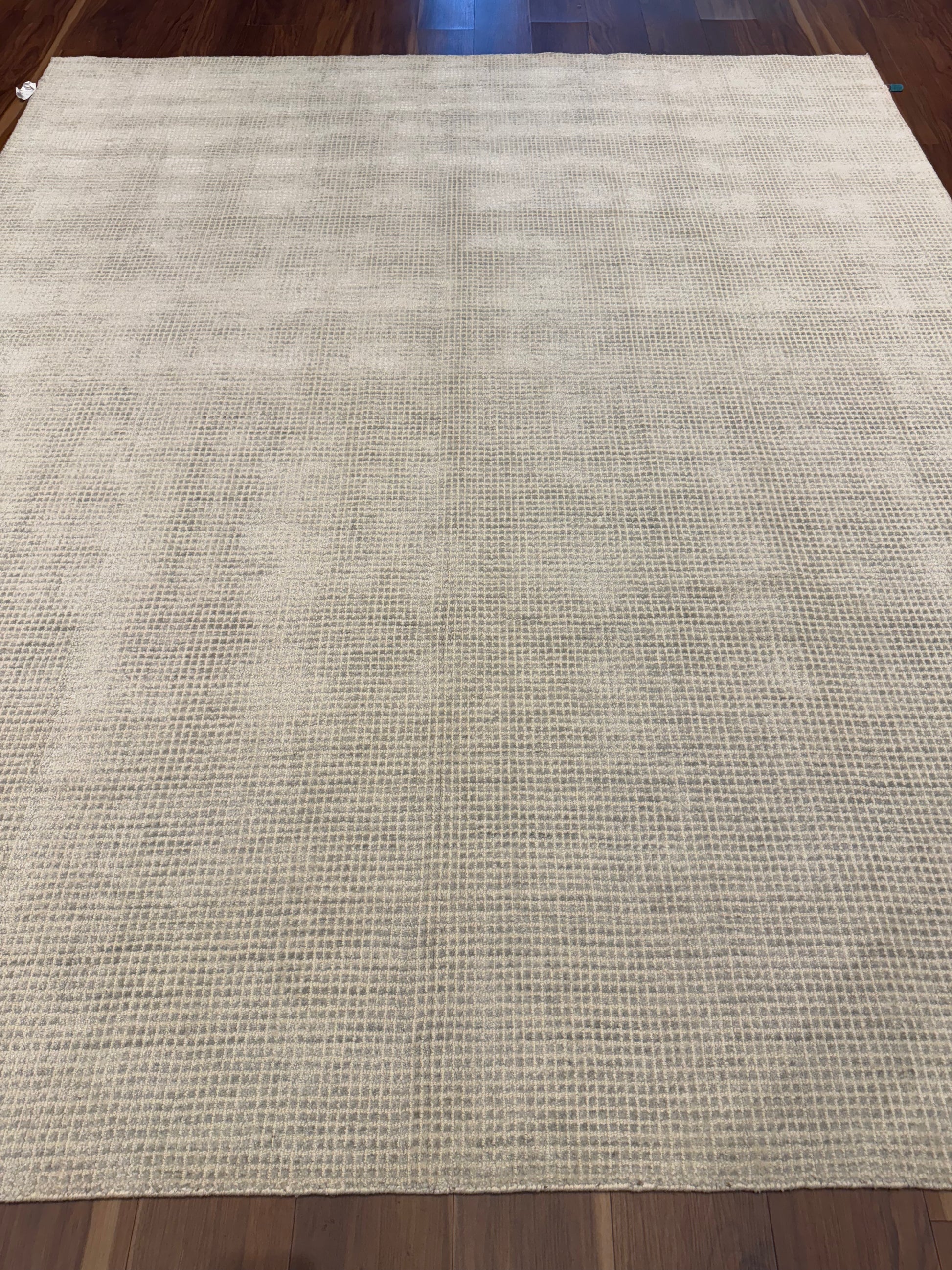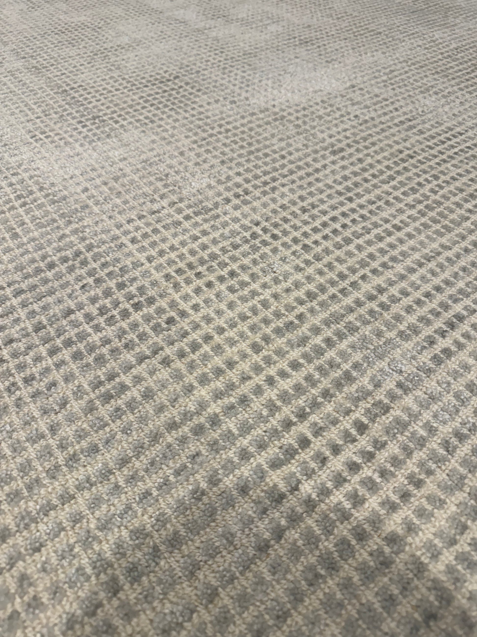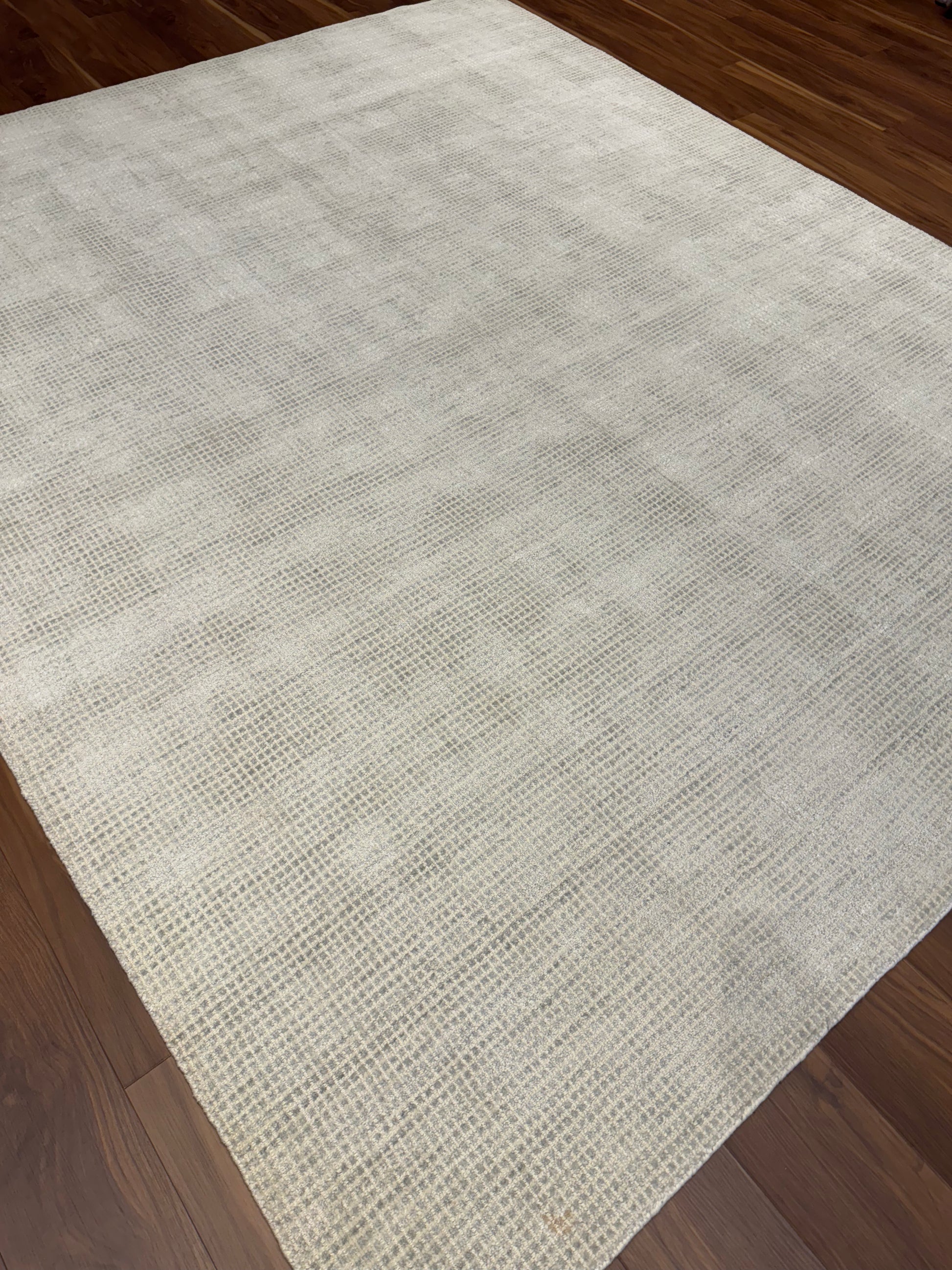 This contemporary rug presents a minimalistic design that complements modern interiors. Its seamless blend of wool and silk imparts a subtle sheen and soft, luxurious texture. The understated beige tone offers versatility, easily integrating with various color schemes. Ideal as a grounding element in a living space or under furniture, this rug provides elegance and comfort without overwhelming its surroundings.