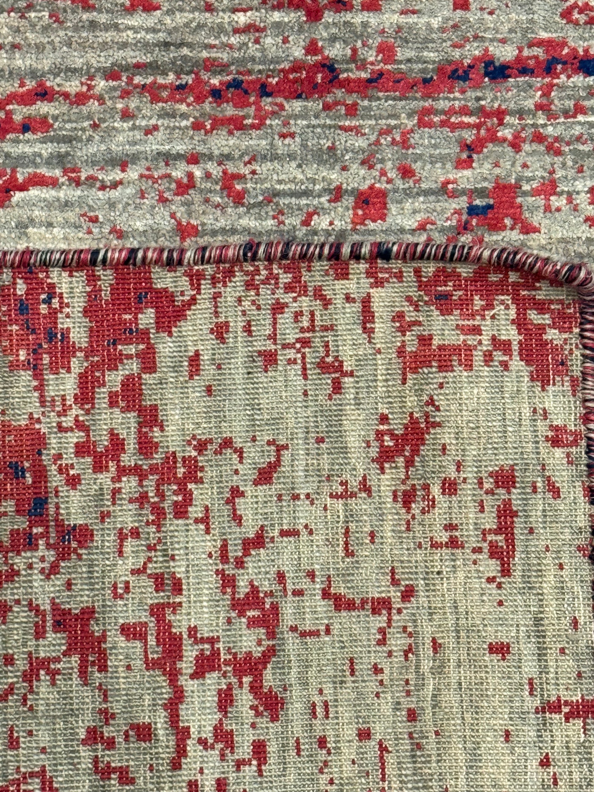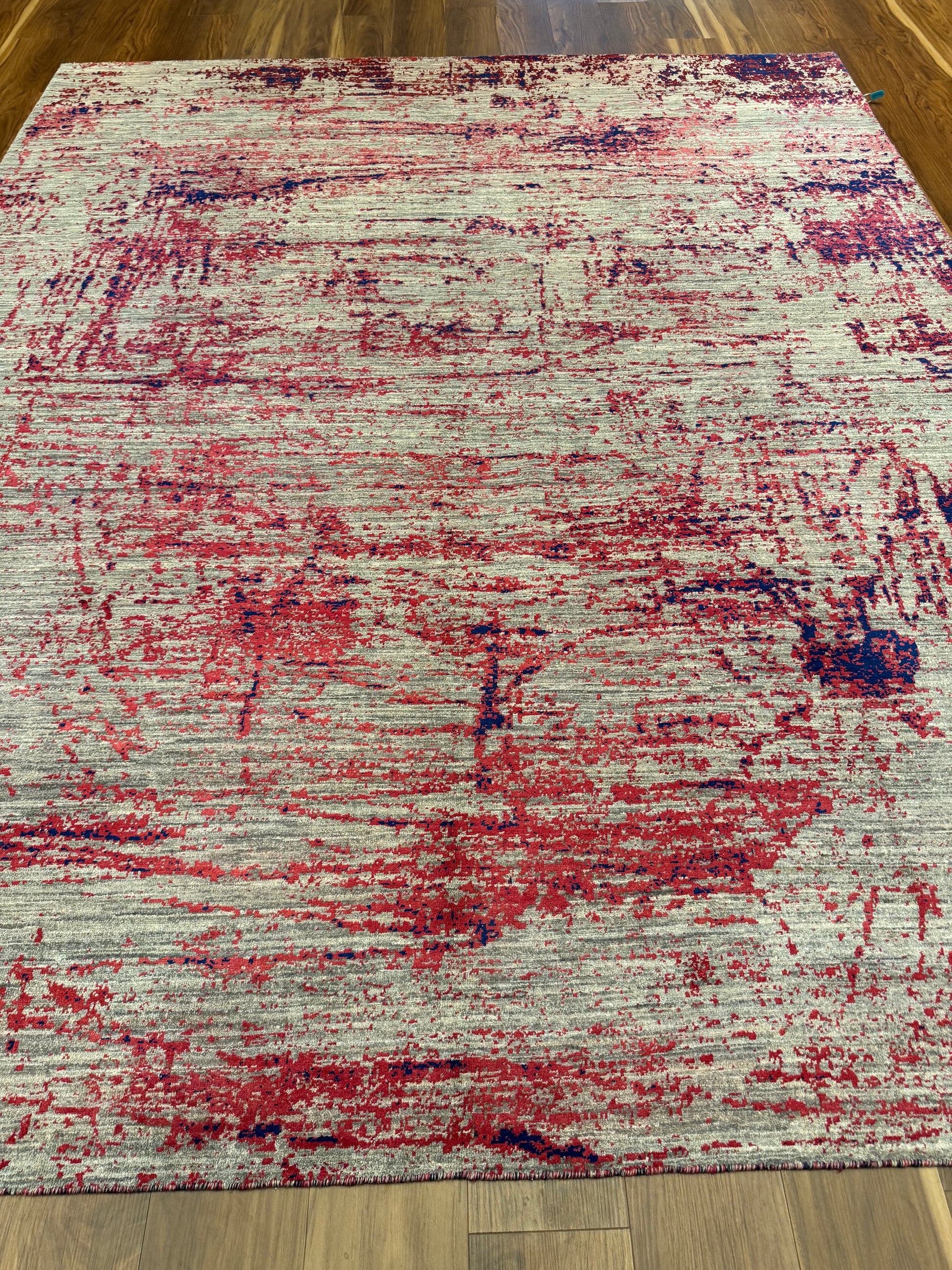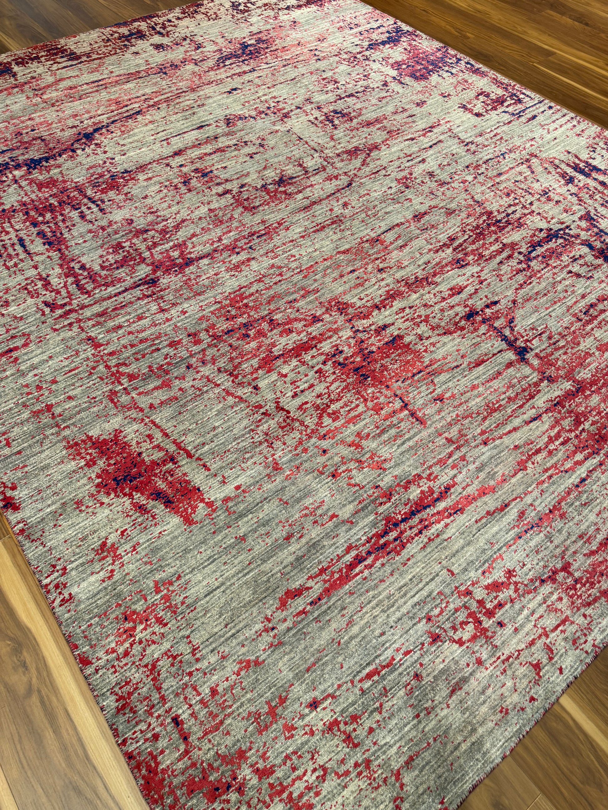 This Modern Abstract area rug is a stunning blend of contemporary artistry and luxurious comfort. Its abstract design with brush stroke-like patterns in a vibrant palette of red and beige hues, makes it an eye-catching statement piece for any room. Made from a premium blend of wool and silk, it feels as exquisite underfoot as it looks. Perfect for adding warmth and texture to your living space, this rug is sure to be a conversation starter and a favorite for years to come.