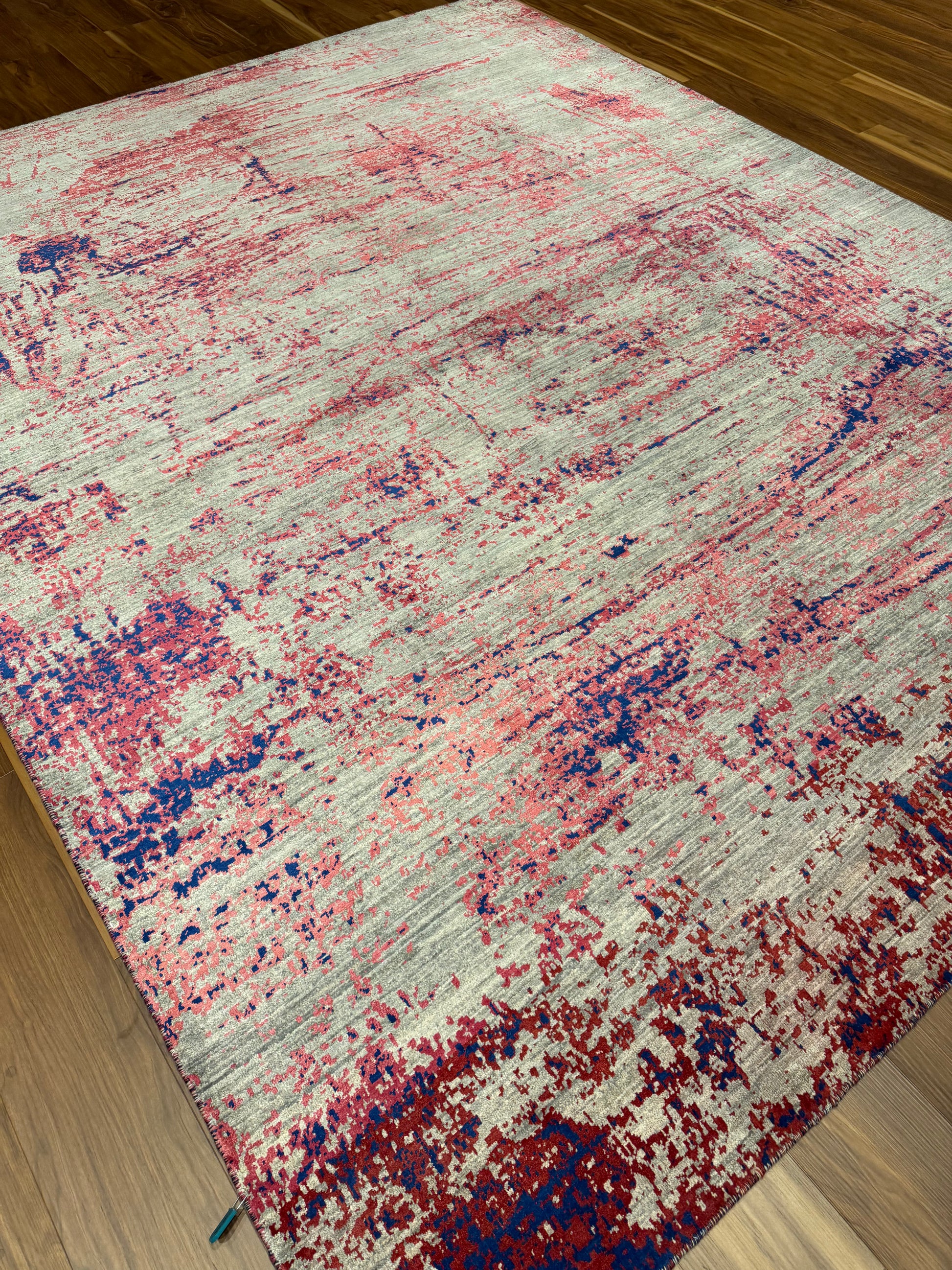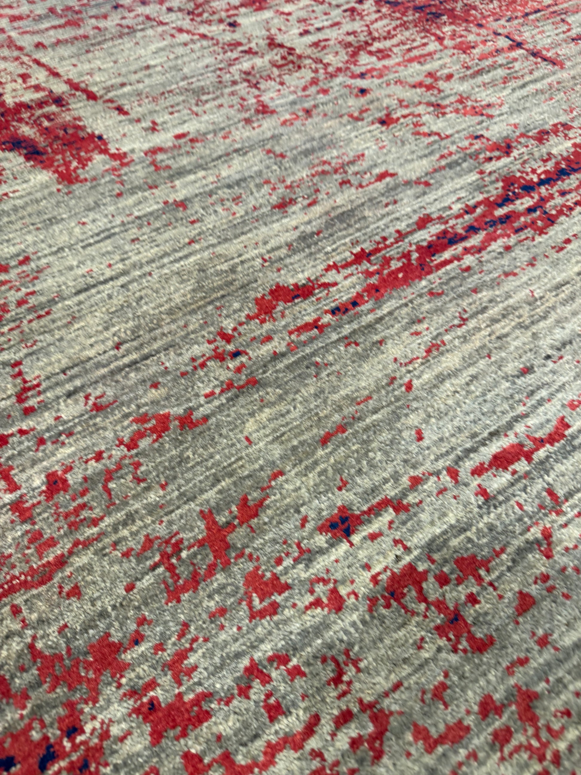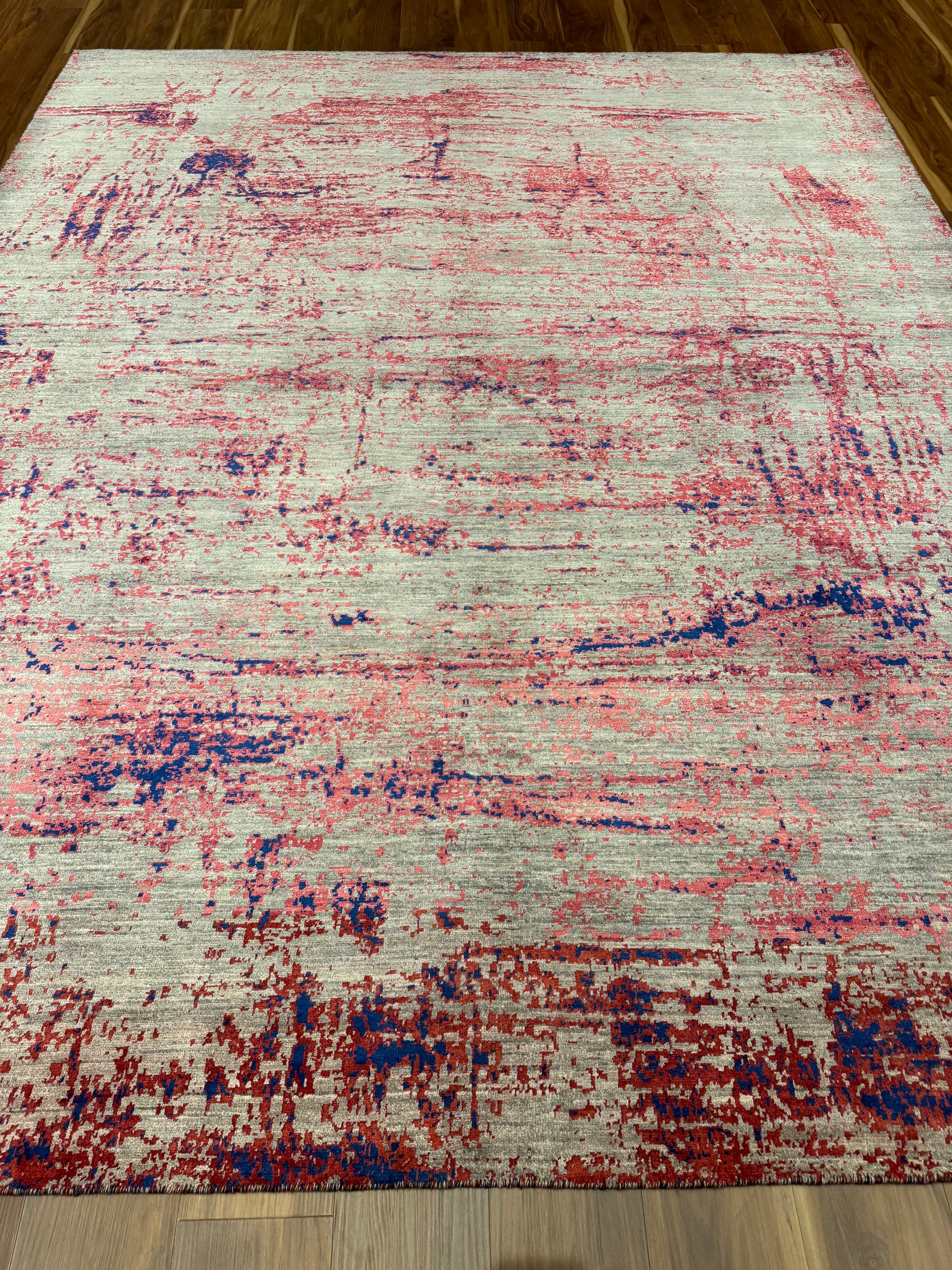 This Modern Abstract area rug is a stunning blend of contemporary artistry and luxurious comfort. Its abstract design with brush stroke-like patterns in a vibrant palette of red and beige hues, makes it an eye-catching statement piece for any room. Made from a premium blend of wool and silk, it feels as exquisite underfoot as it looks. Perfect for adding warmth and texture to your living space, this rug is sure to be a conversation starter and a favorite for years to come.