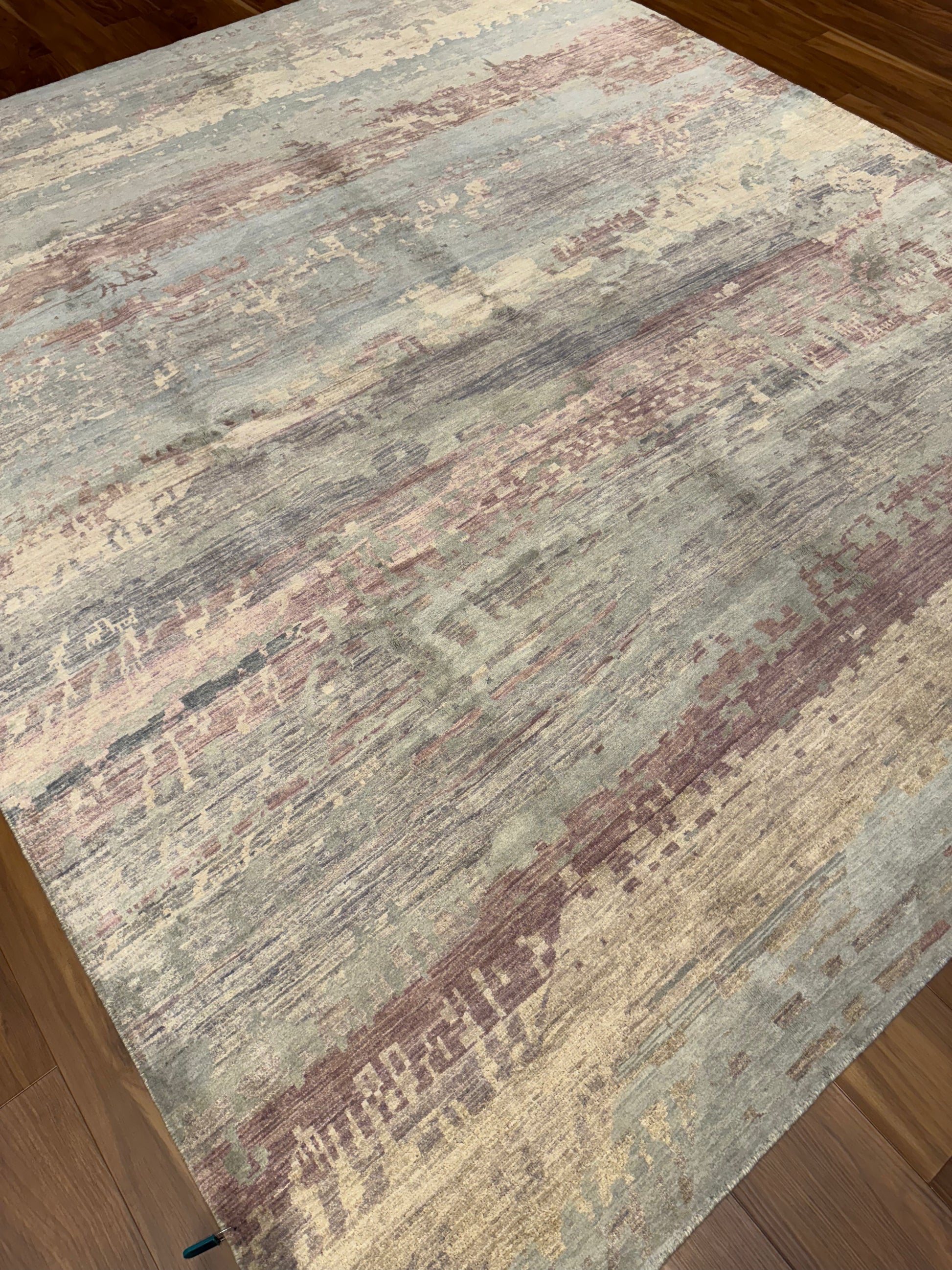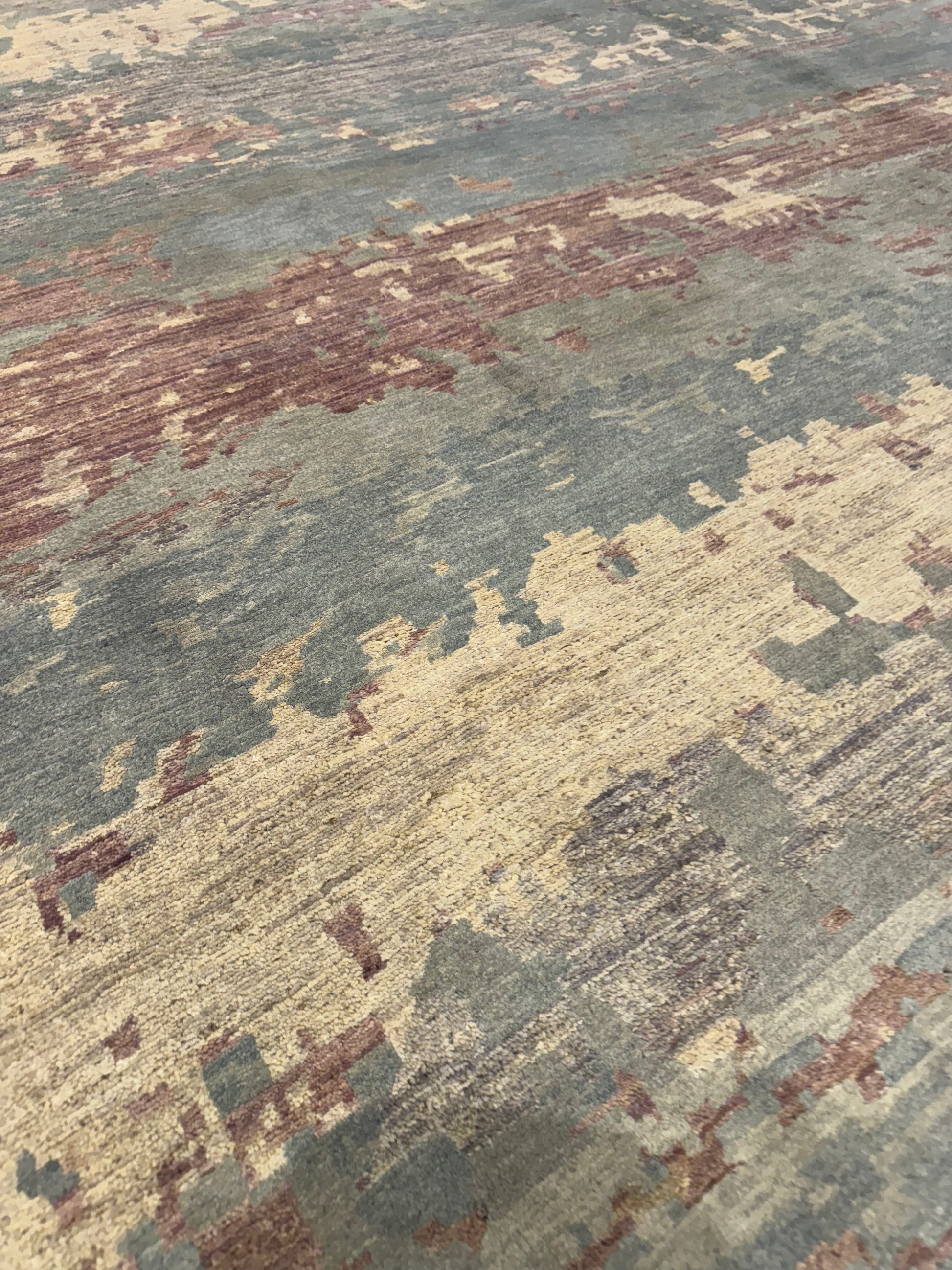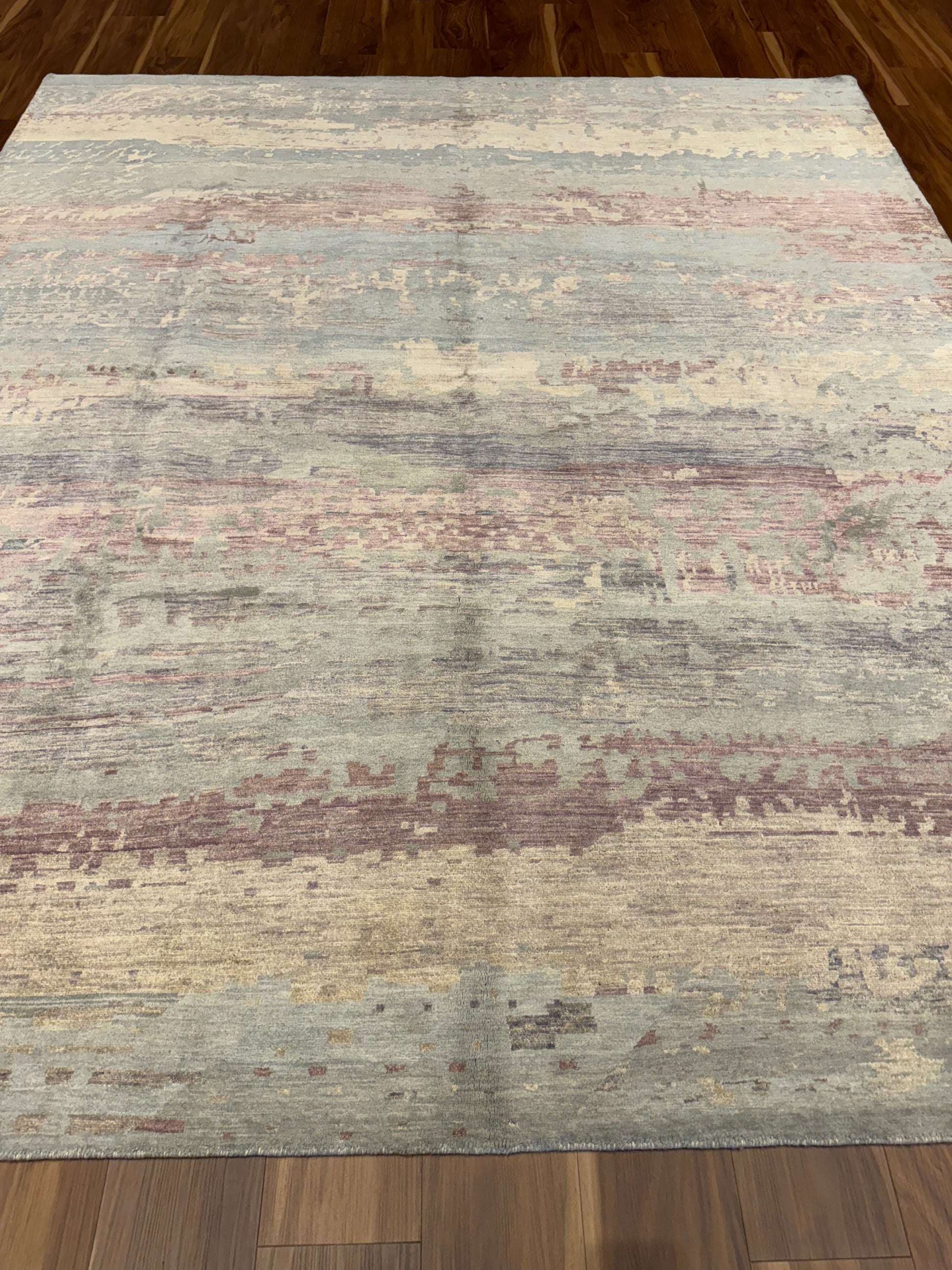 This exquisite wool rug flaunts a contemporary horizontal pattern, blending organic hues such as beige, brown, gold, and rust. Perfect for modern interiors, it showcases an elegant play of colors that evoke a serene and inviting ambiance, mirroring the beauty of aged materials with its subtle gradients and textures. Its durable wool construction promises comfort underfoot and long-lasting appeal, making it an ideal choice for any living space seeking a touch of modern sophistication.
