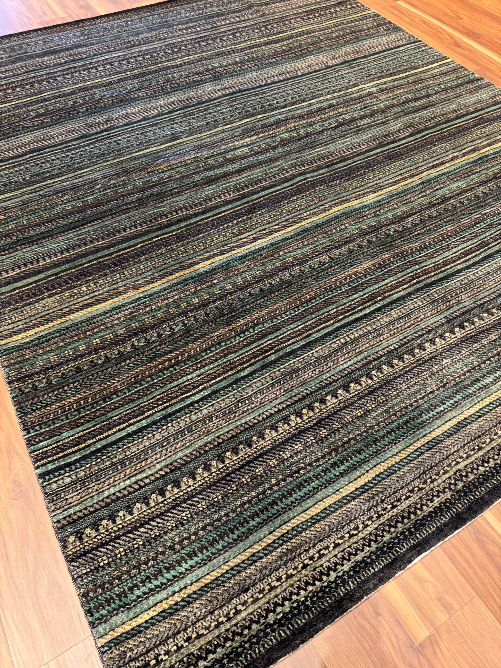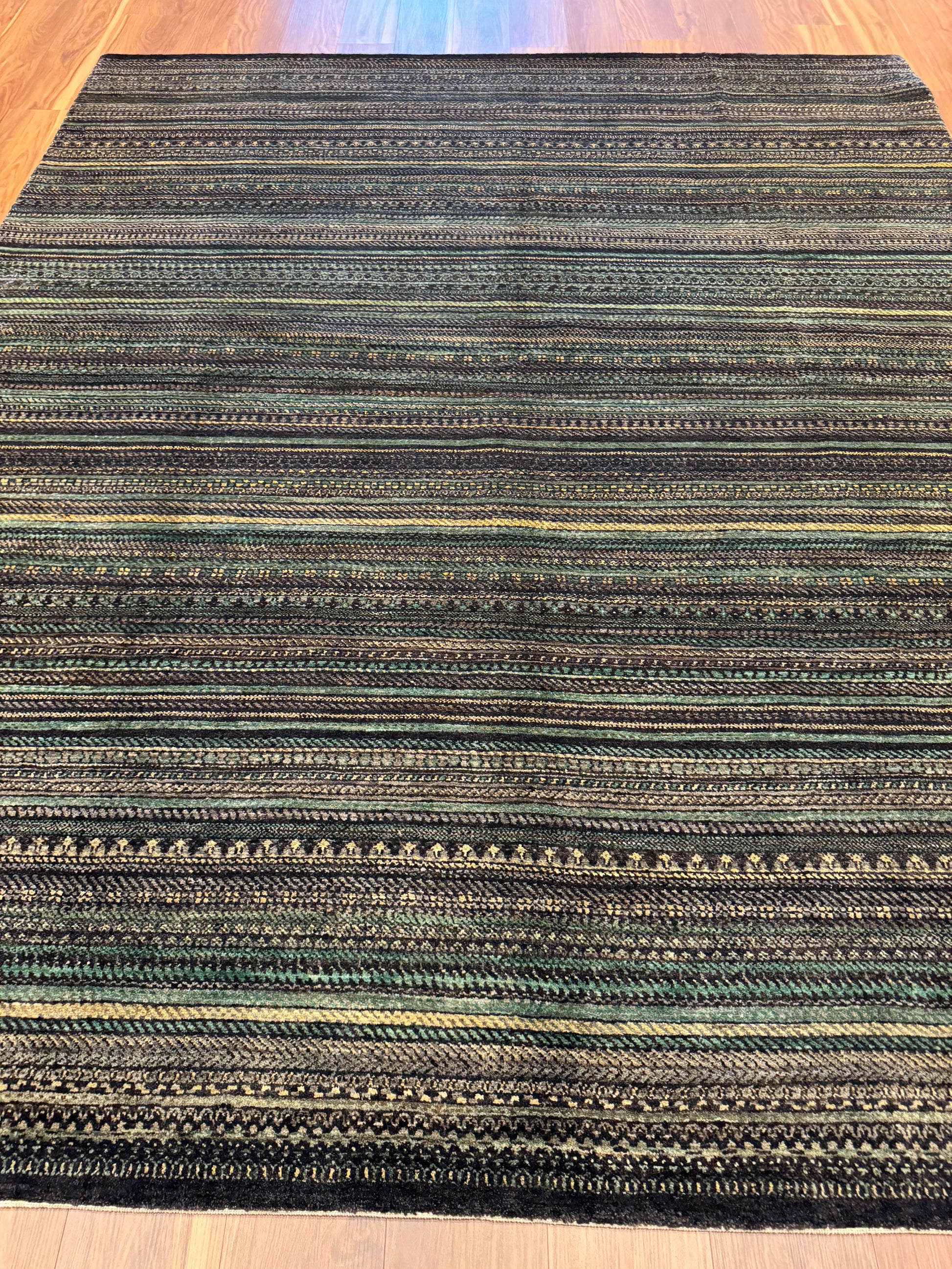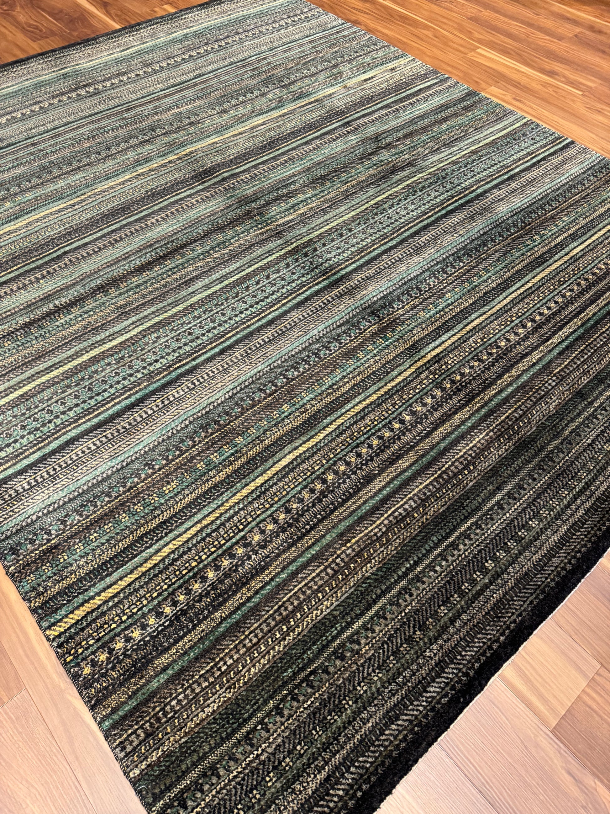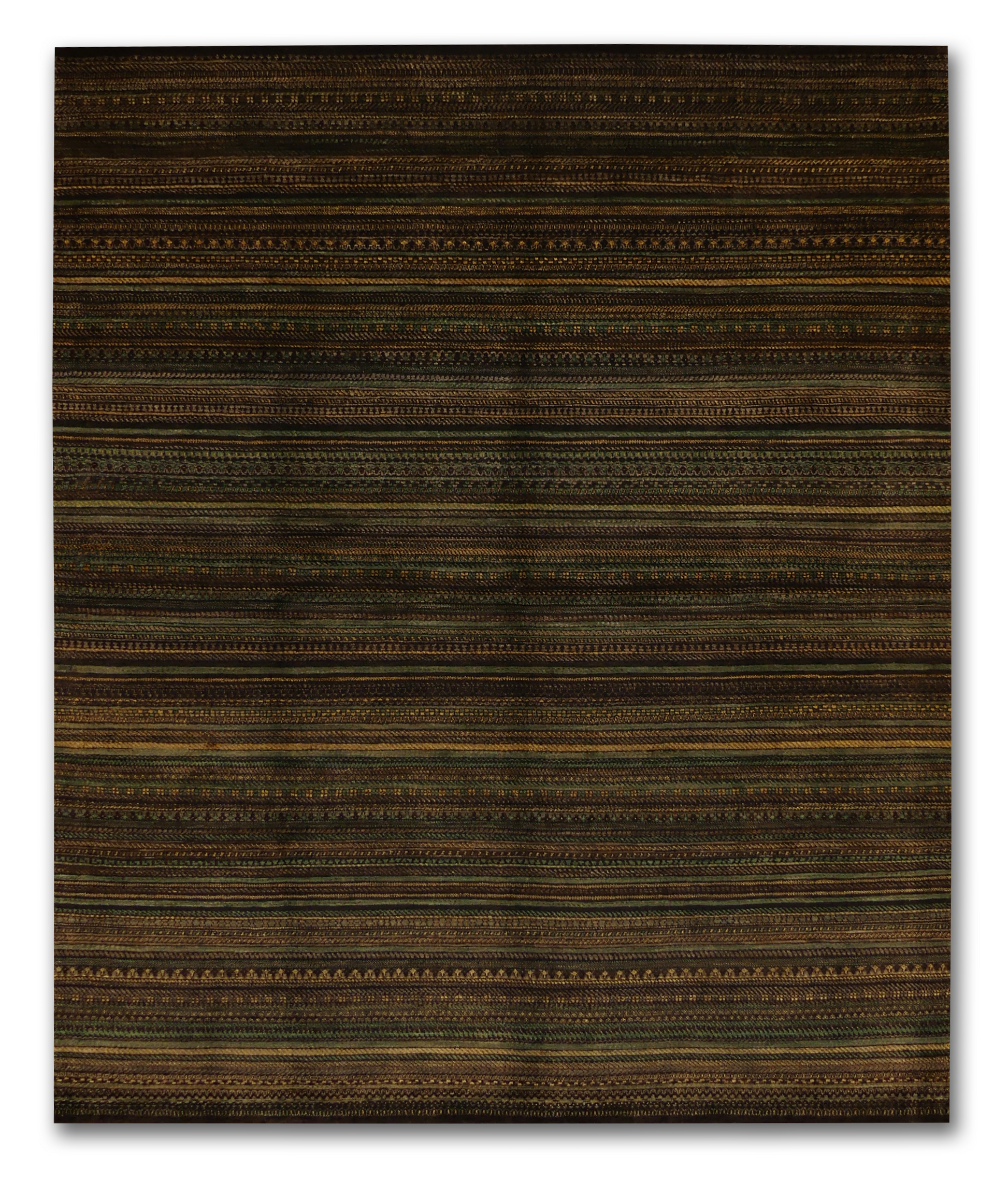 The Modern Gabbeh rug is a contemporary piece that showcases a rich amalgamation of earthy hues and subtle patterns. Its texture and comfort come from the high-quality wool used in its making, ensuring both warmth and durability. With its minimalist striped design, this rug effortlessly blends simplicity with a touch of elegance, making it a versatile addition to any modern living space.