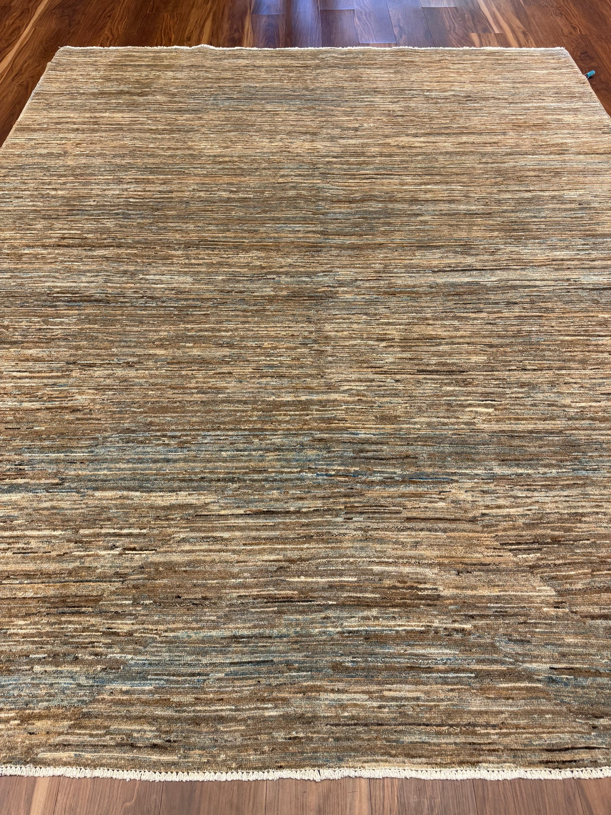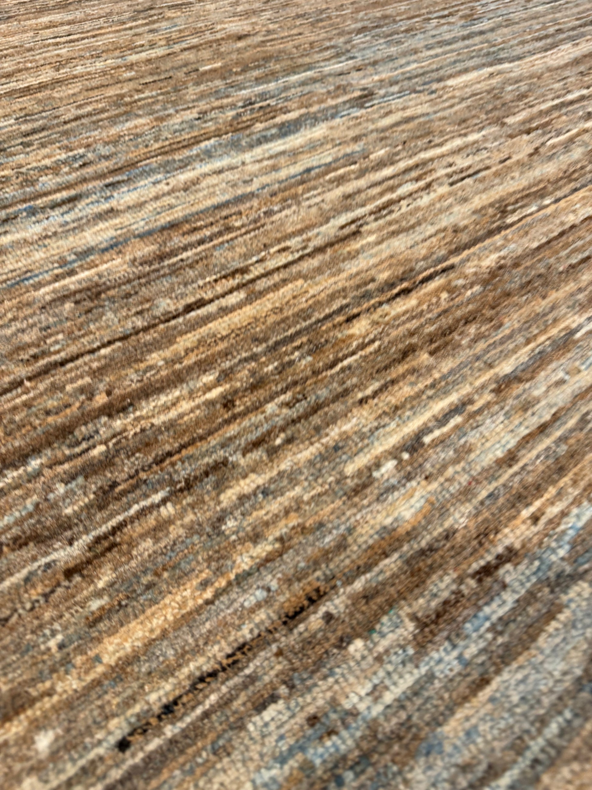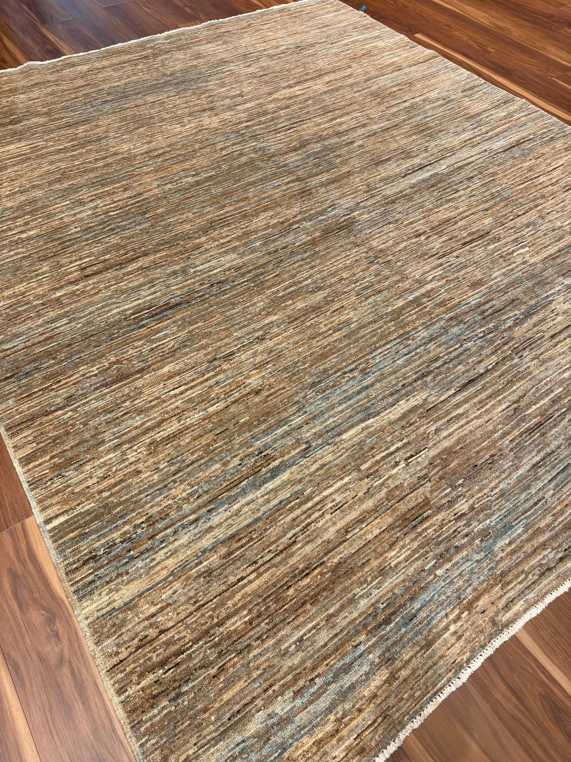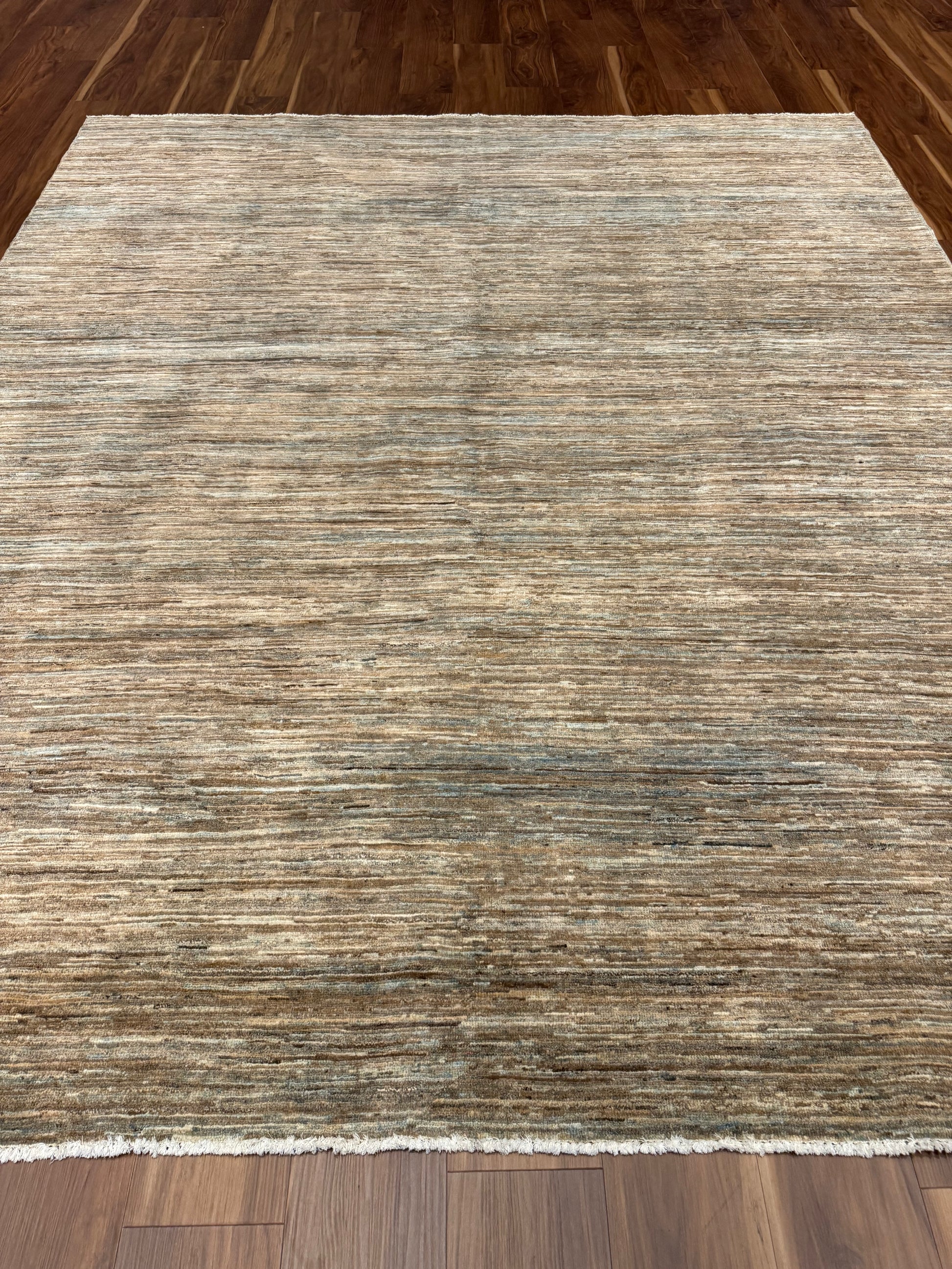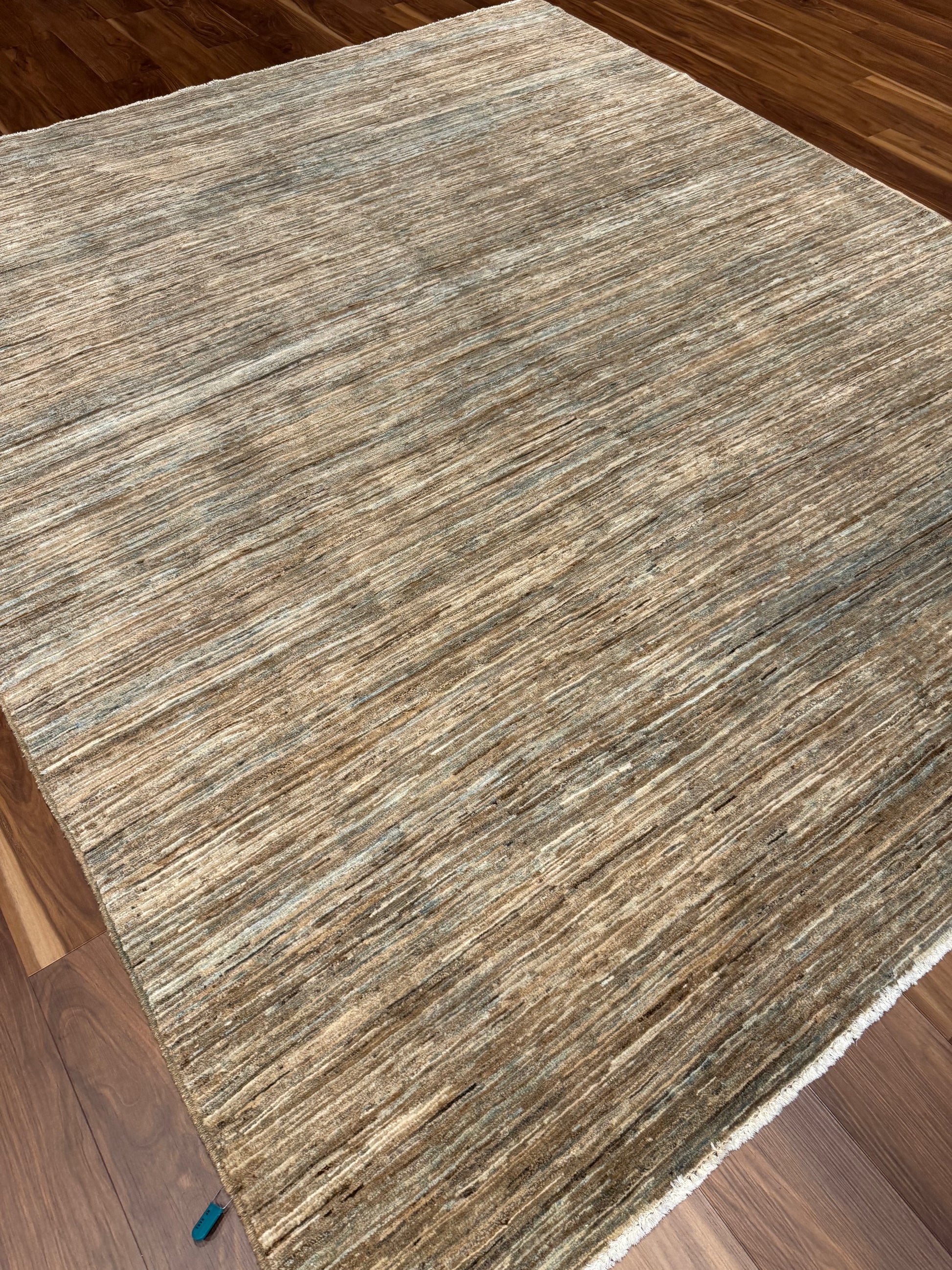 This Modern Gabbeh rug boasts a luscious blend of wool and silk, giving it a luxurious texture and sheen. Its exquisite gradient of beige, brown, and tan hues provide a warm, earthy feel that can add an inviting touch to any interior. The minimalist design is perfect for contemporary spaces that value simplicity and elegance. With fine craftsmanship, this rug embodies both modern aesthetics and timeless comfort, making it a versatile piece for any home or office setting.