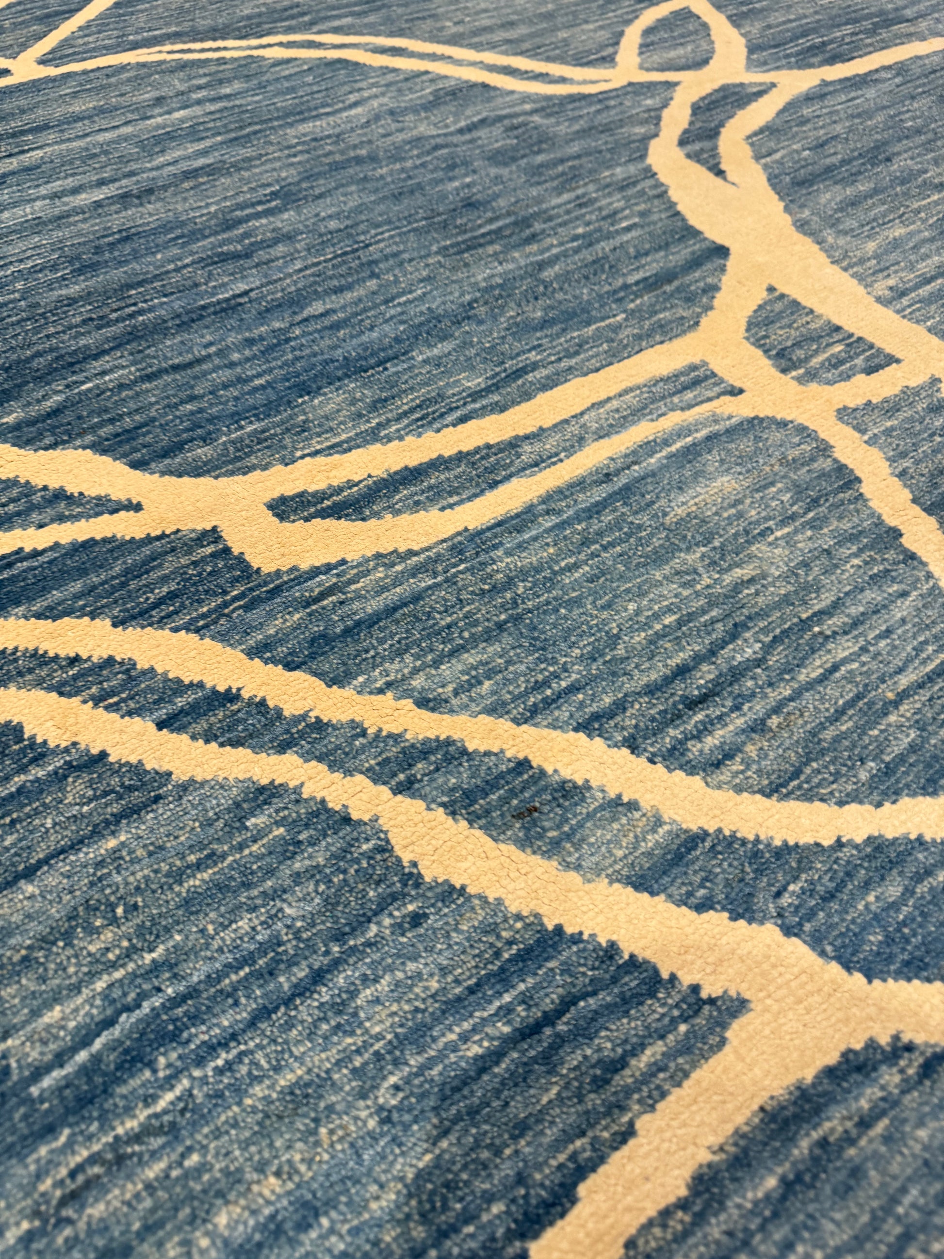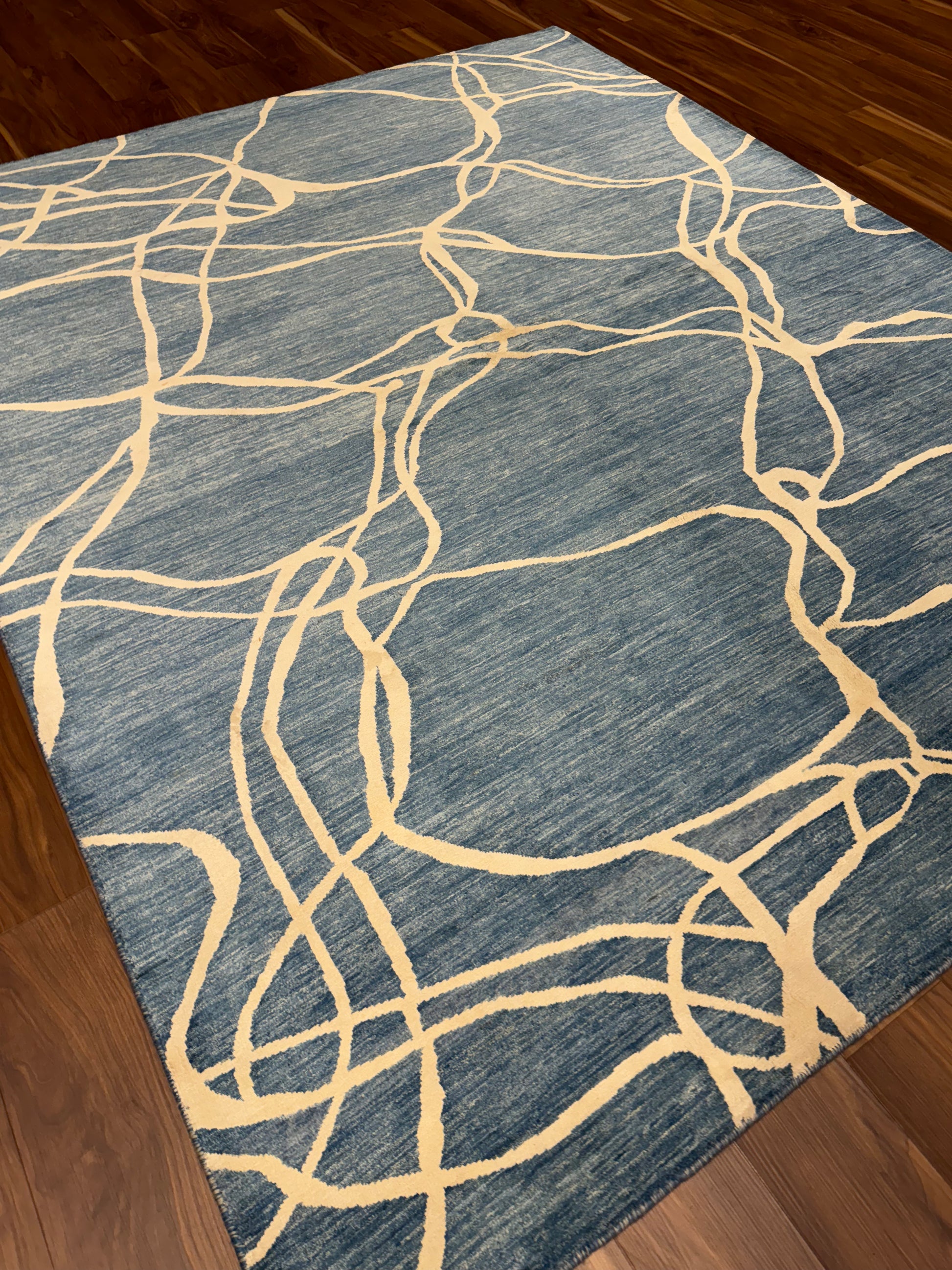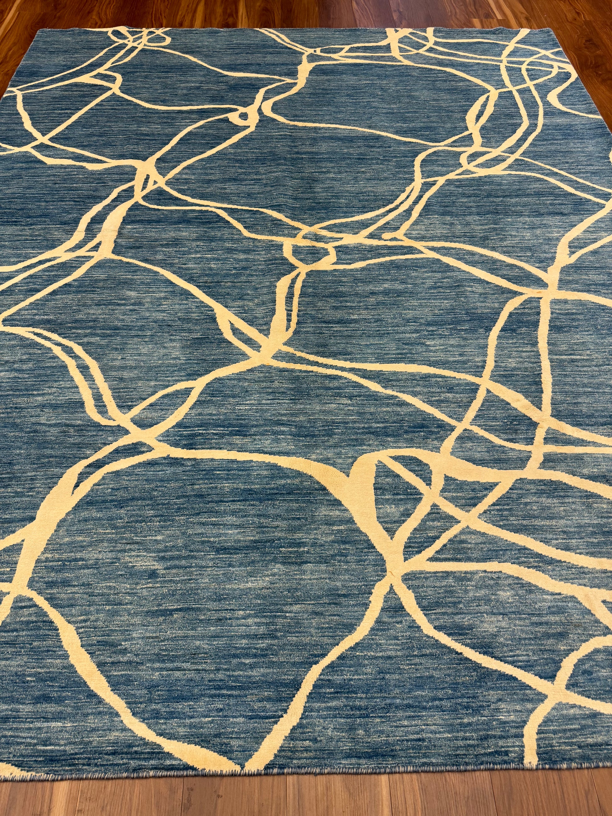 This Modern Gabbeh rug features a sophisticated abstract pattern that evokes the ebb and flow of natural landscapes. Crafted from high-quality wool, its plush texture and dynamic design present a blend of comfort and contemporary style. It adds an artistic touch to any room, making a statement of elegance without overwhelming the space. Perfect for adding warmth and a hint of modern artistry to your living area, bedroom, or study.