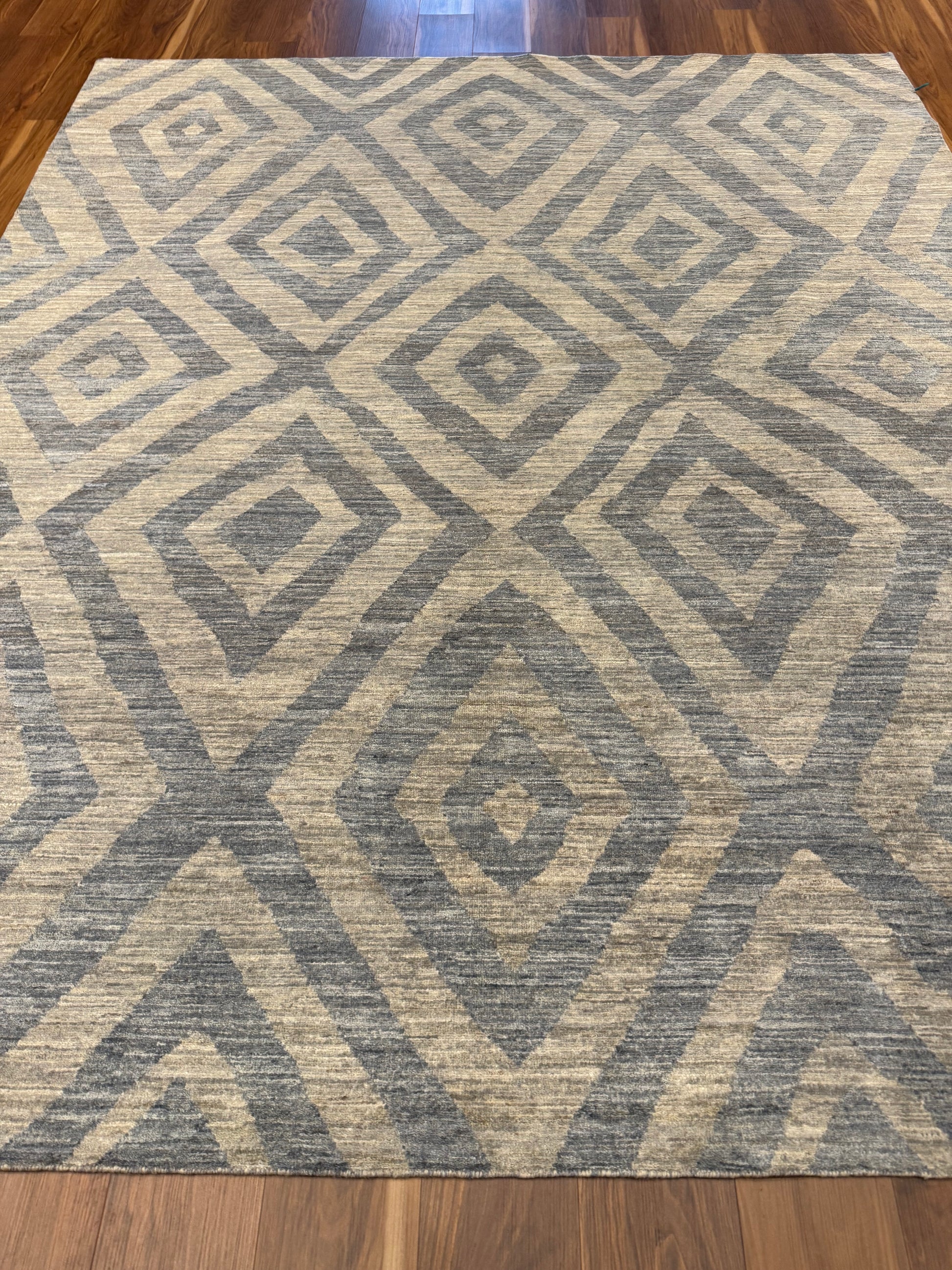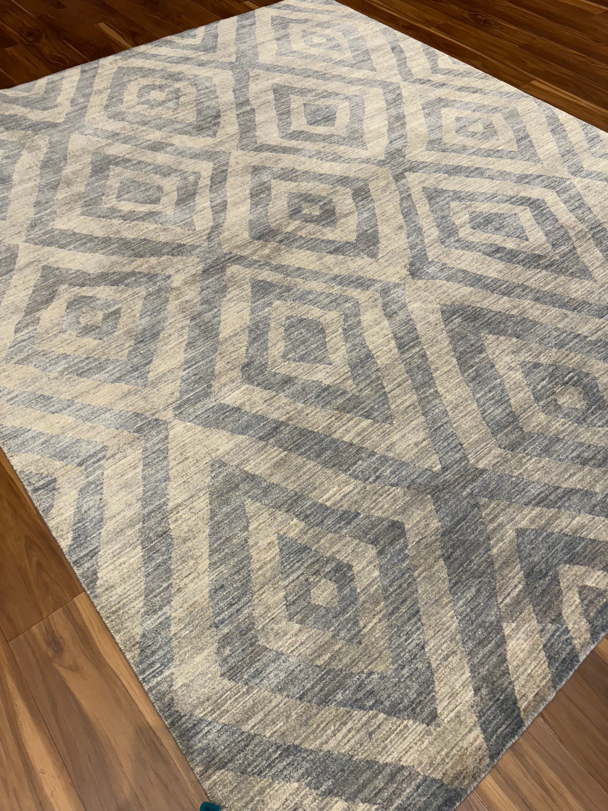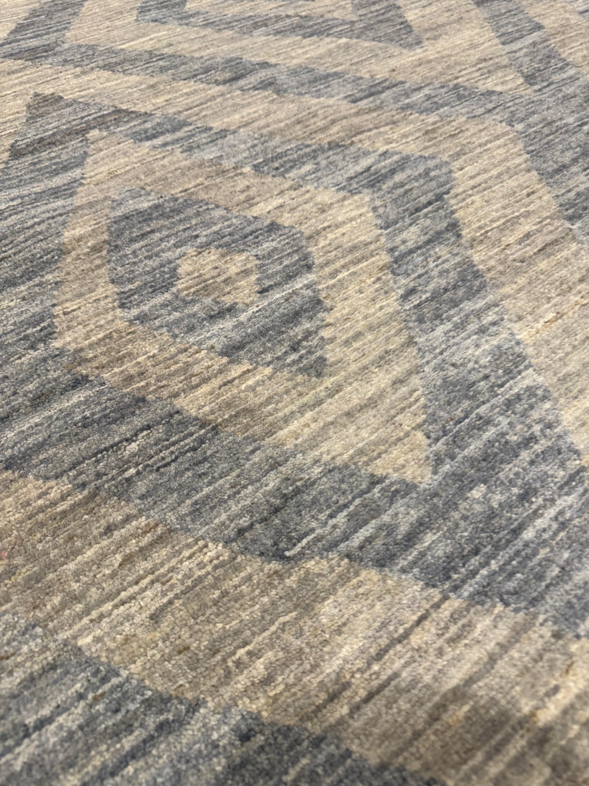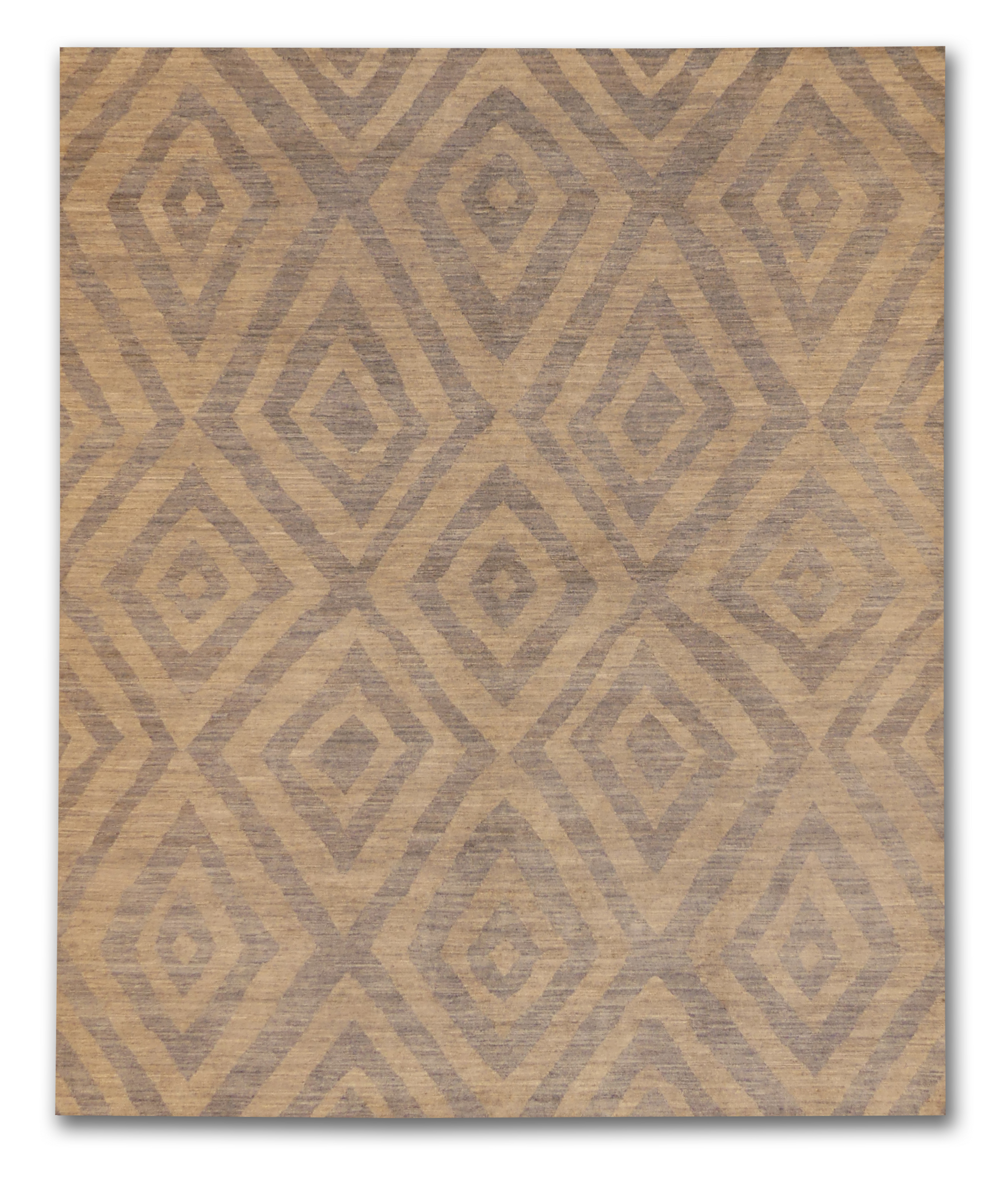 This rug features a sophisticated contemporary design with a seamless geometric pattern that adds a touch of elegance to any room. Crafted from high-quality wool, it offers durability and comfort underfoot. The neutral color palette with its beige and taupe hues provides versatility, making it suitable for various interior decors.