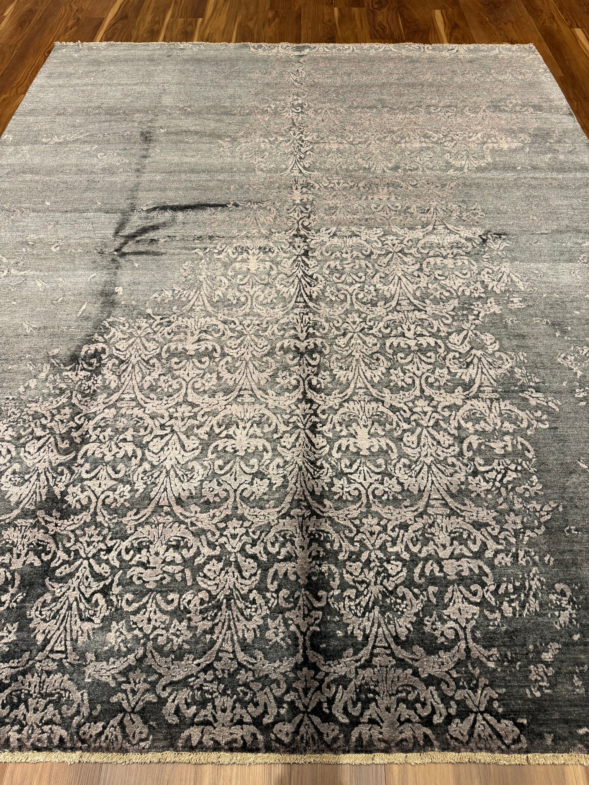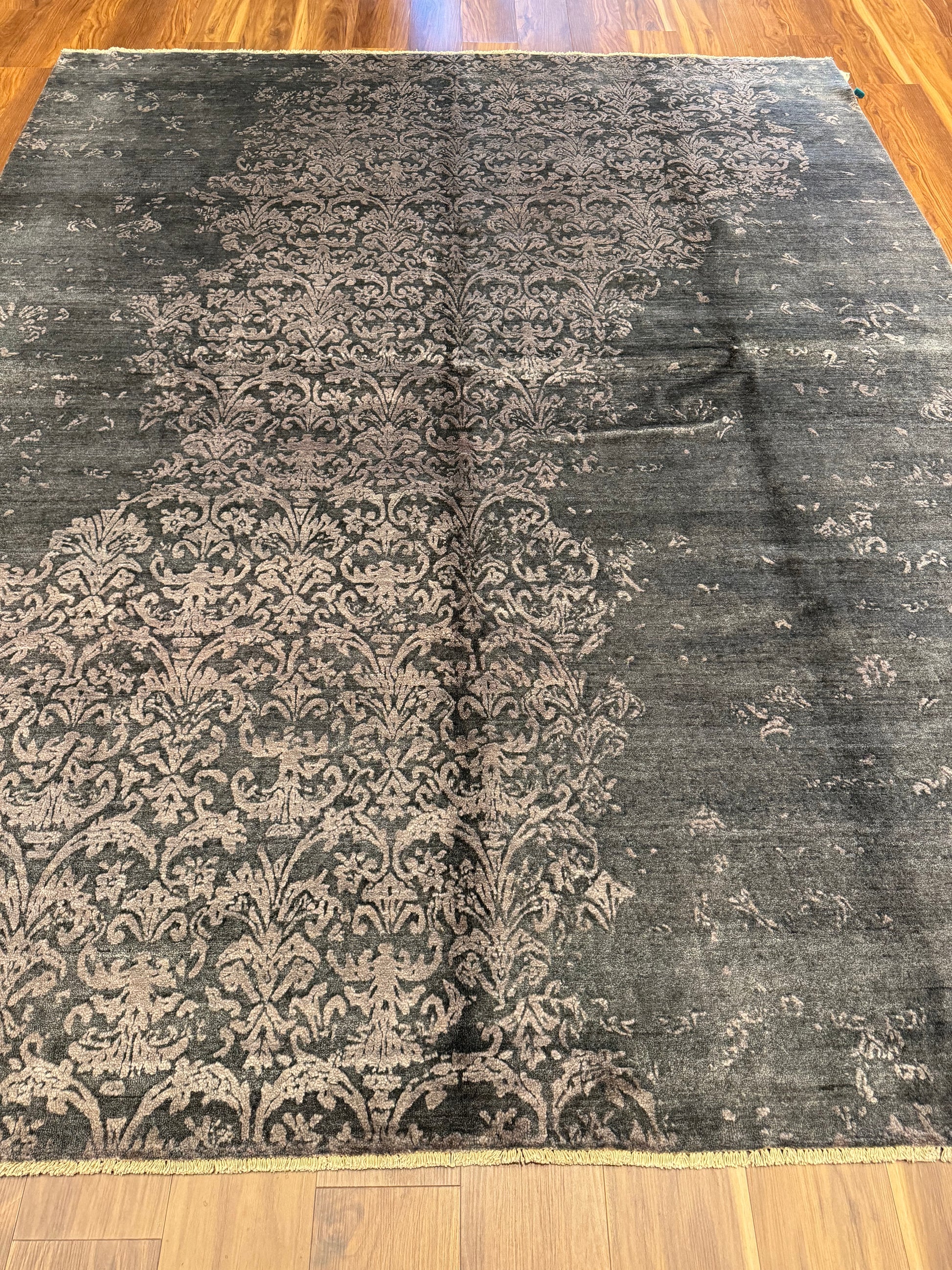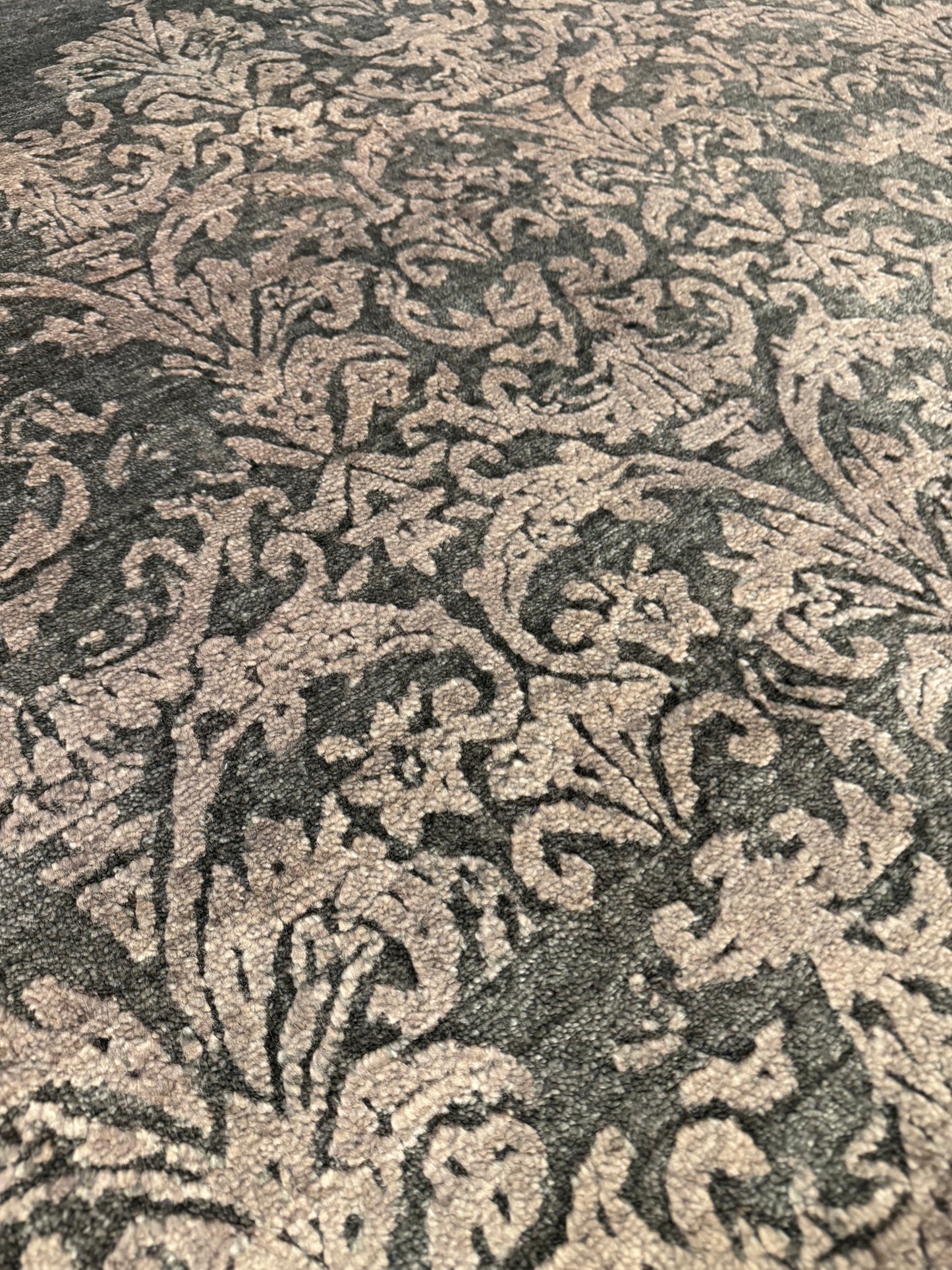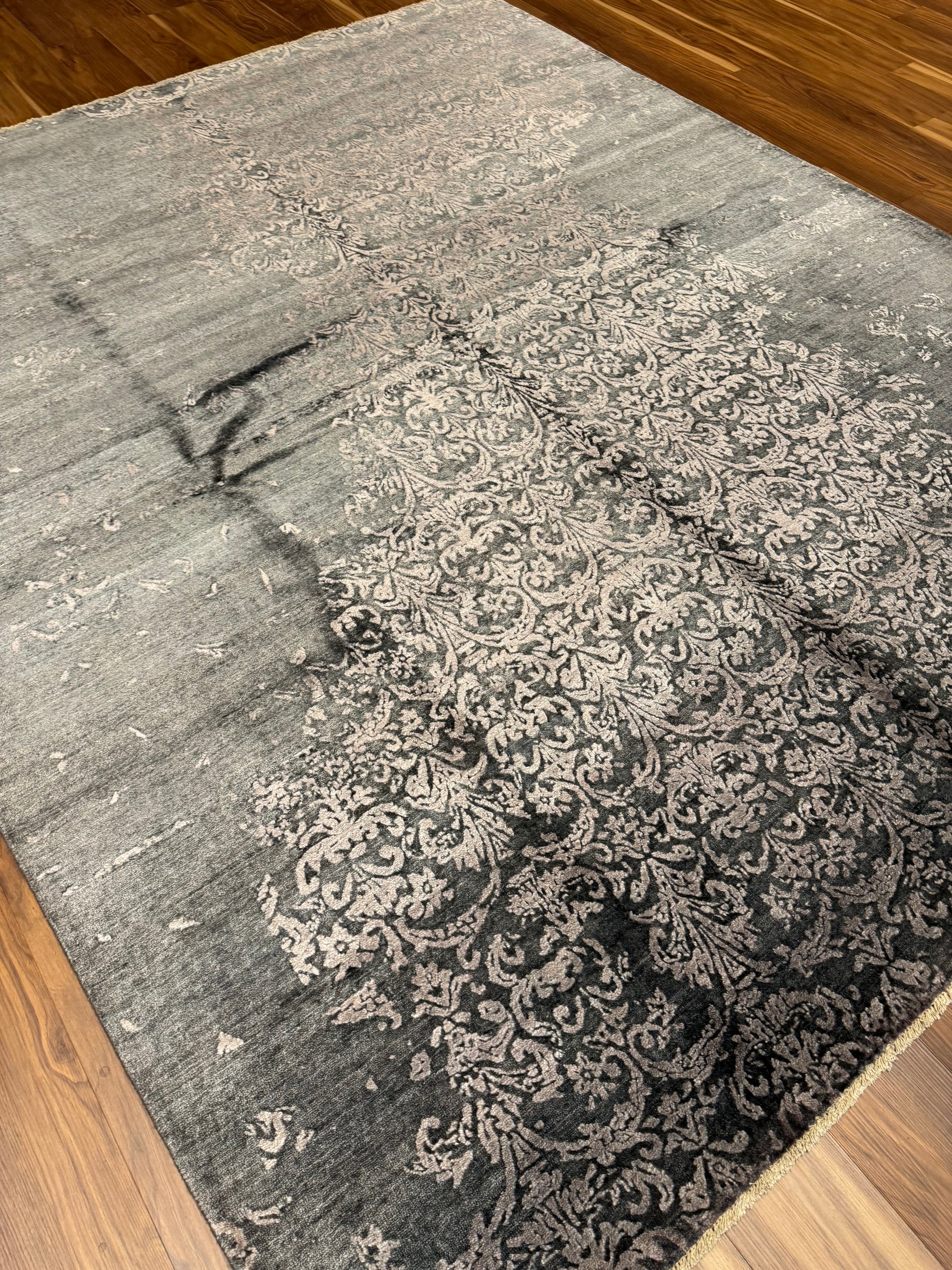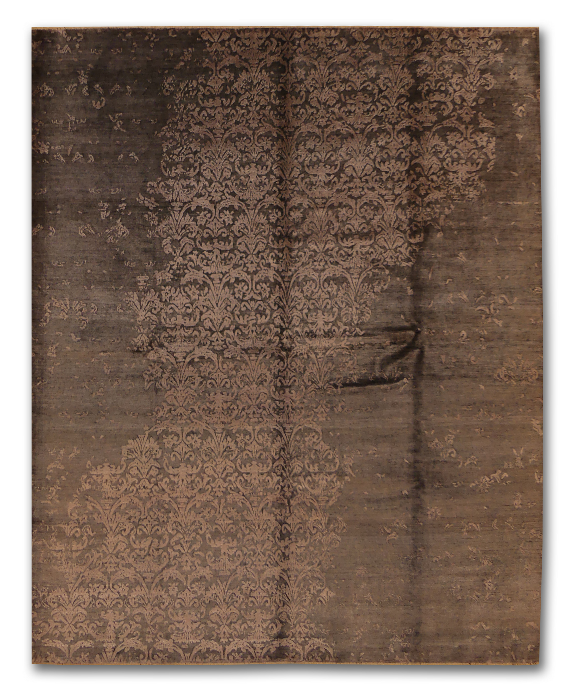 This exquisite Modern Floral Pattern rug is a stunning blend of luxury and artistry. Crafted from a blend of premium wool and silk, it boasts a soft and lustrous finish. The delicate floral design subtly emerges from a rich brown background, creating an illusion of depth and texture. Perfect for a contemporary home, it adds elegance without overwhelming, making it a versatile addition to any room.