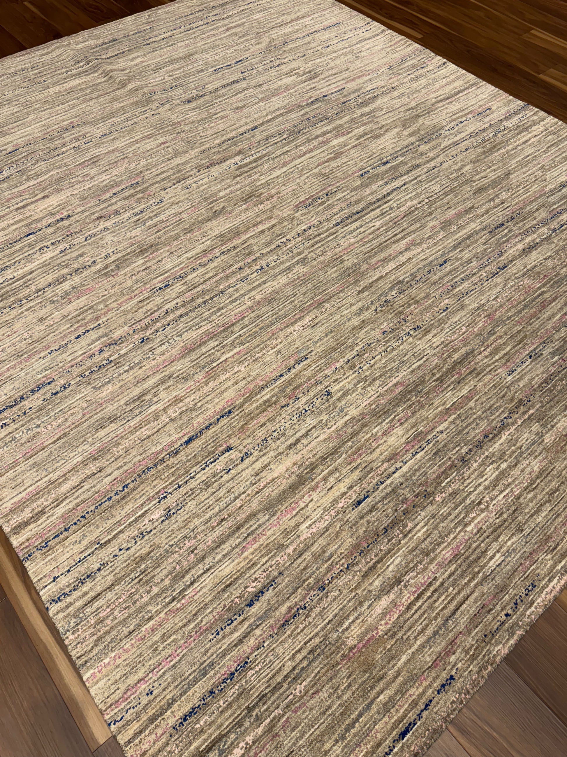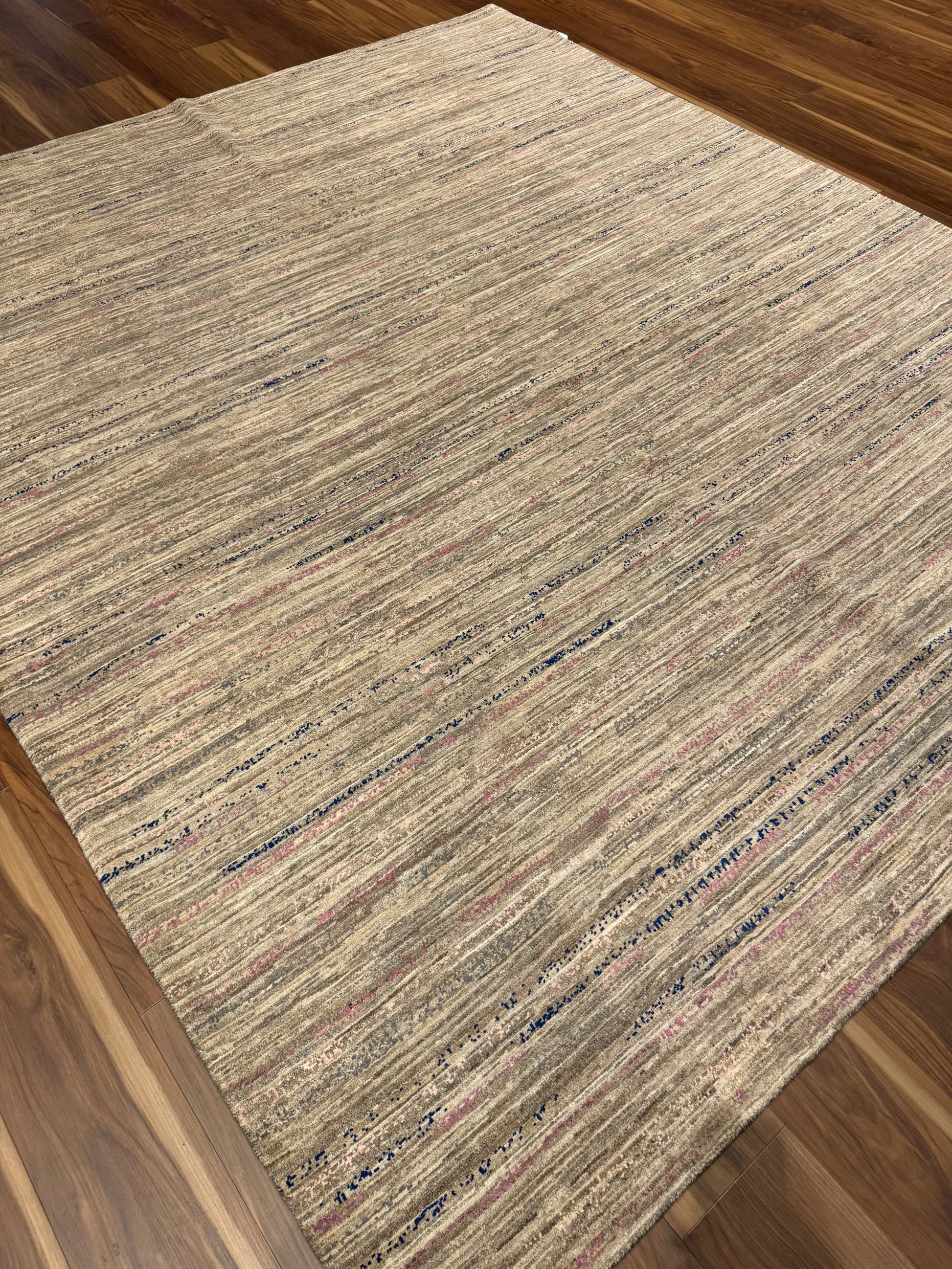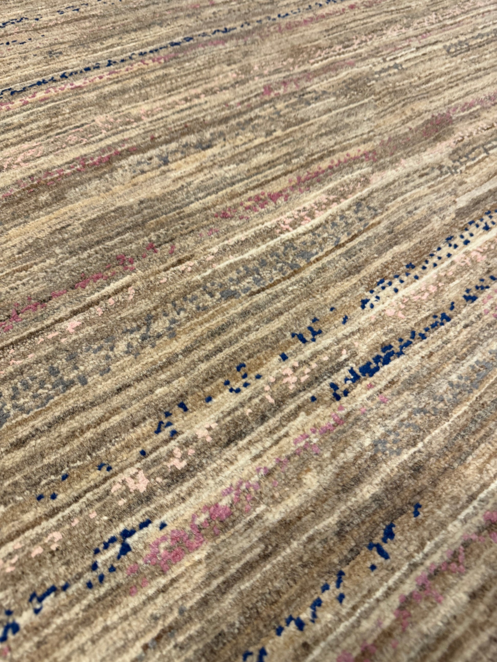 This elegant Modern Gabbeh rug exhibits a soothing blend of beige and brown hues with subtle pink accents, creating a warm and contemporary atmosphere in any room. Crafted with high-quality wool, this piece not only provides a soft underfoot experience but also ensures durability for long-lasting appeal. The pleasing striated pattern adds texture and visual interest without overwhelming the space, making it a versatile choice for both minimalist and vibrant interiors.