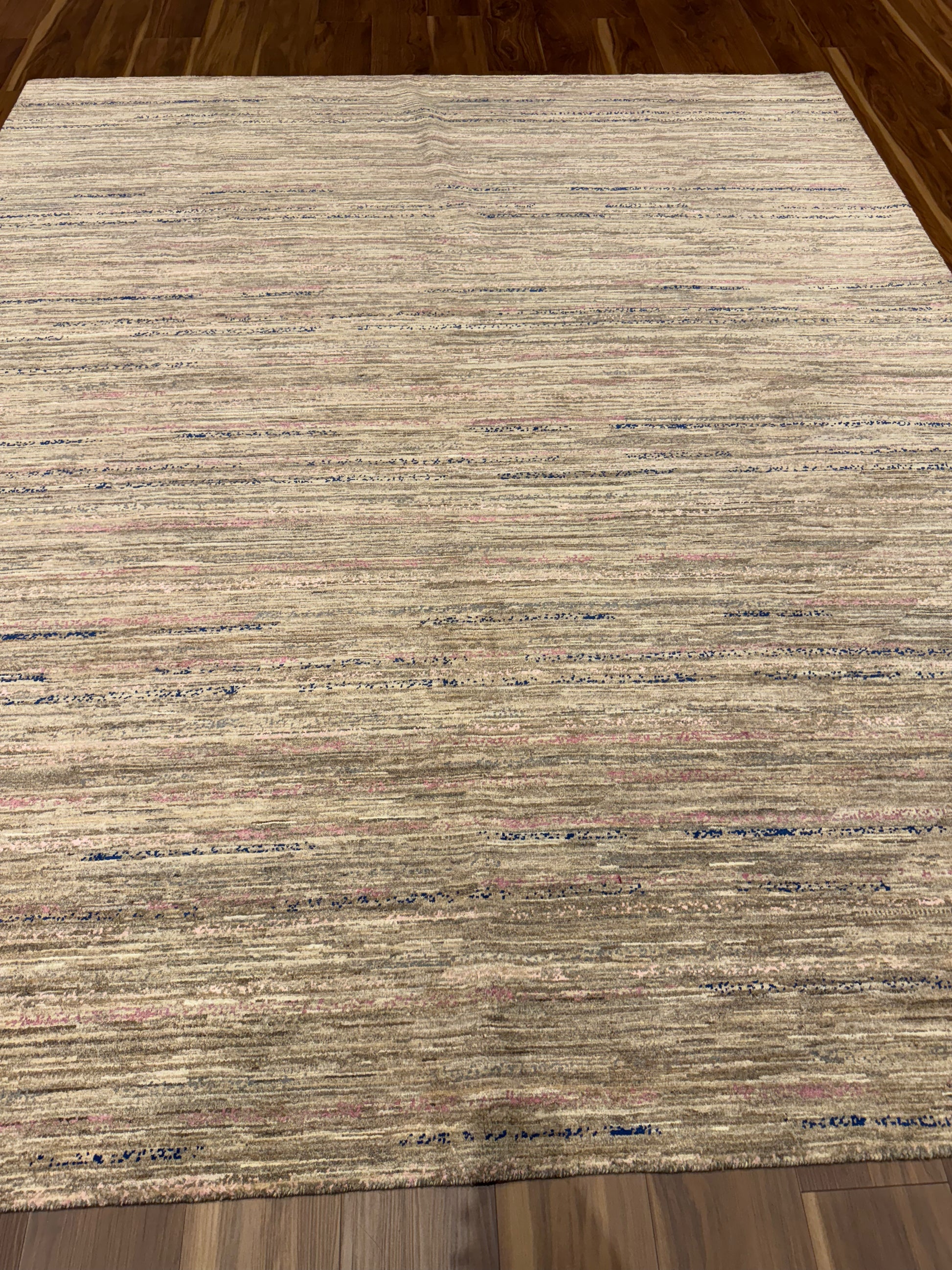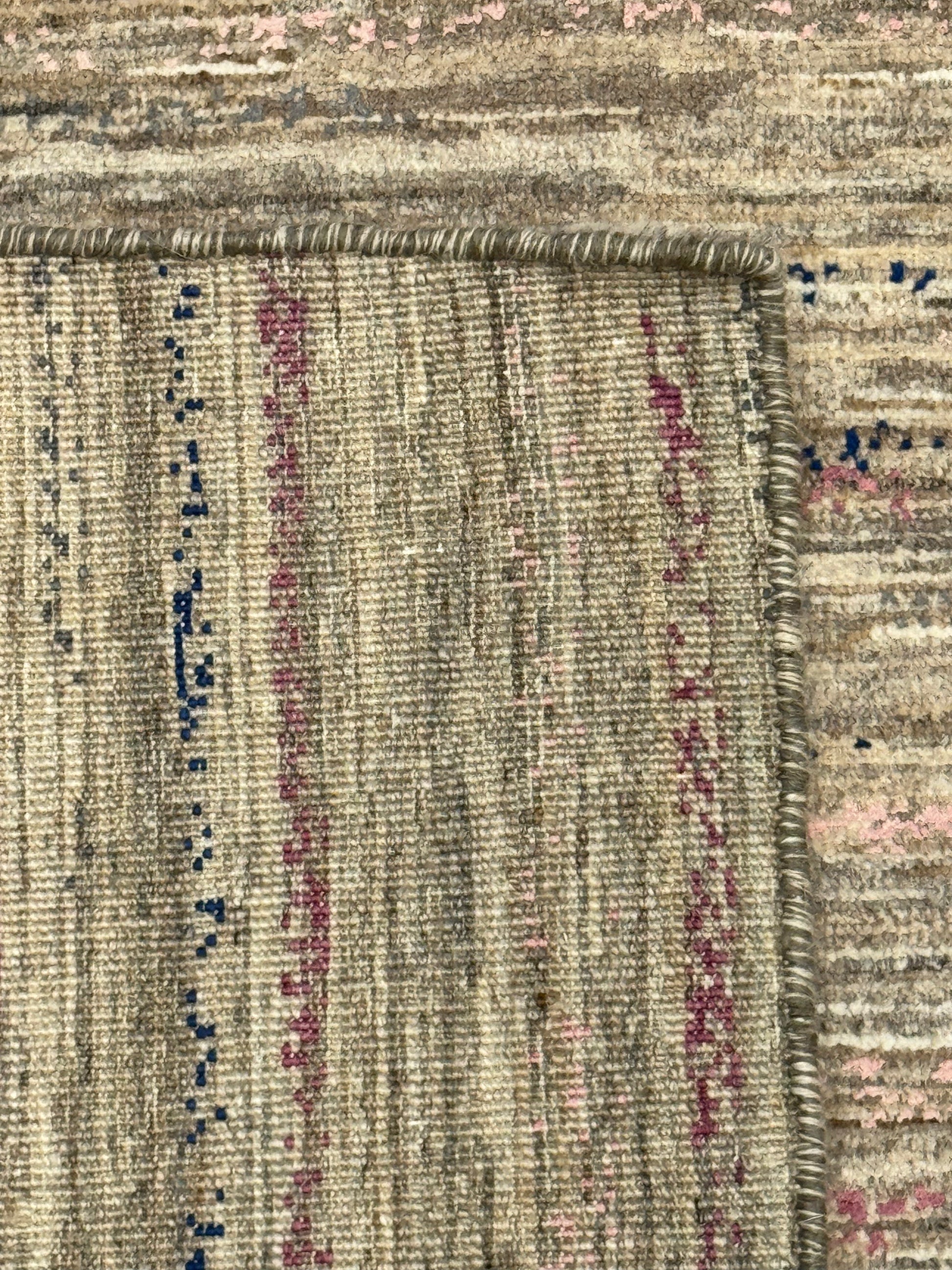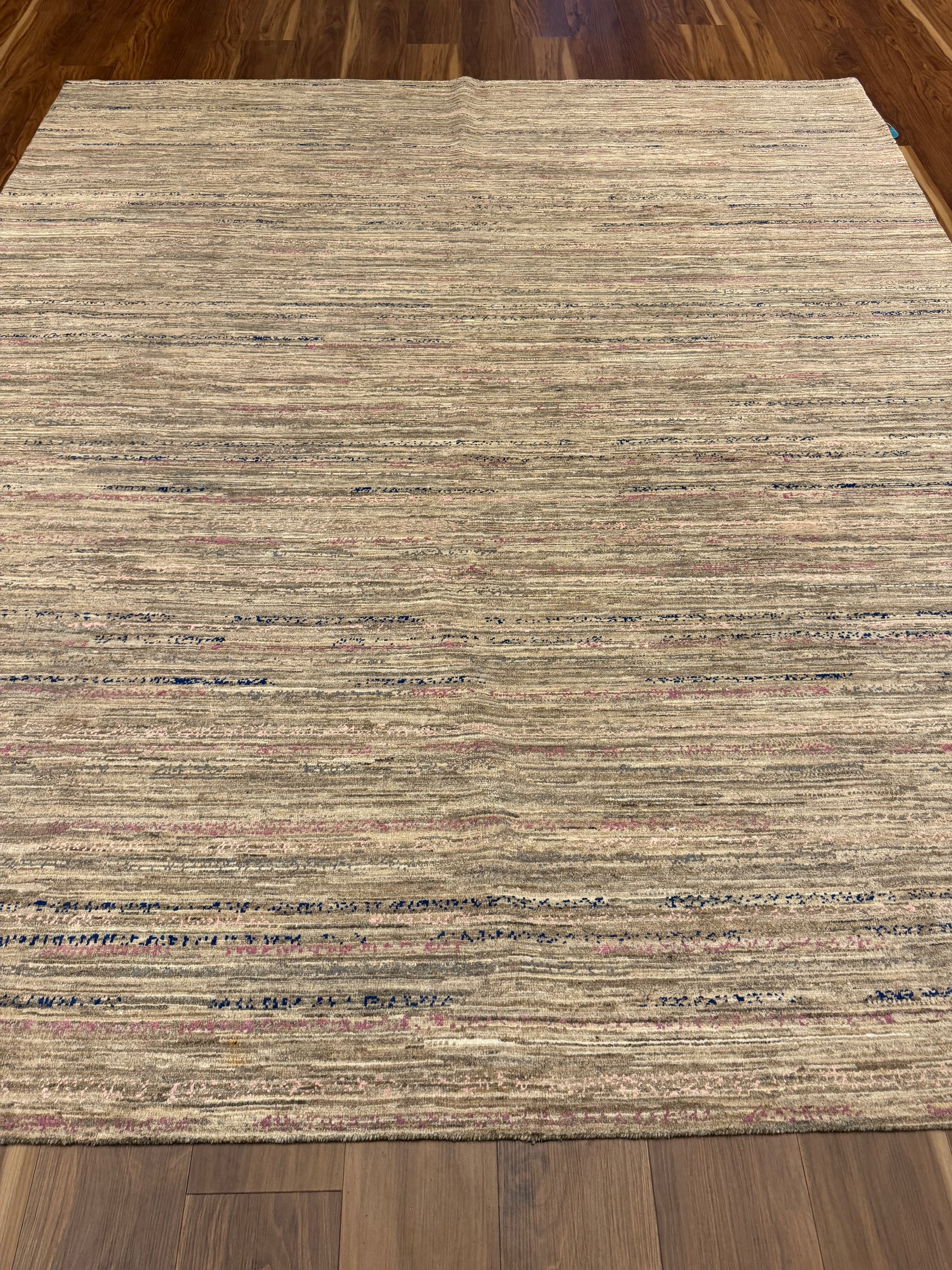 This elegant Modern Gabbeh rug exhibits a soothing blend of beige and brown hues with subtle pink accents, creating a warm and contemporary atmosphere in any room. Crafted with high-quality wool, this piece not only provides a soft underfoot experience but also ensures durability for long-lasting appeal. The pleasing striated pattern adds texture and visual interest without overwhelming the space, making it a versatile choice for both minimalist and vibrant interiors.