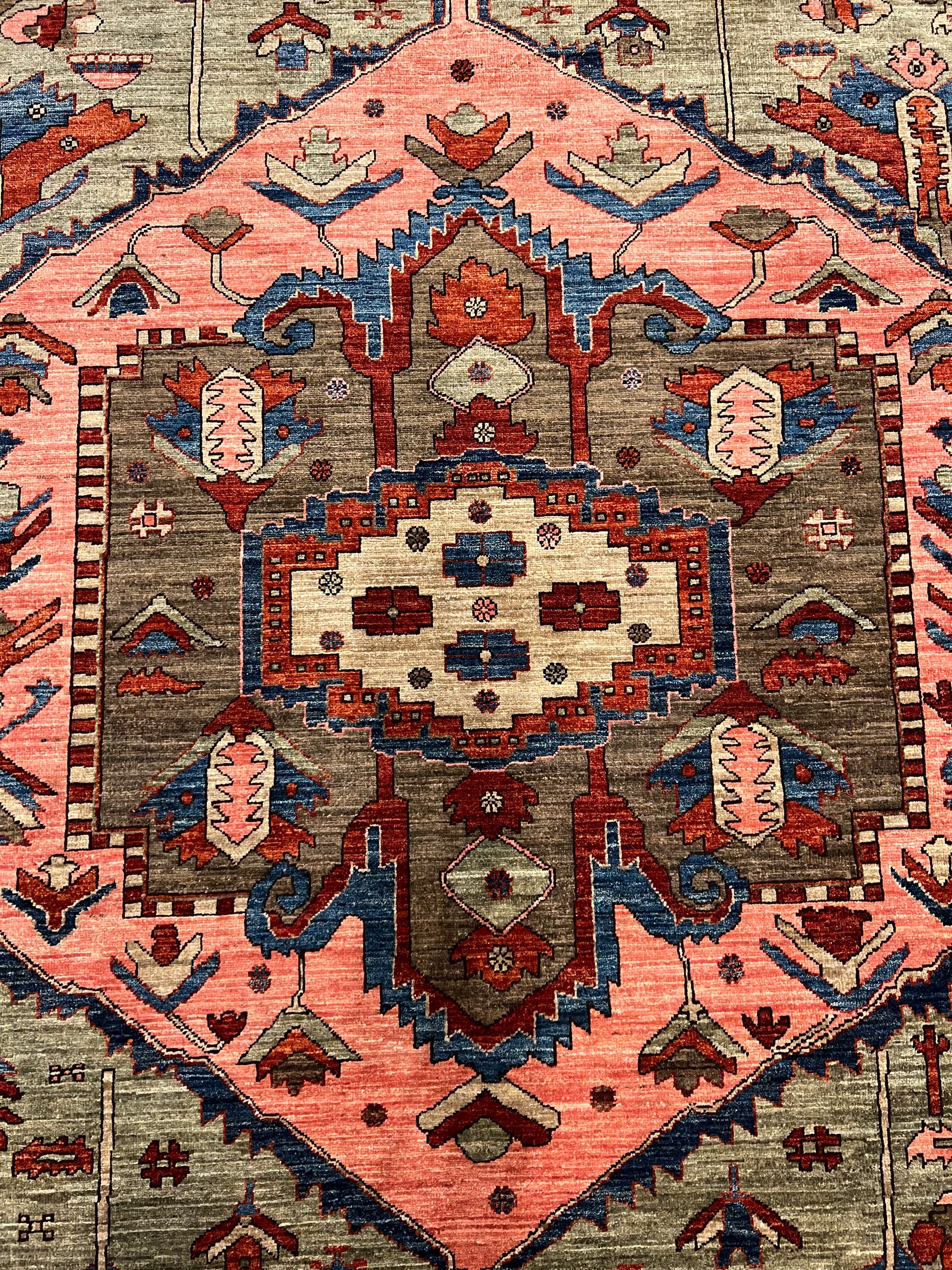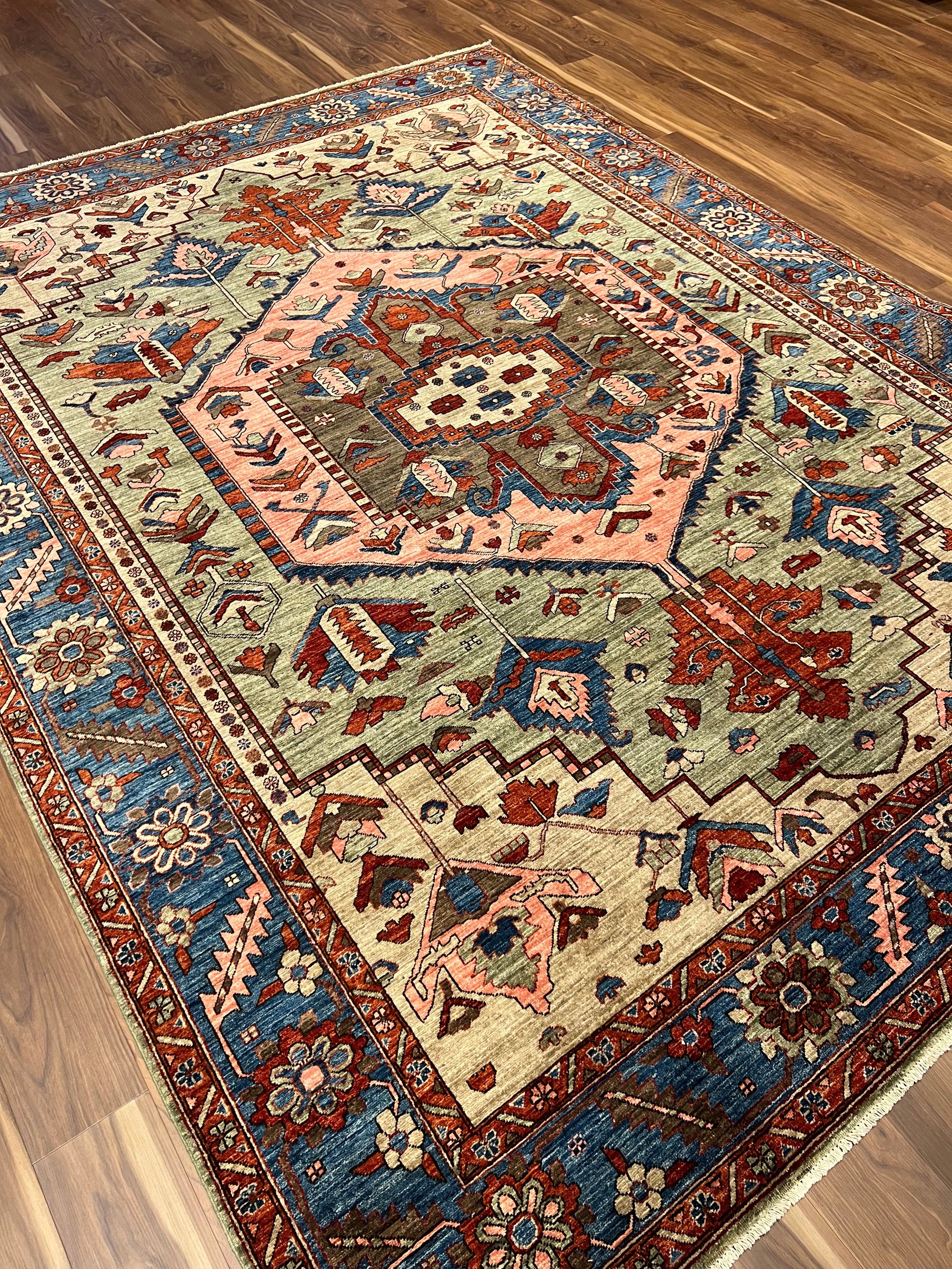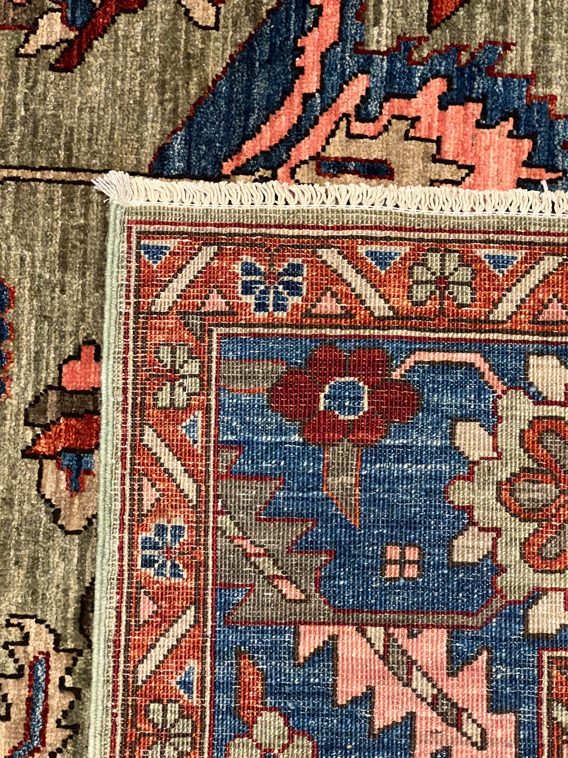 The Mystique Bakshaish rug presents an intricate traditional design with a splendid combination of rust, navy blue, and beige hues. Handcrafted from natural wool, its durable weave offers a luxurious feel underfoot. The central medallion is surrounded by detailed botanical motifs, reflecting a timeless elegance inspired by historic Persian Bakshaish patterns. Perfect for adding warmth and historical character to a living space or dining area.